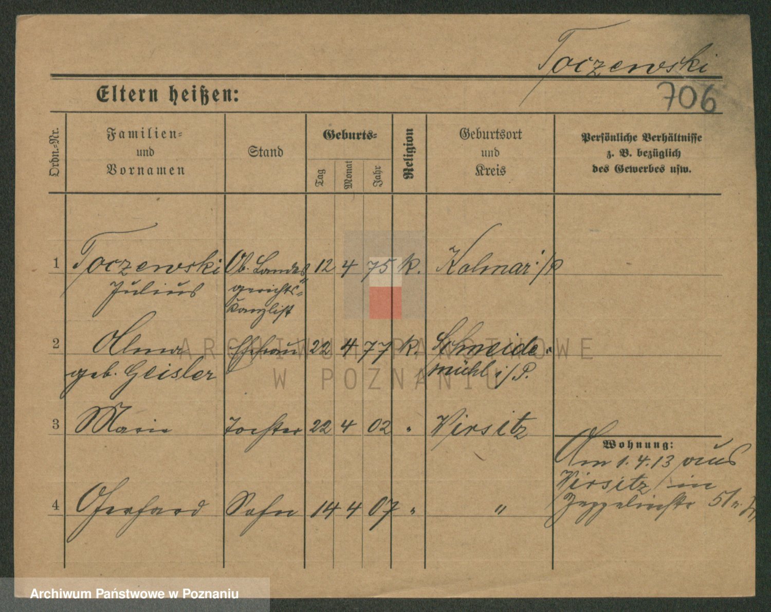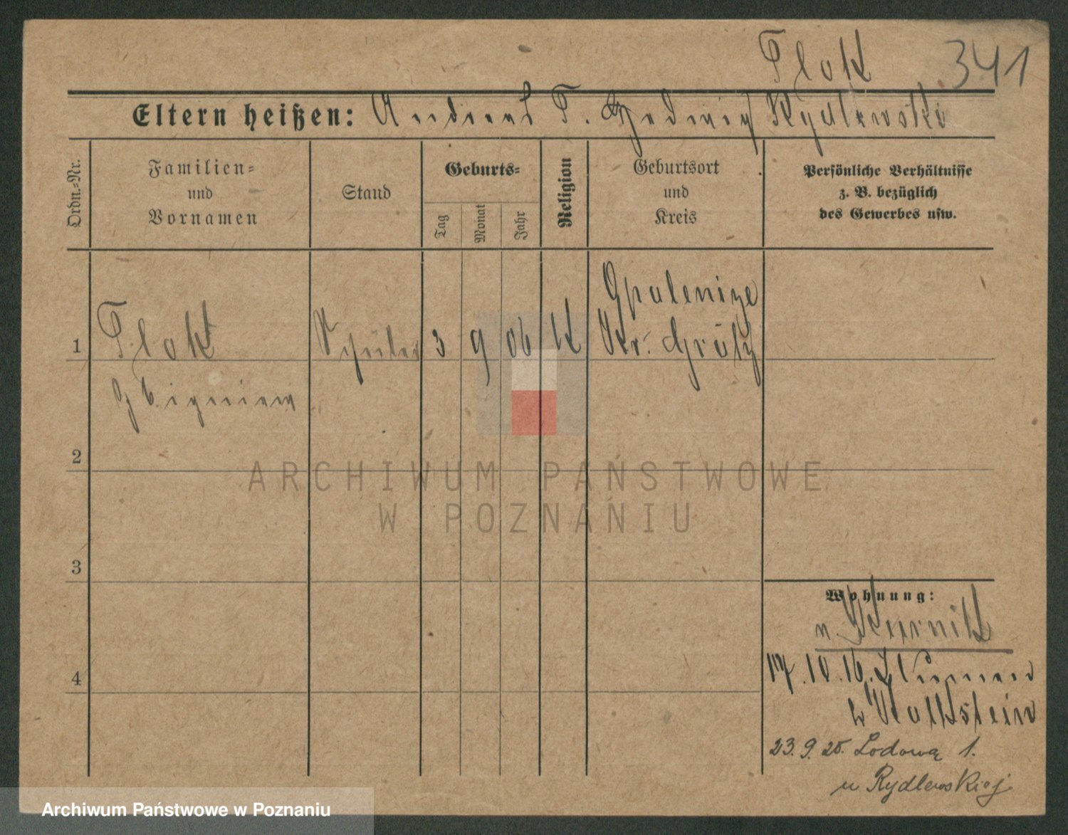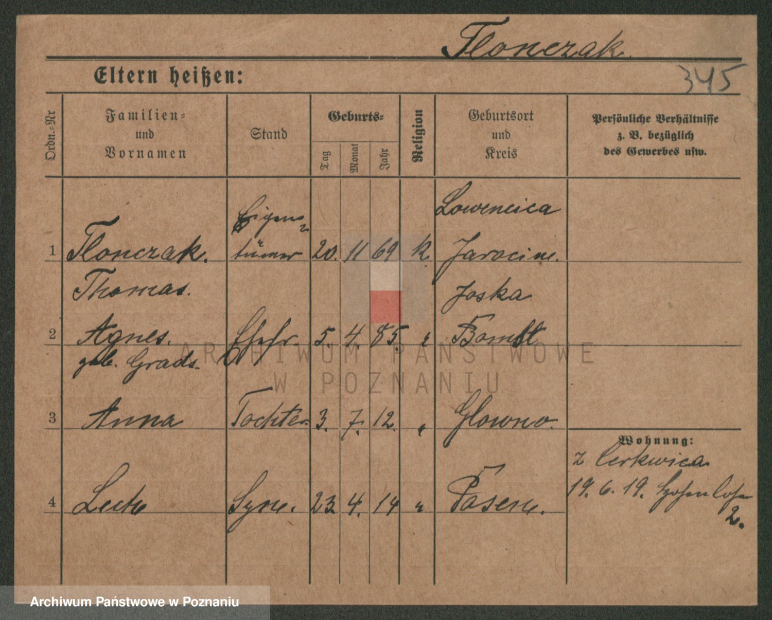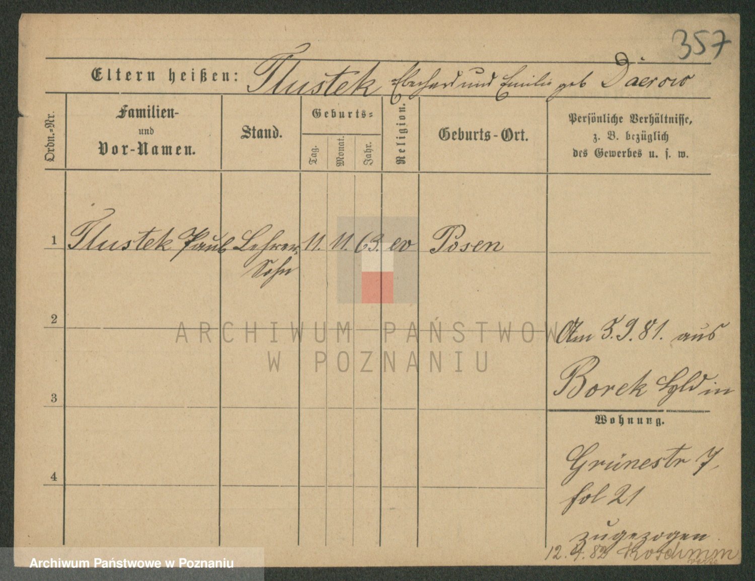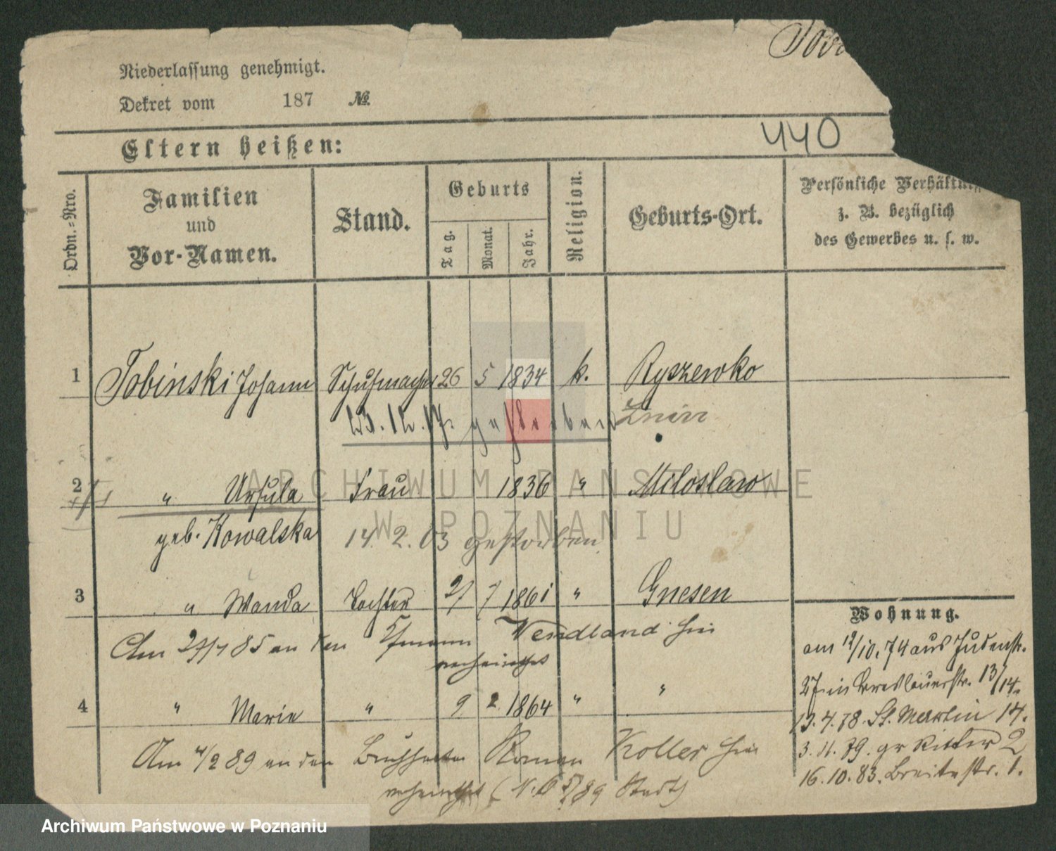 Podgląd karty osobowej dostępny jest po kliknięciu na nazwisko lub ikonkę karty. Można dokonywać powiększenia (ikony na górze) lub przechodzić między kolejnymi skanami (strzałki po bokach).