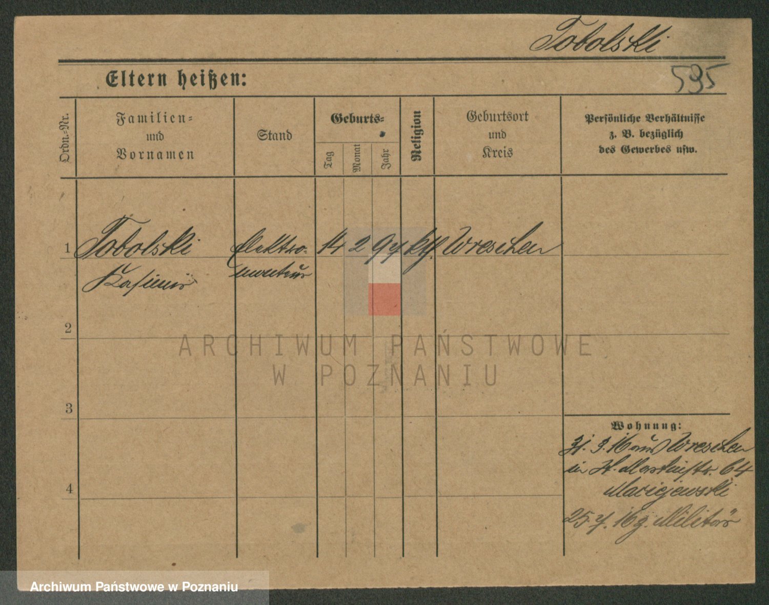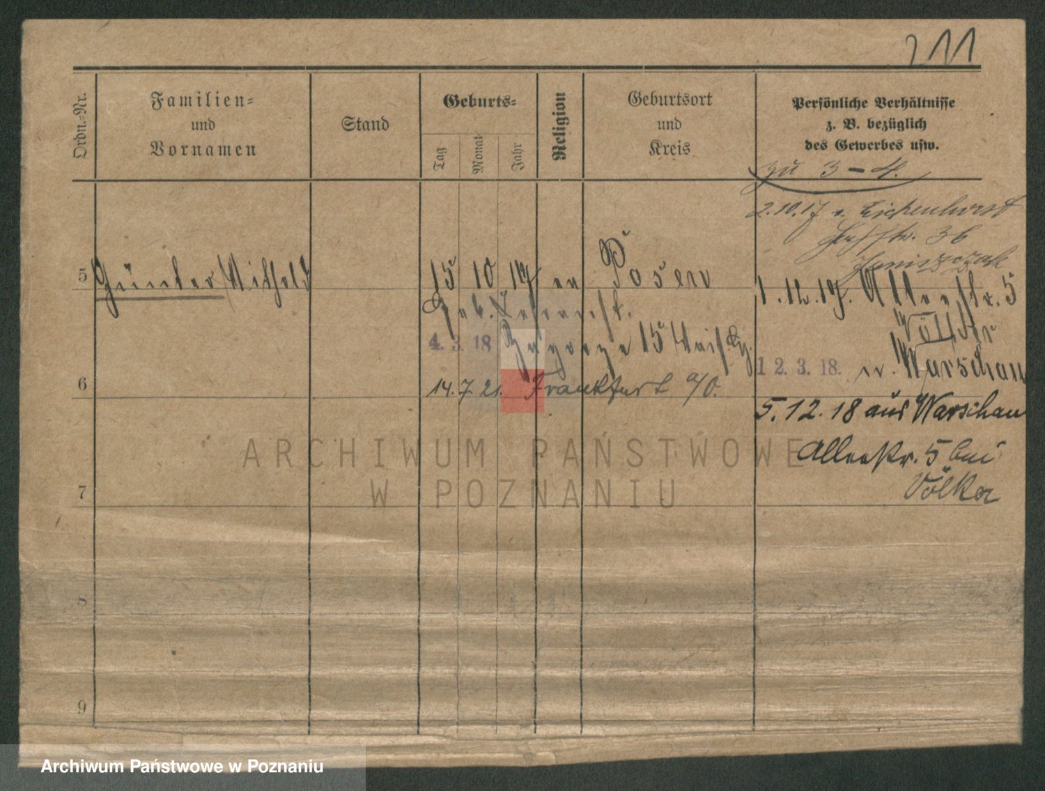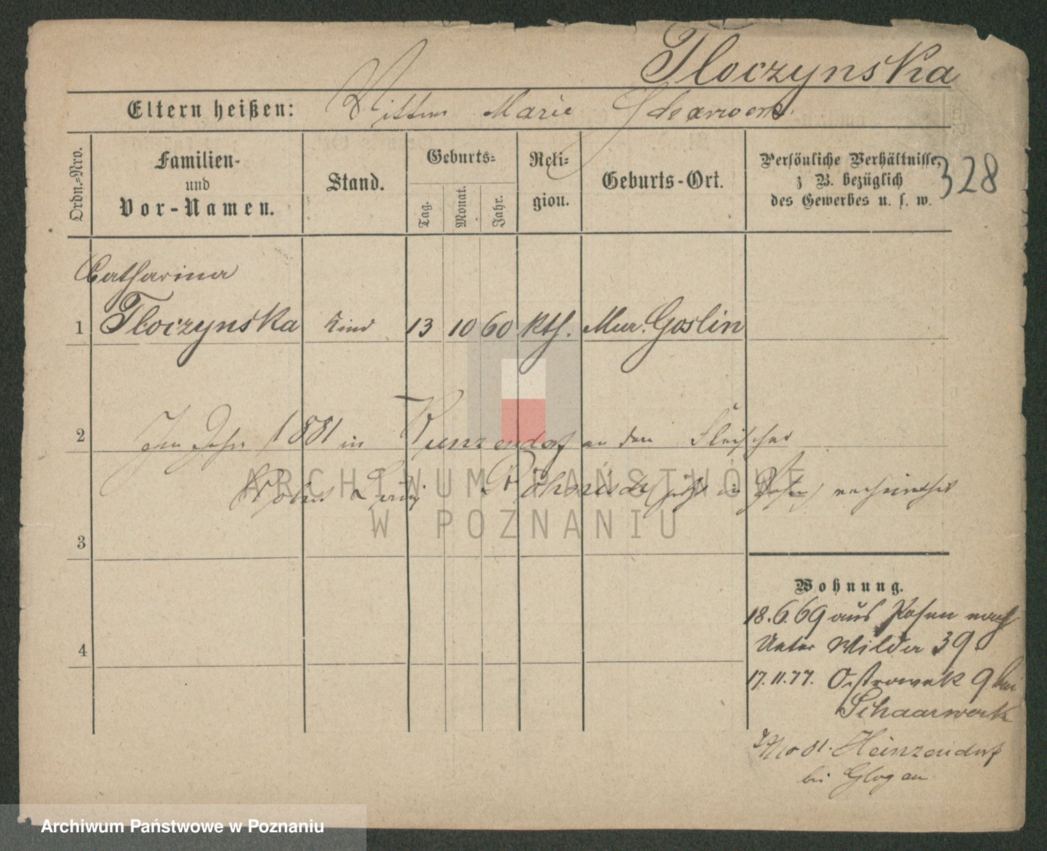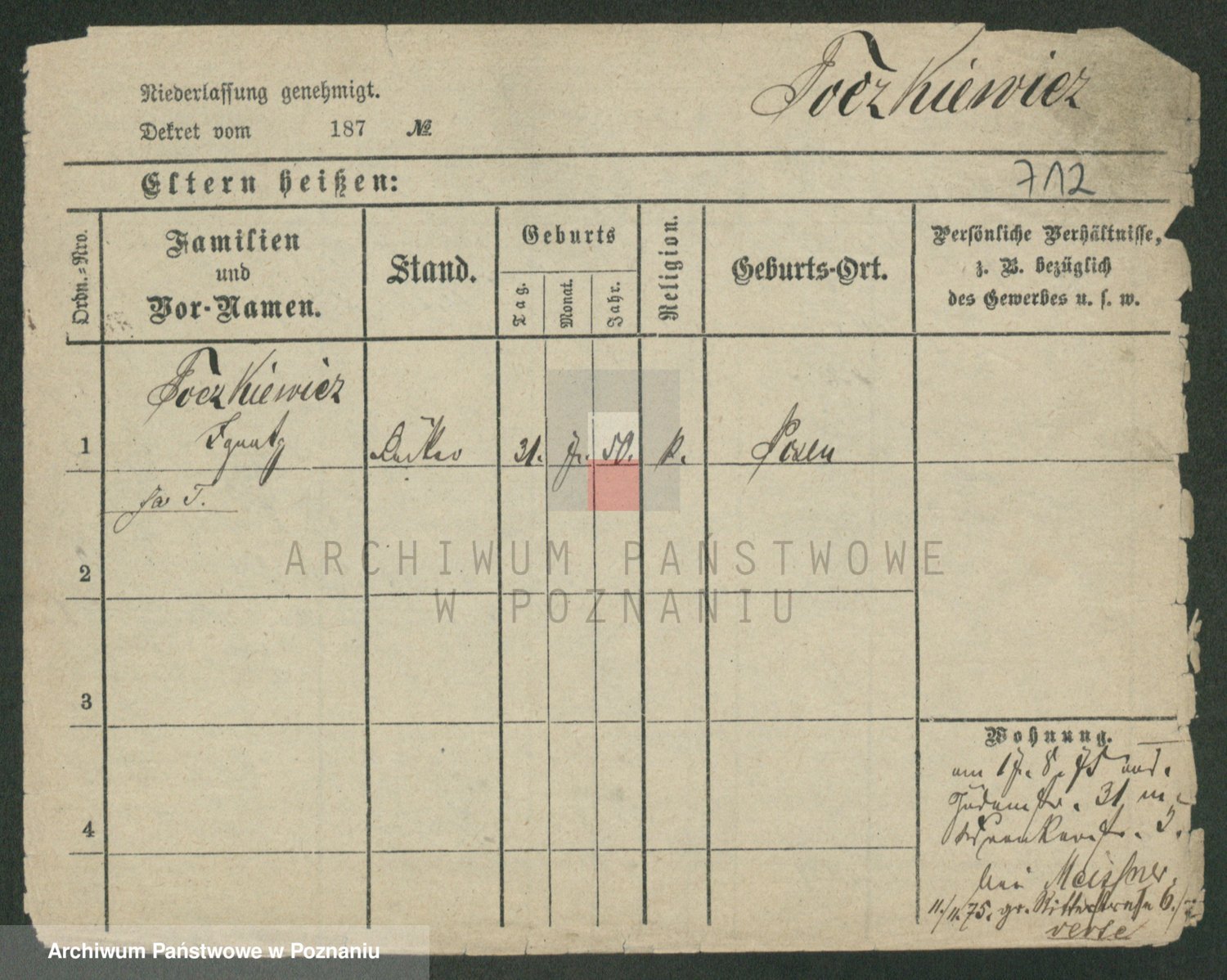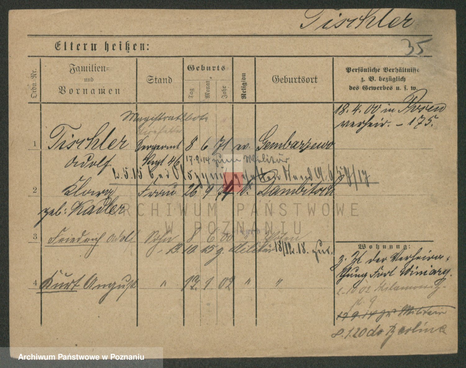 Podgląd karty osobowej dostępny jest po kliknięciu na nazwisko lub ikonkę karty. Można dokonywać powiększenia (ikony na górze) lub przechodzić między kolejnymi skanami (strzałki po bokach).