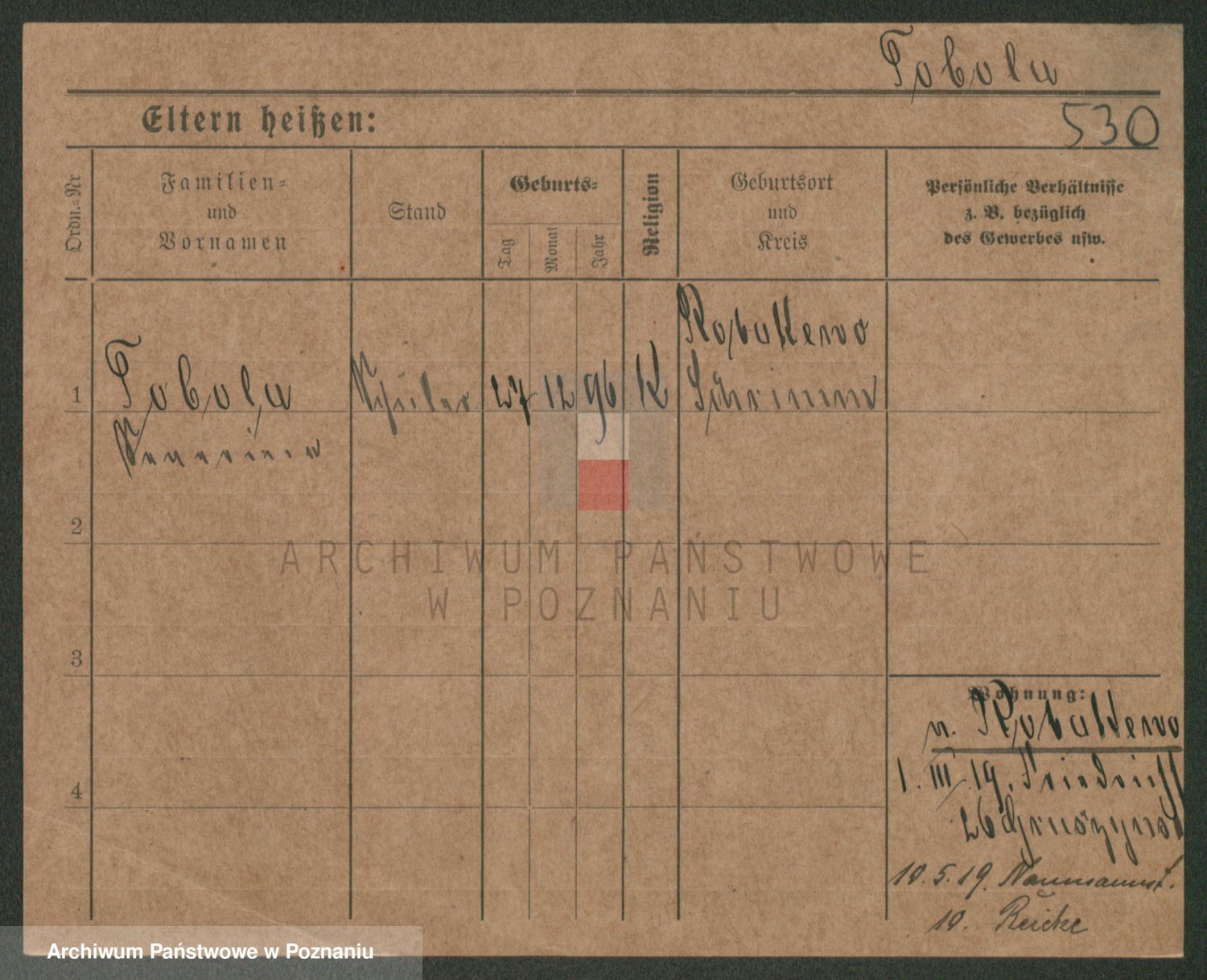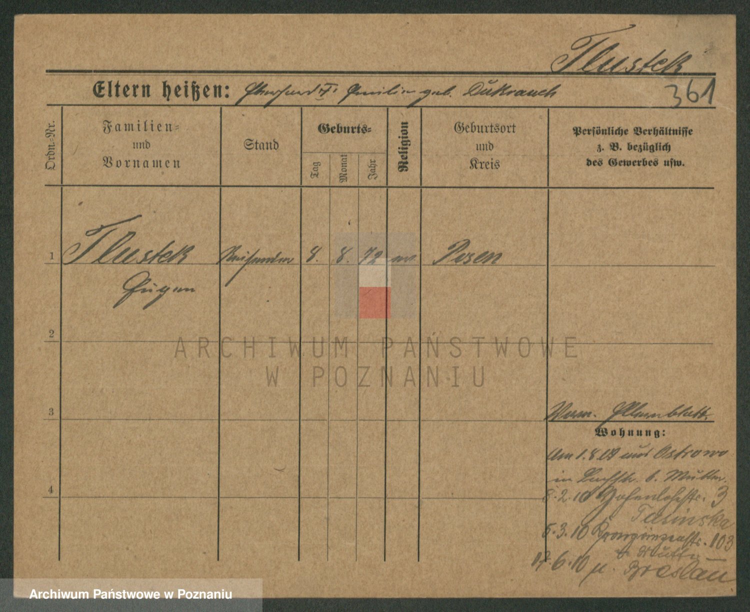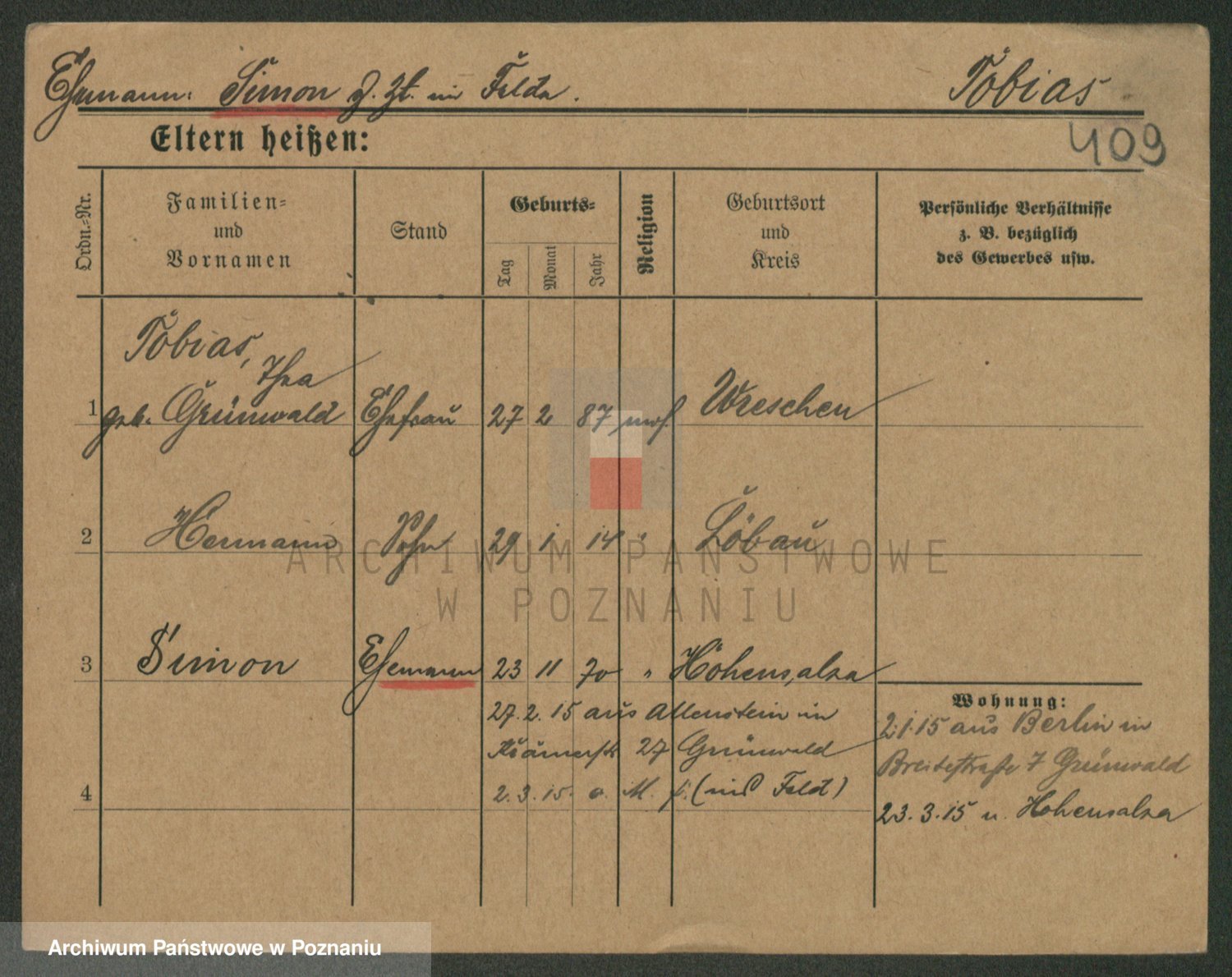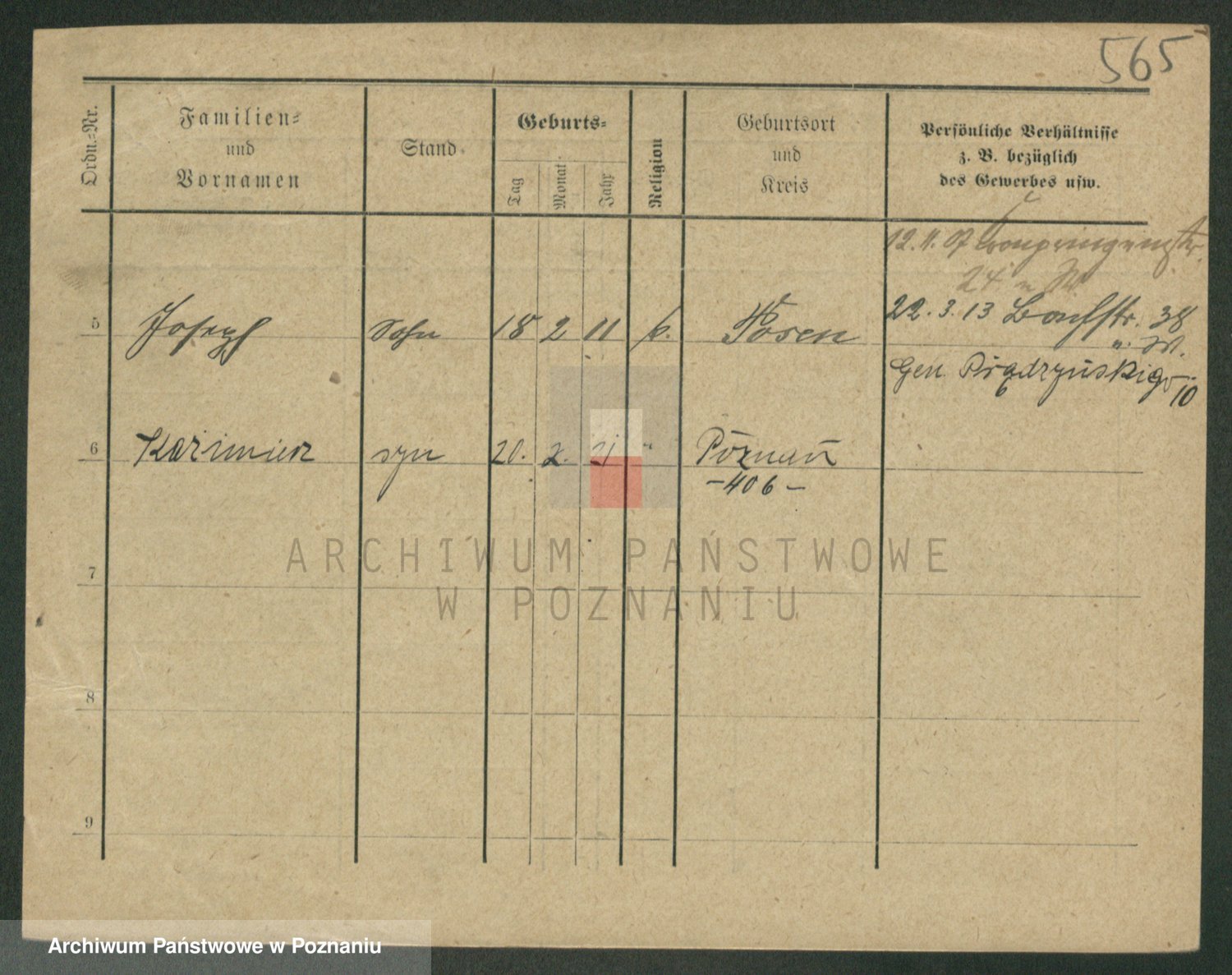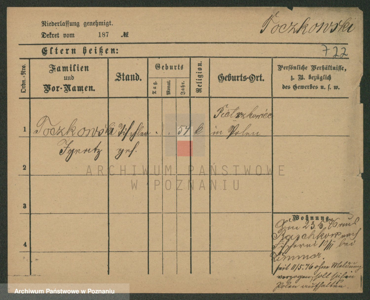 Podgląd karty osobowej dostępny jest po kliknięciu na nazwisko lub ikonkę karty. Można dokonywać powiększenia (ikony na górze) lub przechodzić między kolejnymi skanami (strzałki po bokach).