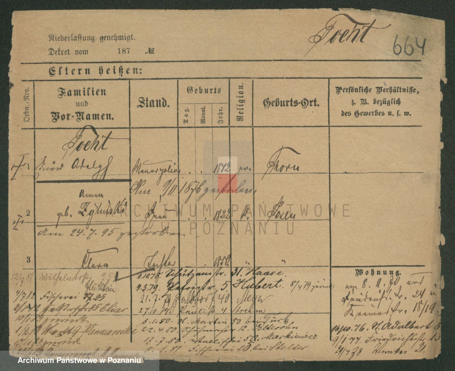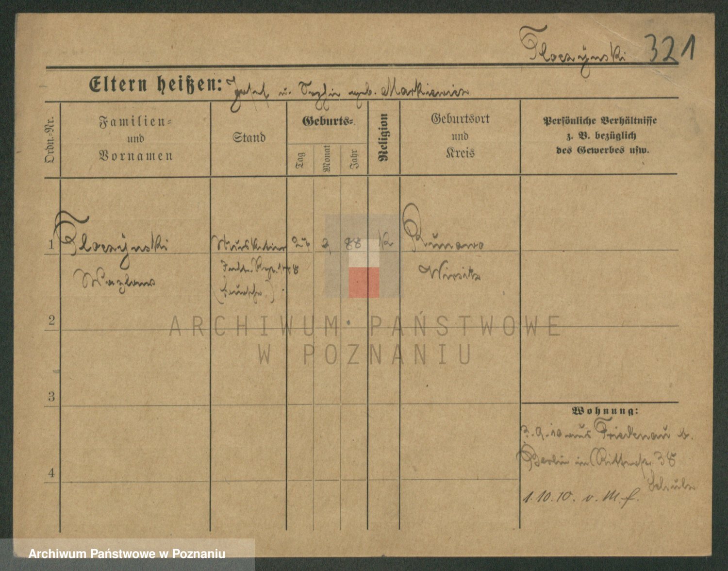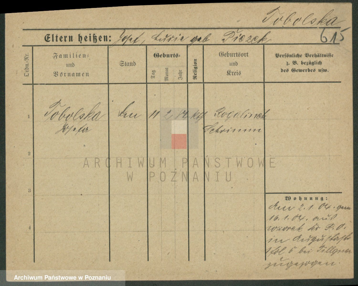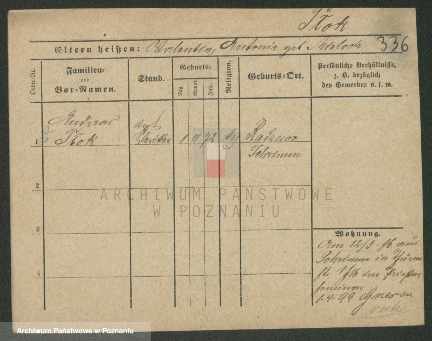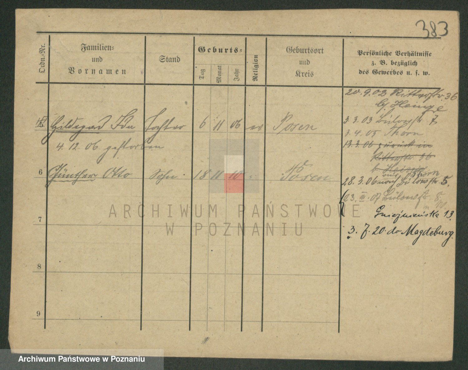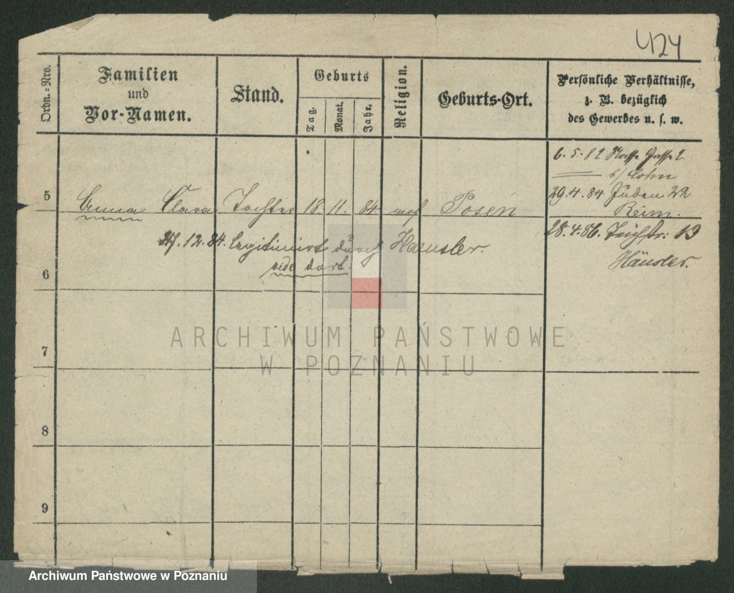 Podgląd karty osobowej dostępny jest po kliknięciu na nazwisko lub ikonkę karty. Można dokonywać powiększenia (ikony na górze) lub przechodzić między kolejnymi skanami (strzałki po bokach).