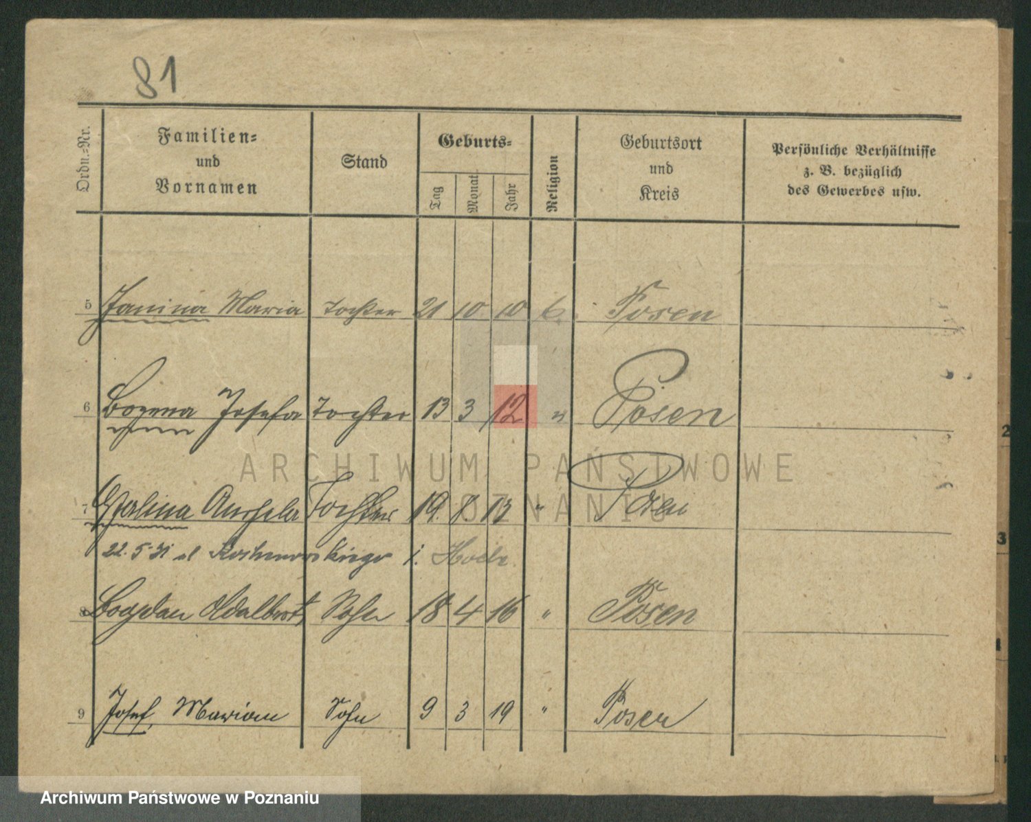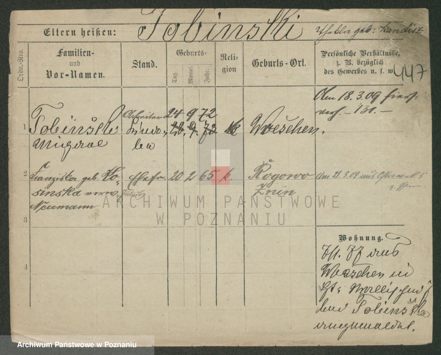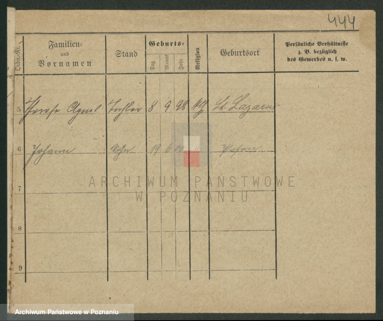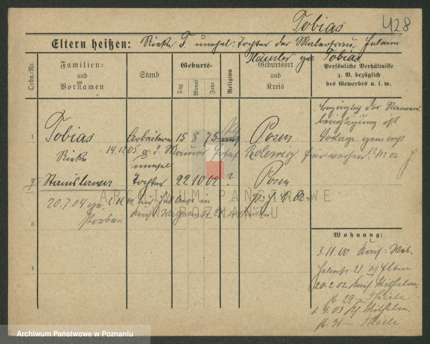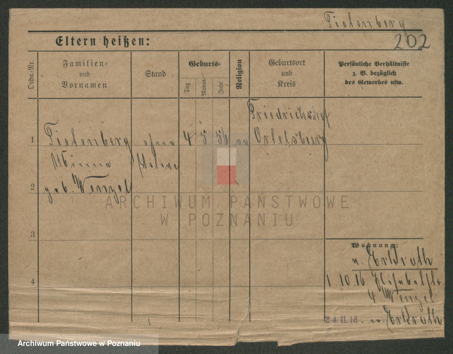 Podgląd karty osobowej dostępny jest po kliknięciu na nazwisko lub ikonkę karty. Można dokonywać powiększenia (ikony na górze) lub przechodzić między kolejnymi skanami (strzałki po bokach).