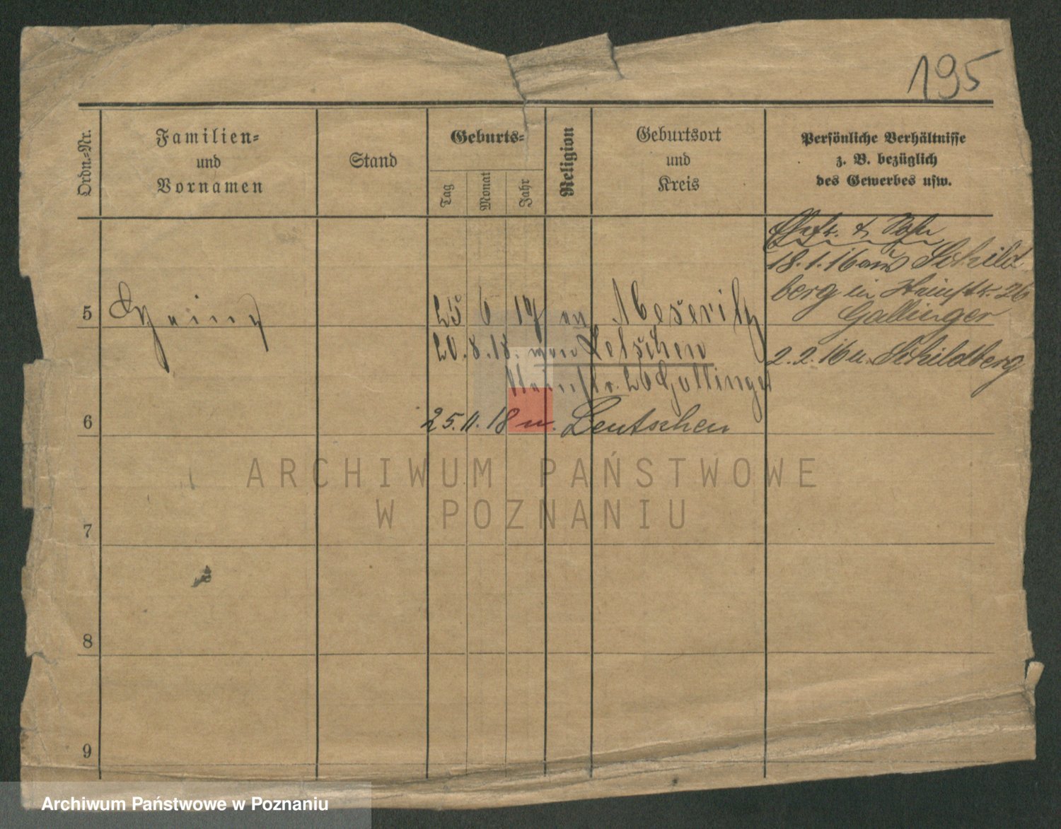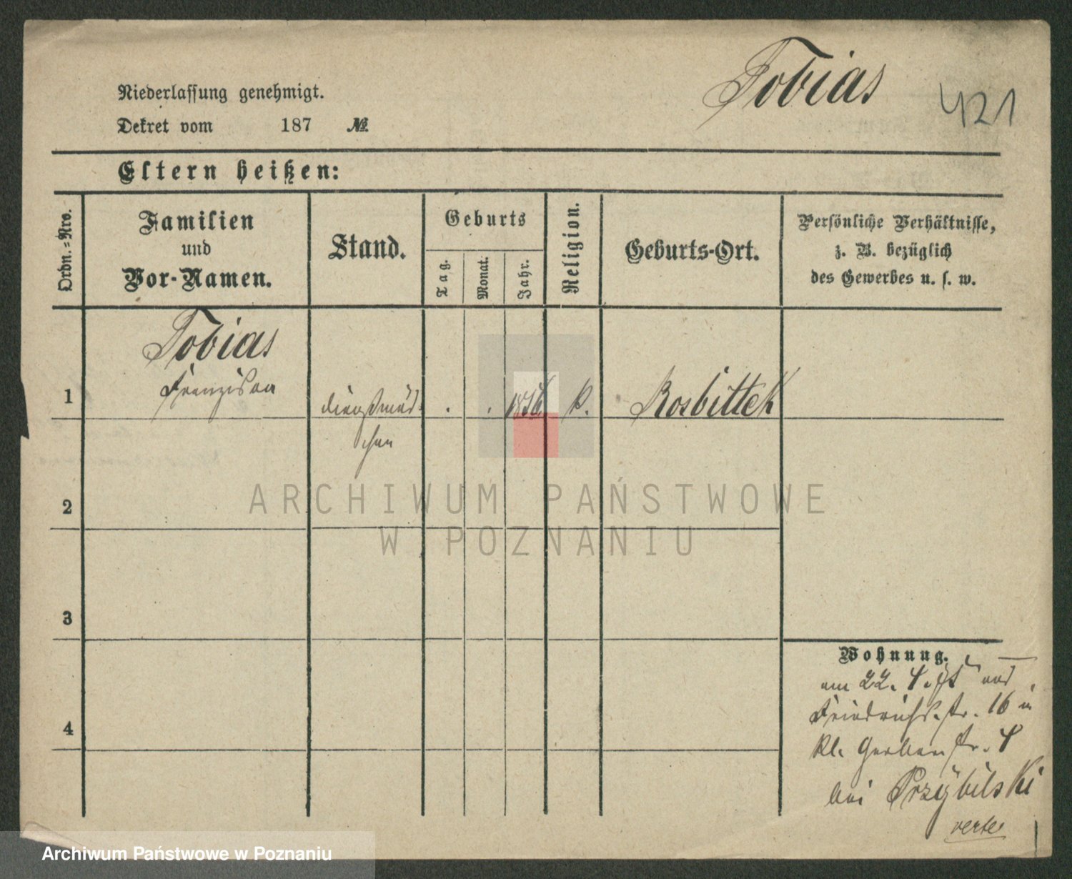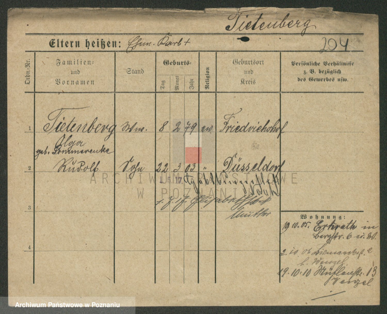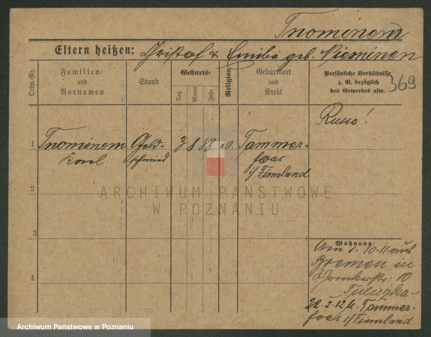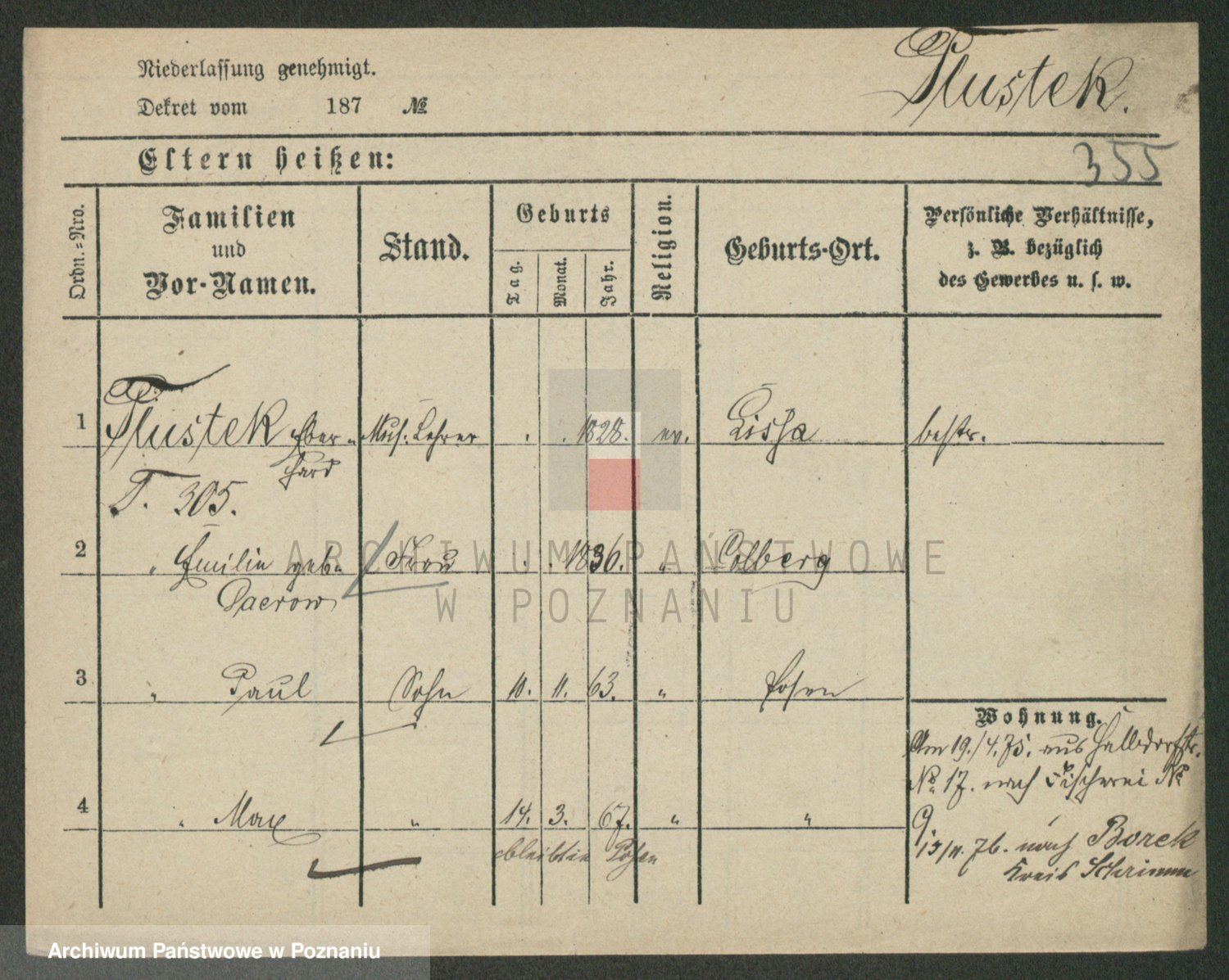 Podgląd karty osobowej dostępny jest po kliknięciu na nazwisko lub ikonkę karty. Można dokonywać powiększenia (ikony na górze) lub przechodzić między kolejnymi skanami (strzałki po bokach).