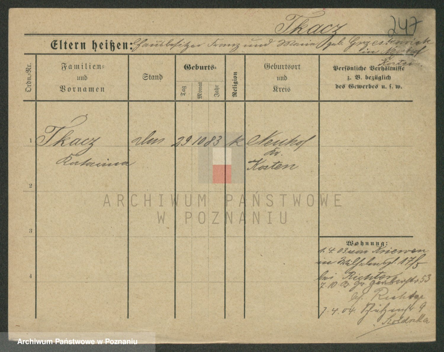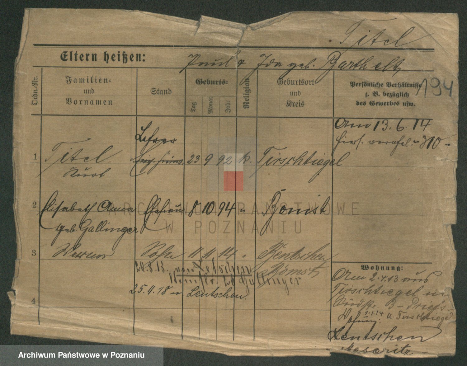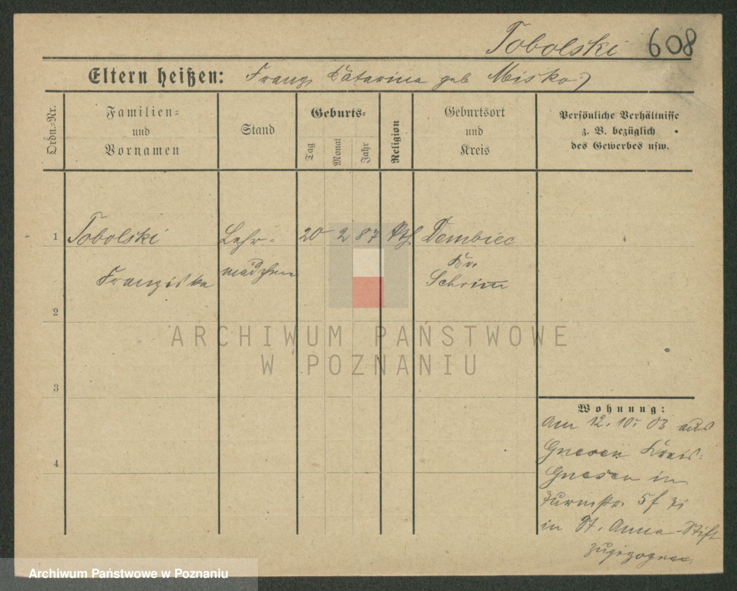 Tischler zd. Balcerkiewicz, Wiktoria