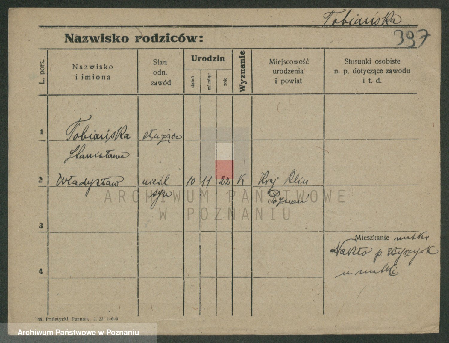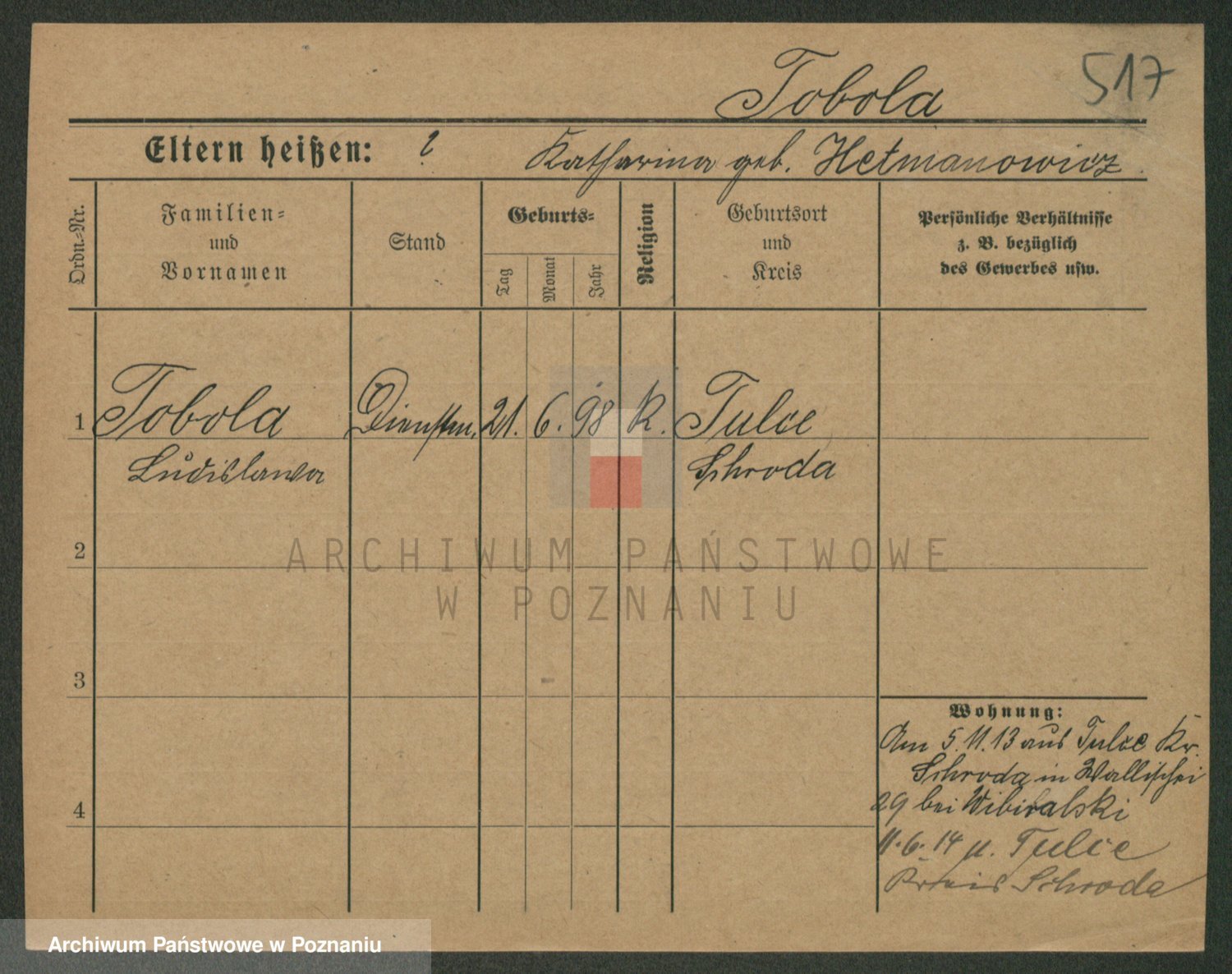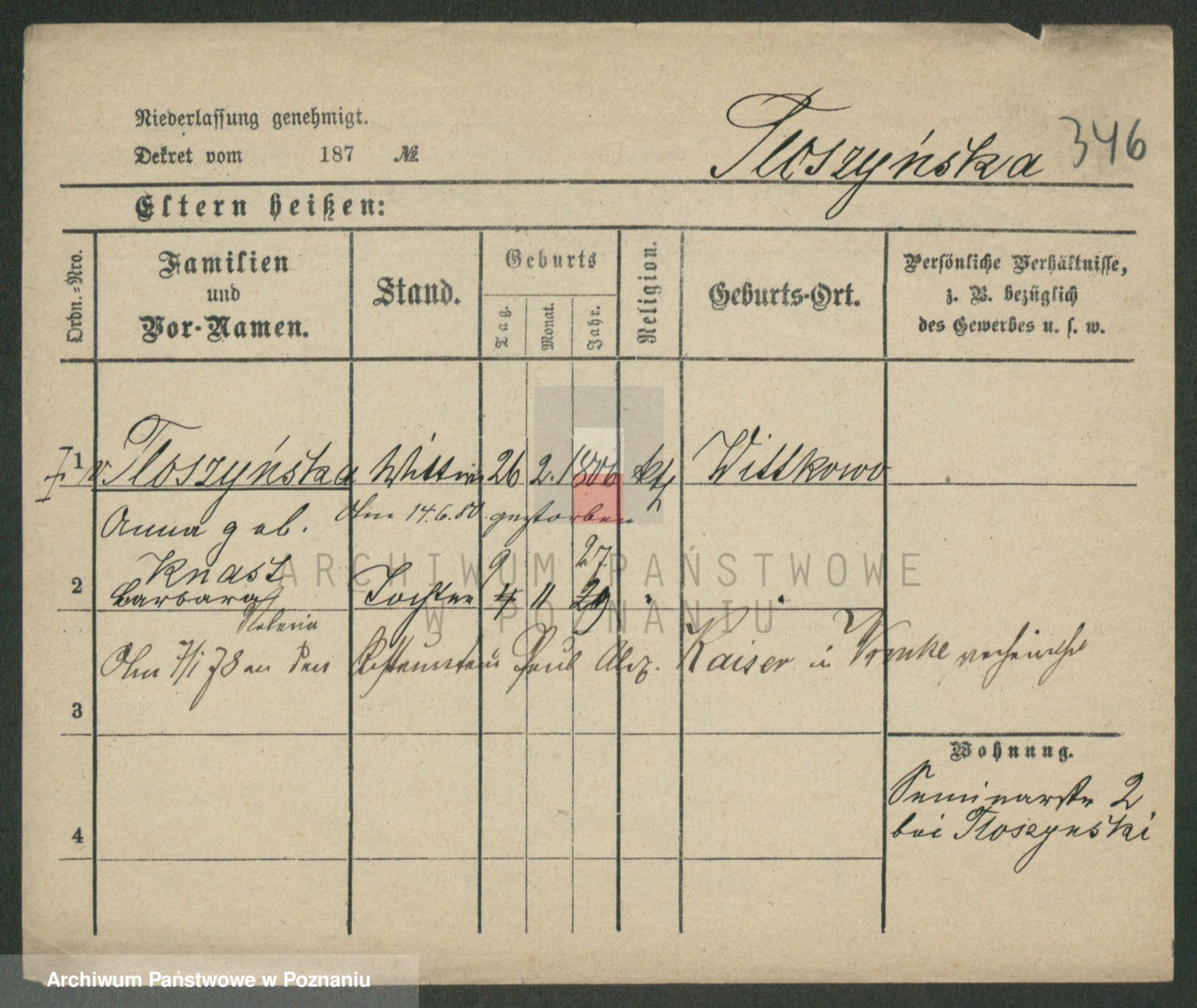 Tischler zd. Balcerkiewicz, Wiktoria