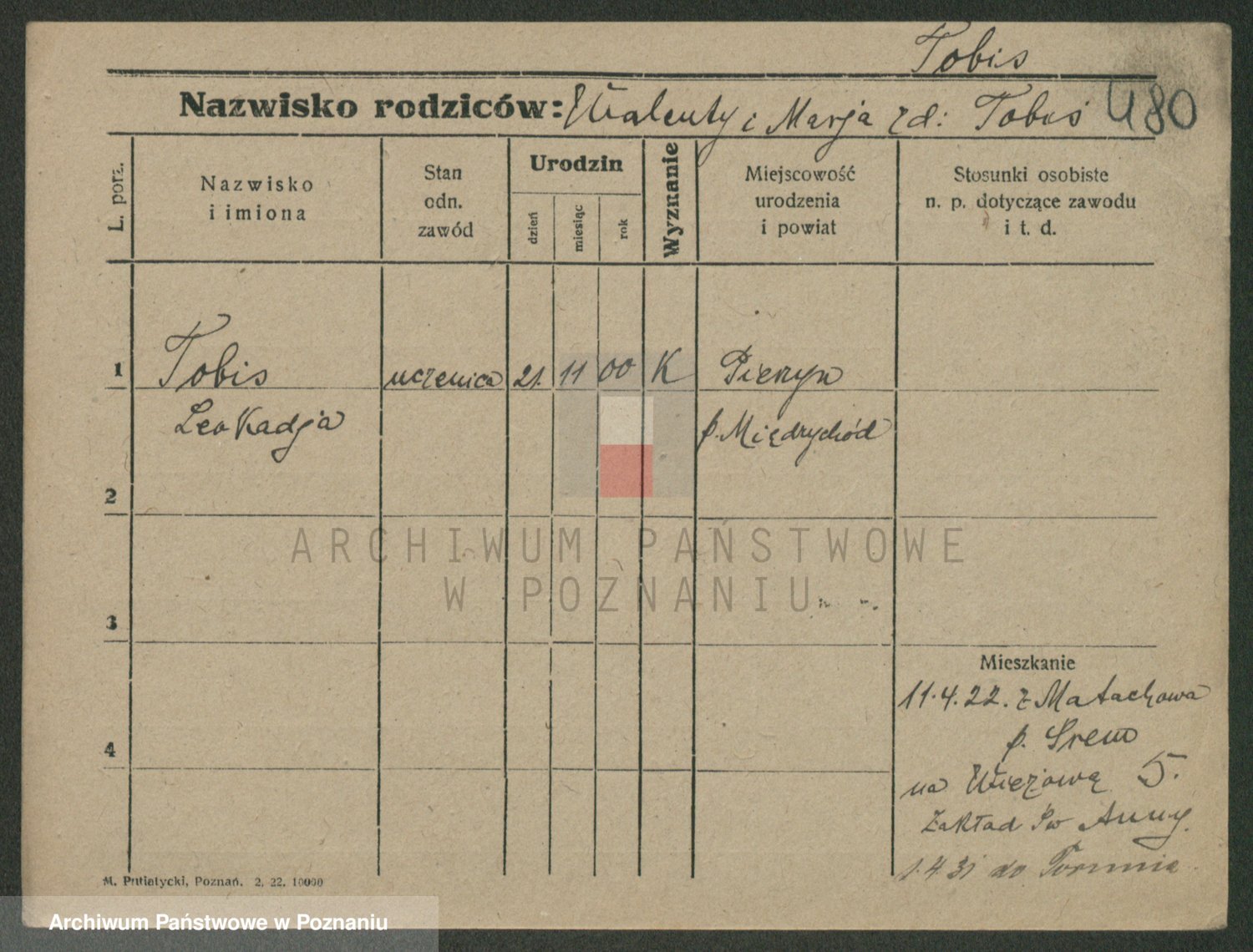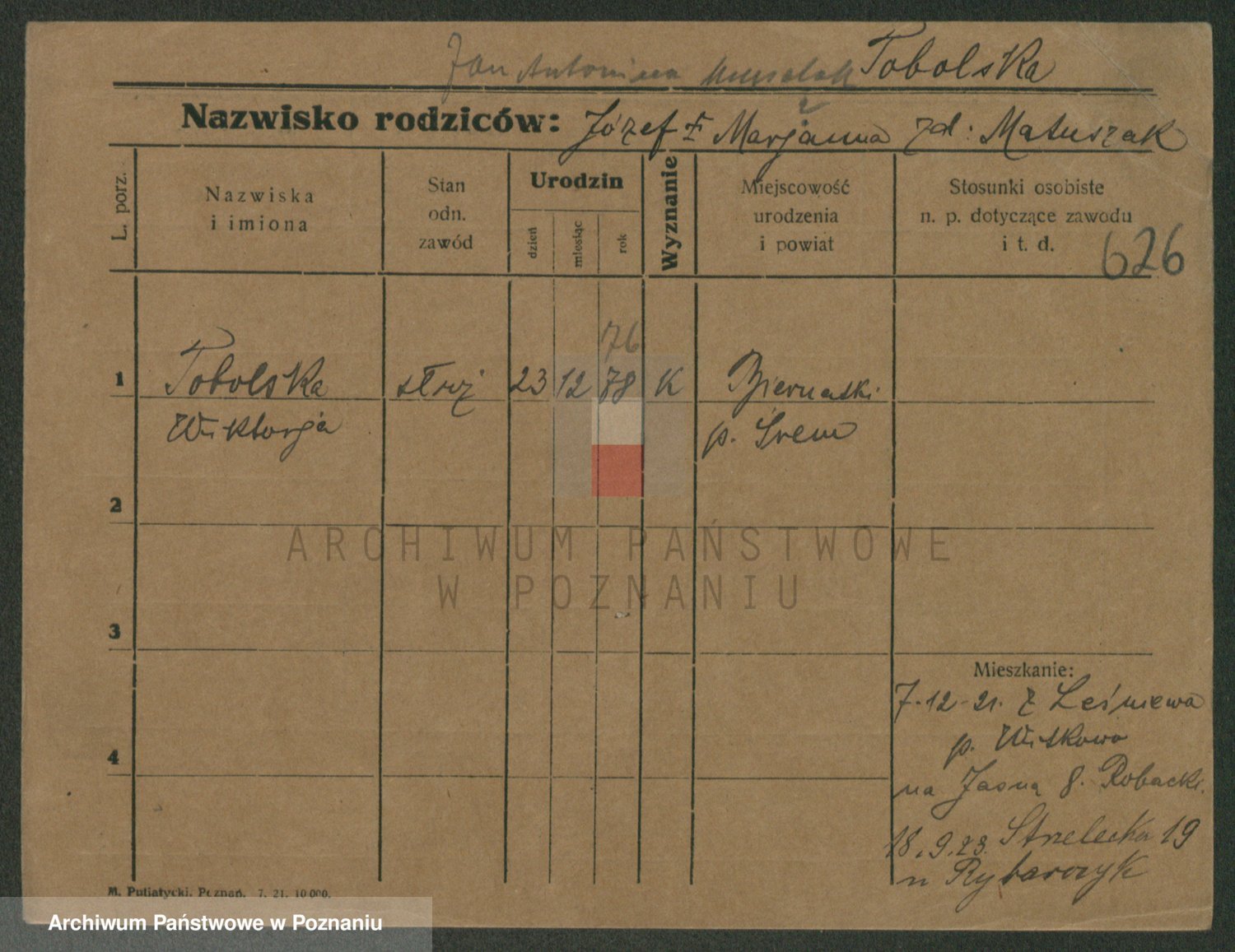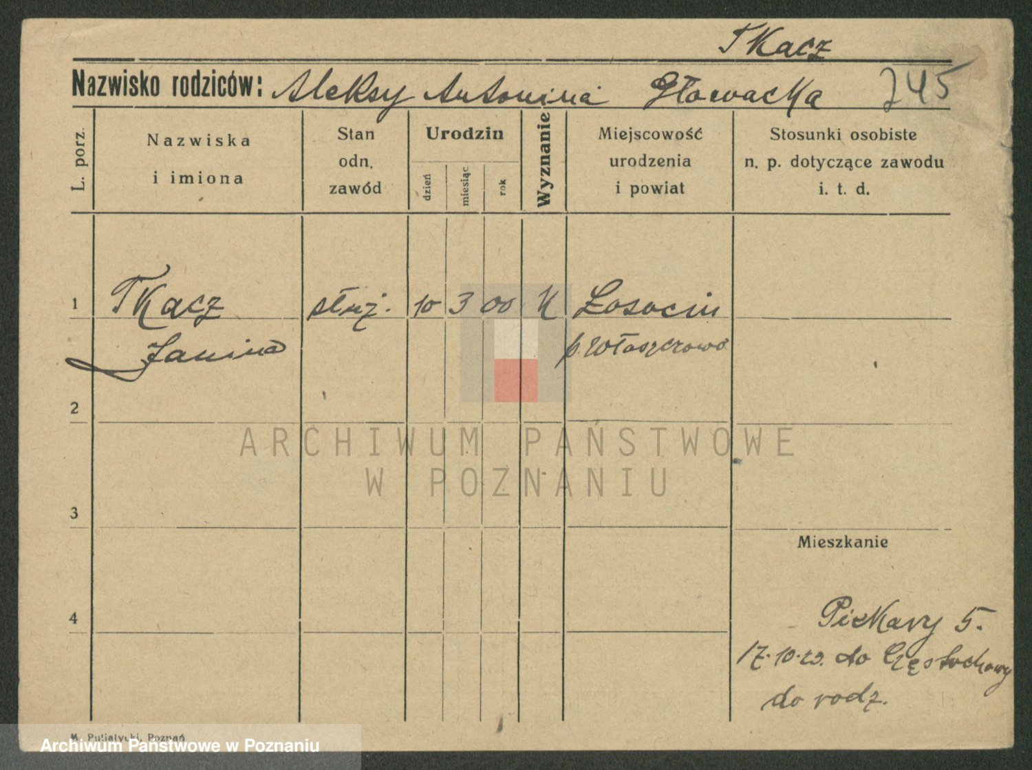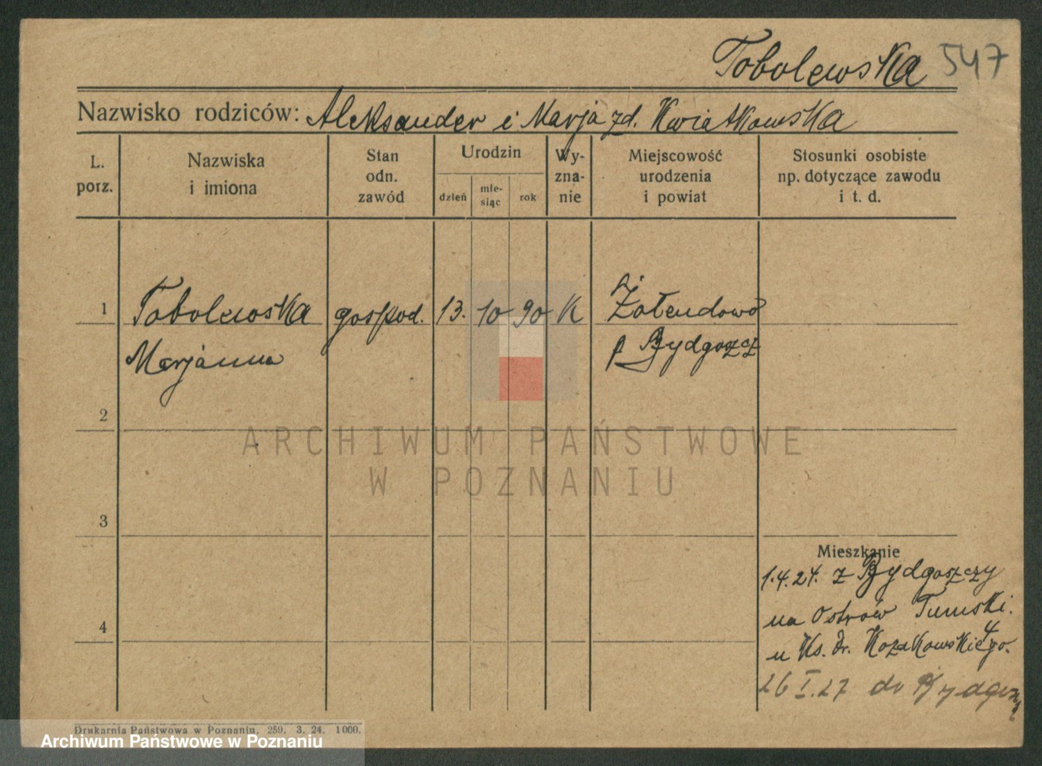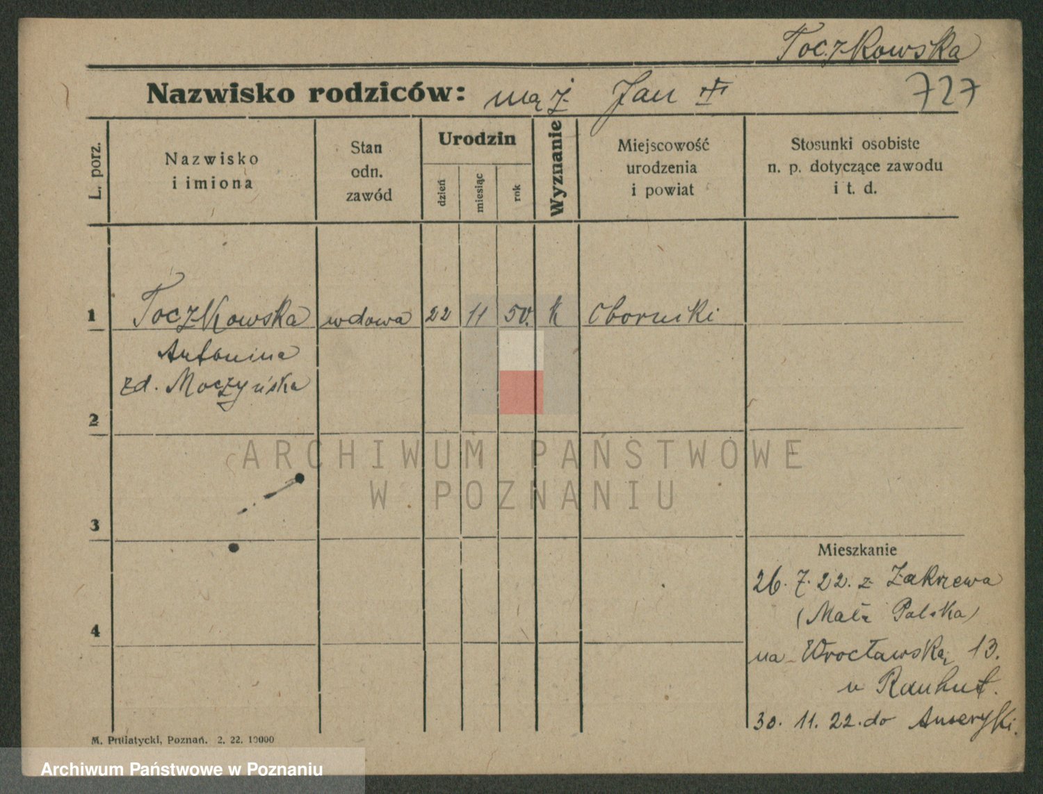 Toczkowska zd. Moczyńska, Antonina