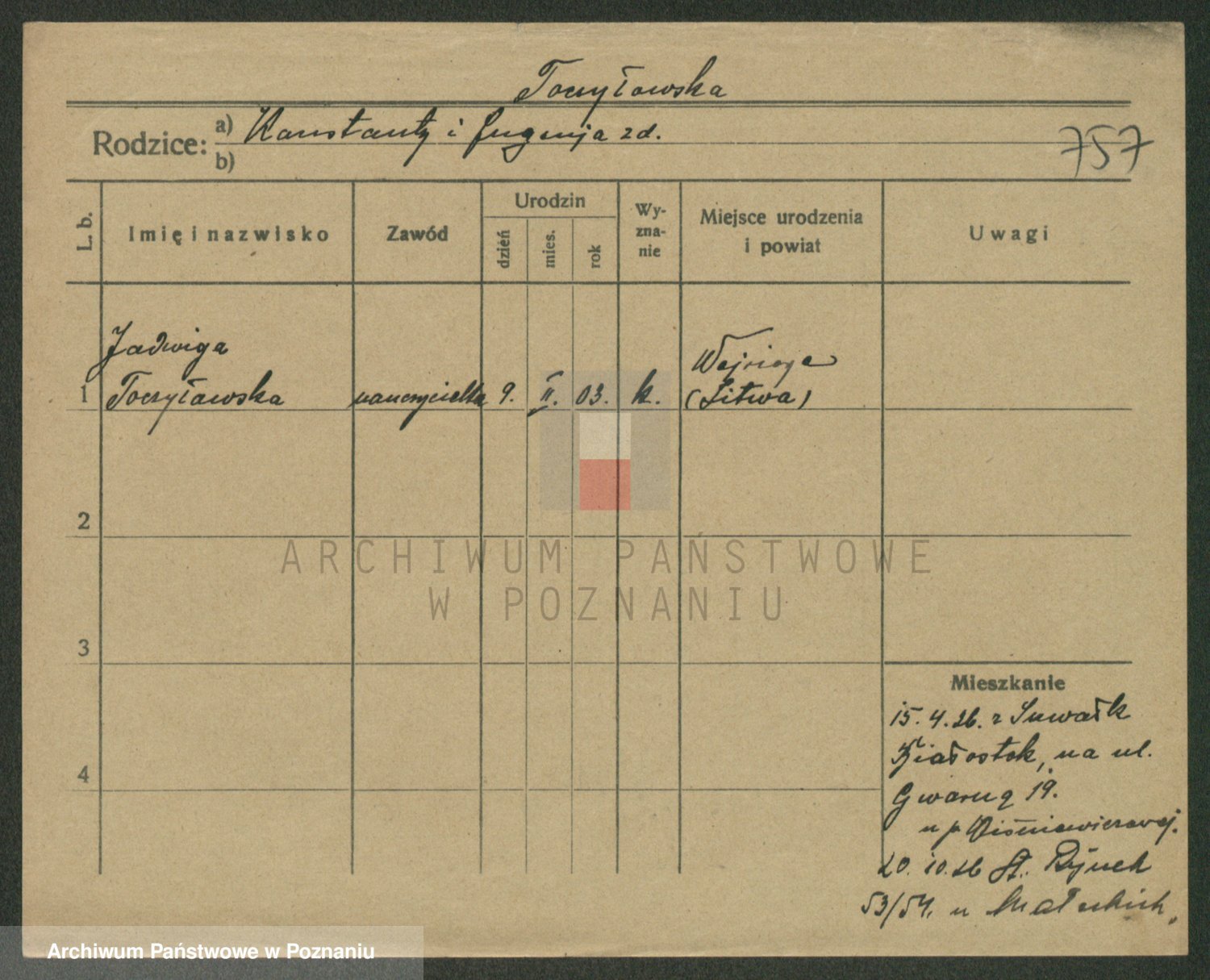 Toczkowski zd.Drochowska, Kazimiera