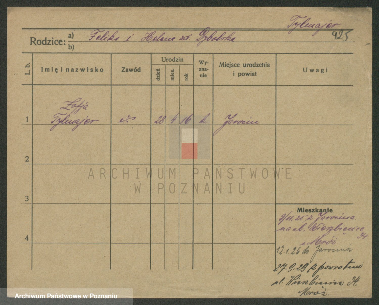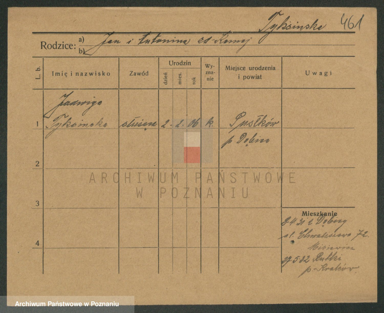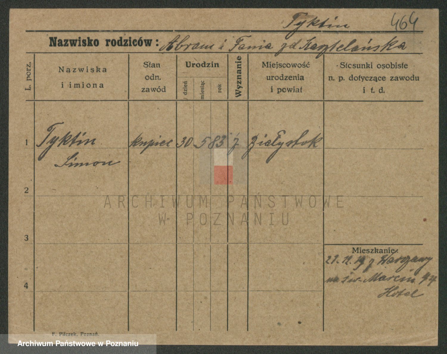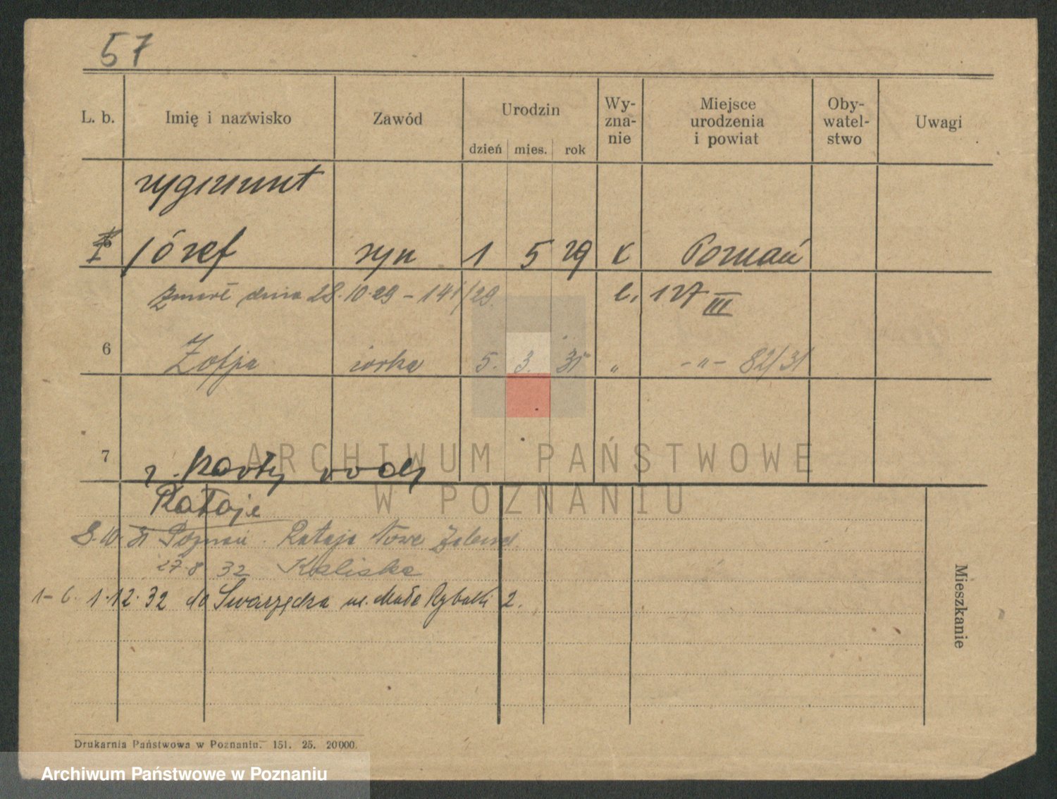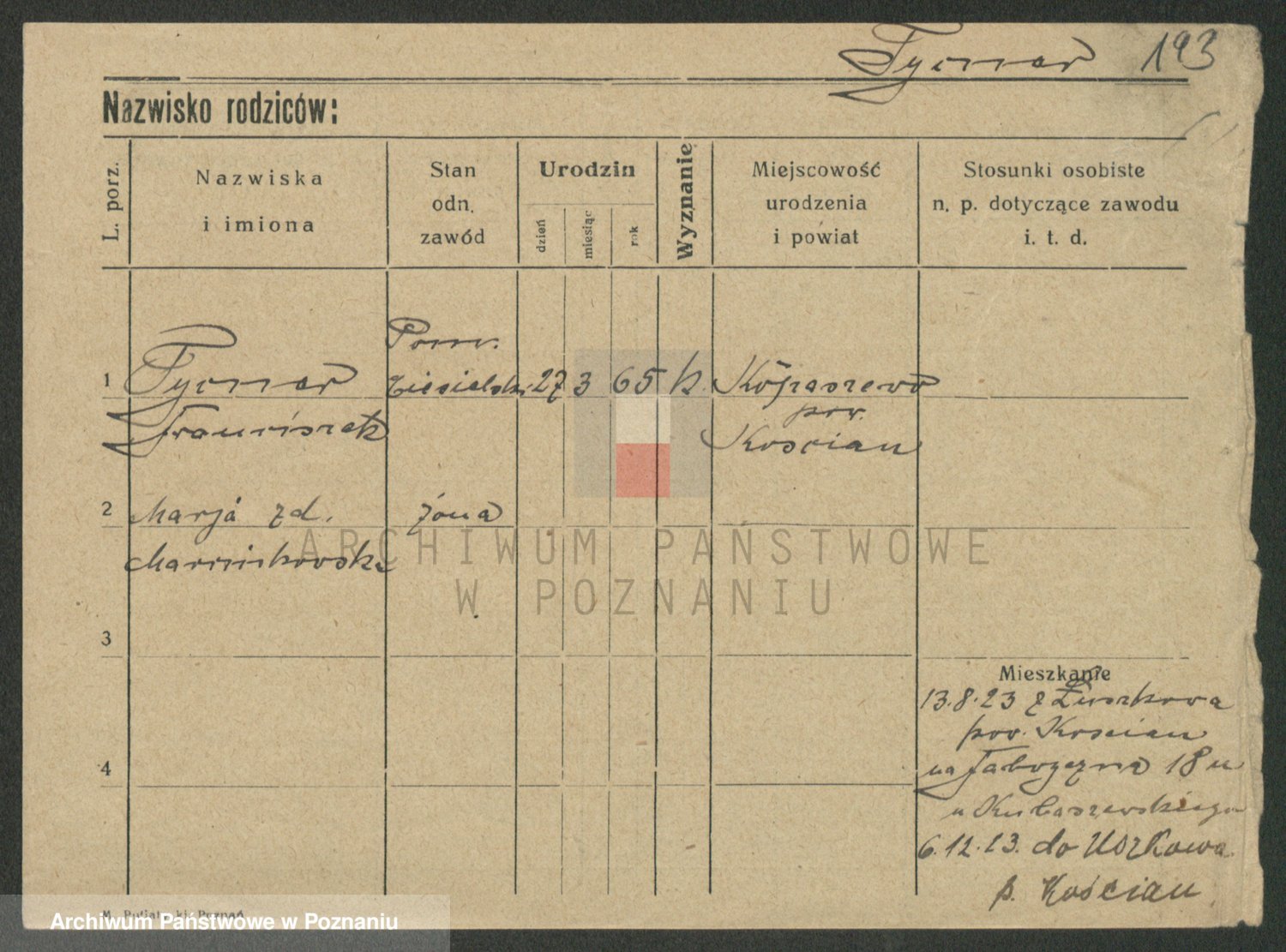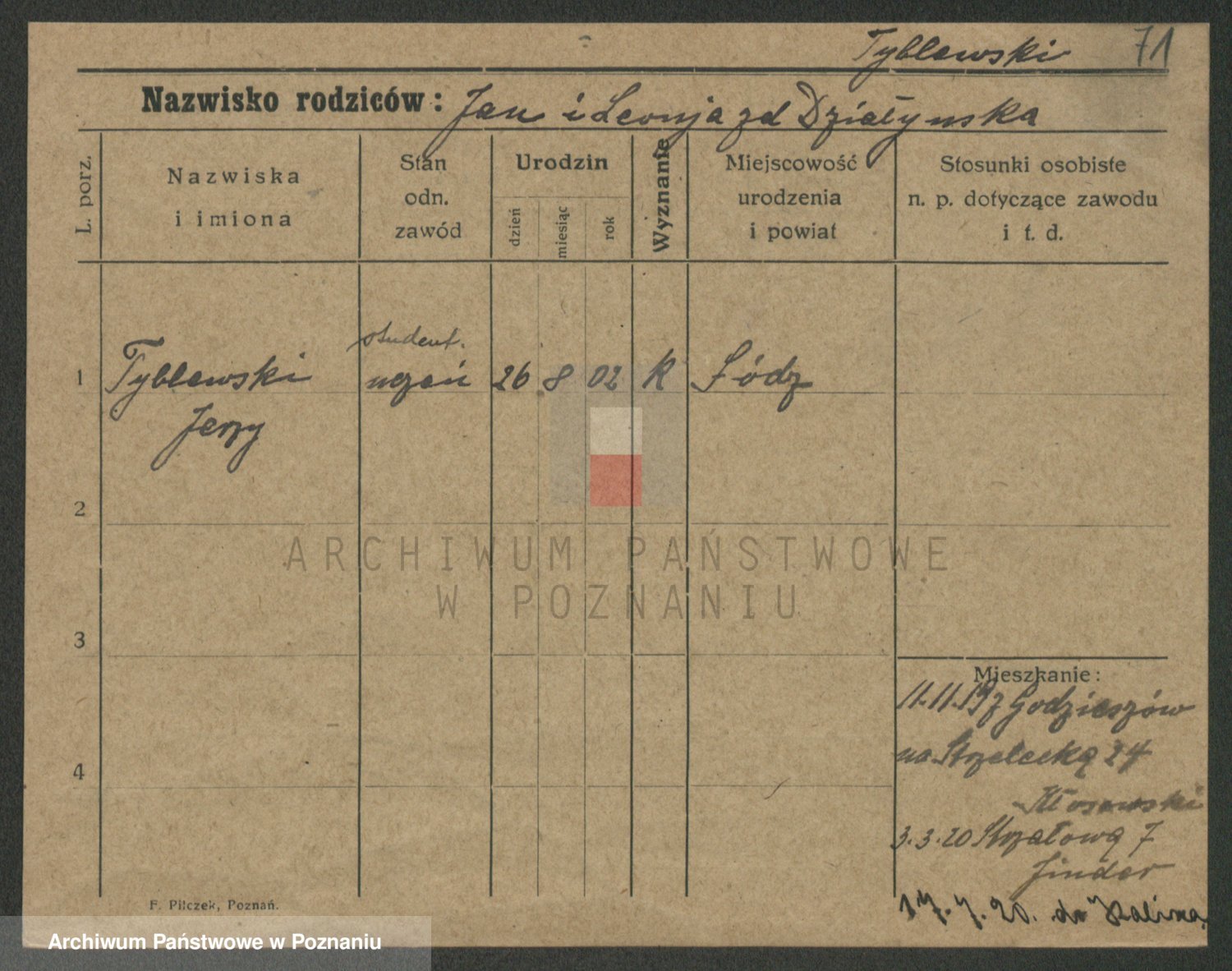Podgląd karty osobowej dostępny jest po kliknięciu na nazwisko lub ikonkę karty. Można dokonywać powiększenia (ikony na górze) lub przechodzić między kolejnymi skanami (strzałki po bokach).
