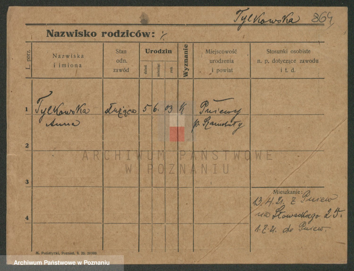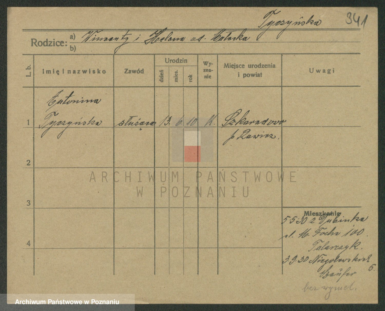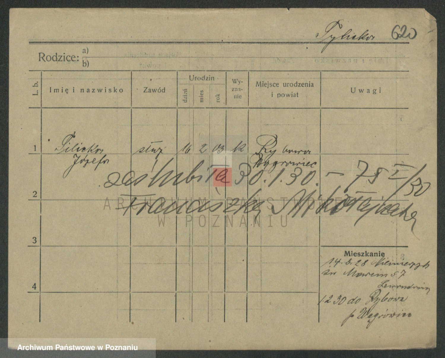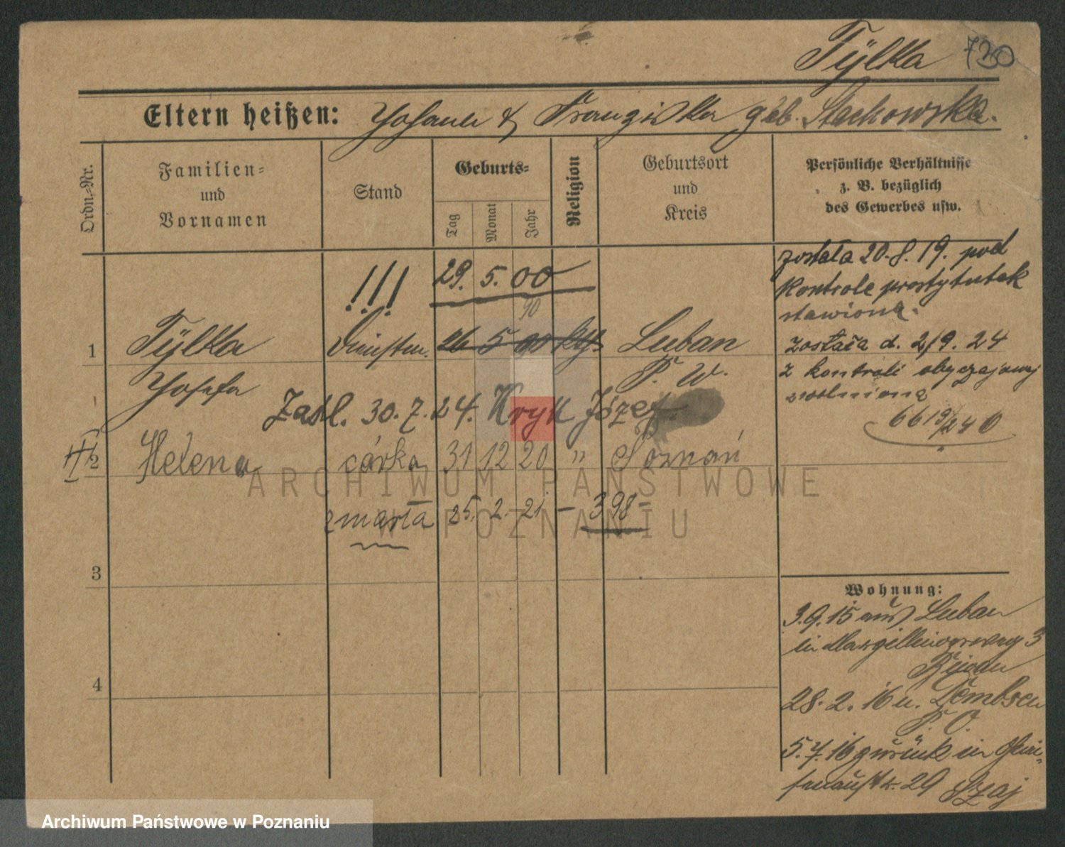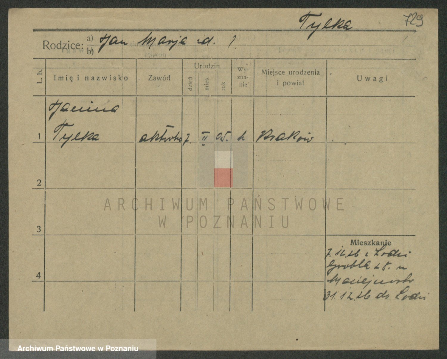 Podgląd karty osobowej dostępny jest po kliknięciu na nazwisko lub ikonkę karty. Można dokonywać powiększenia (ikony na górze) lub przechodzić między kolejnymi skanami (strzałki po bokach).