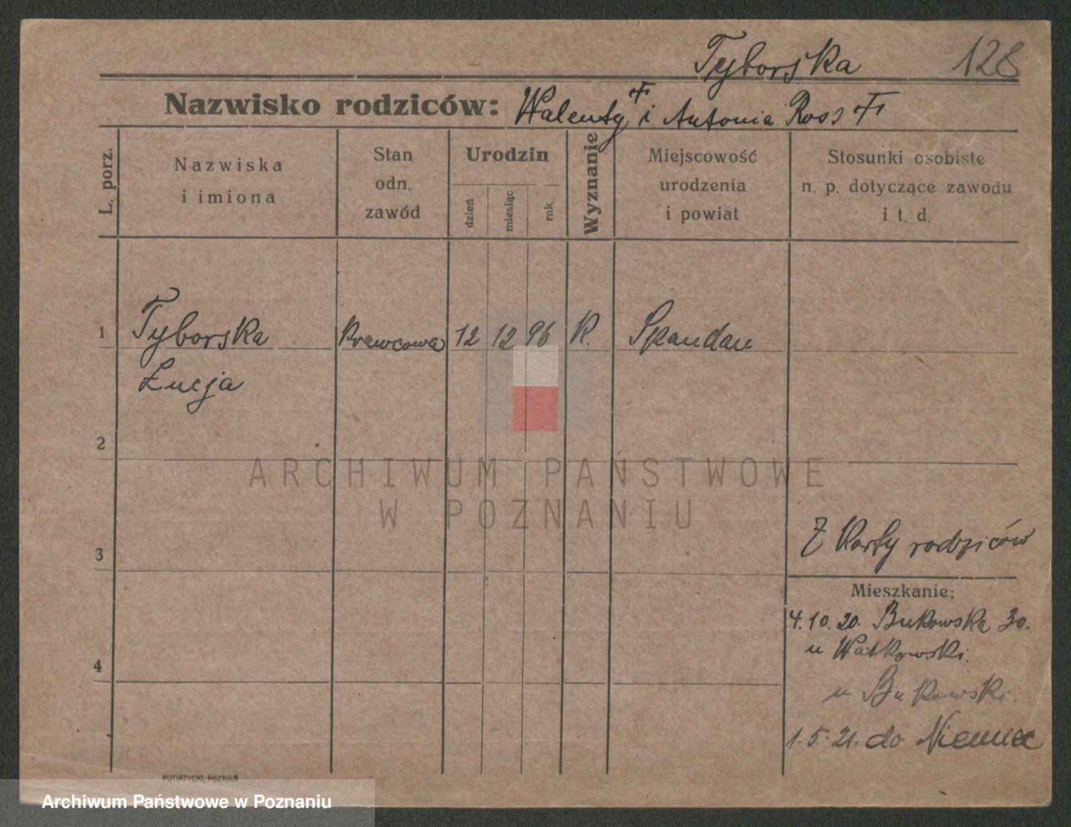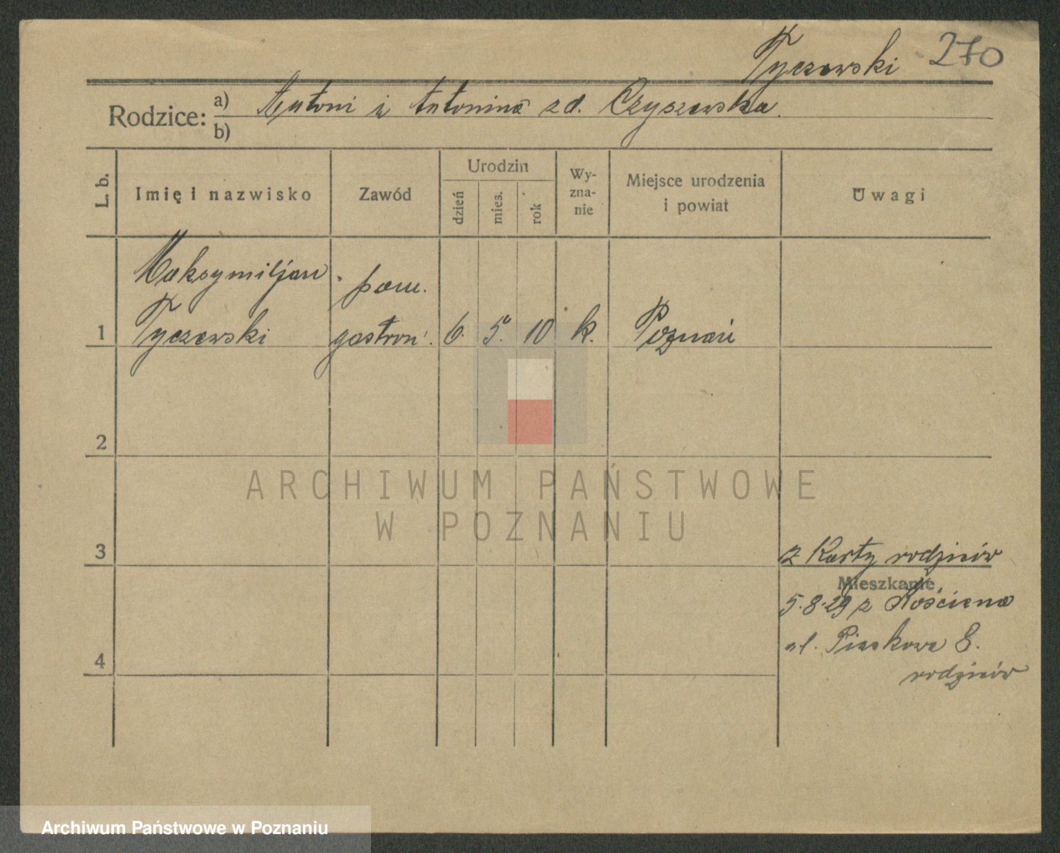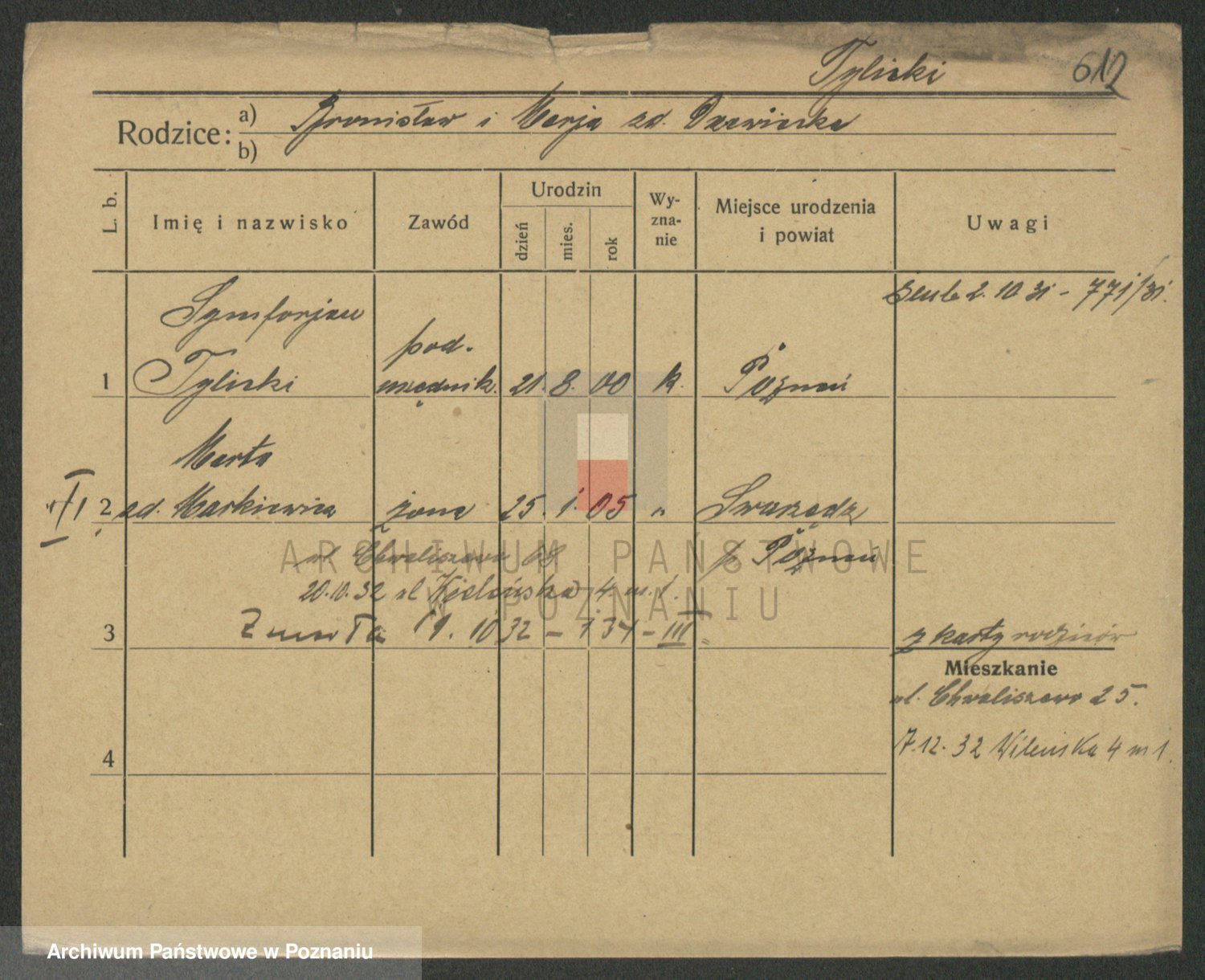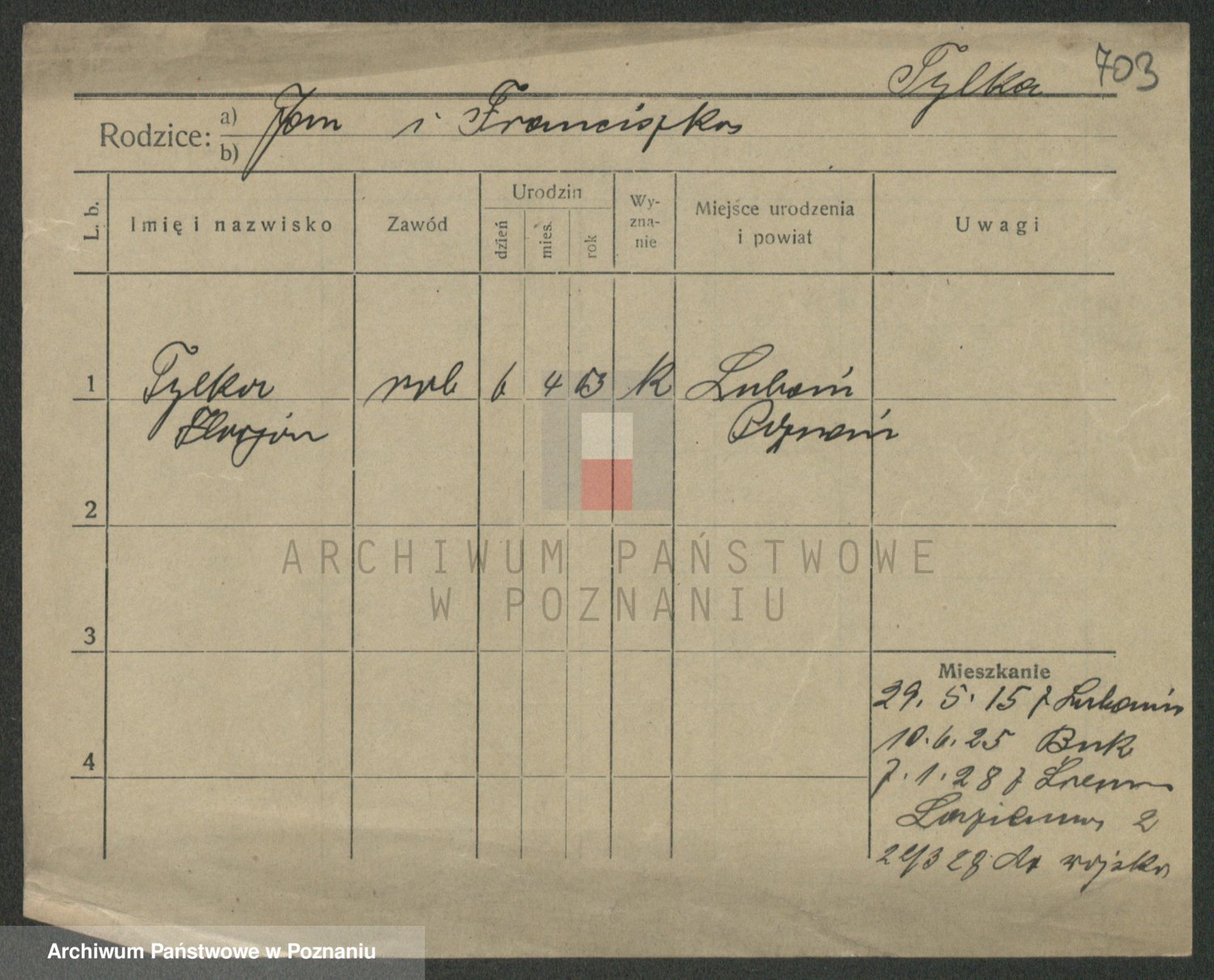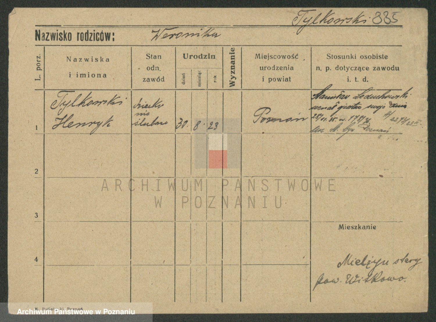 Podgląd karty osobowej dostępny jest po kliknięciu na nazwisko lub ikonkę karty. Można dokonywać powiększenia (ikony na górze) lub przechodzić między kolejnymi skanami (strzałki po bokach).