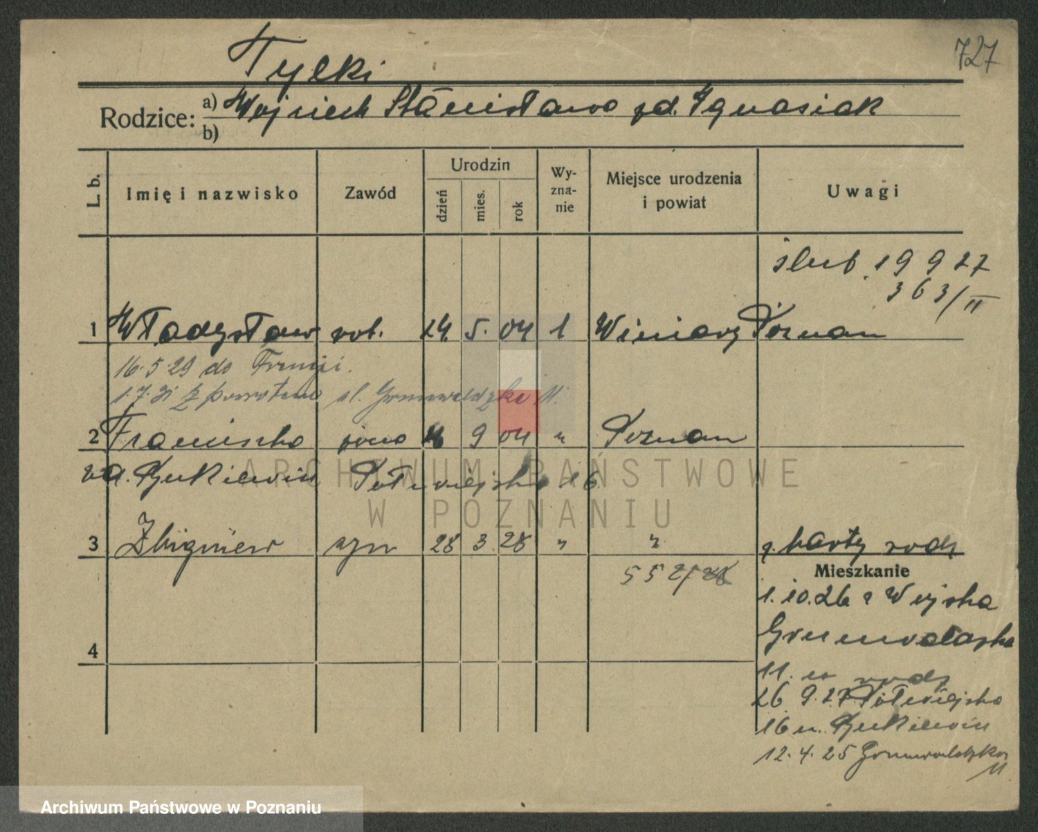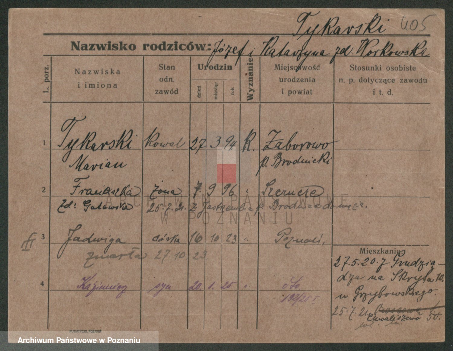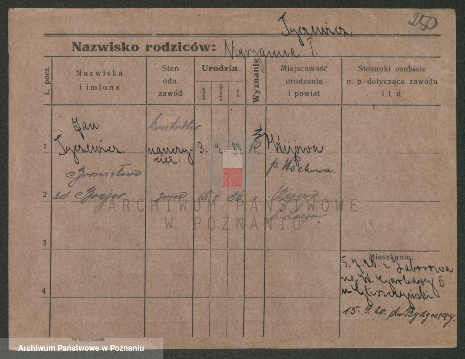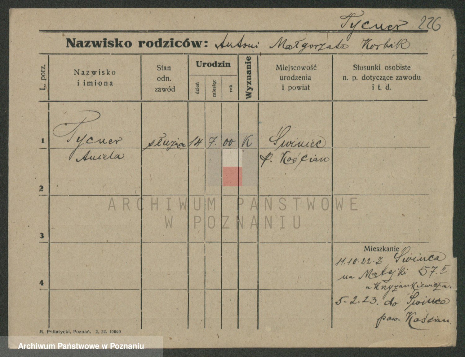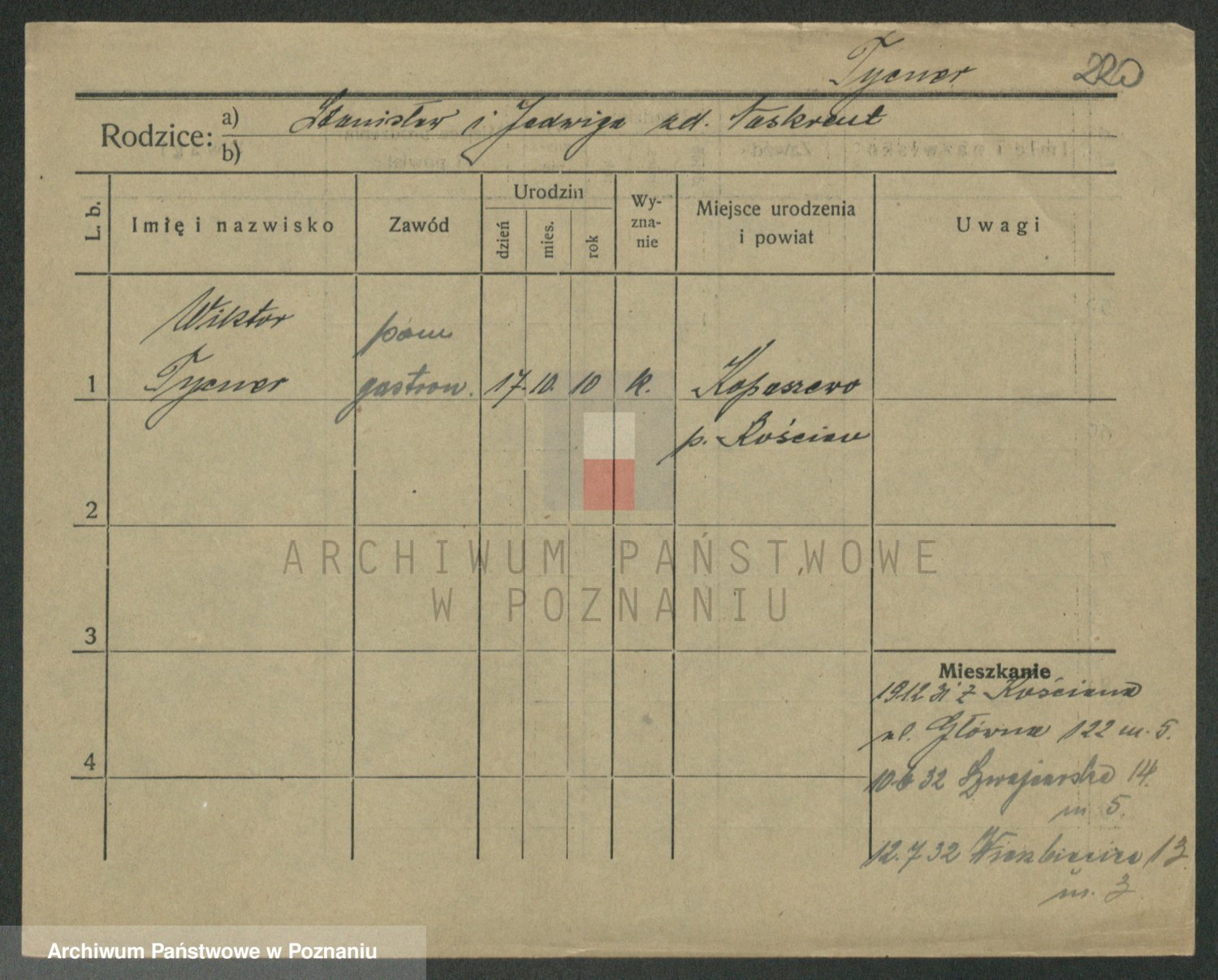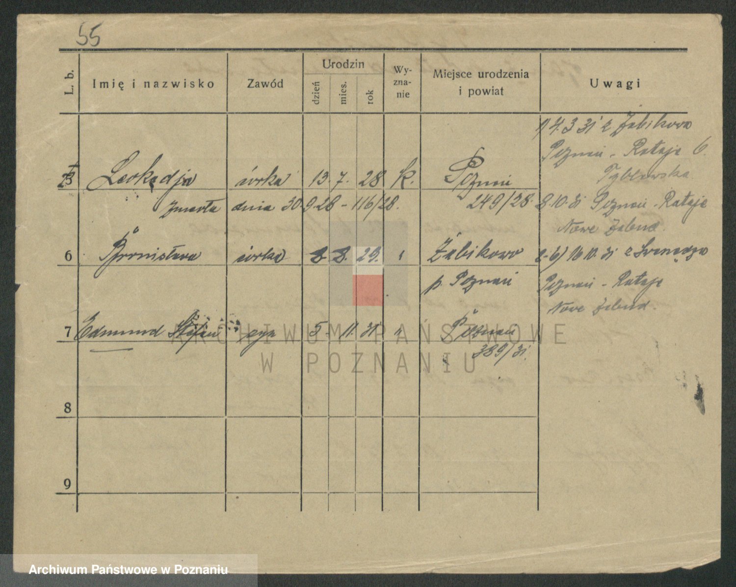 Podgląd karty osobowej dostępny jest po kliknięciu na nazwisko lub ikonkę karty. Można dokonywać powiększenia (ikony na górze) lub przechodzić między kolejnymi skanami (strzałki po bokach).