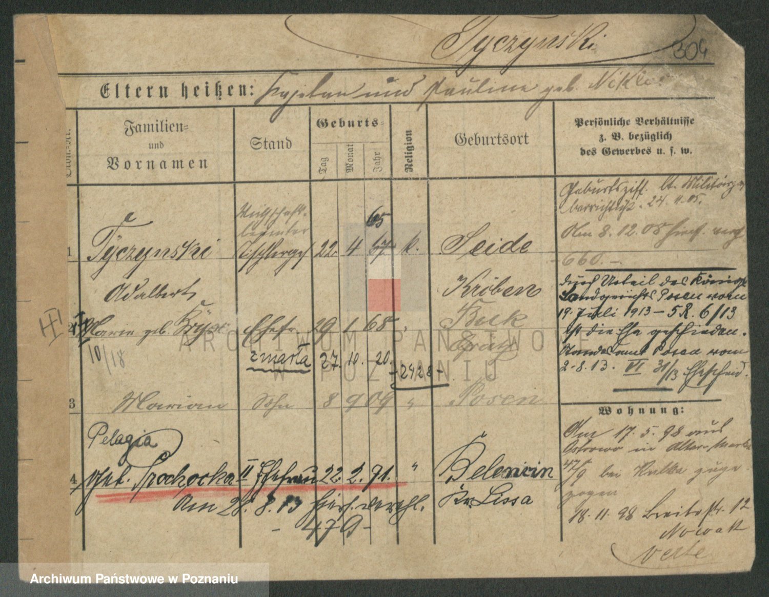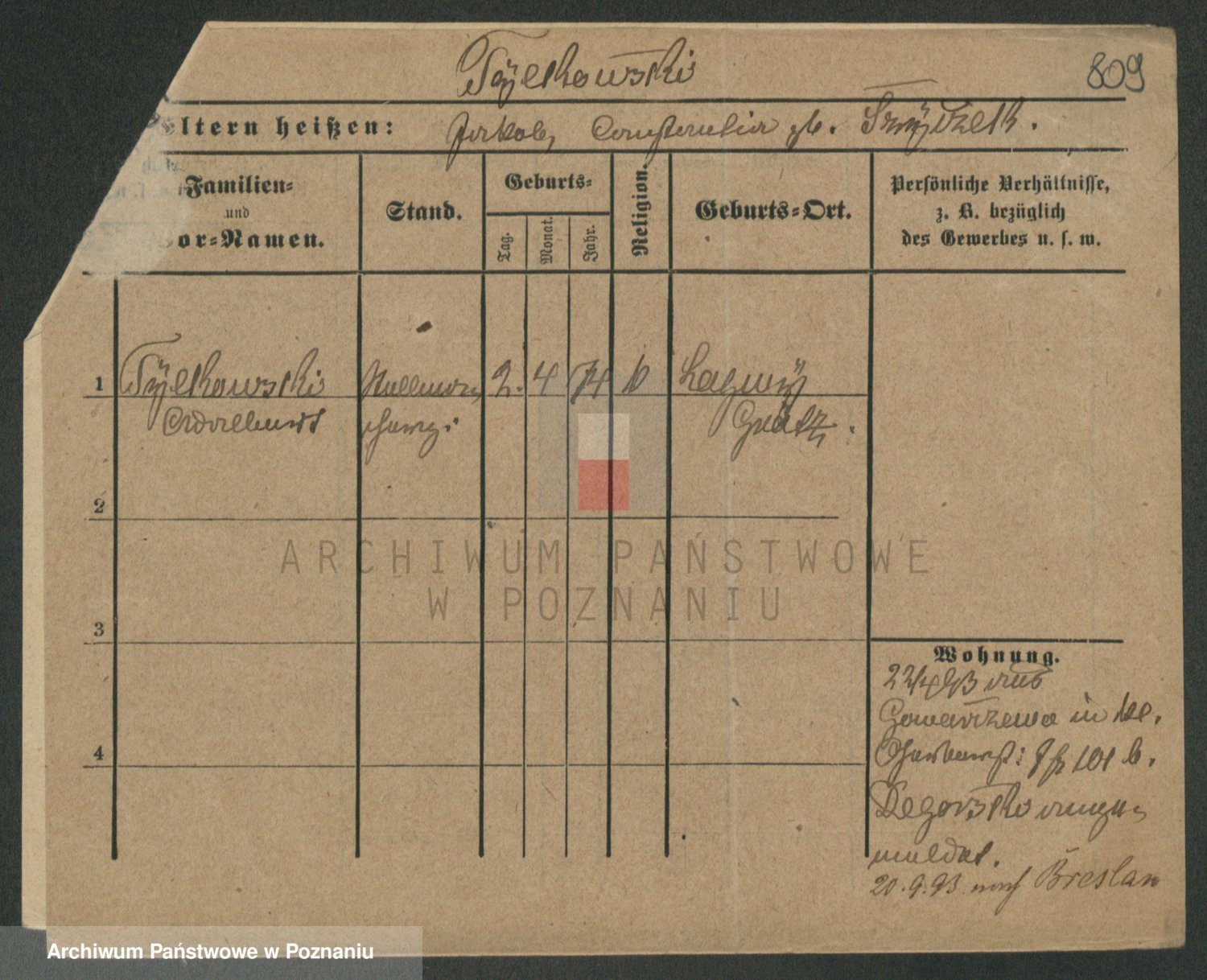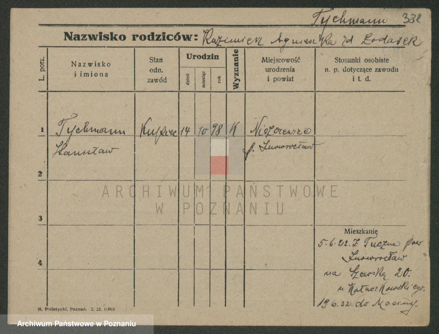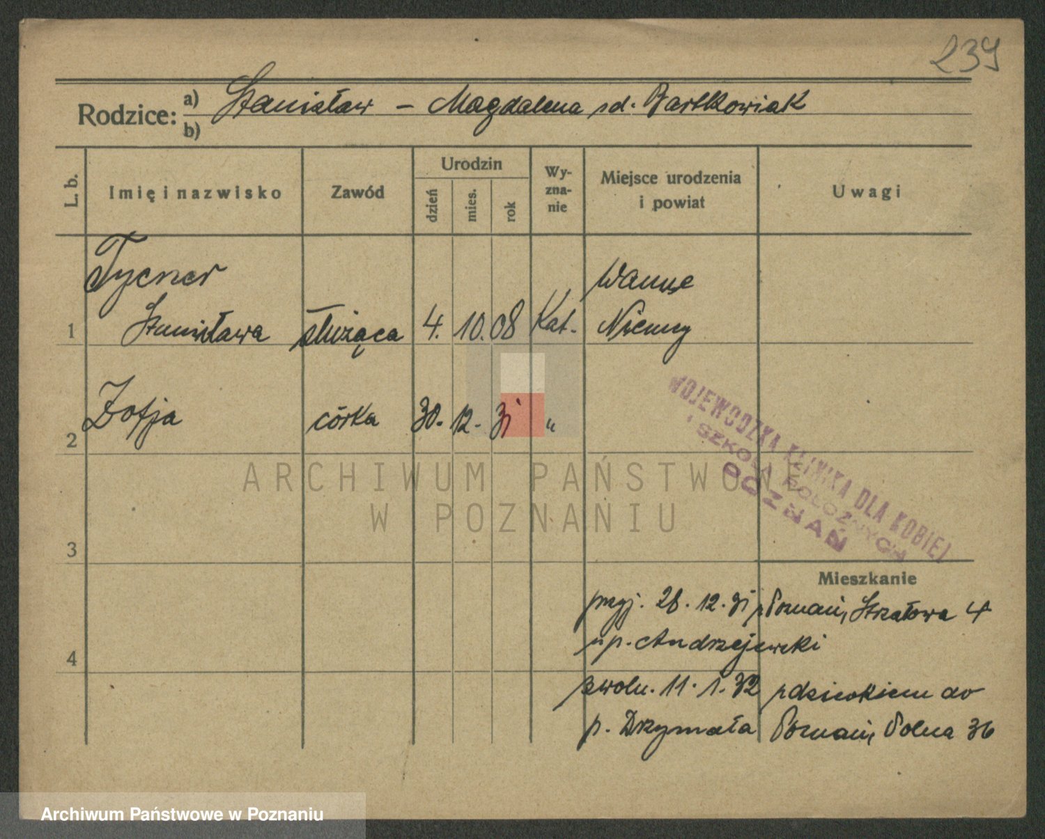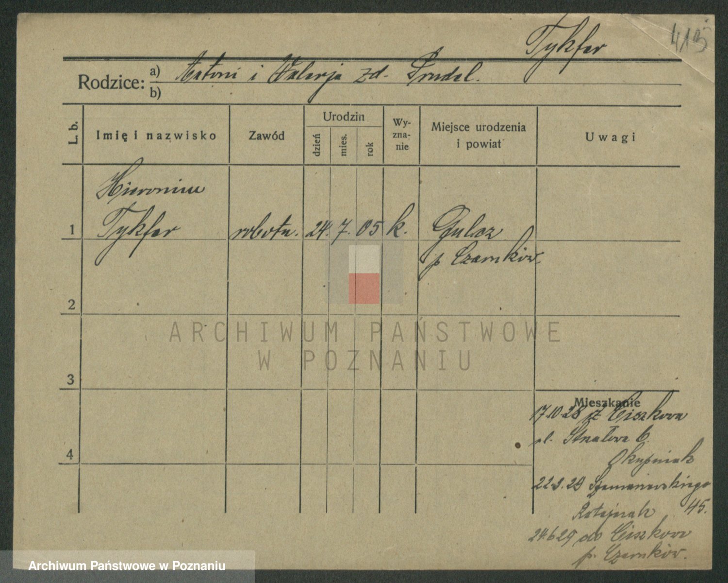 Podgląd karty osobowej dostępny jest po kliknięciu na nazwisko lub ikonkę karty. Można dokonywać powiększenia (ikony na górze) lub przechodzić między kolejnymi skanami (strzałki po bokach).