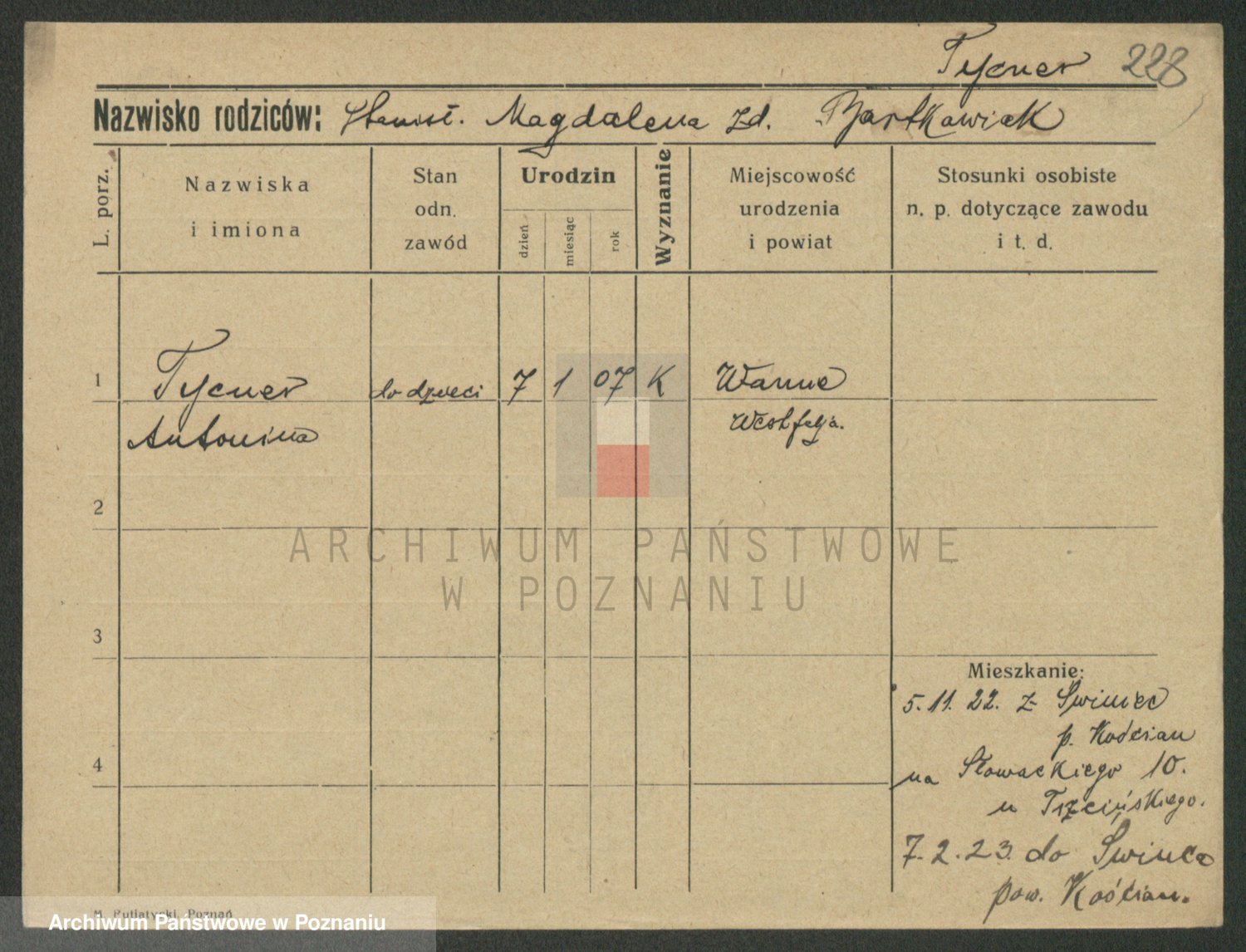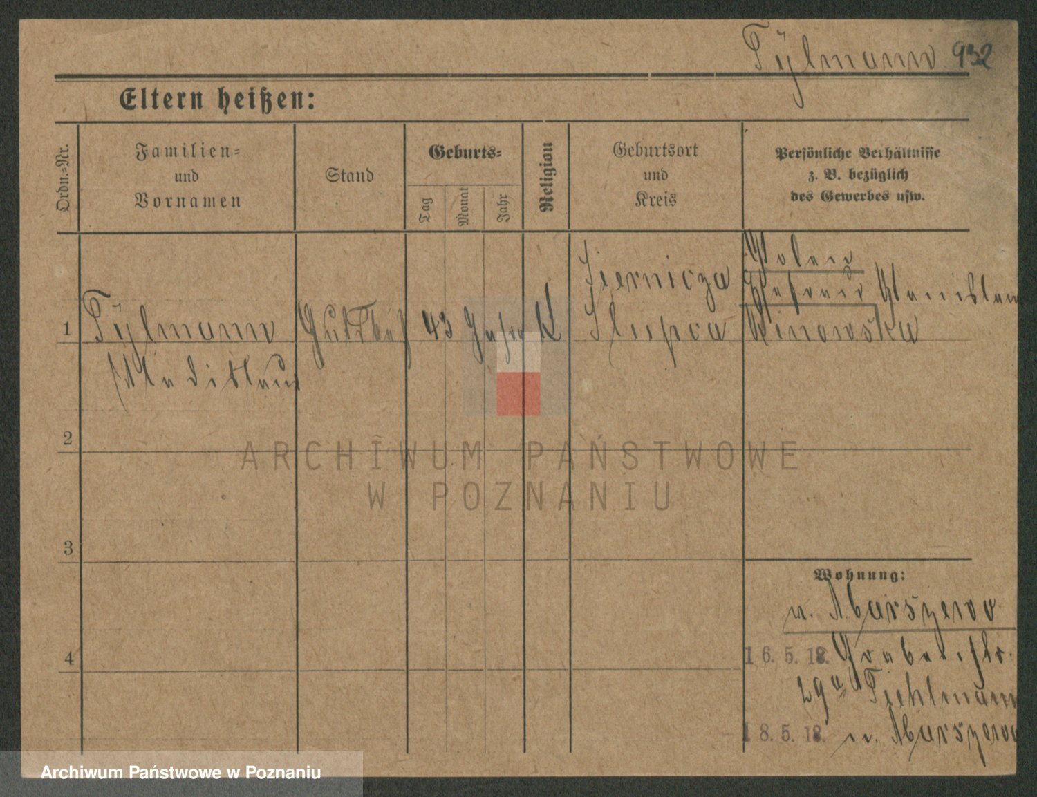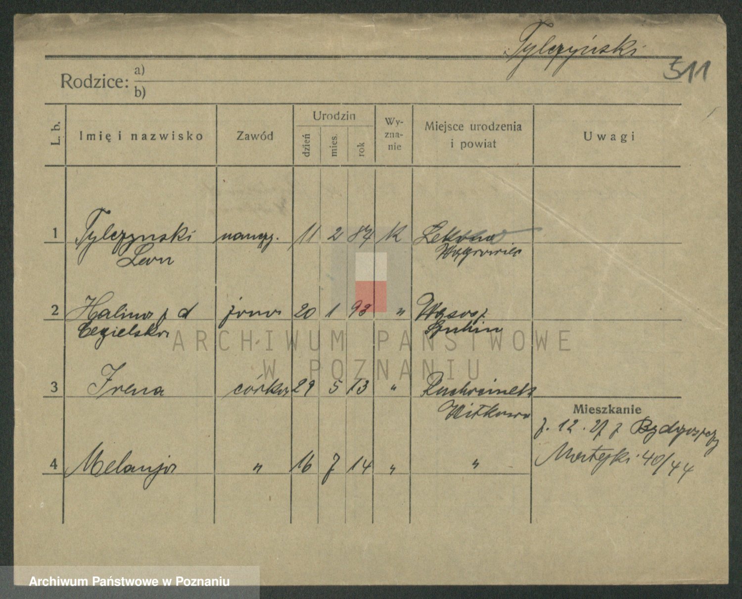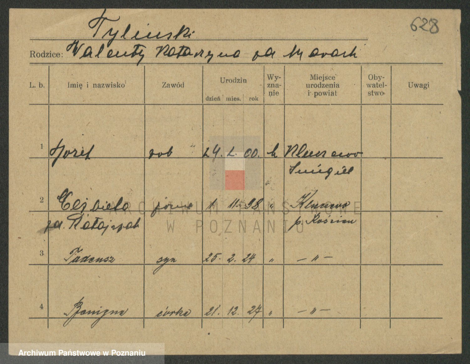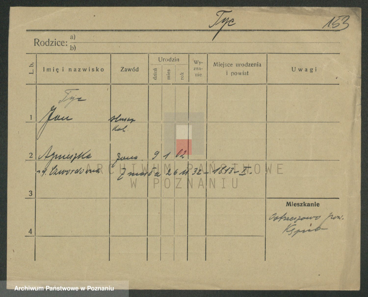Podgląd karty osobowej dostępny jest po kliknięciu na nazwisko lub ikonkę karty. Można dokonywać powiększenia (ikony na górze) lub przechodzić między kolejnymi skanami (strzałki po bokach).