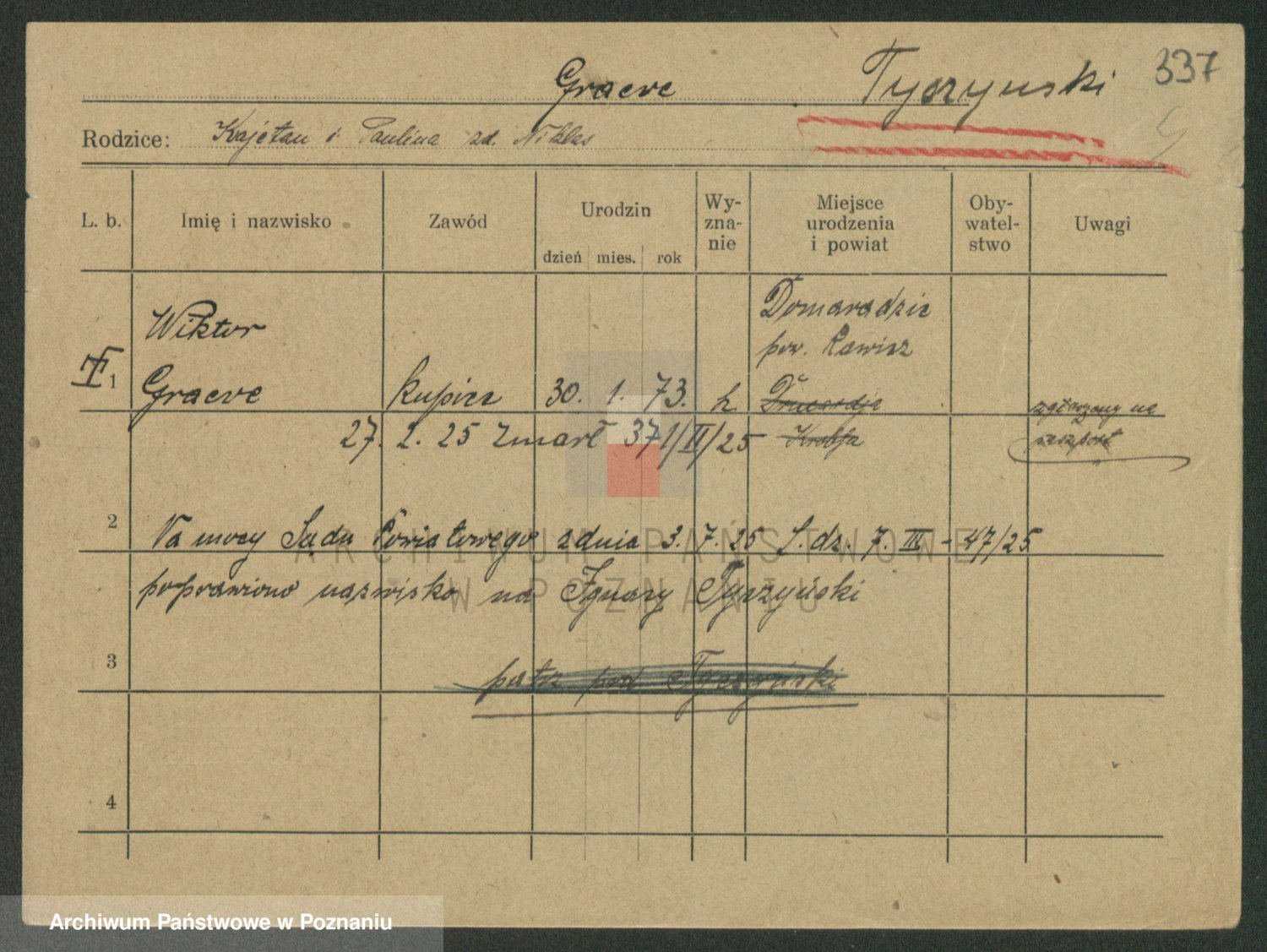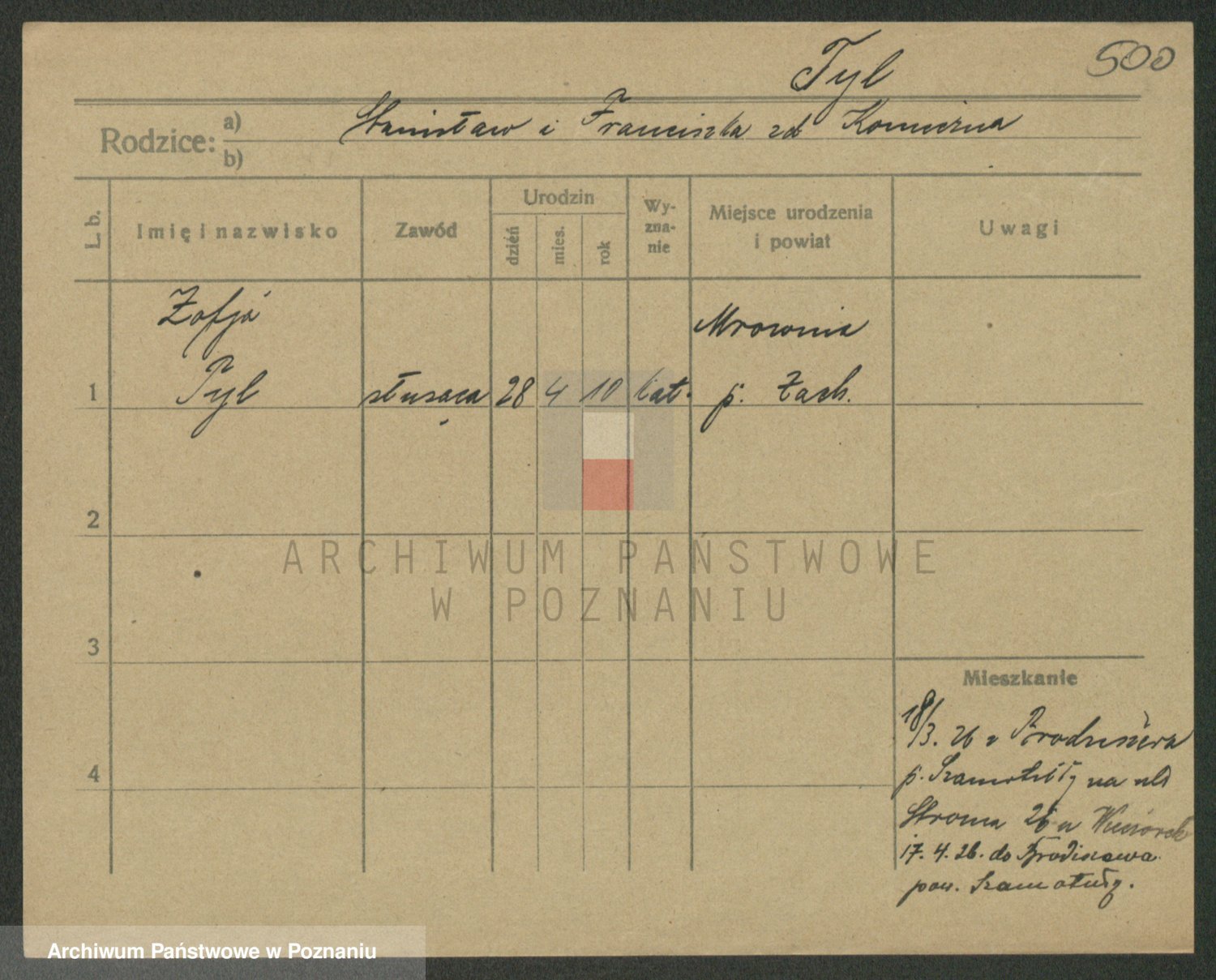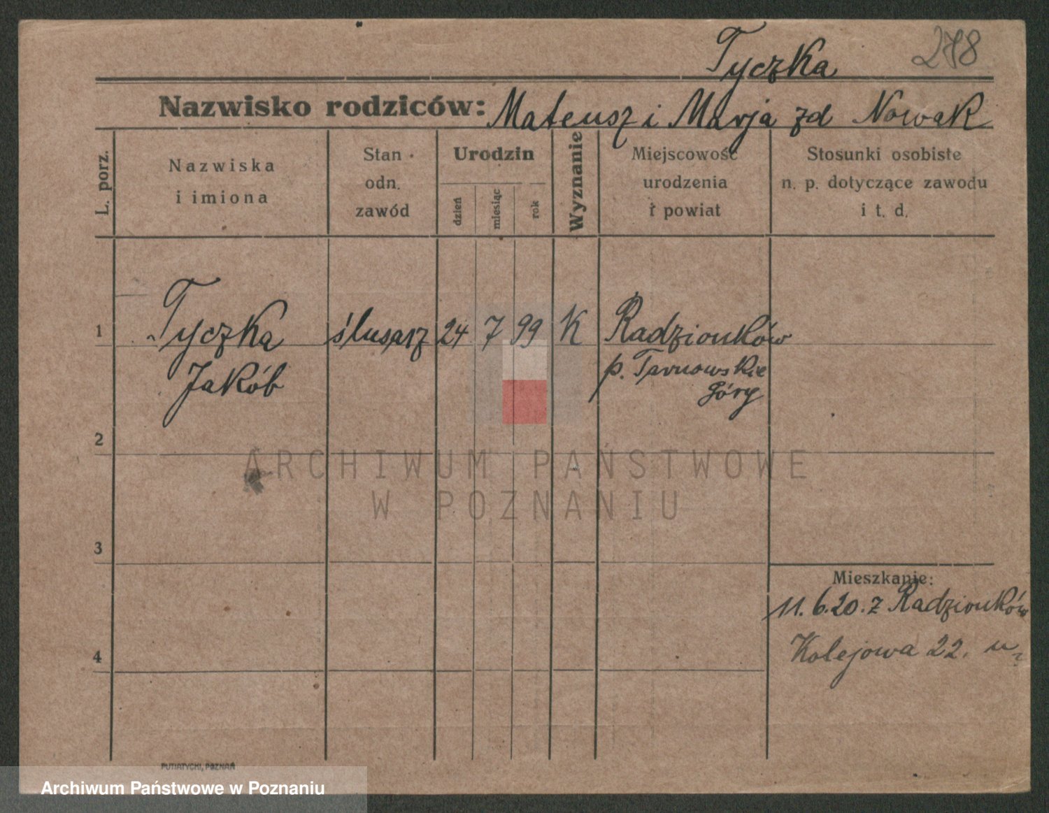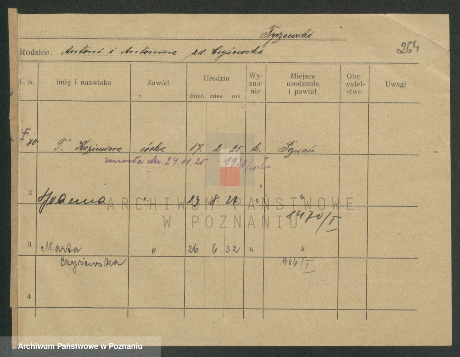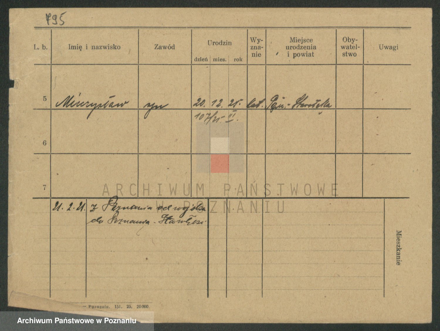 Podgląd karty osobowej dostępny jest po kliknięciu na nazwisko lub ikonkę karty. Można dokonywać powiększenia (ikony na górze) lub przechodzić między kolejnymi skanami (strzałki po bokach).