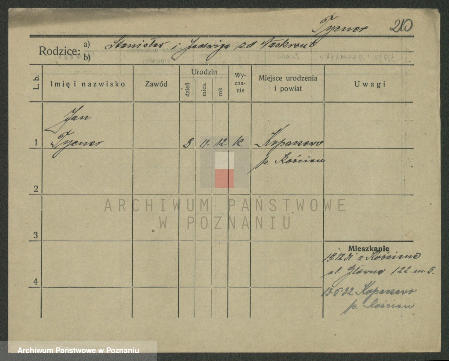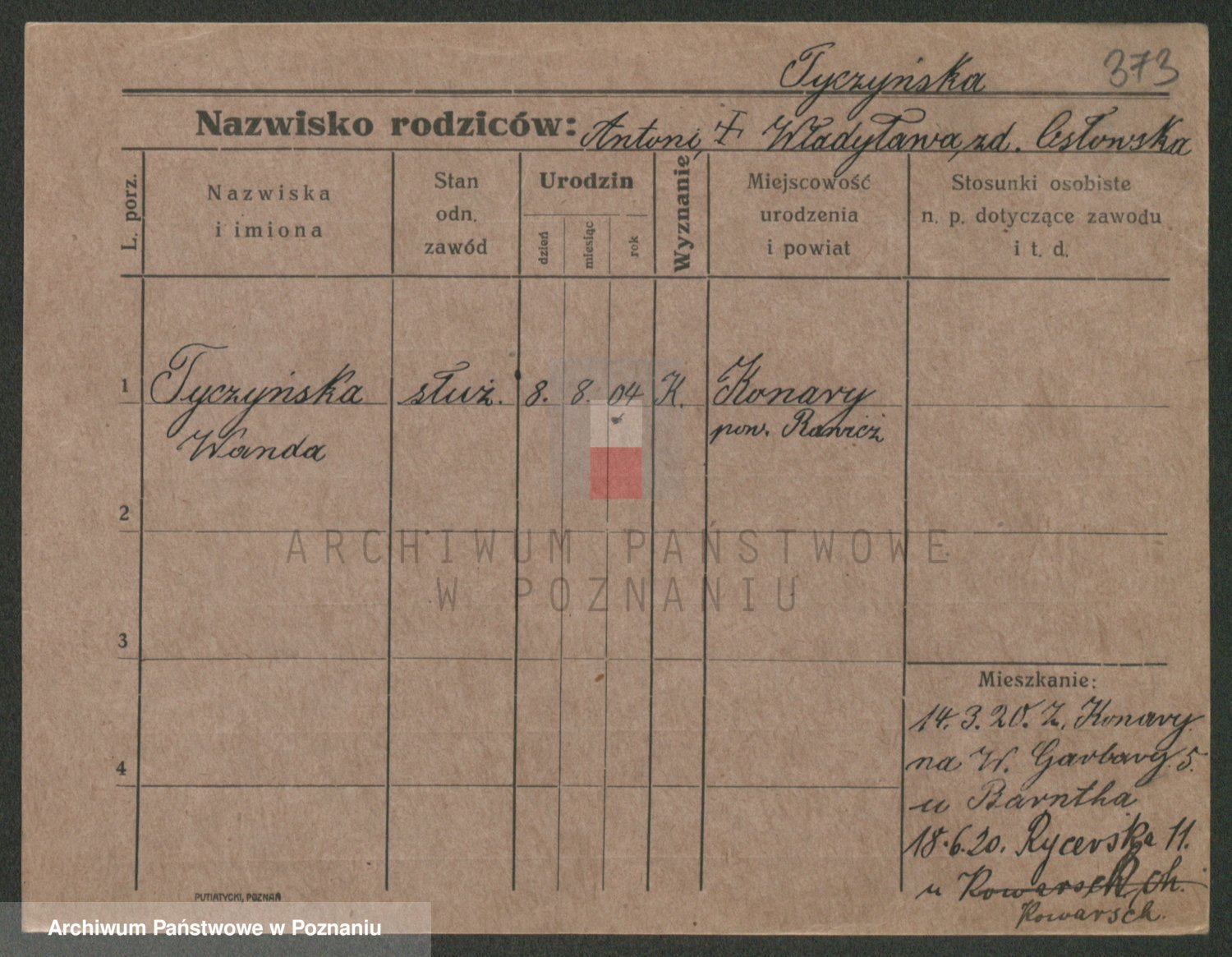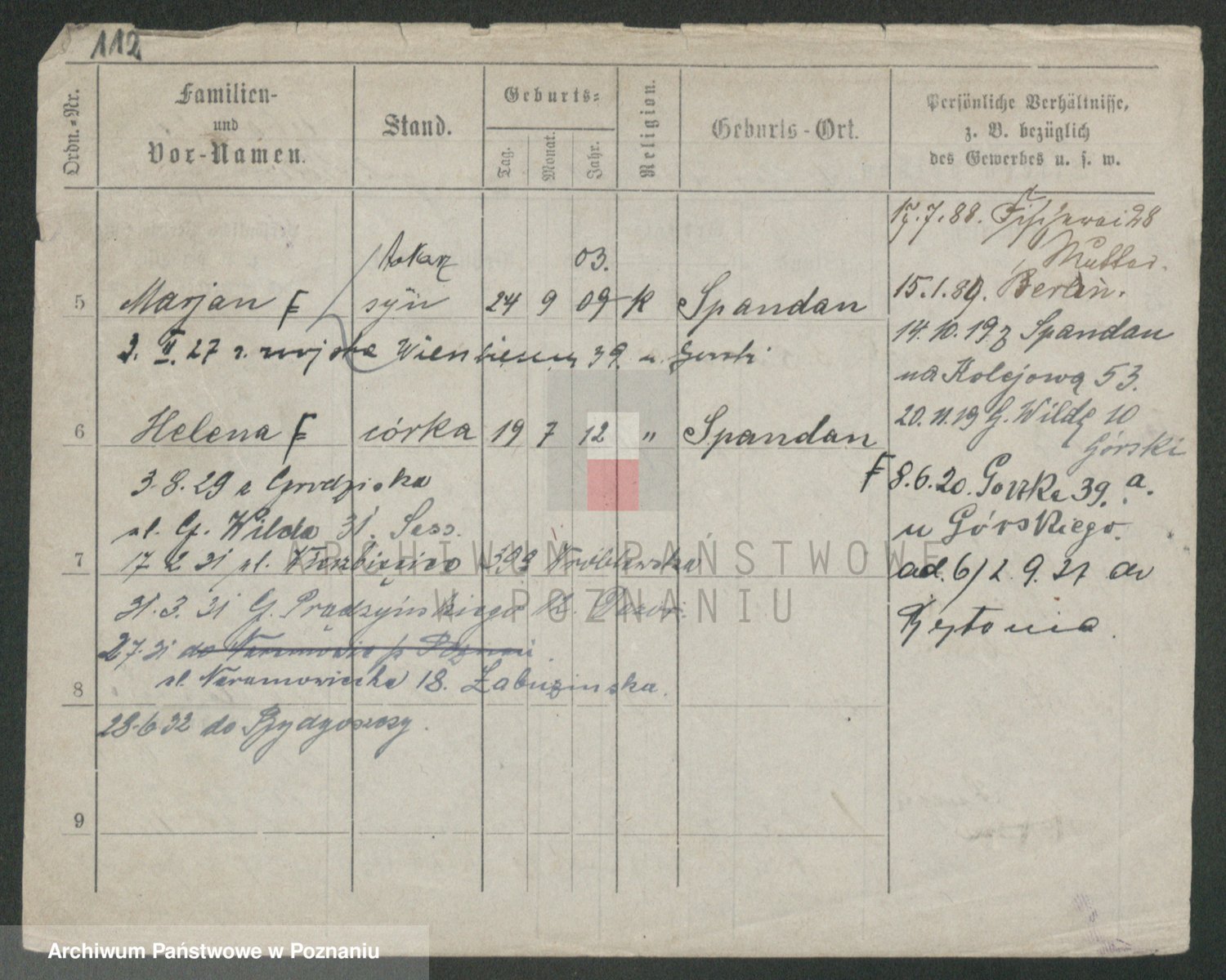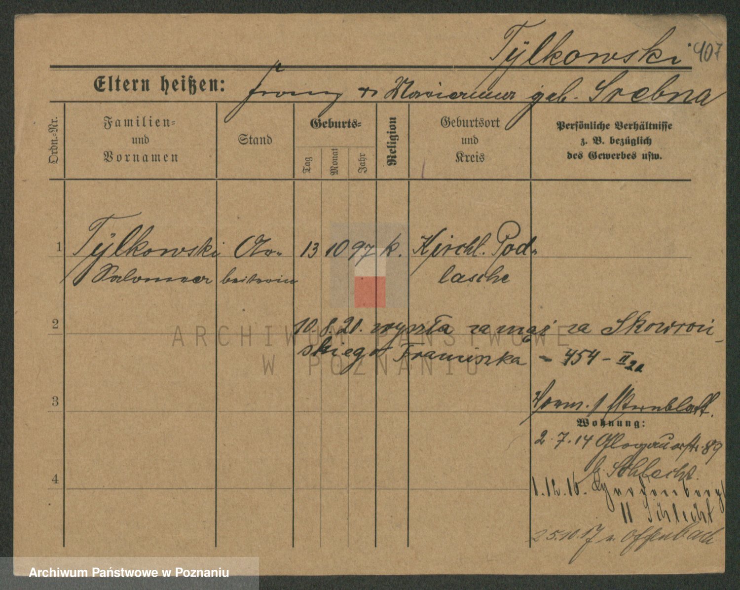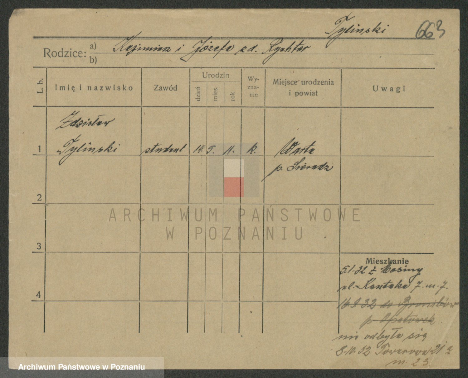 Podgląd karty osobowej dostępny jest po kliknięciu na nazwisko lub ikonkę karty. Można dokonywać powiększenia (ikony na górze) lub przechodzić między kolejnymi skanami (strzałki po bokach).