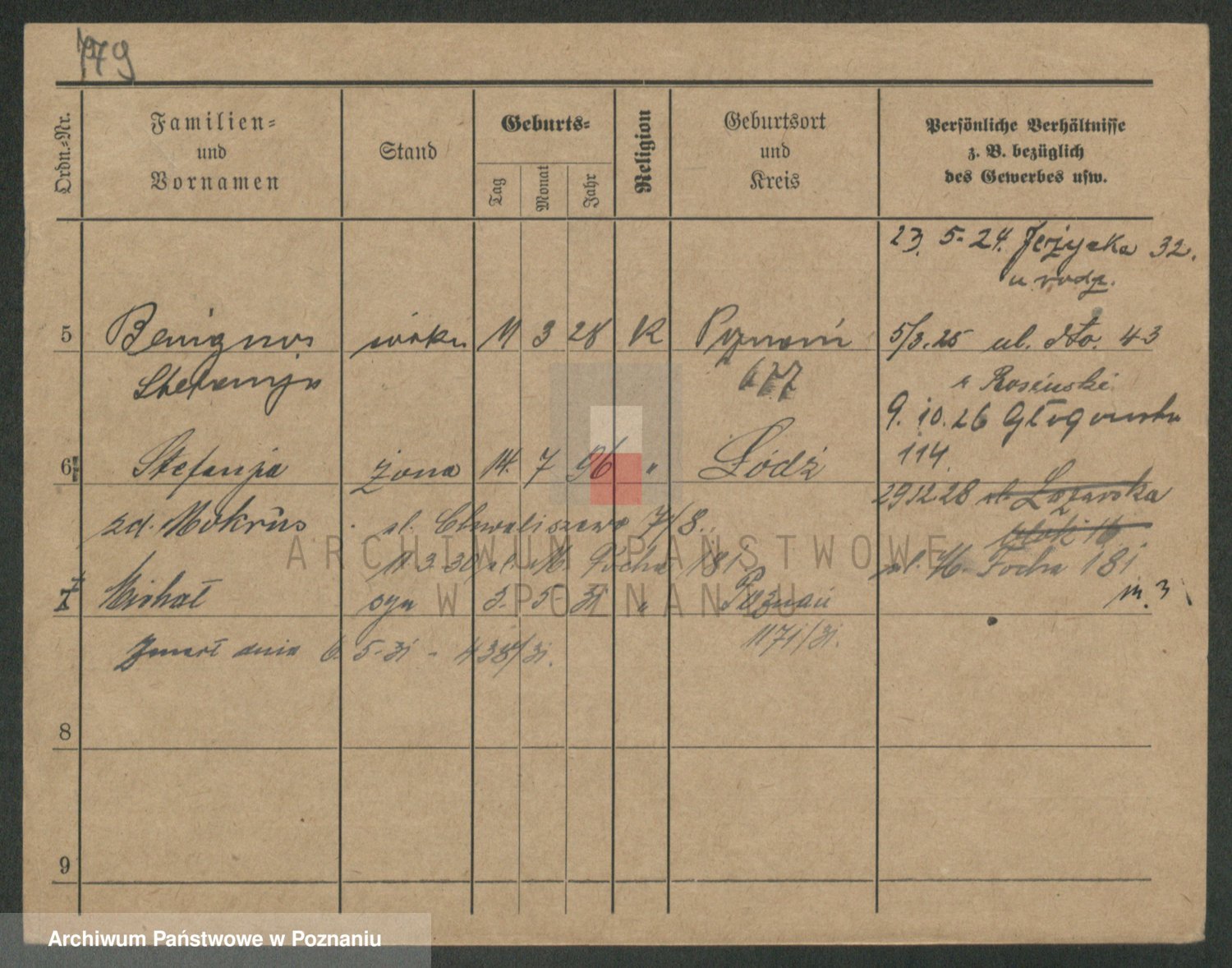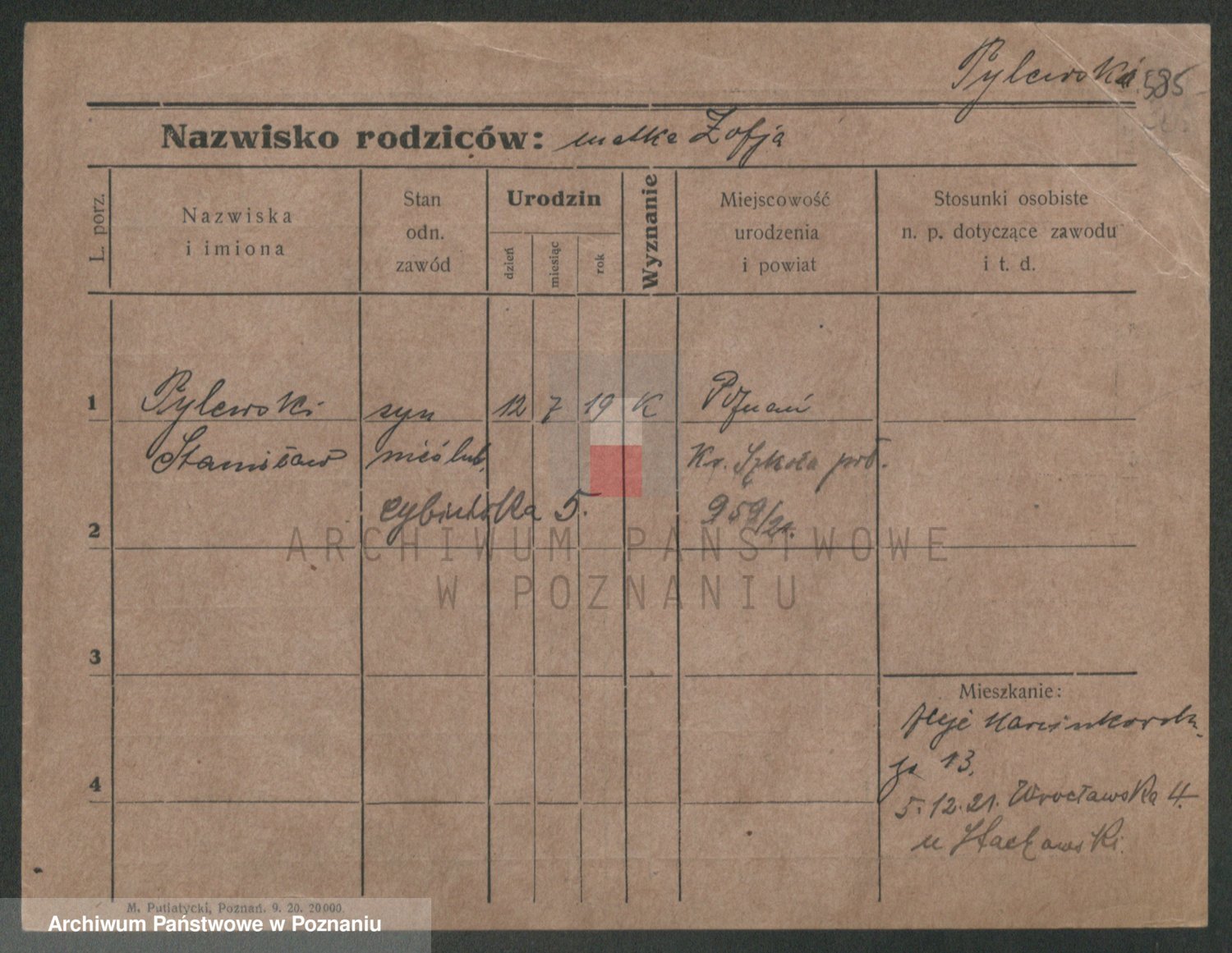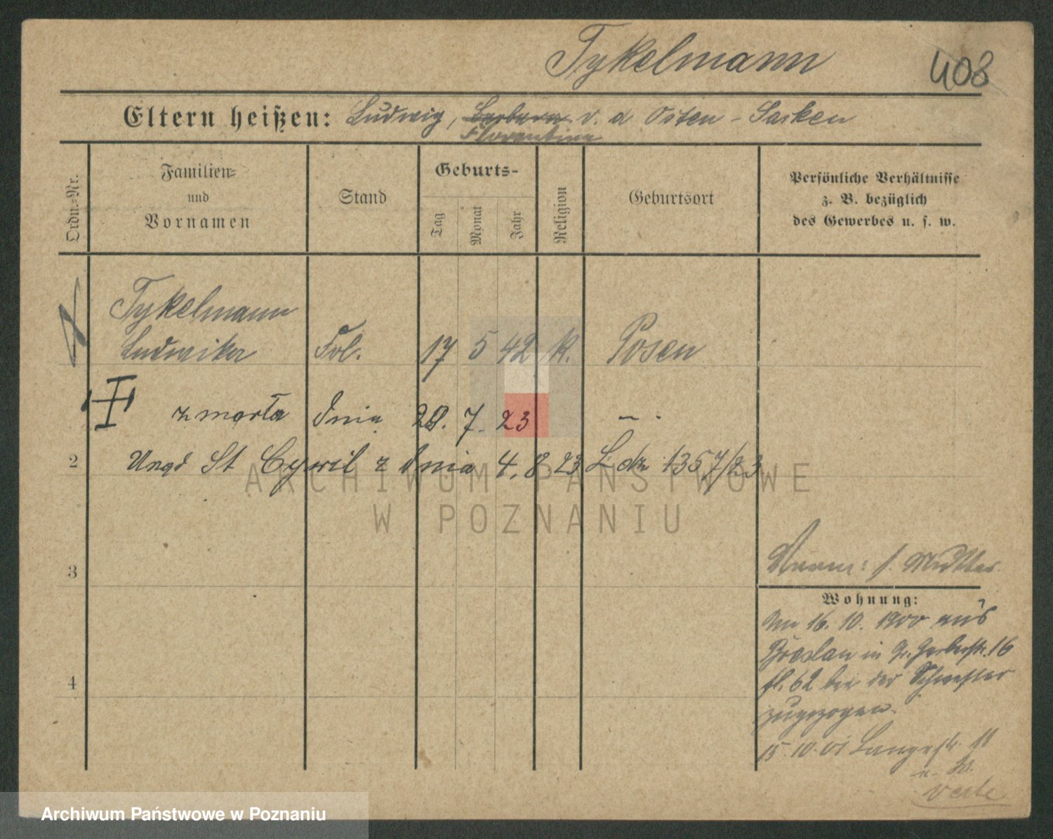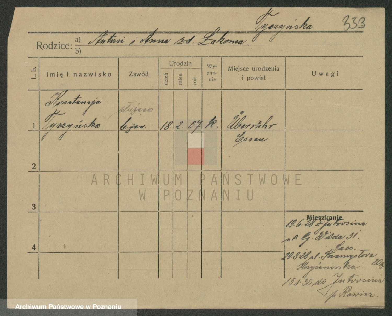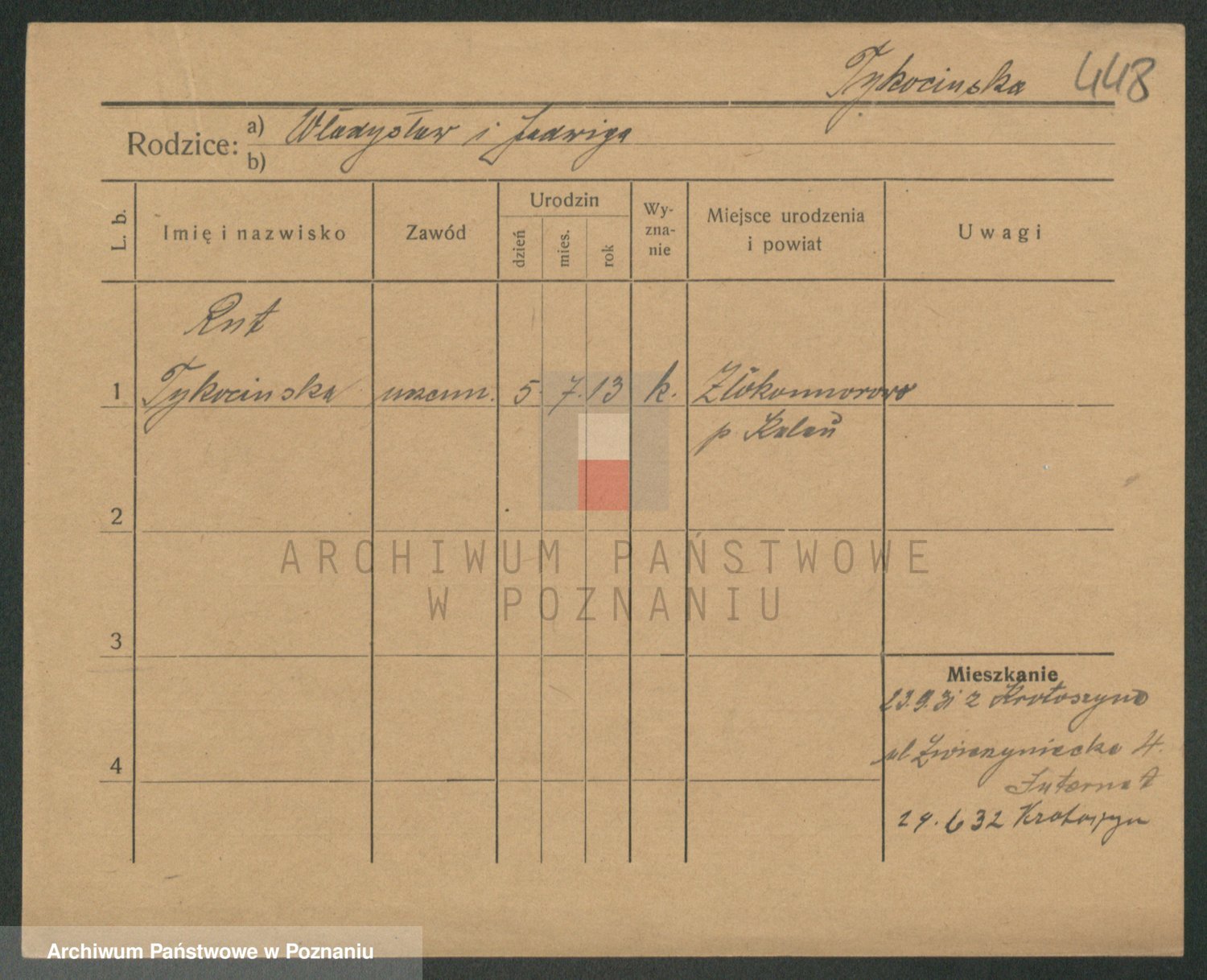 Podgląd karty osobowej dostępny jest po kliknięciu na nazwisko lub ikonkę karty. Można dokonywać powiększenia (ikony na górze) lub przechodzić między kolejnymi skanami (strzałki po bokach).