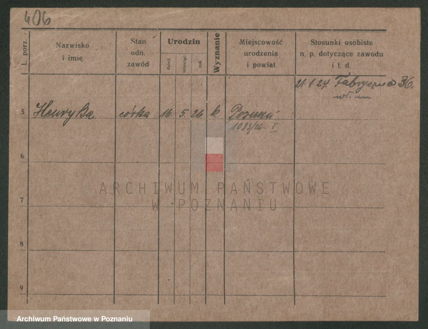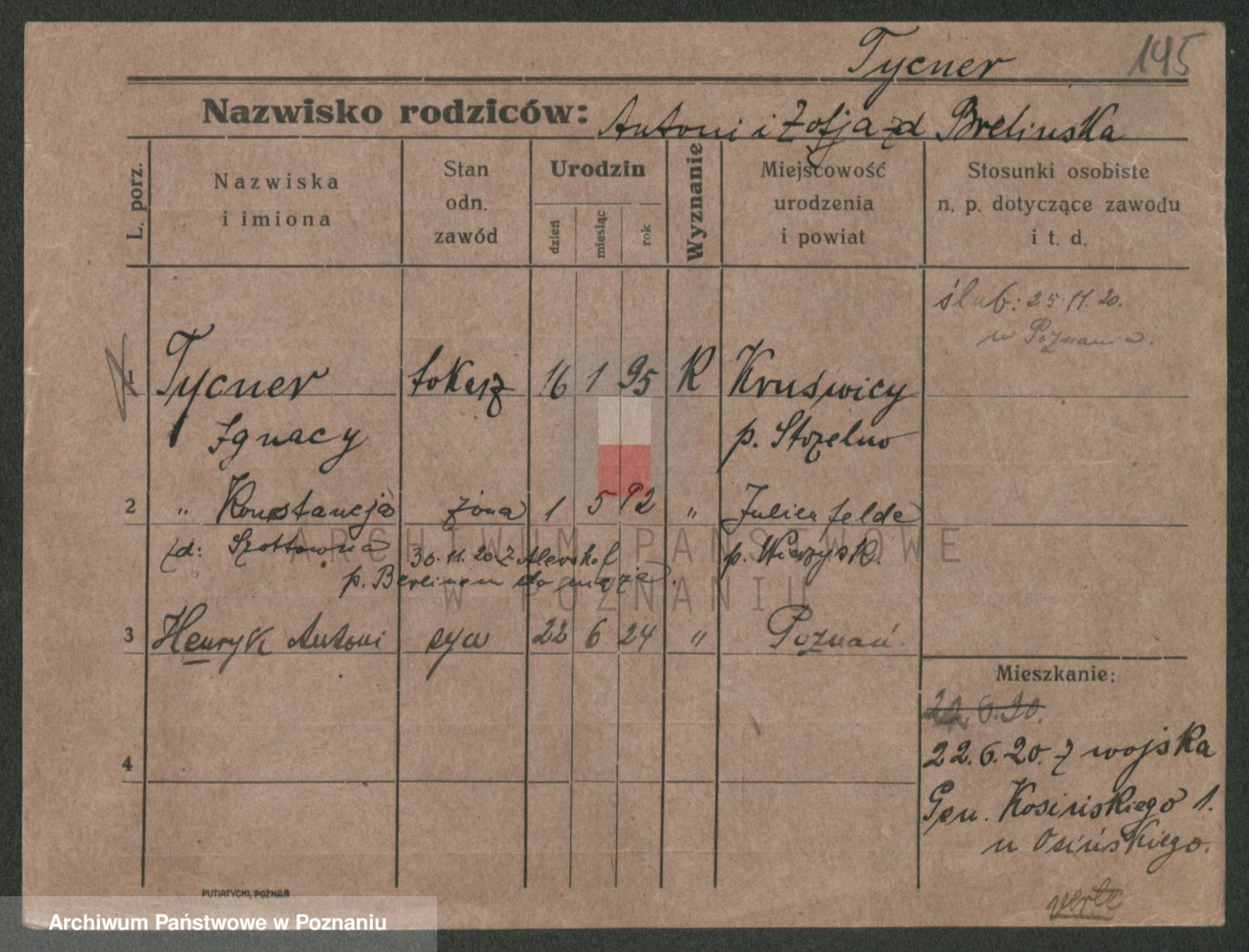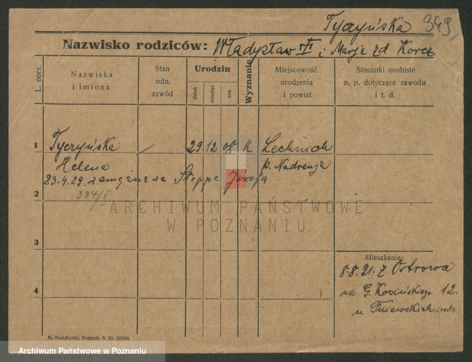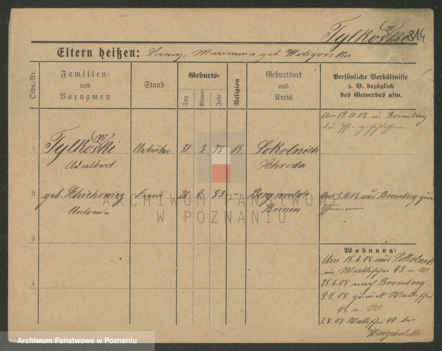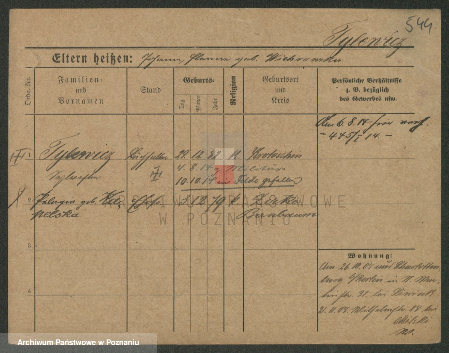 Podgląd karty osobowej dostępny jest po kliknięciu na nazwisko lub ikonkę karty. Można dokonywać powiększenia (ikony na górze) lub przechodzić między kolejnymi skanami (strzałki po bokach).