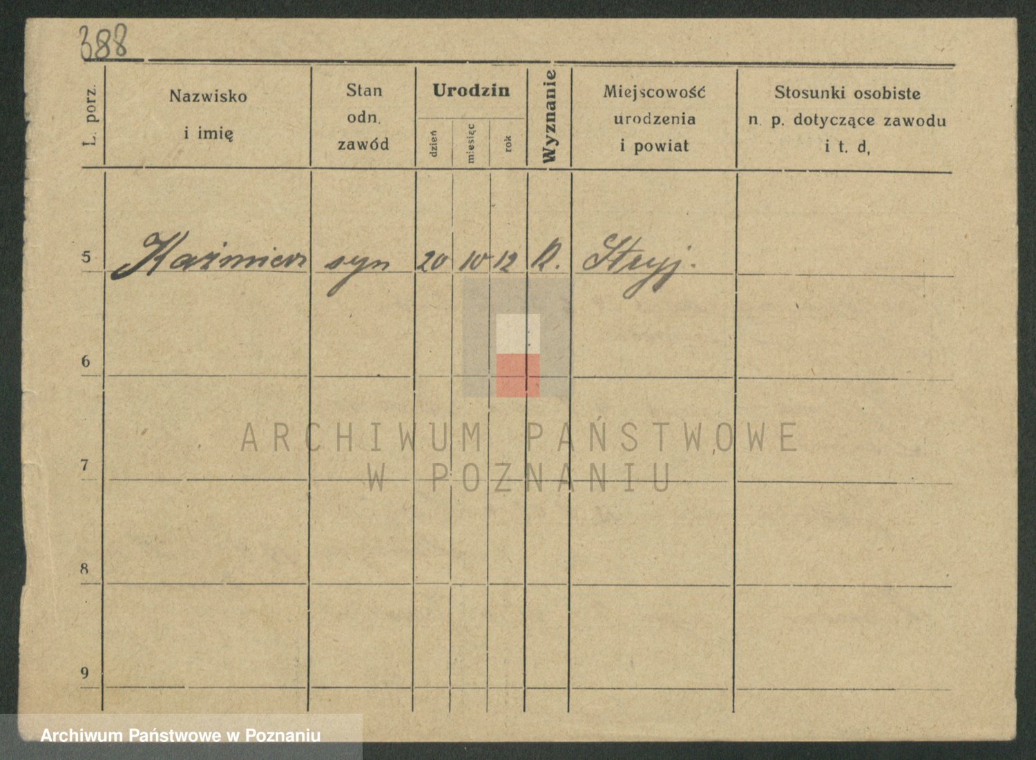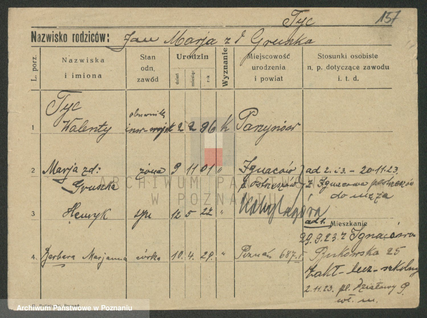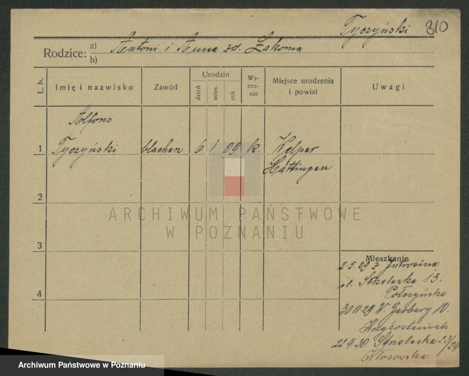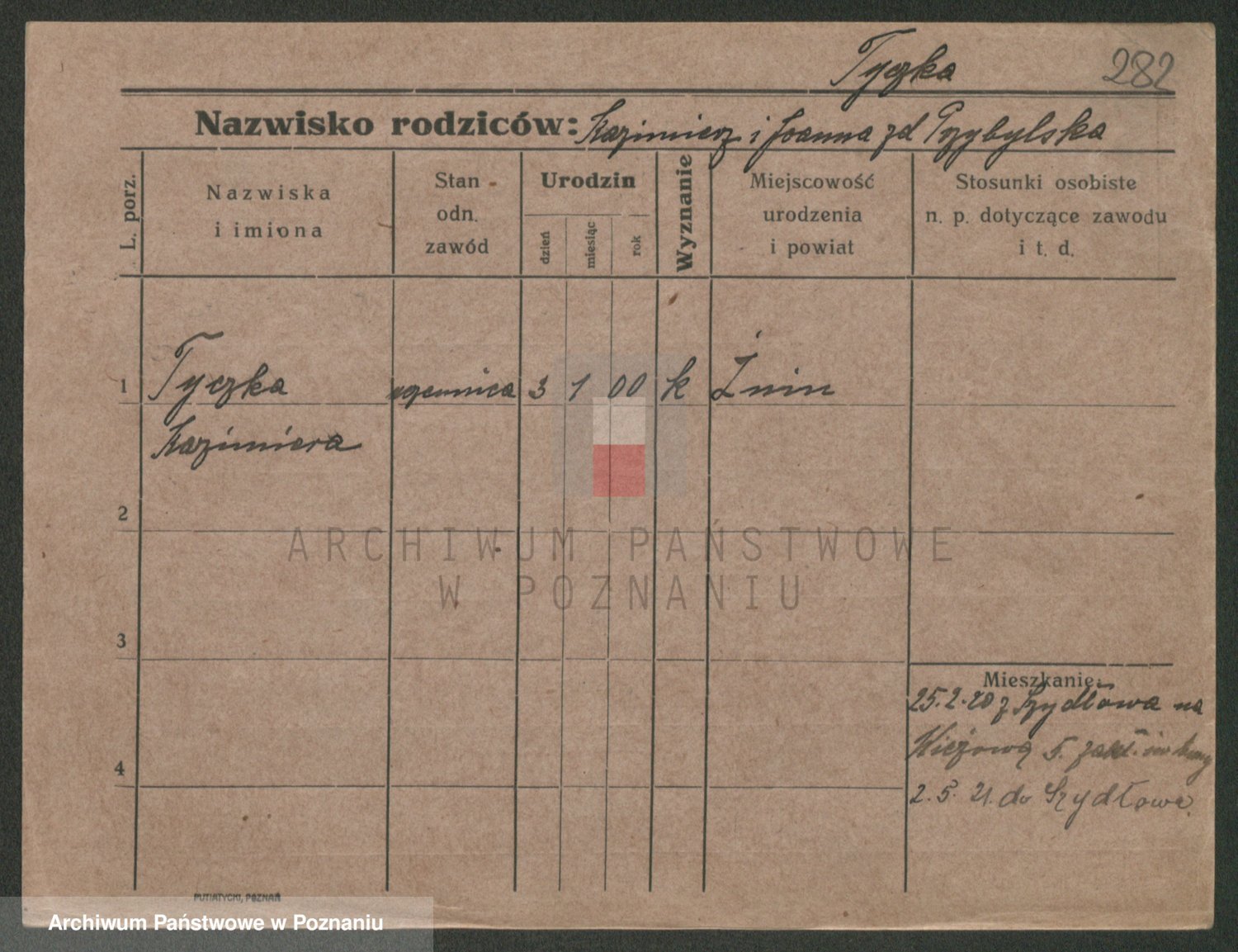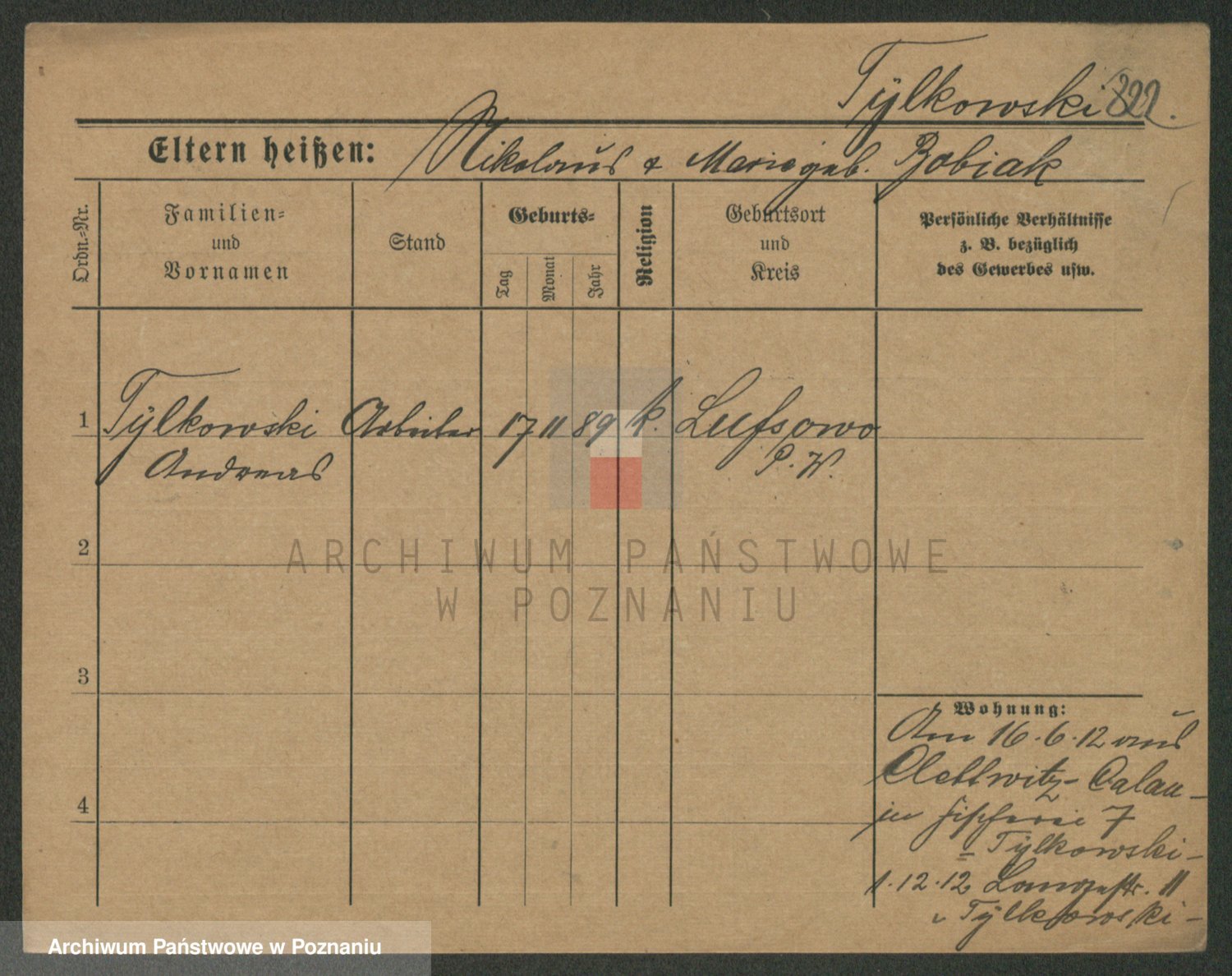 Podgląd karty osobowej dostępny jest po kliknięciu na nazwisko lub ikonkę karty. Można dokonywać powiększenia (ikony na górze) lub przechodzić między kolejnymi skanami (strzałki po bokach).