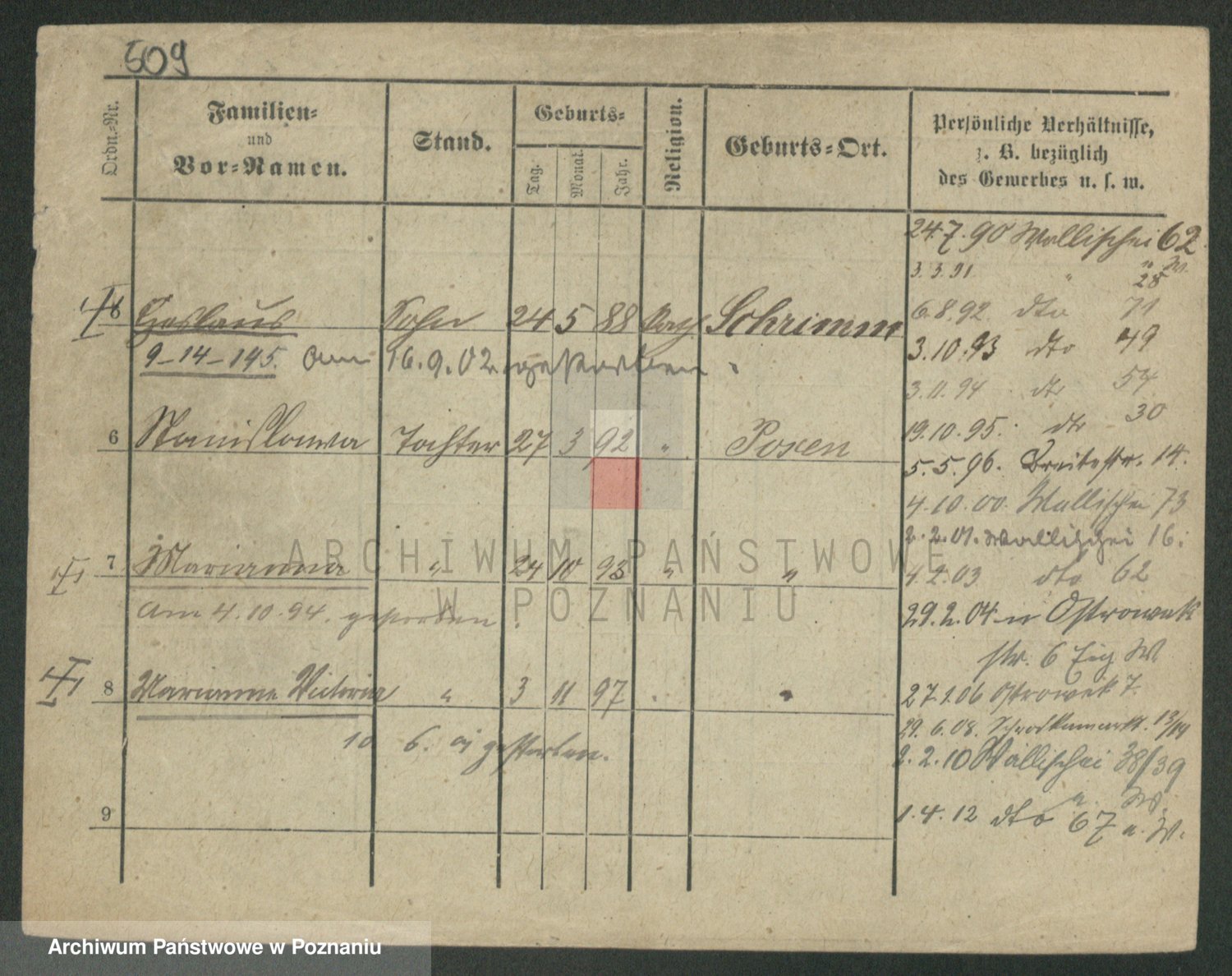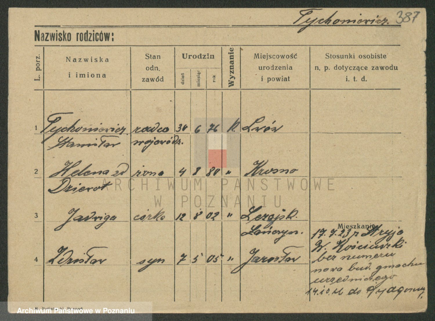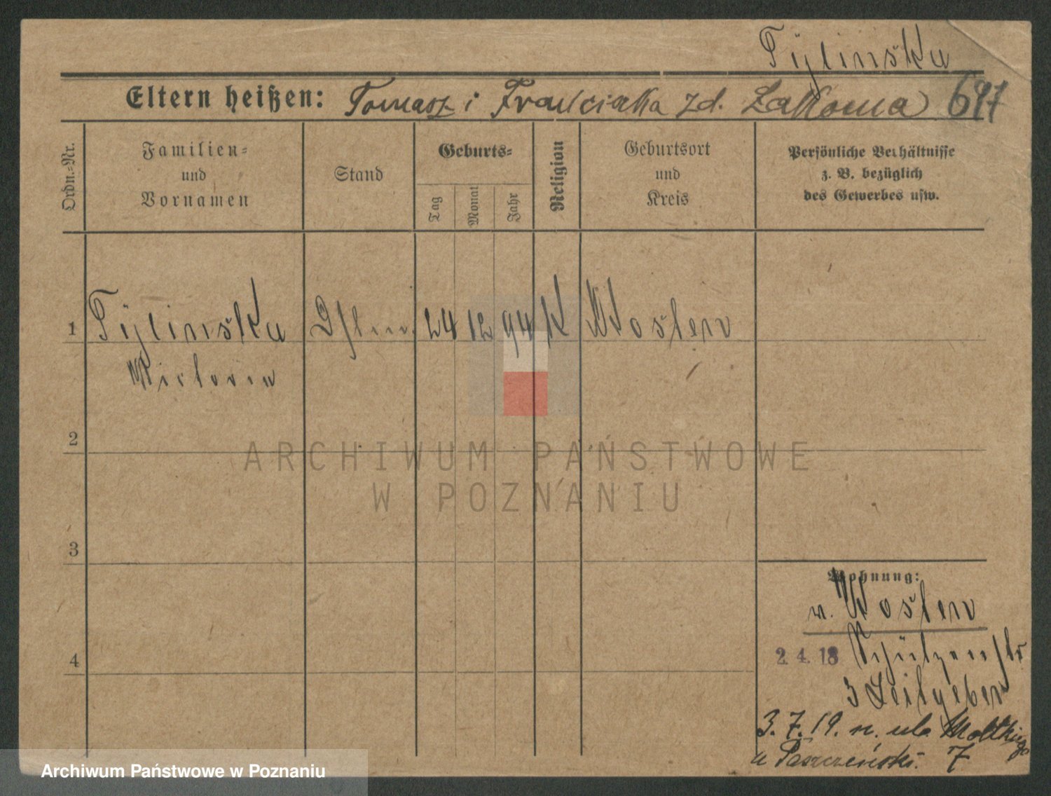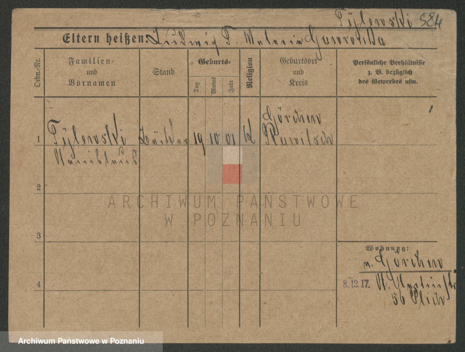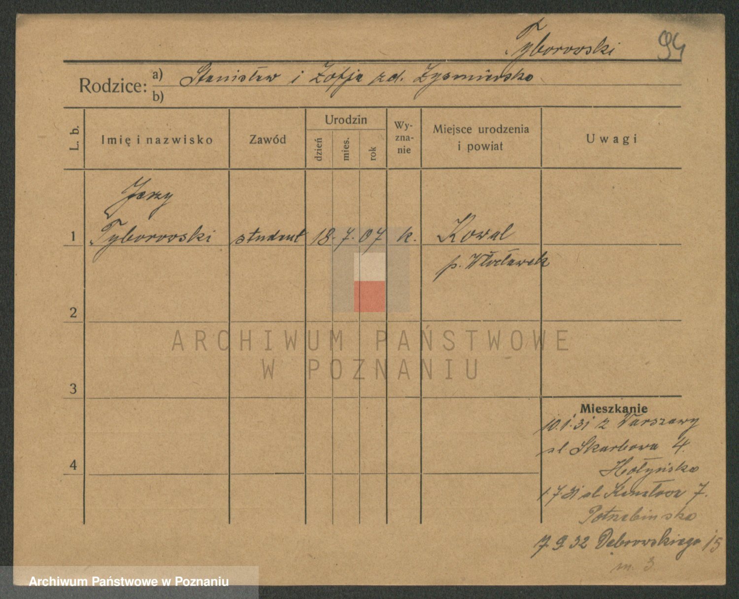 Podgląd karty osobowej dostępny jest po kliknięciu na nazwisko lub ikonkę karty. Można dokonywać powiększenia (ikony na górze) lub przechodzić między kolejnymi skanami (strzałki po bokach).