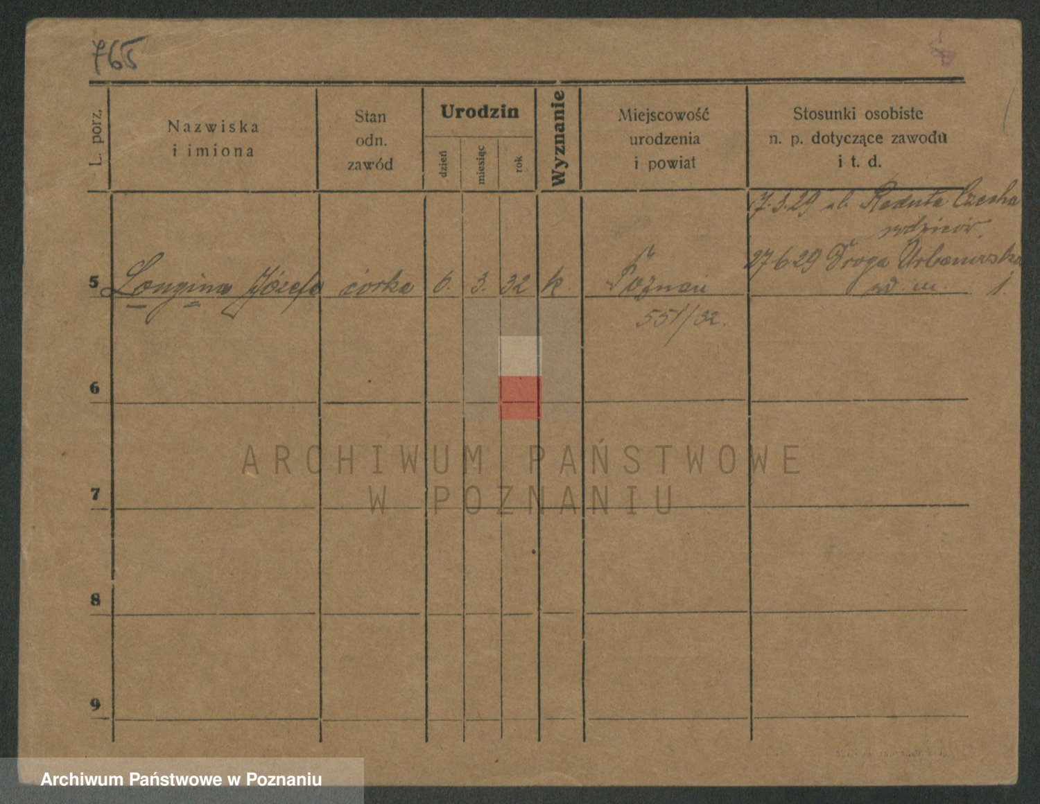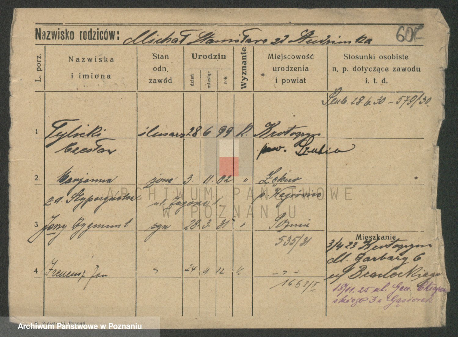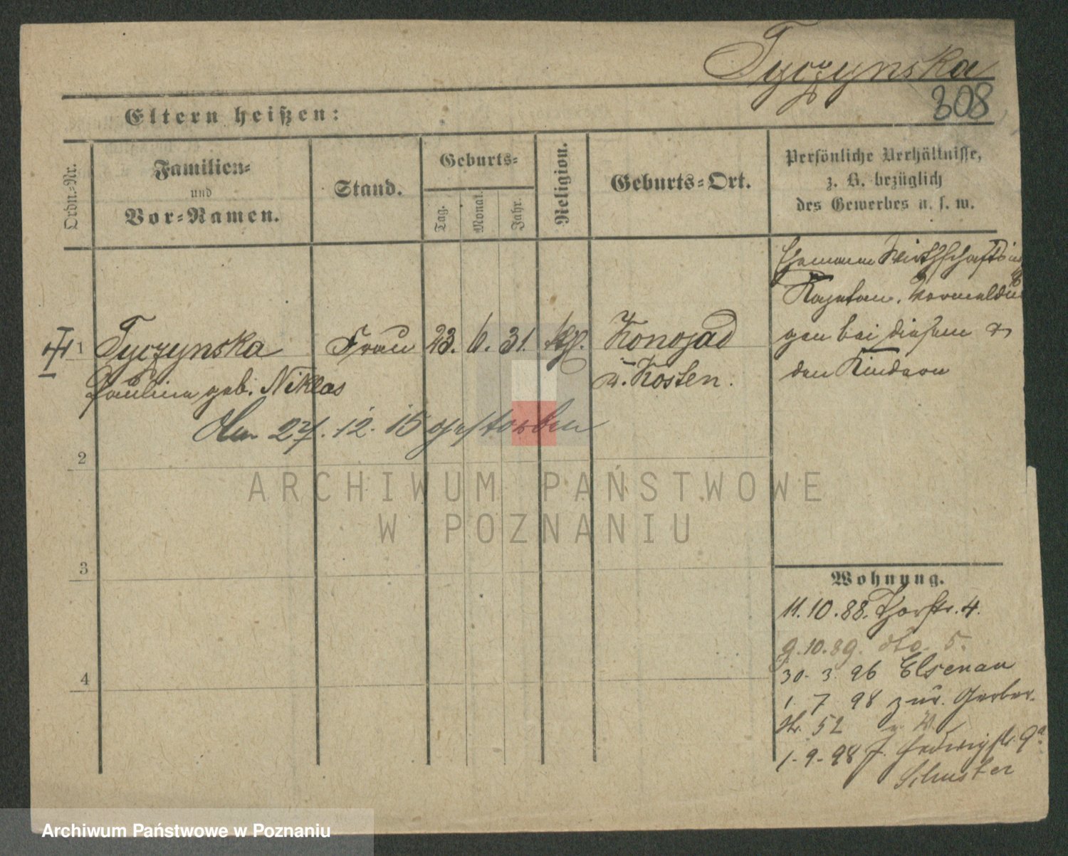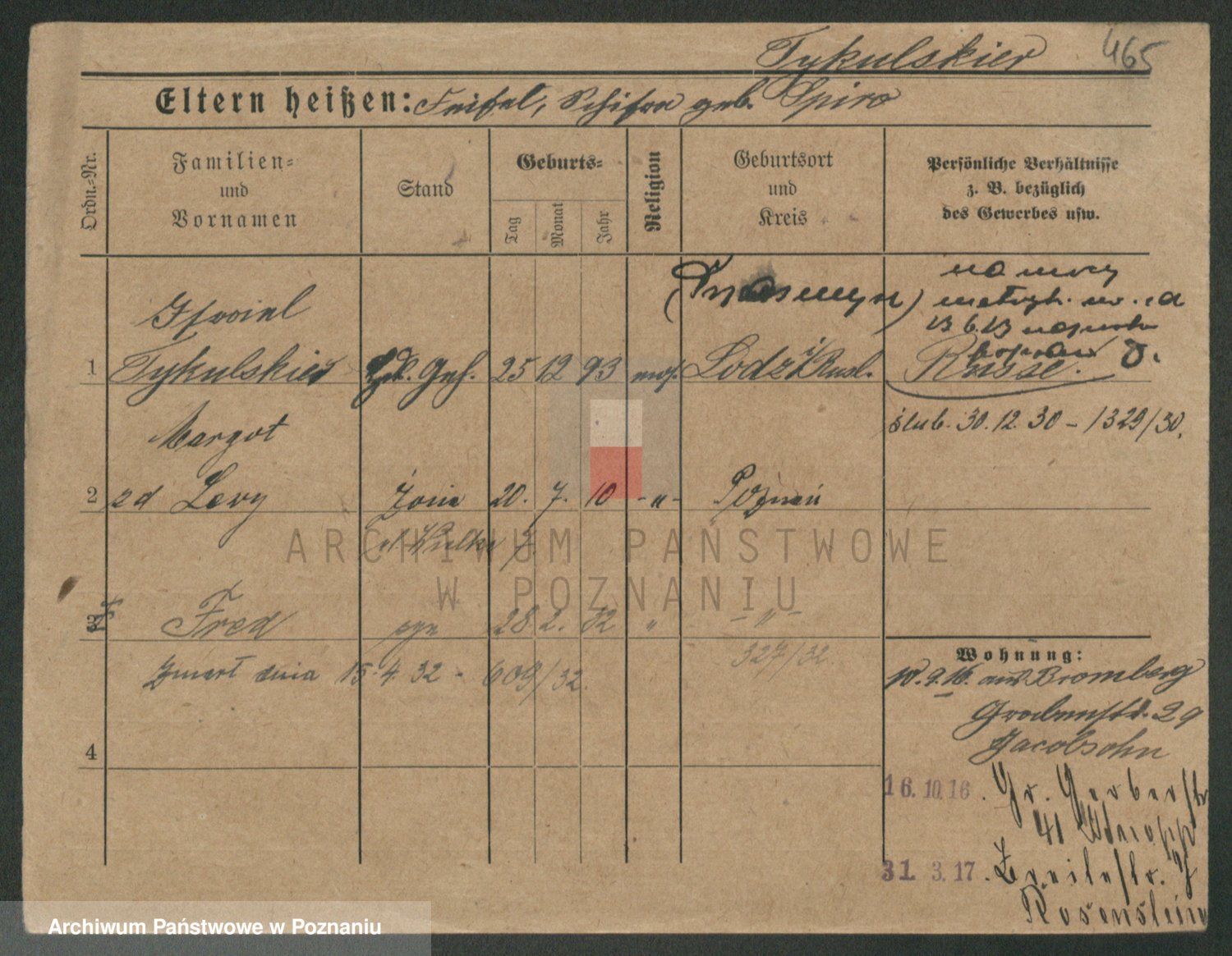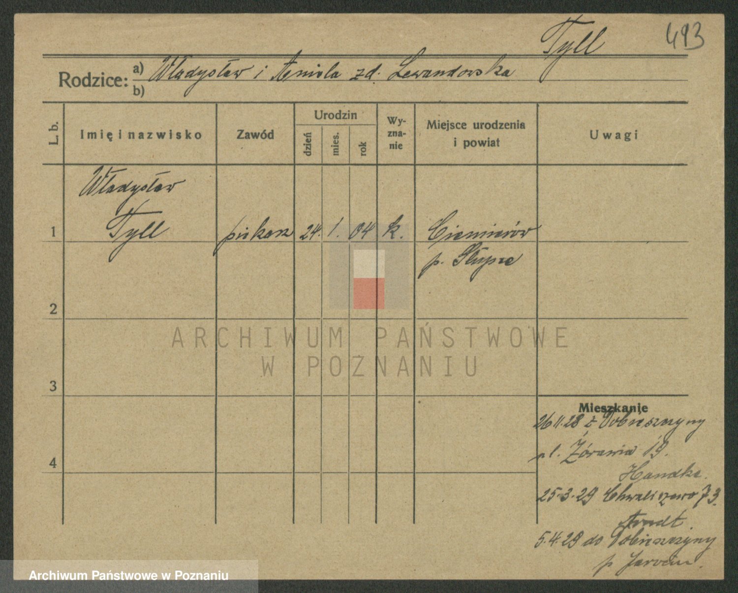 Podgląd karty osobowej dostępny jest po kliknięciu na nazwisko lub ikonkę karty. Można dokonywać powiększenia (ikony na górze) lub przechodzić między kolejnymi skanami (strzałki po bokach).