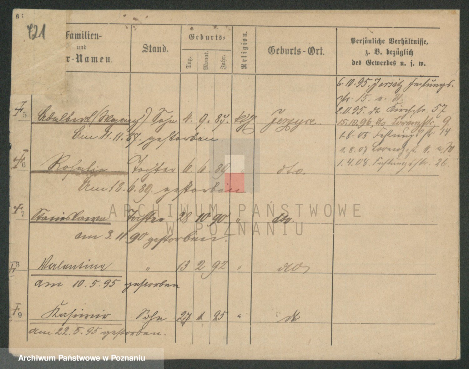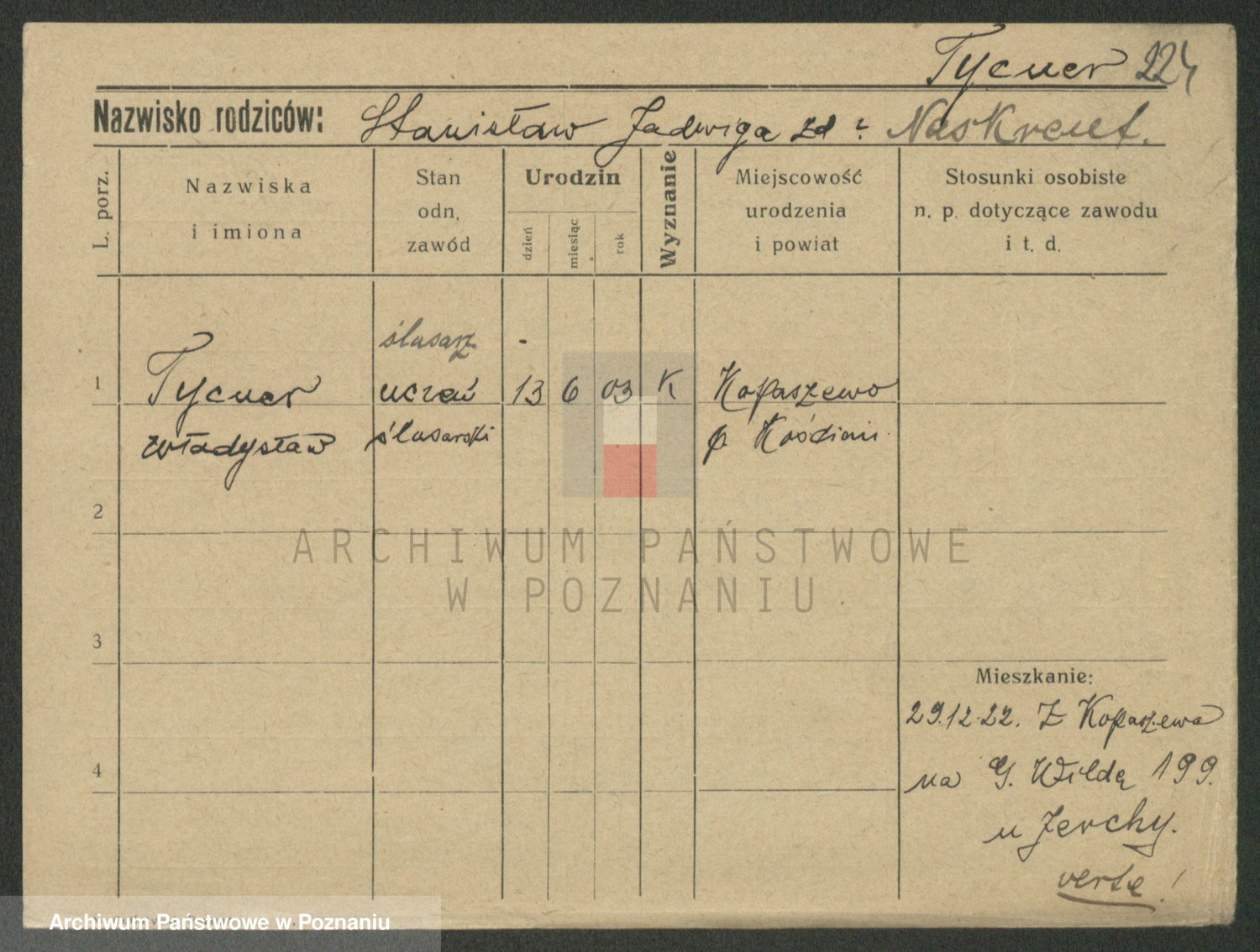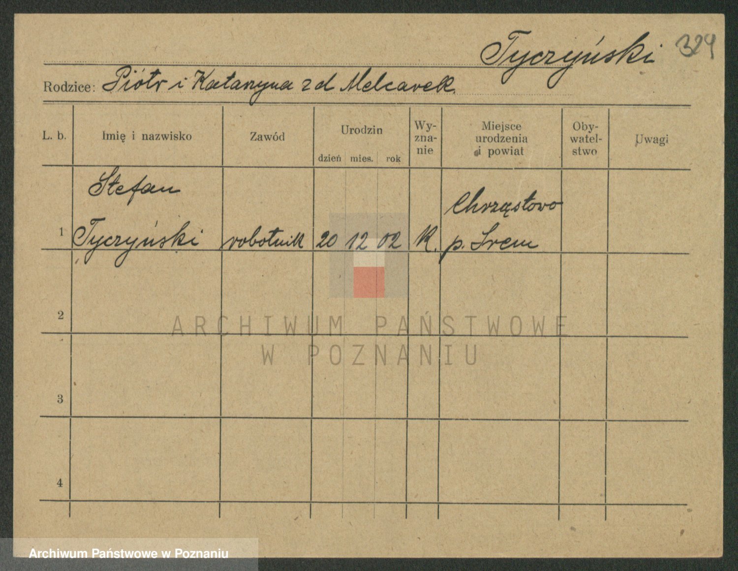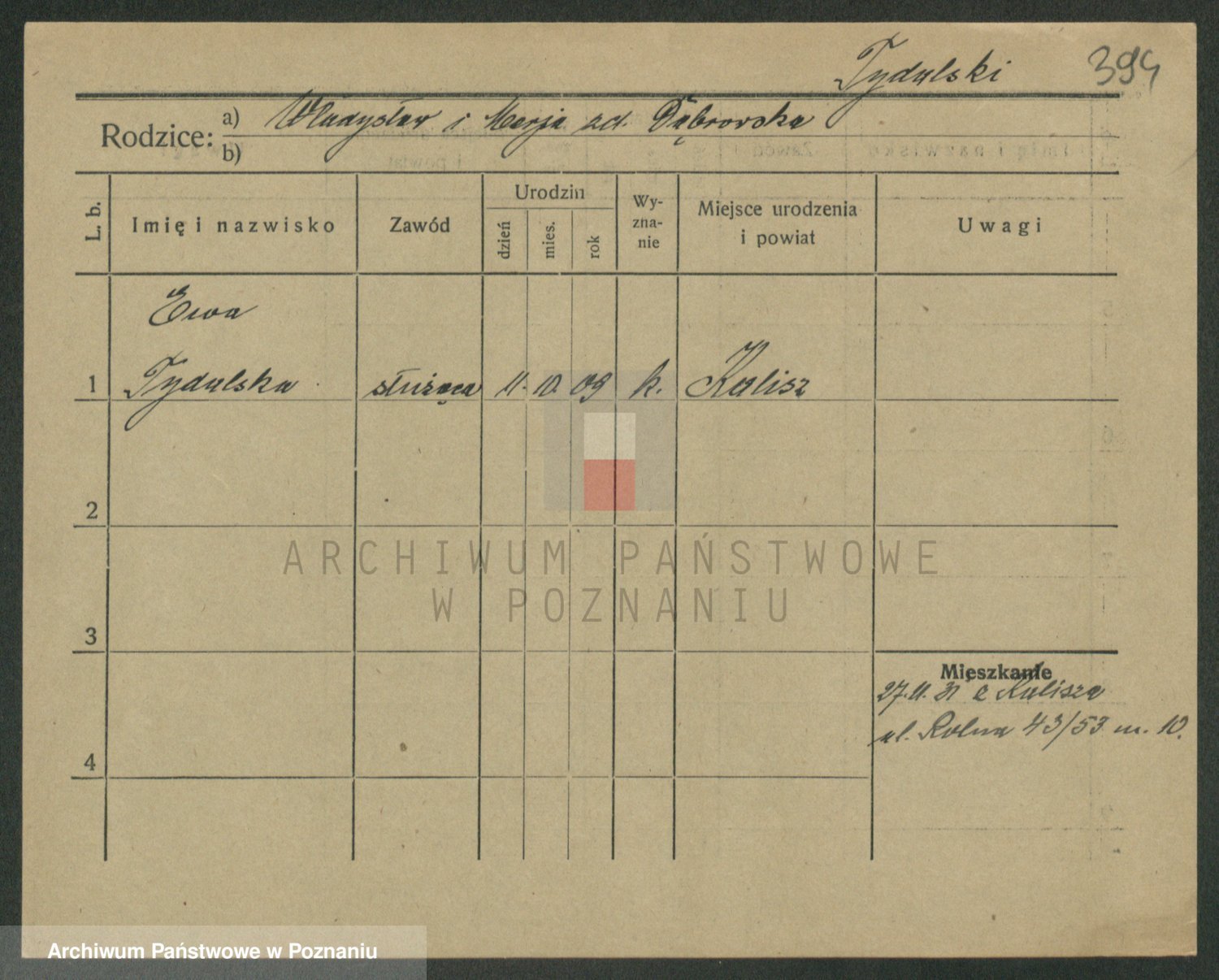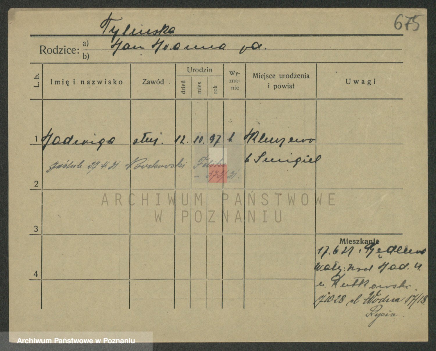 Podgląd karty osobowej dostępny jest po kliknięciu na nazwisko lub ikonkę karty. Można dokonywać powiększenia (ikony na górze) lub przechodzić między kolejnymi skanami (strzałki po bokach).