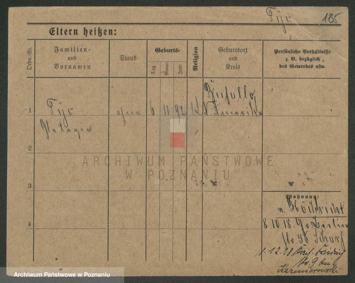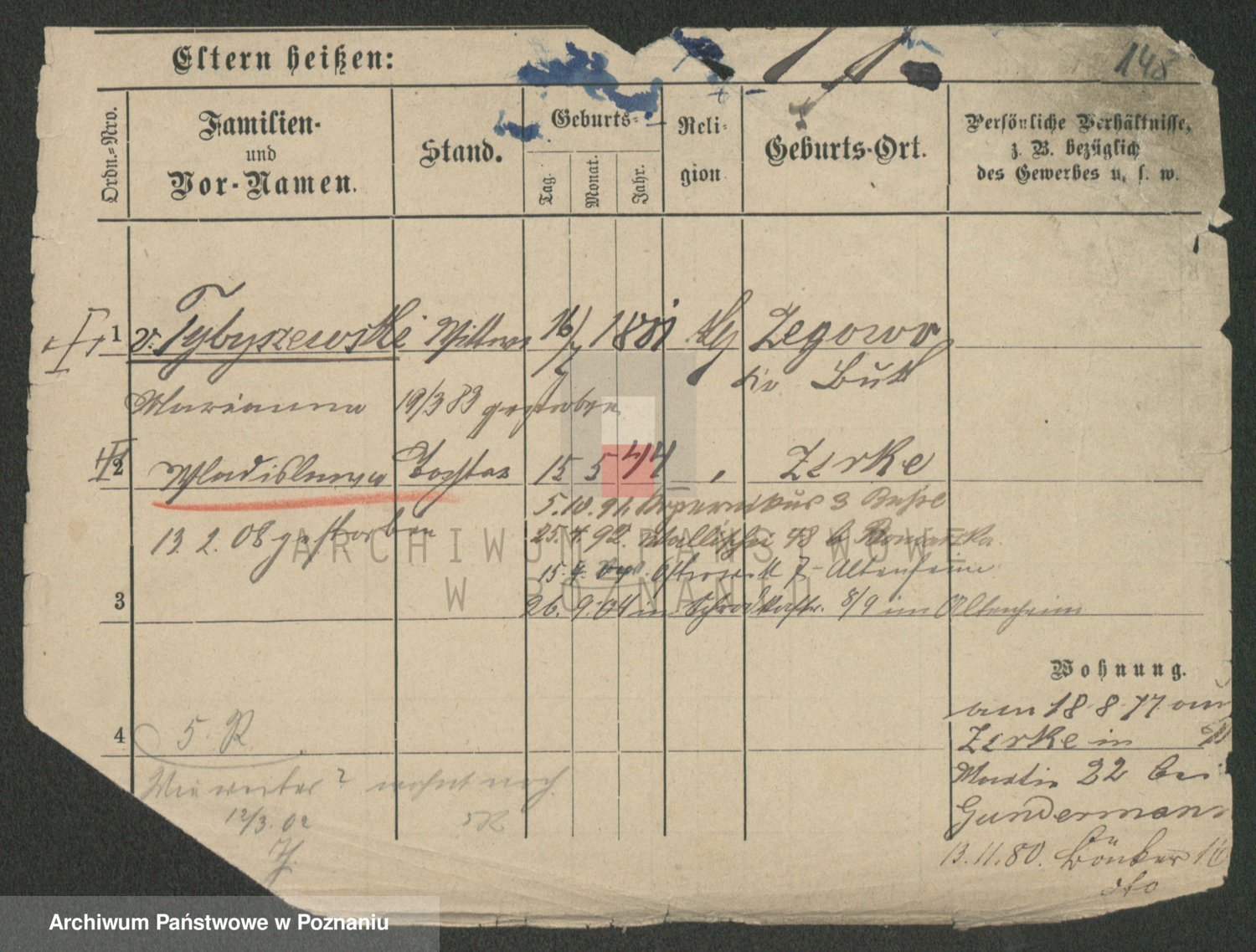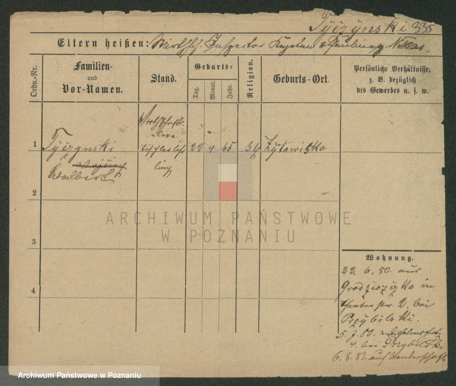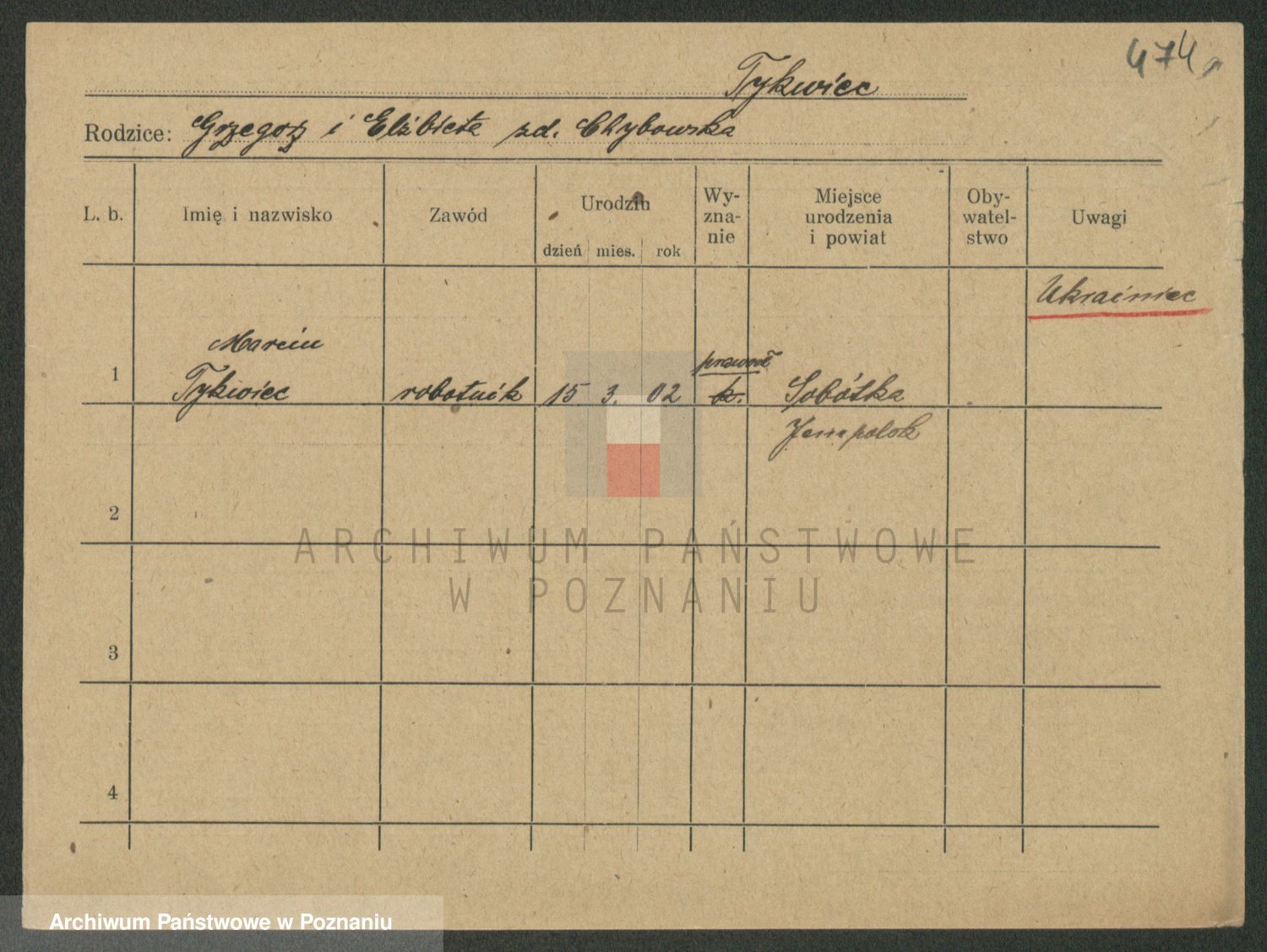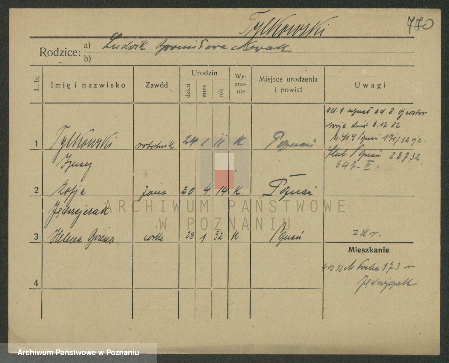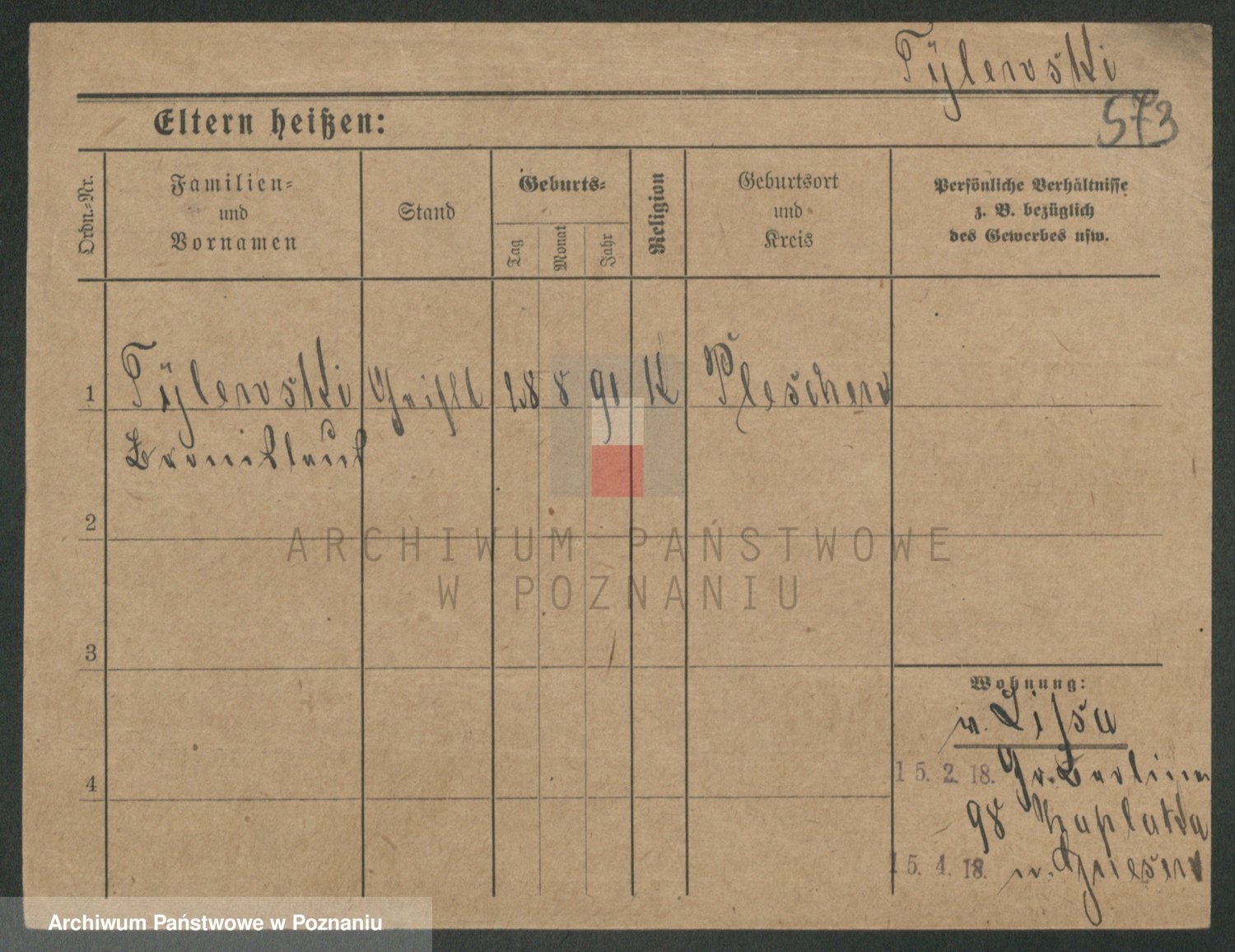 Podgląd karty osobowej dostępny jest po kliknięciu na nazwisko lub ikonkę karty. Można dokonywać powiększenia (ikony na górze) lub przechodzić między kolejnymi skanami (strzałki po bokach).