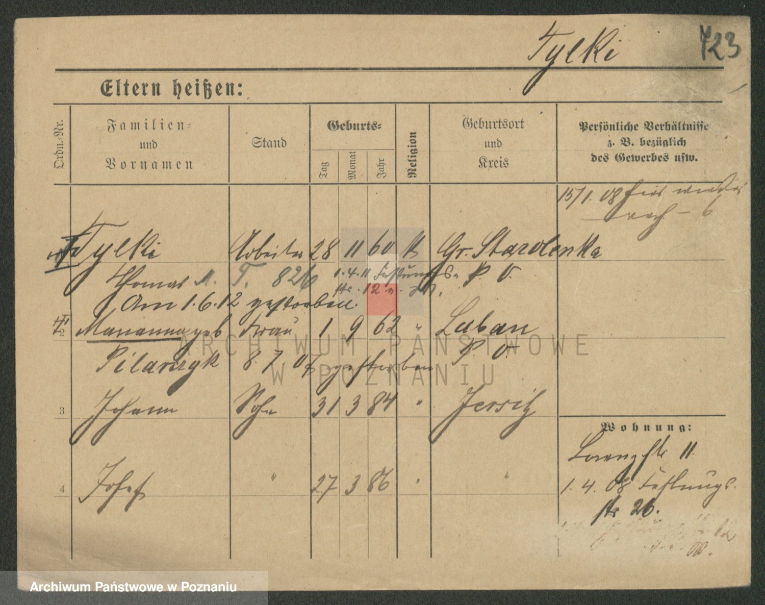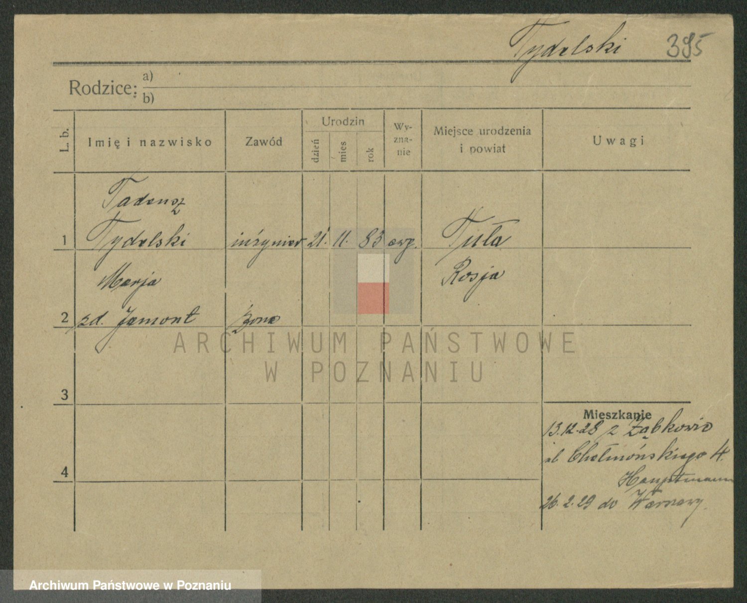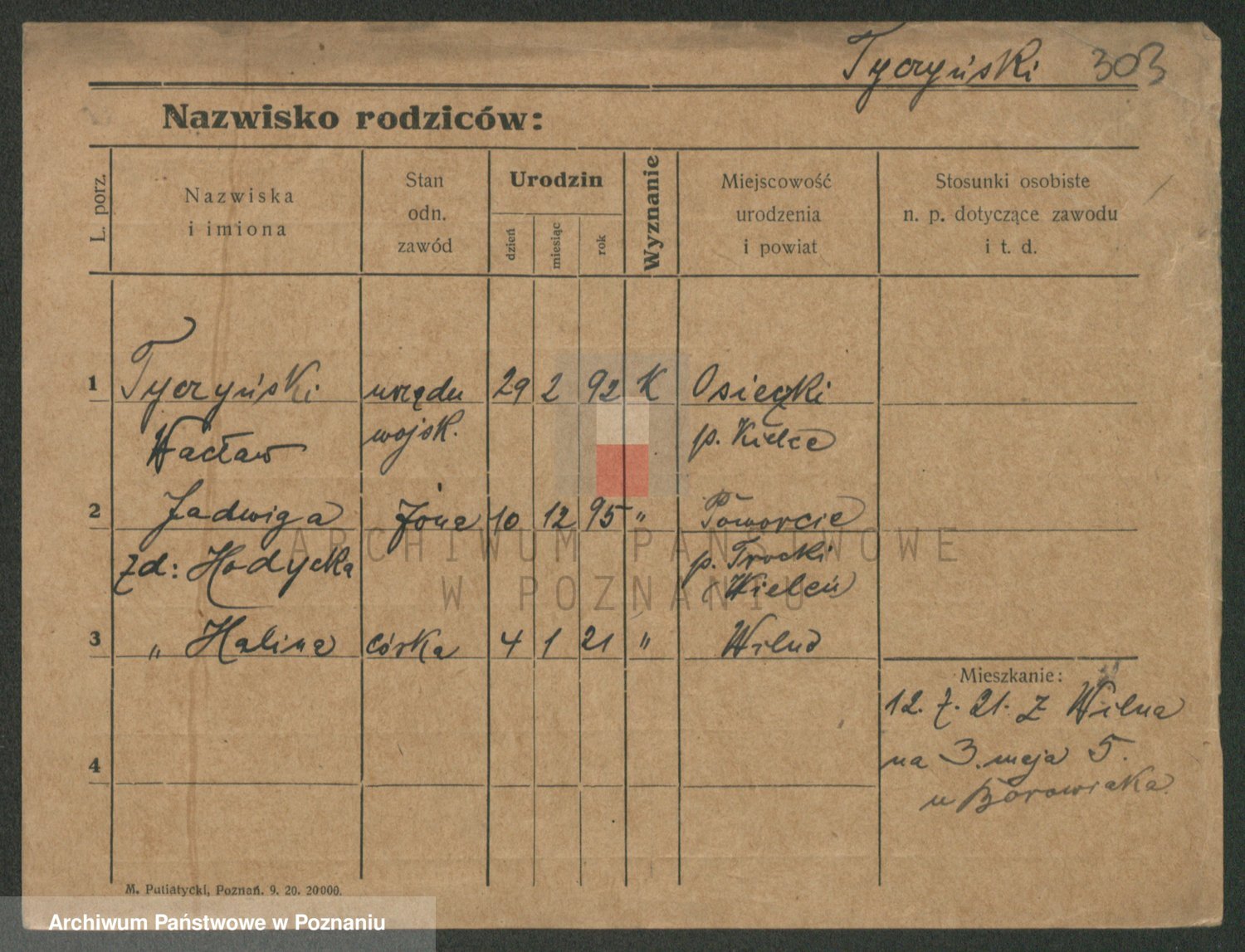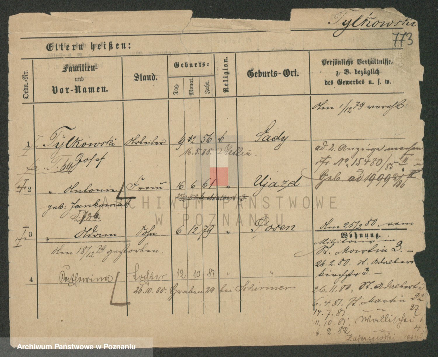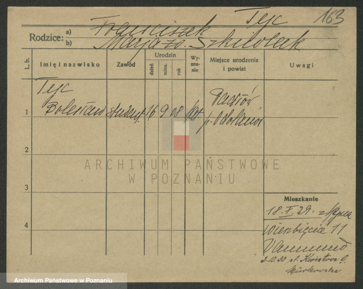 Podgląd karty osobowej dostępny jest po kliknięciu na nazwisko lub ikonkę karty. Można dokonywać powiększenia (ikony na górze) lub przechodzić między kolejnymi skanami (strzałki po bokach).