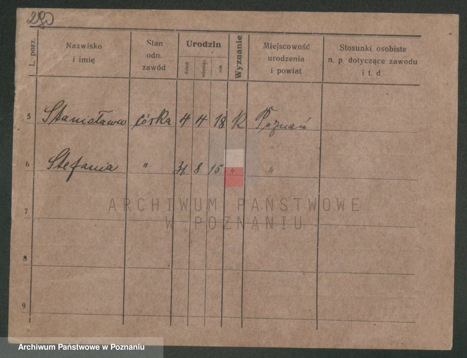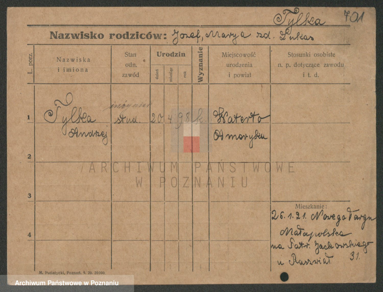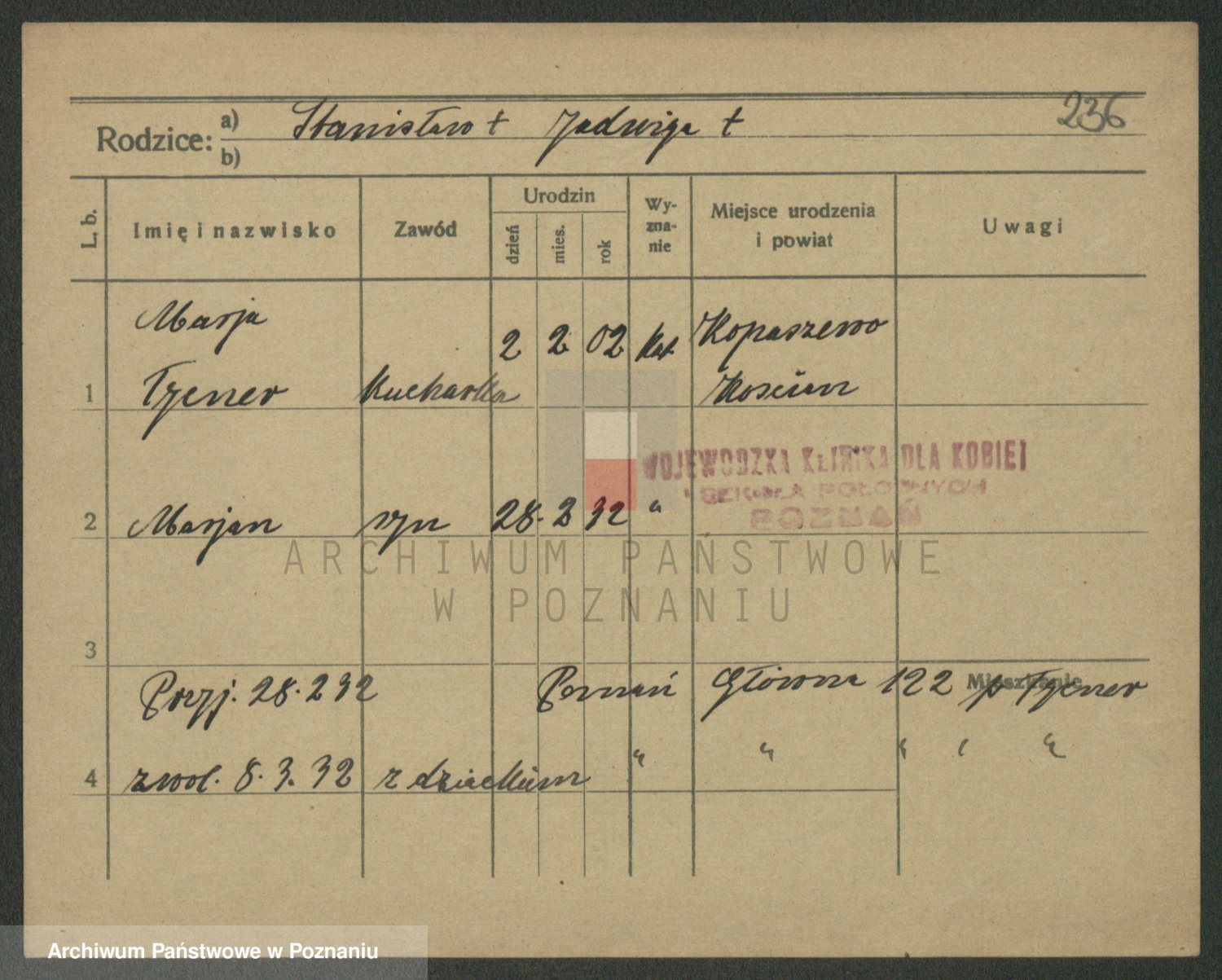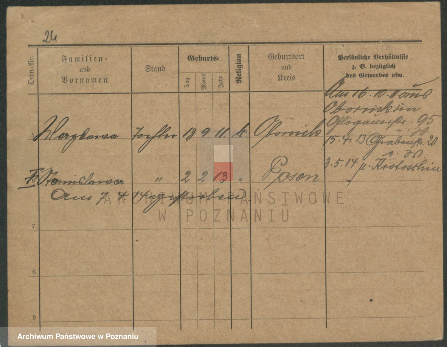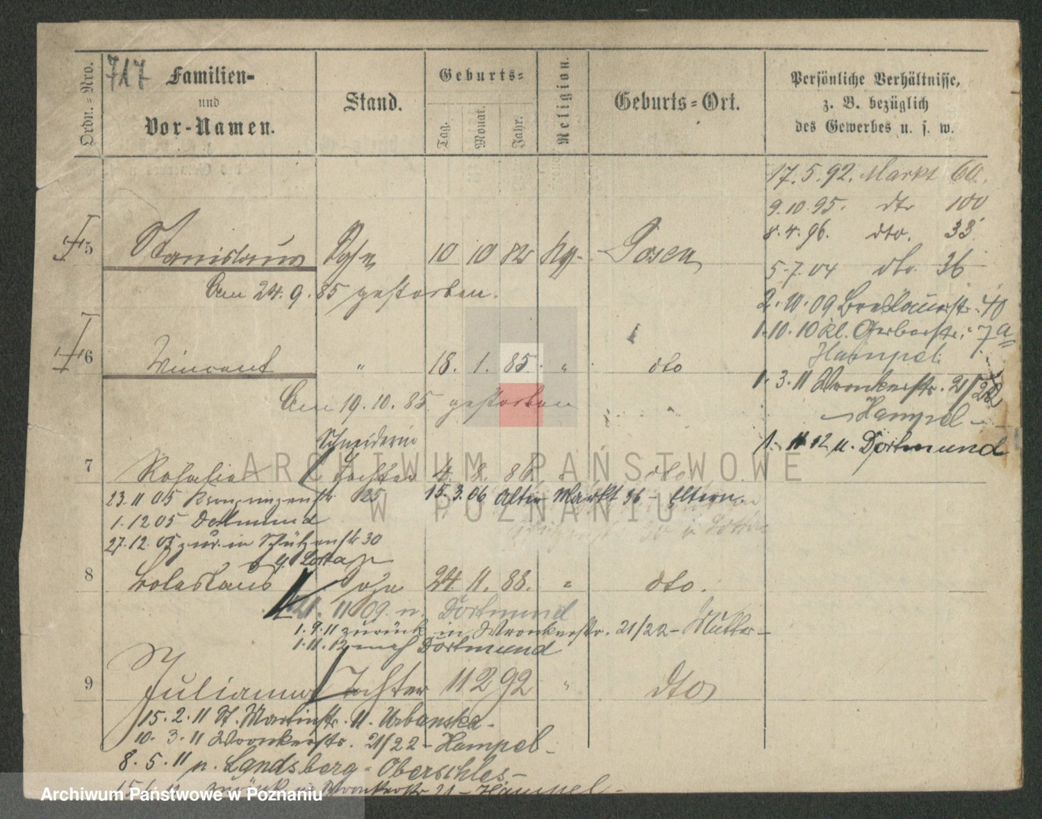 Podgląd karty osobowej dostępny jest po kliknięciu na nazwisko lub ikonkę karty. Można dokonywać powiększenia (ikony na górze) lub przechodzić między kolejnymi skanami (strzałki po bokach).