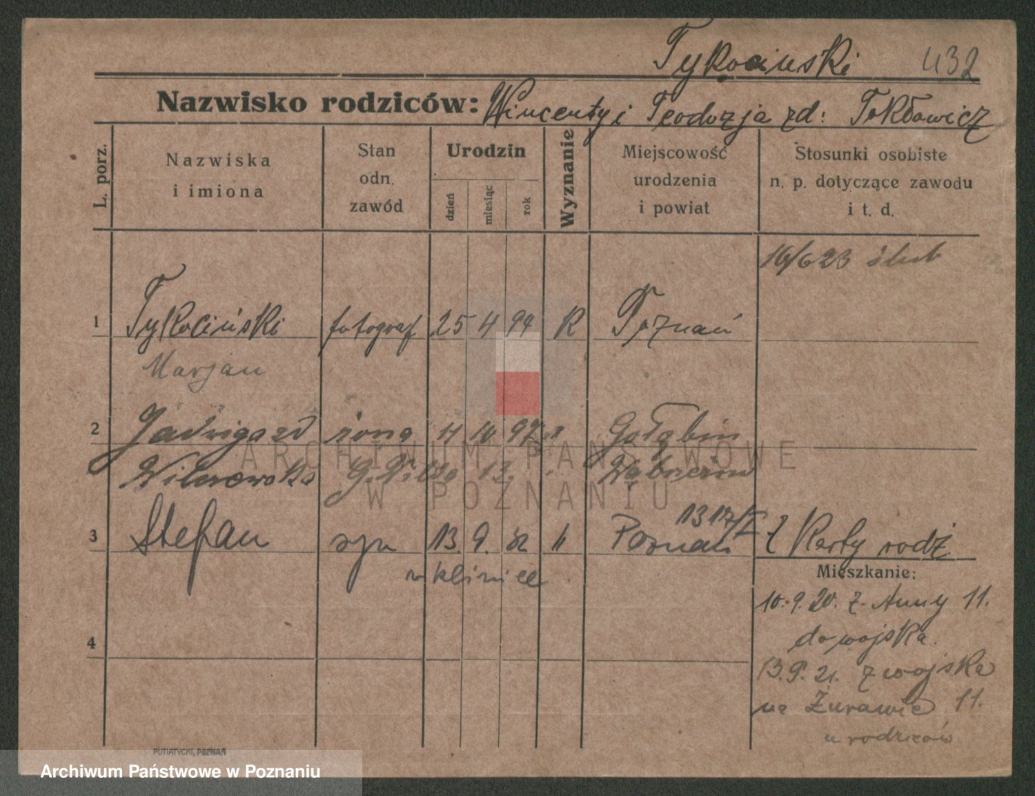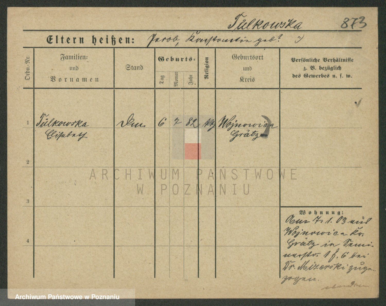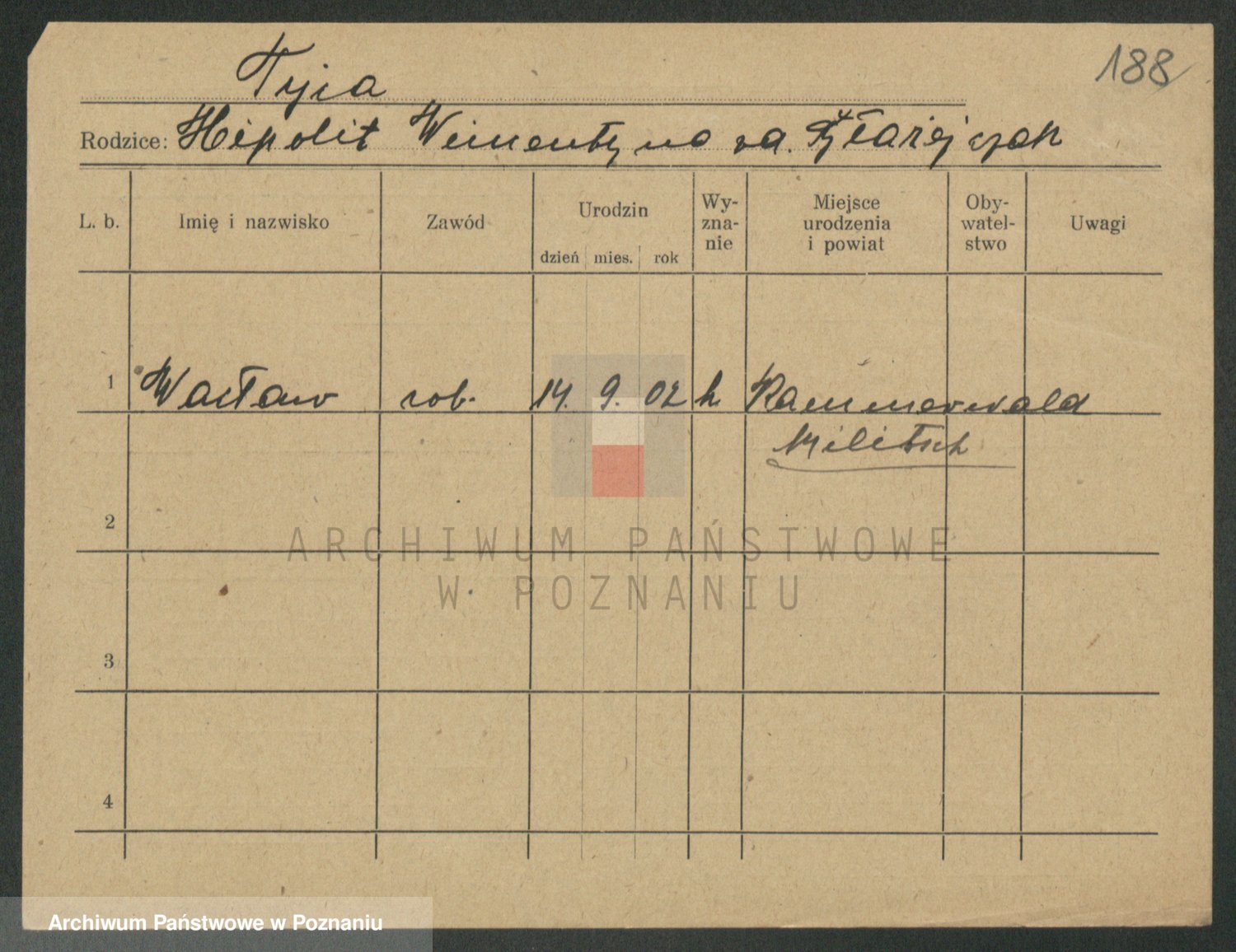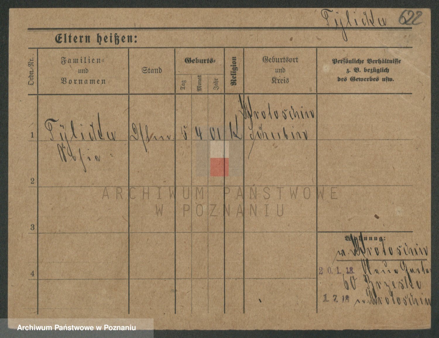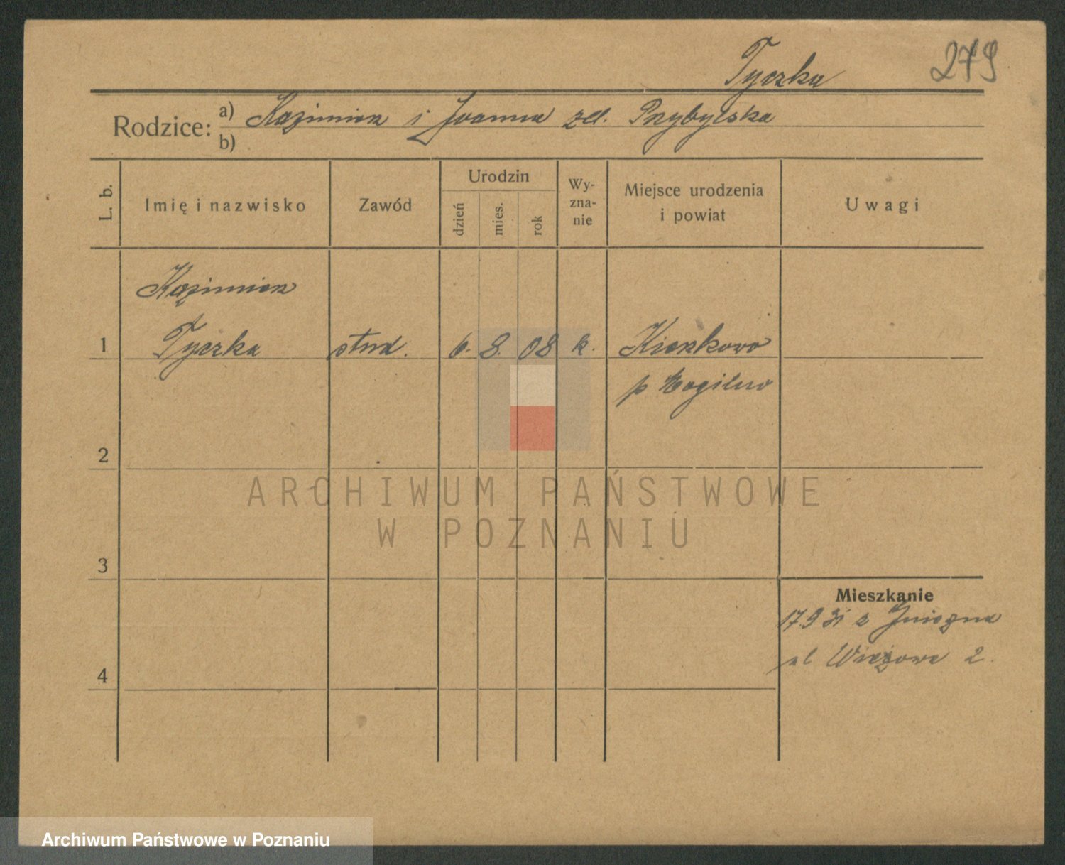 Podgląd karty osobowej dostępny jest po kliknięciu na nazwisko lub ikonkę karty. Można dokonywać powiększenia (ikony na górze) lub przechodzić między kolejnymi skanami (strzałki po bokach).