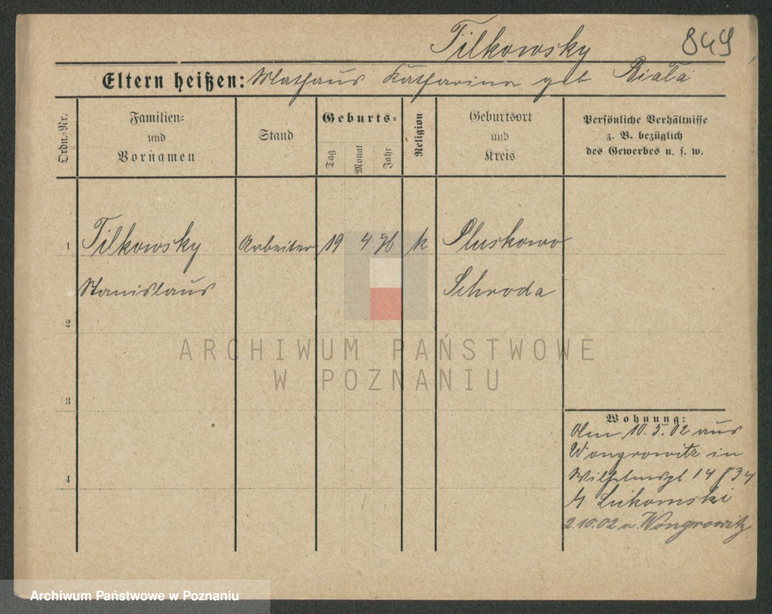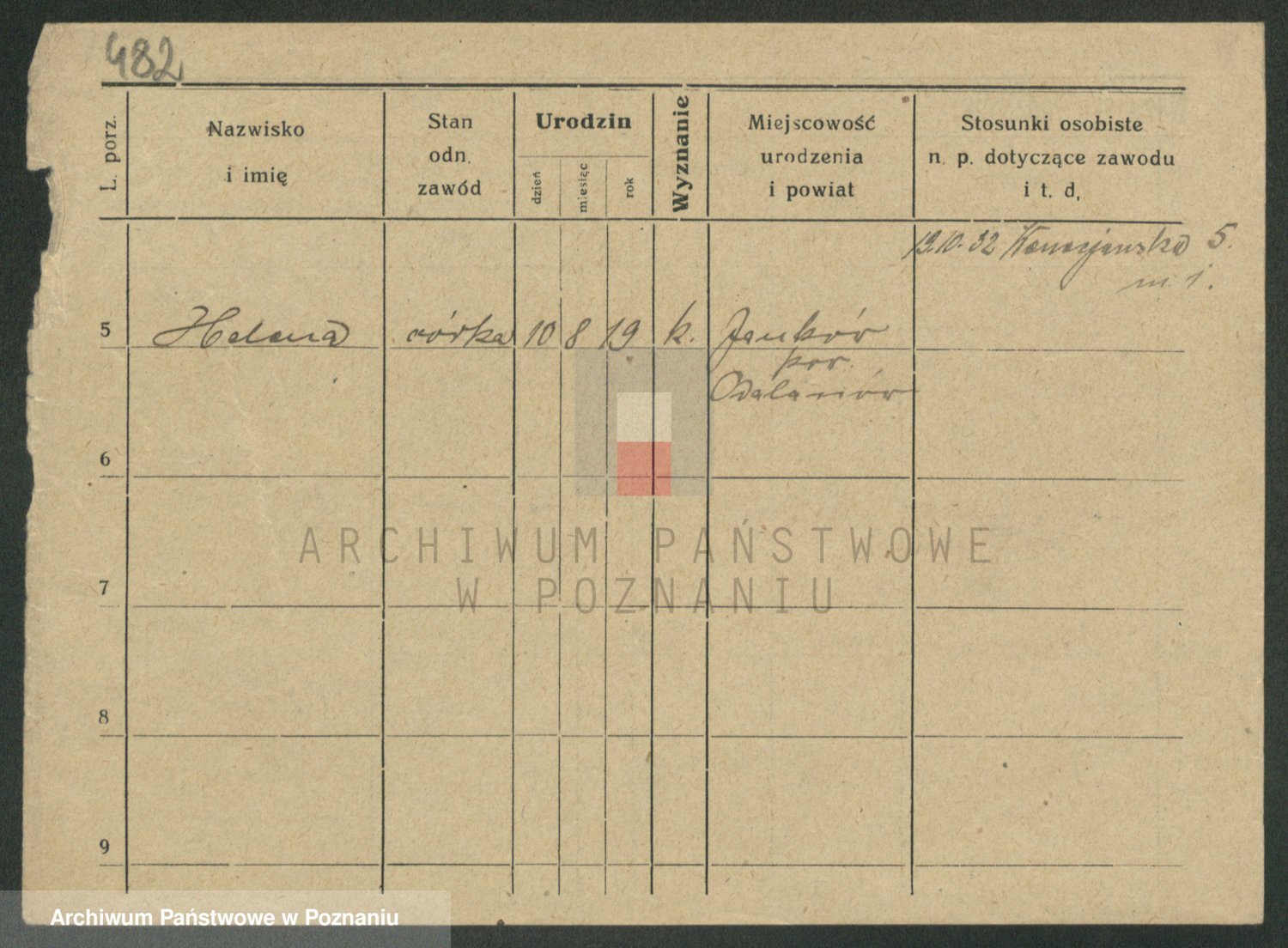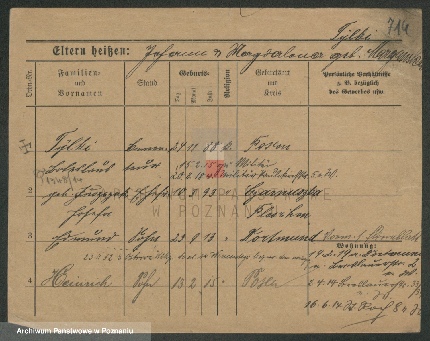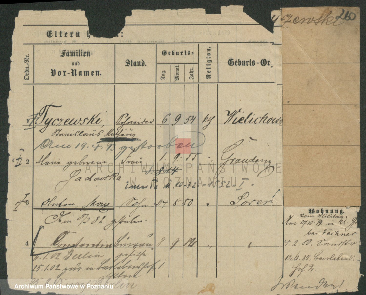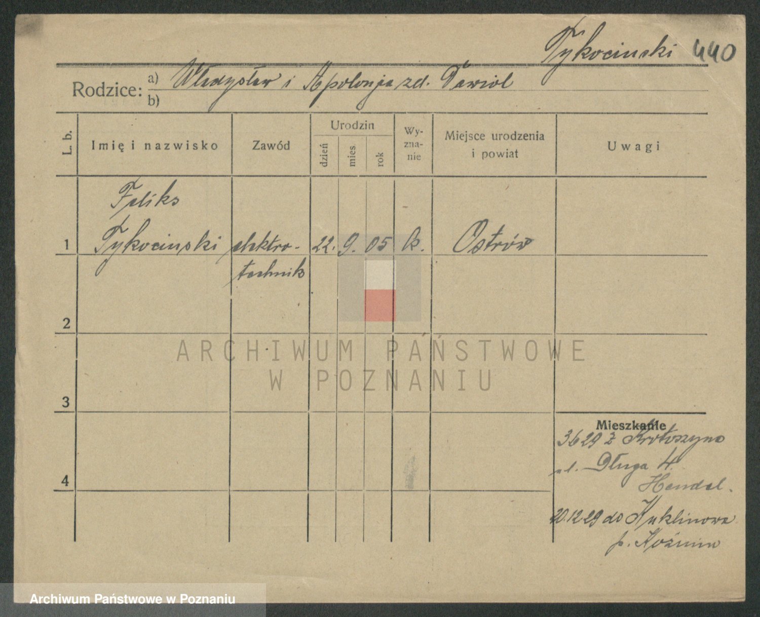 Podgląd karty osobowej dostępny jest po kliknięciu na nazwisko lub ikonkę karty. Można dokonywać powiększenia (ikony na górze) lub przechodzić między kolejnymi skanami (strzałki po bokach).