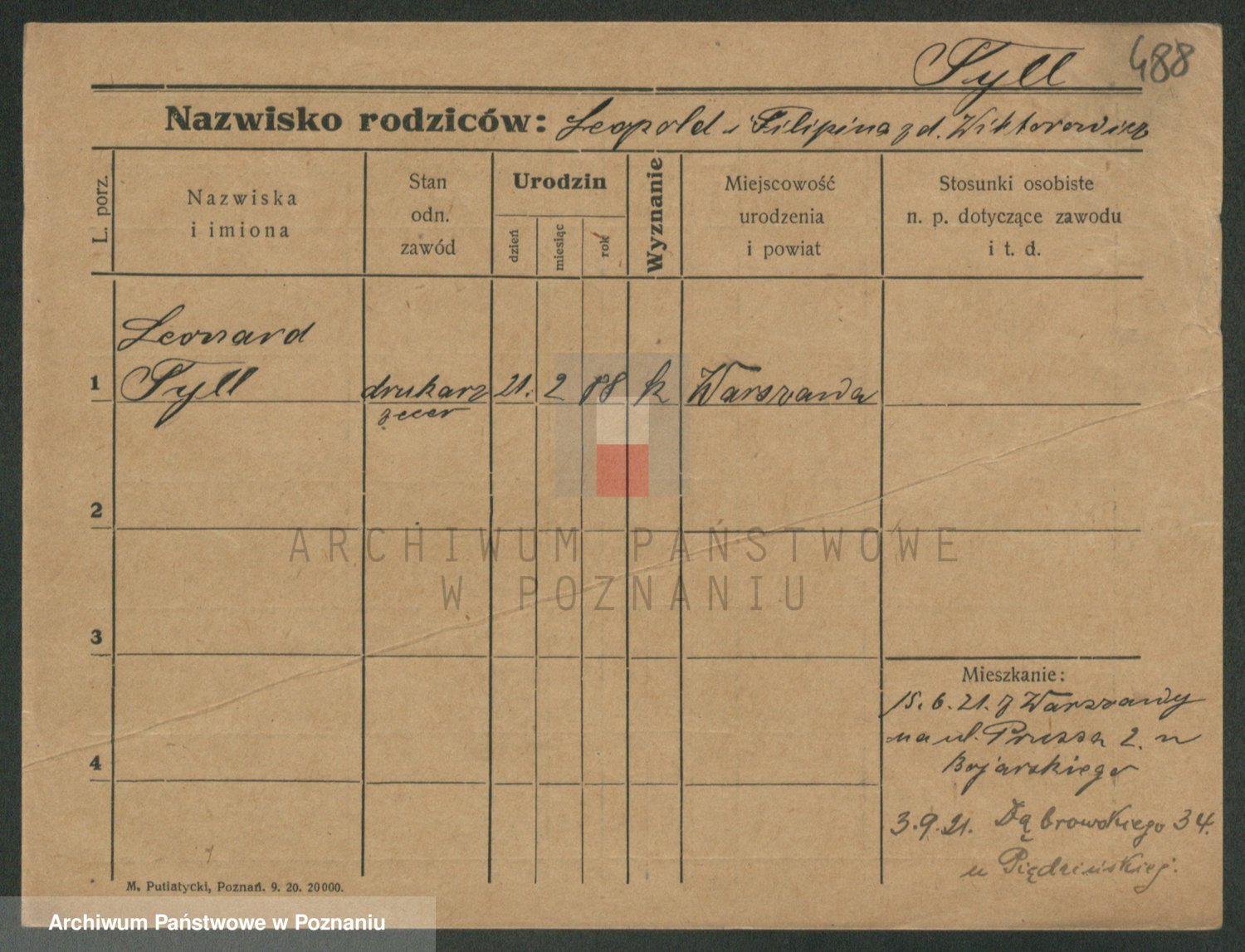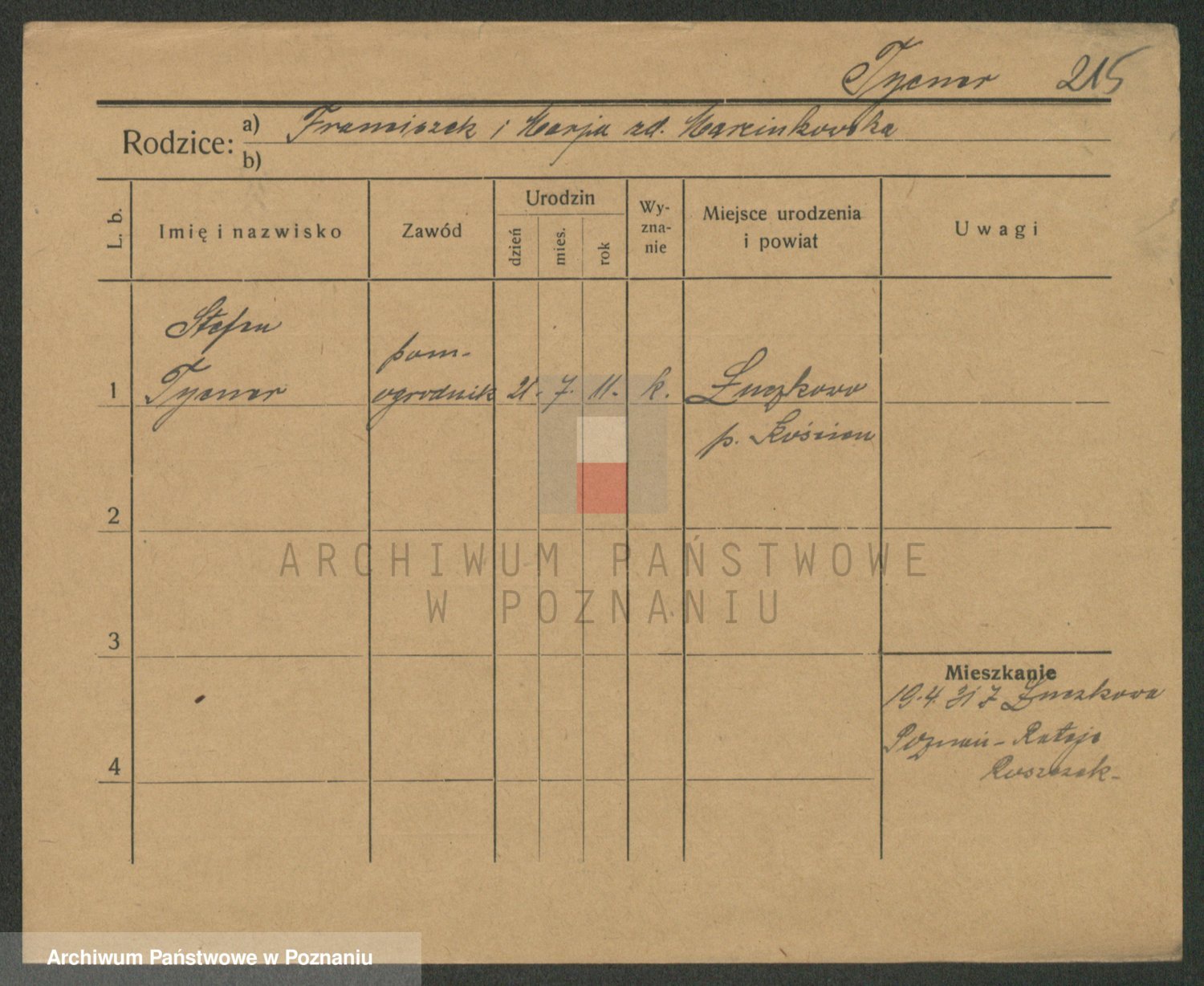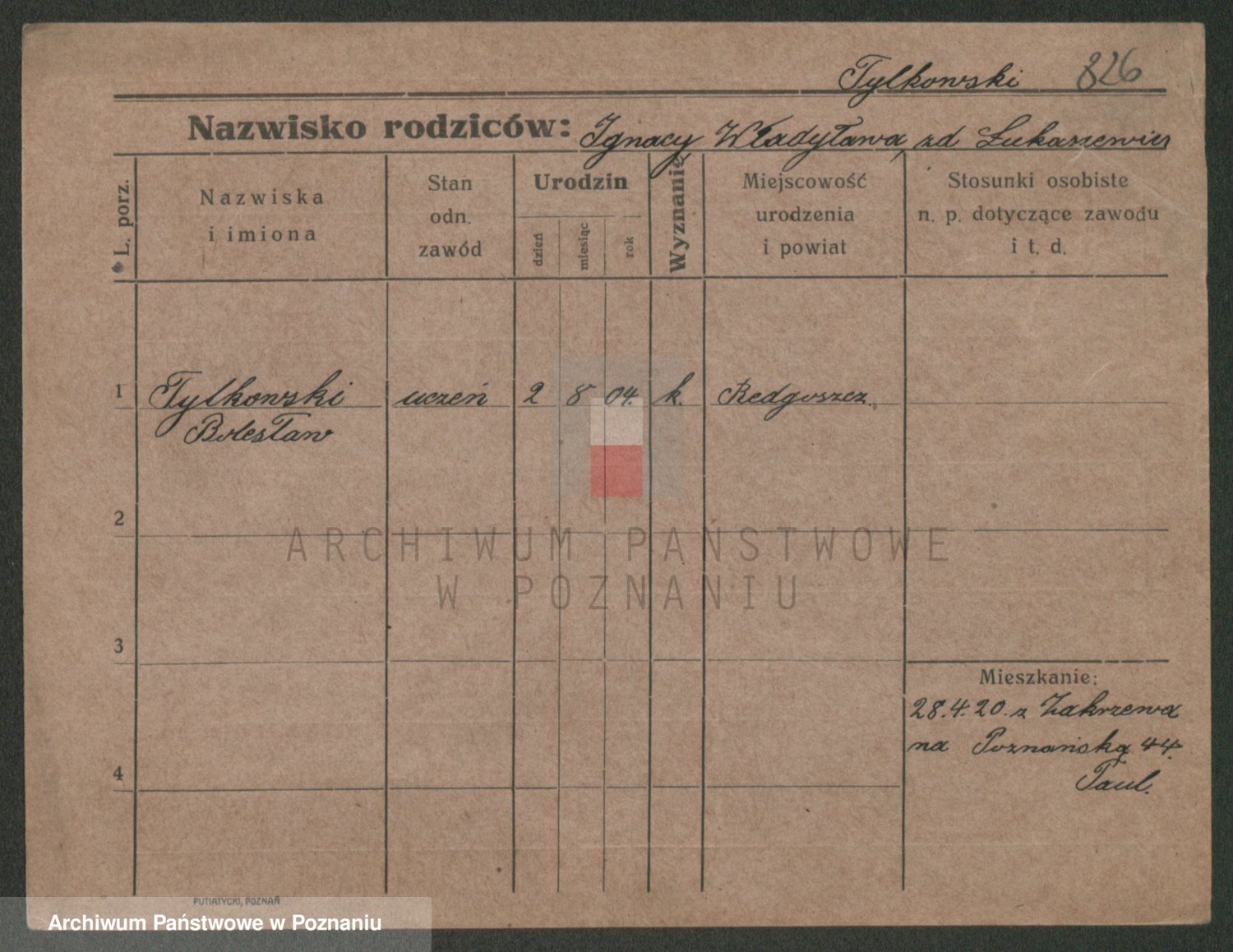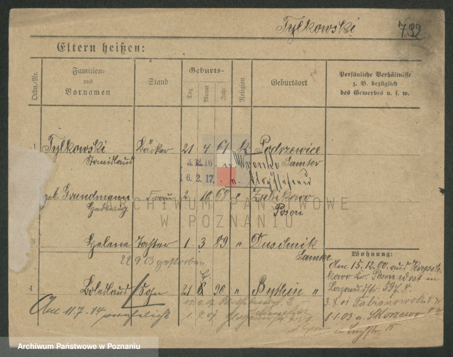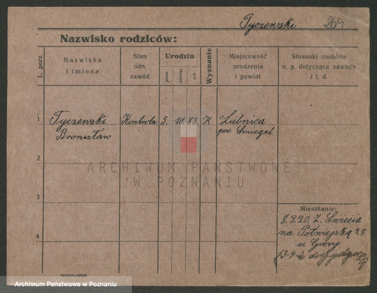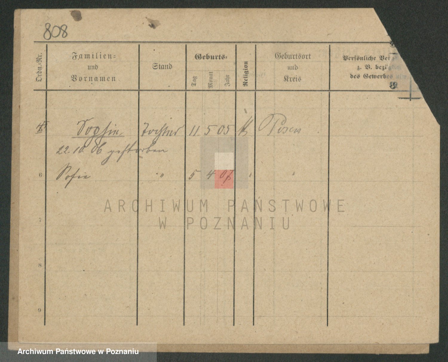 Podgląd karty osobowej dostępny jest po kliknięciu na nazwisko lub ikonkę karty. Można dokonywać powiększenia (ikony na górze) lub przechodzić między kolejnymi skanami (strzałki po bokach).