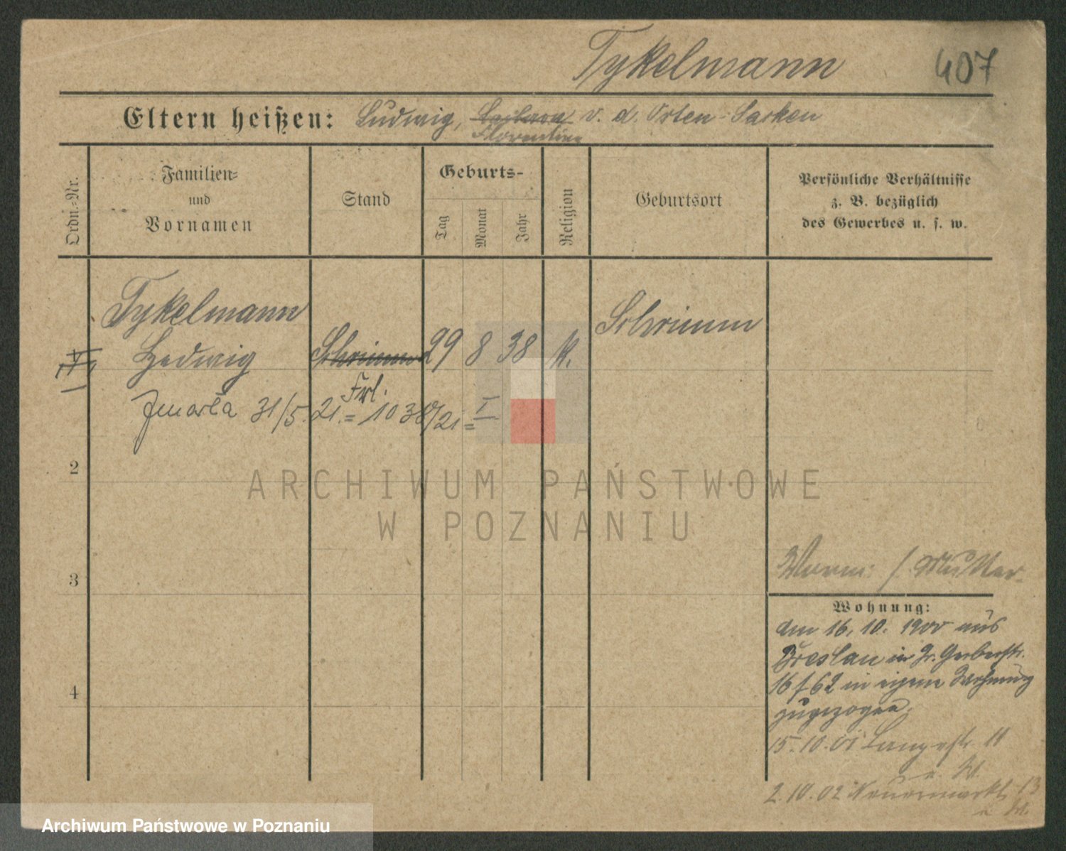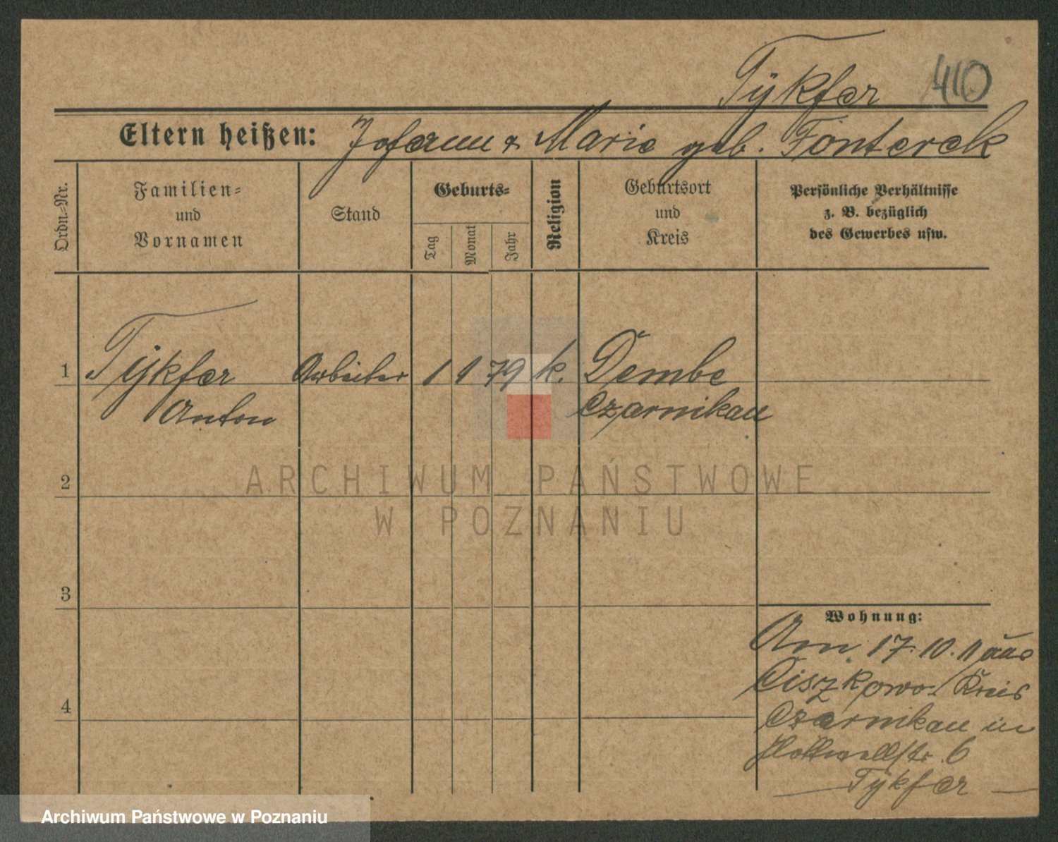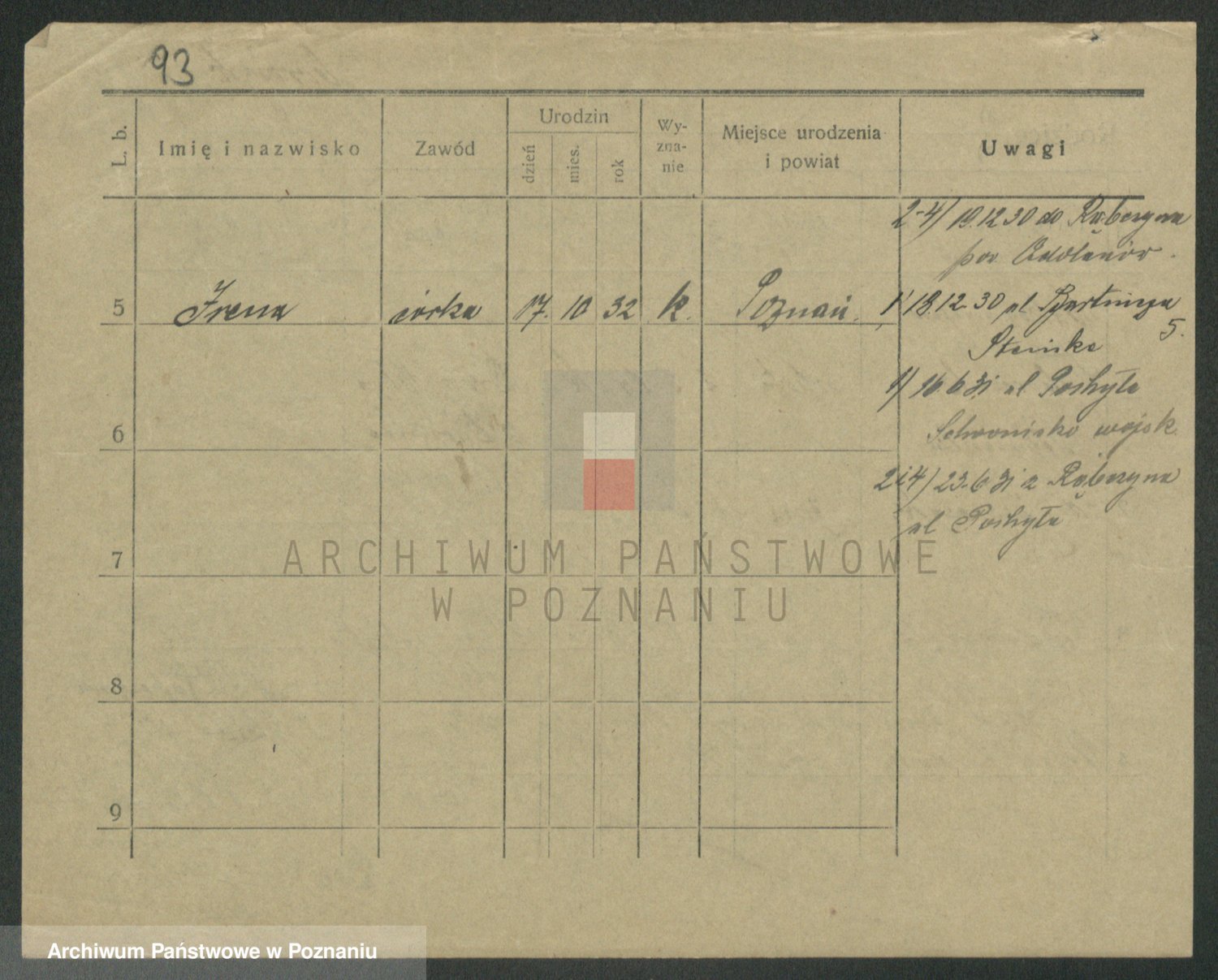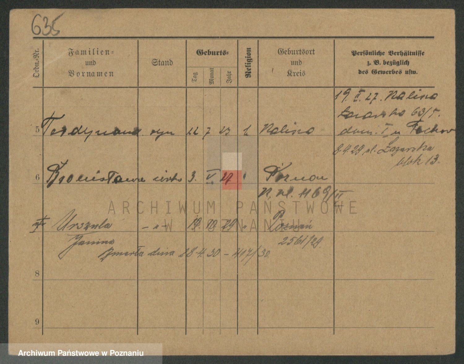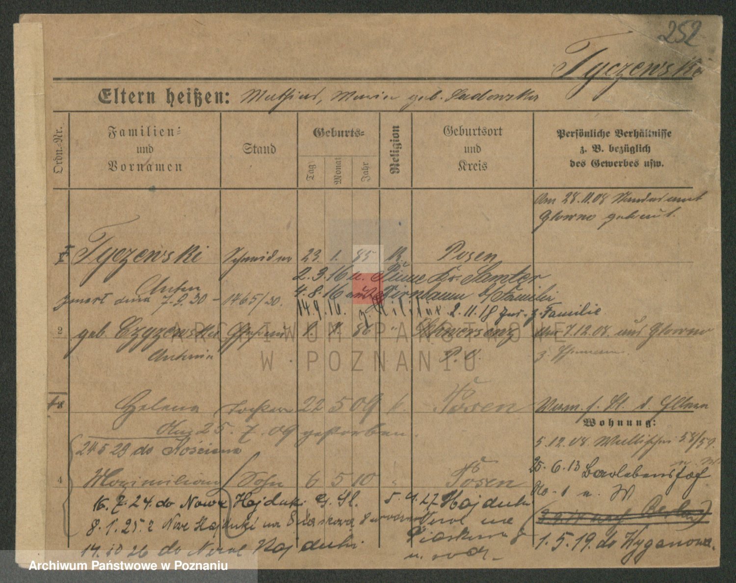 Podgląd karty osobowej dostępny jest po kliknięciu na nazwisko lub ikonkę karty. Można dokonywać powiększenia (ikony na górze) lub przechodzić między kolejnymi skanami (strzałki po bokach).