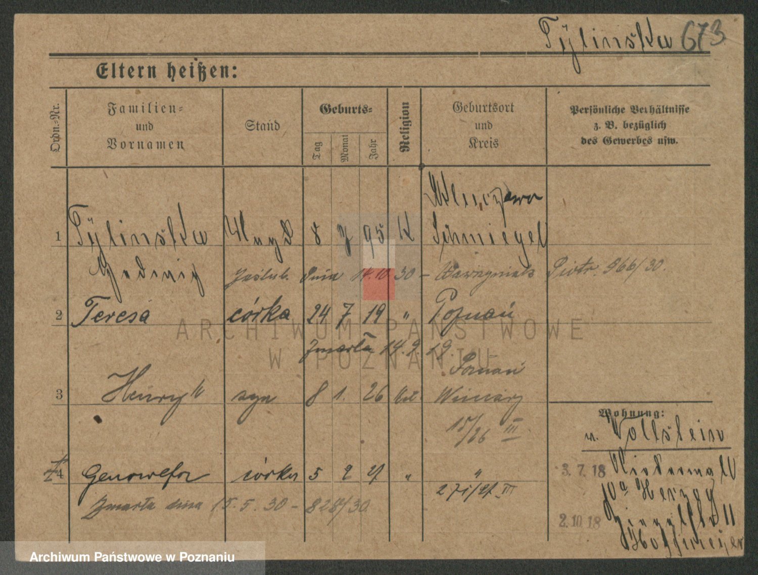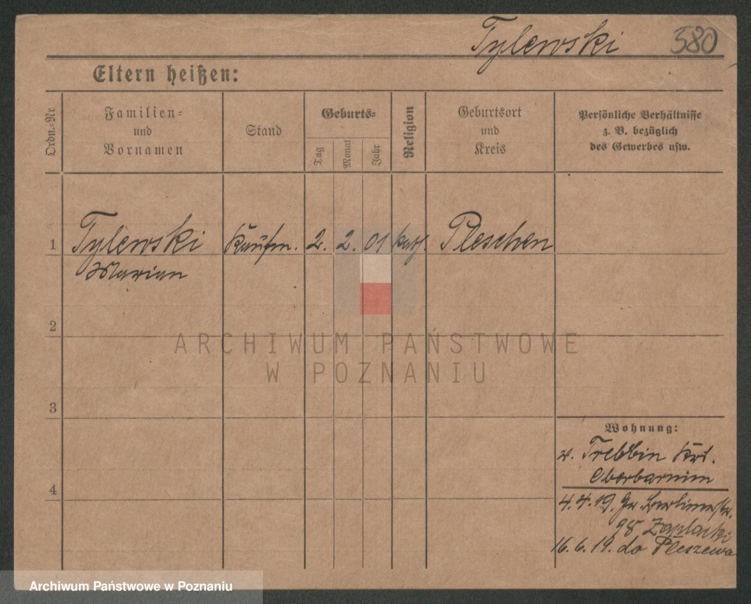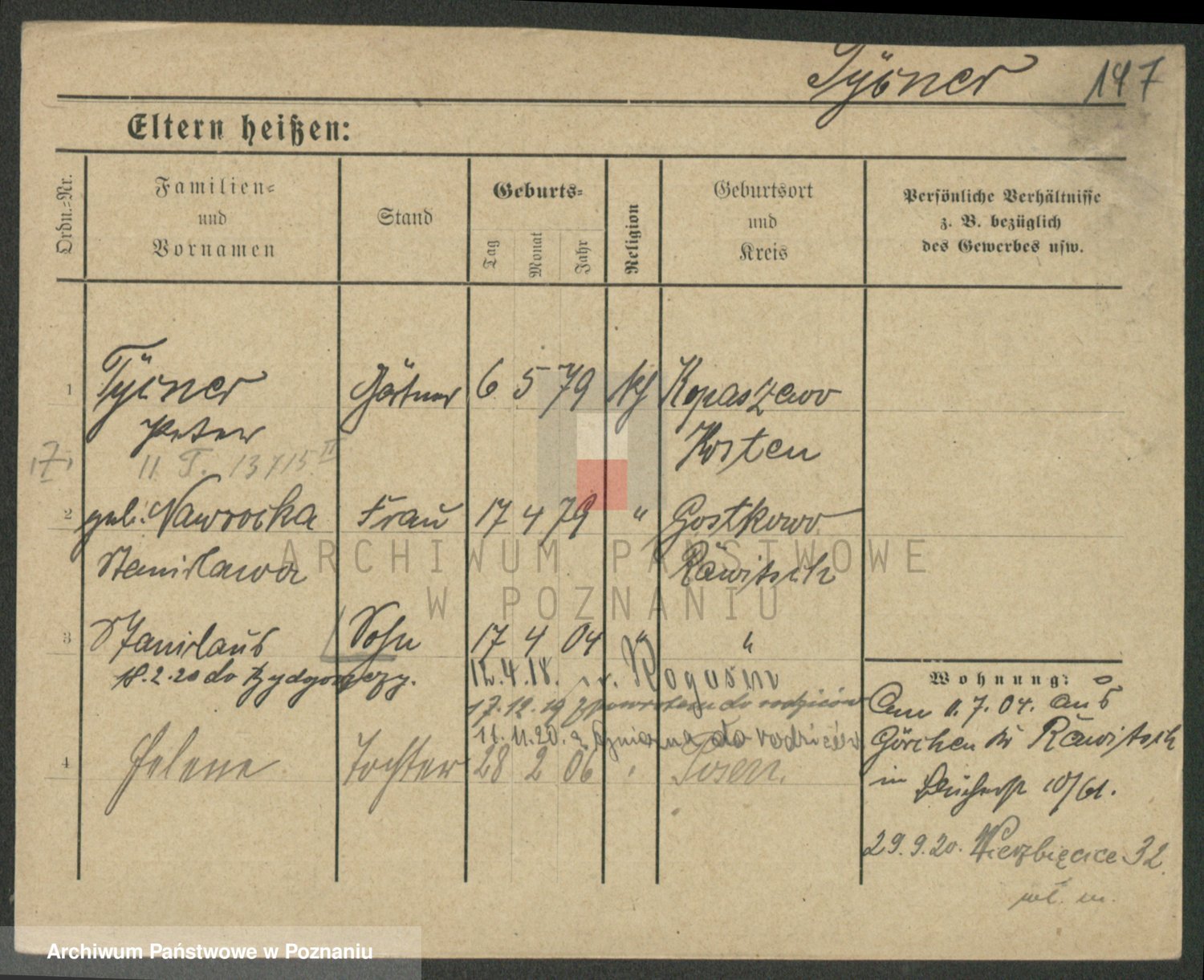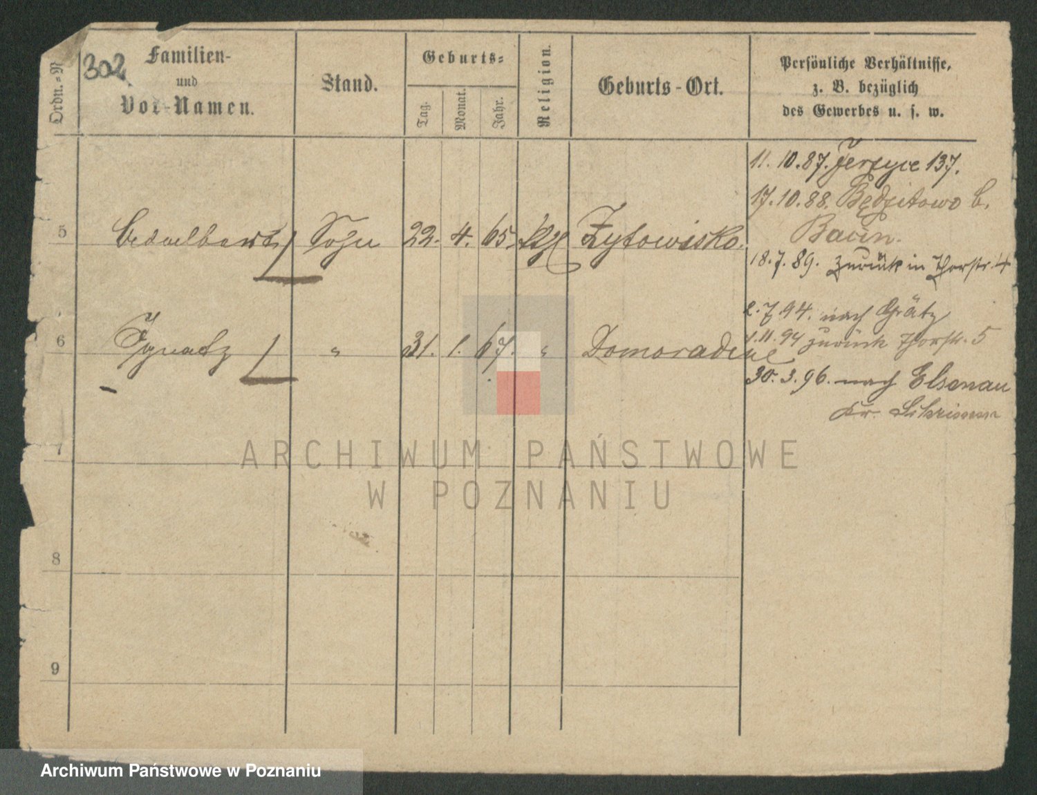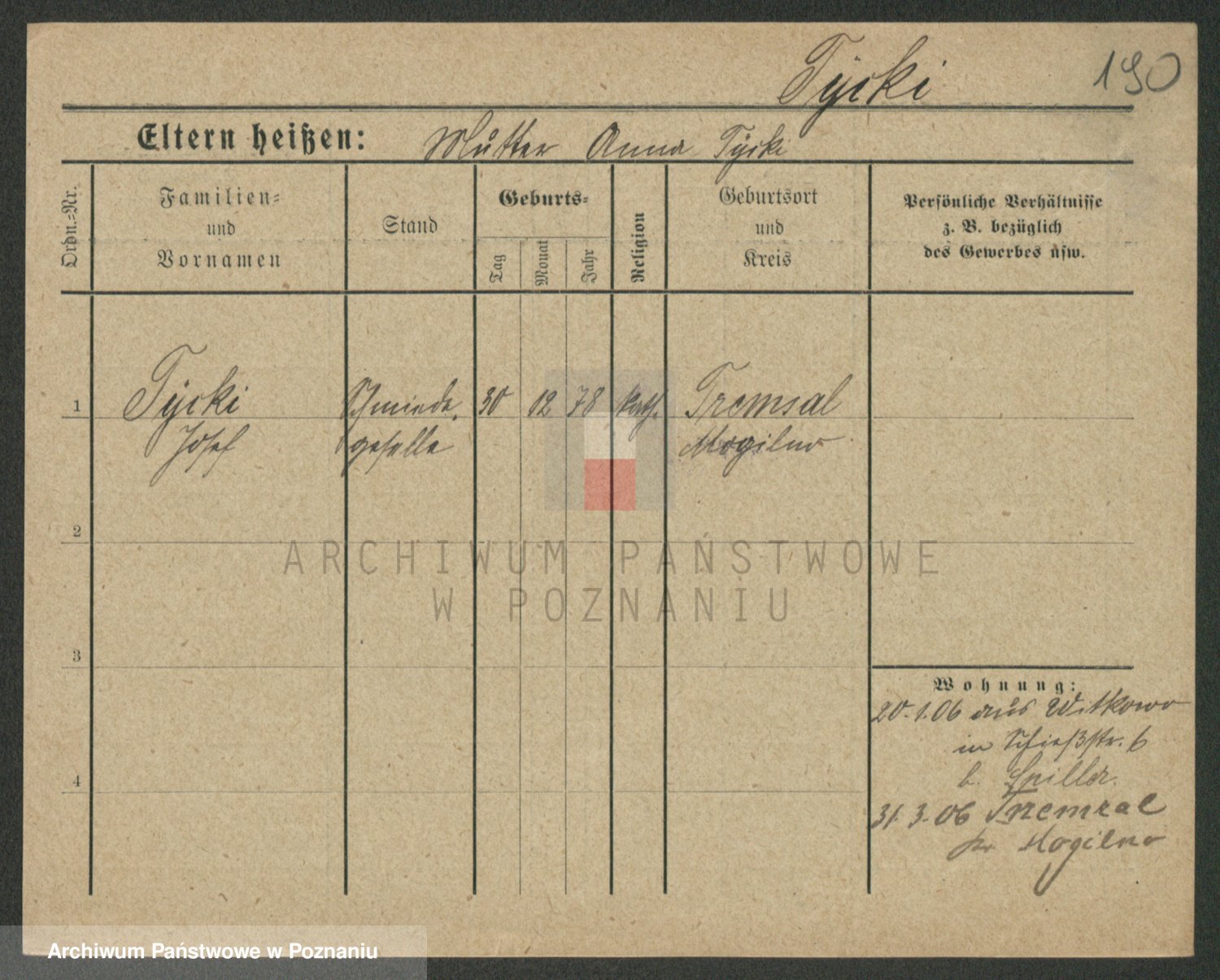 Podgląd karty osobowej dostępny jest po kliknięciu na nazwisko lub ikonkę karty. Można dokonywać powiększenia (ikony na górze) lub przechodzić między kolejnymi skanami (strzałki po bokach).