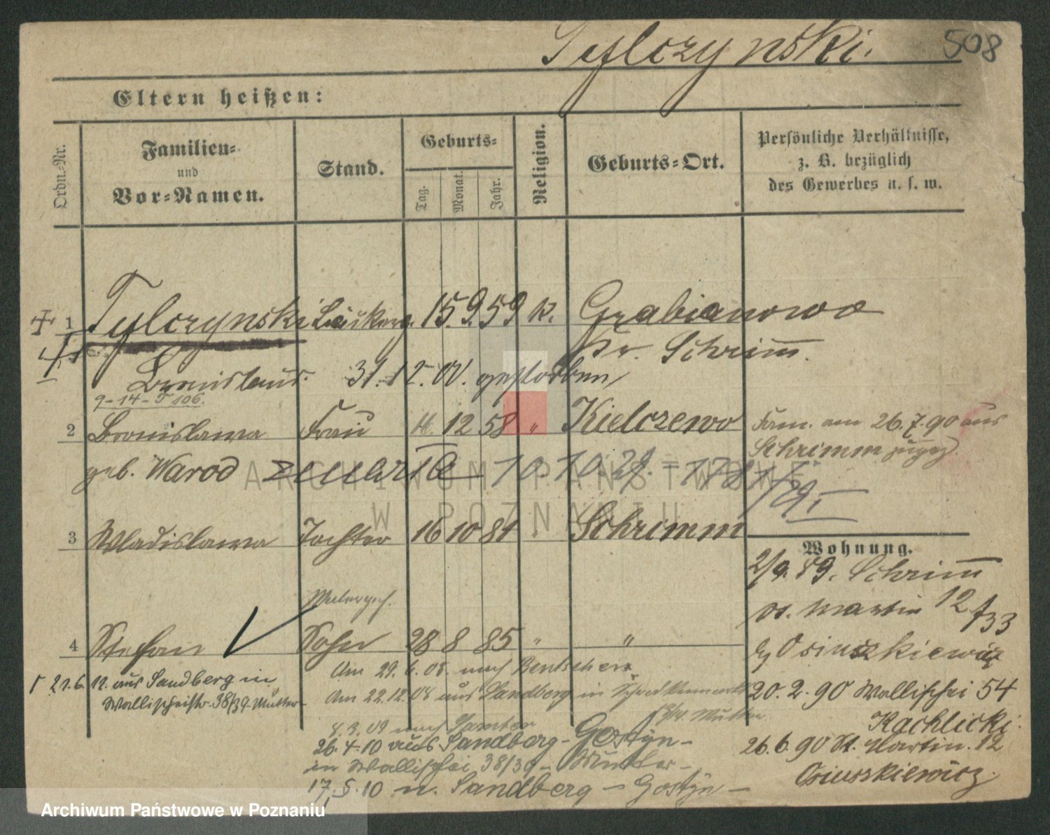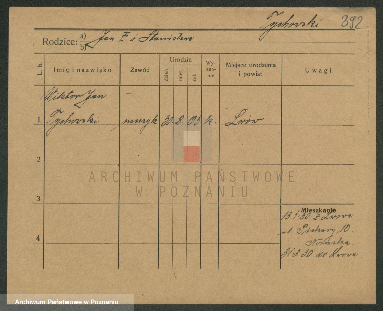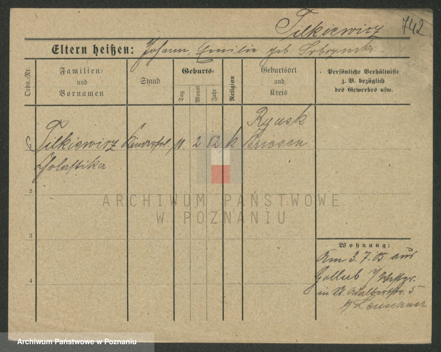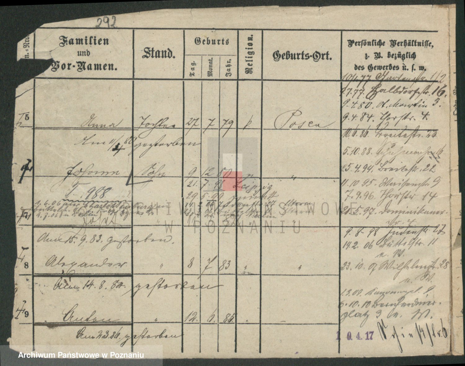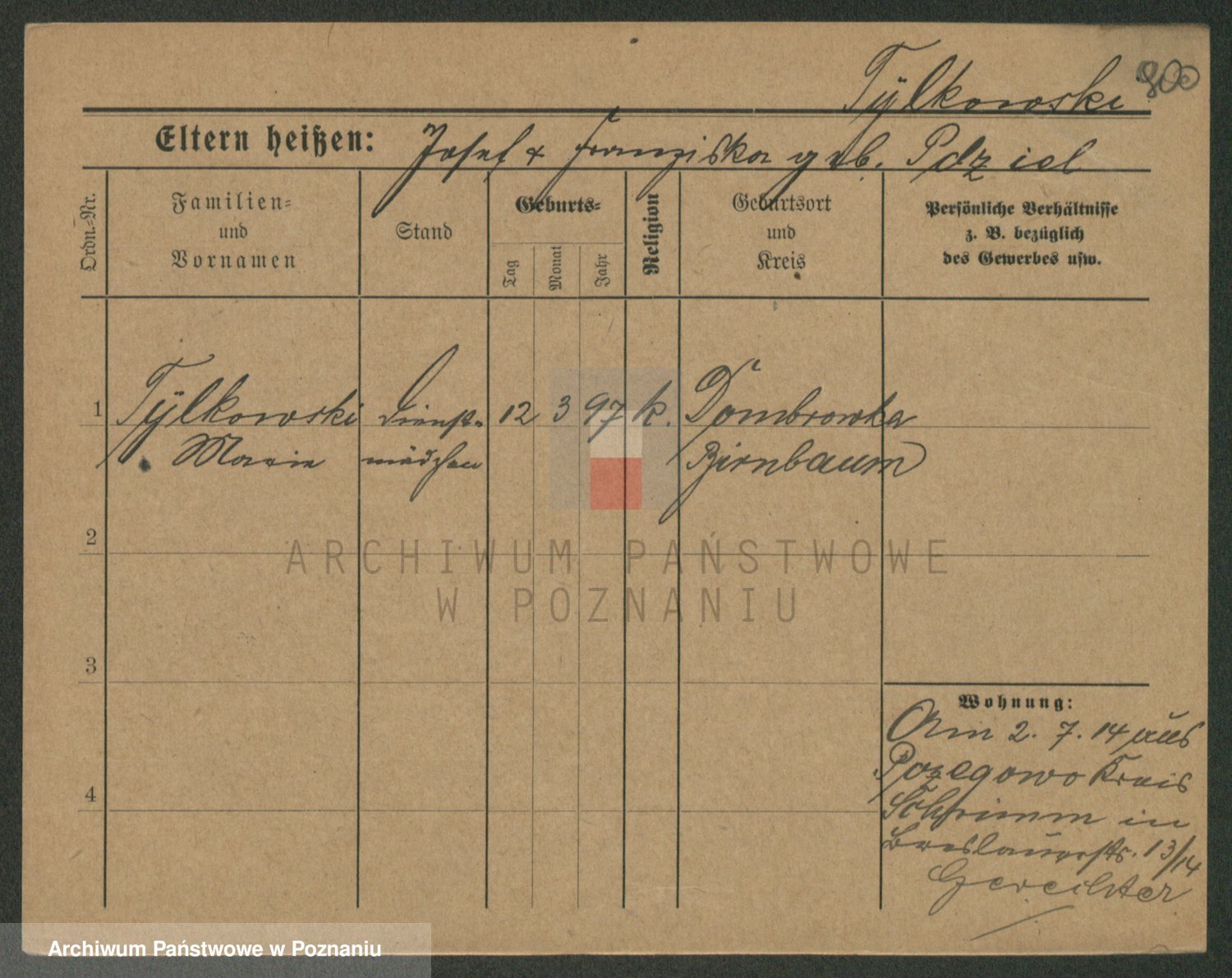 Podgląd karty osobowej dostępny jest po kliknięciu na nazwisko lub ikonkę karty. Można dokonywać powiększenia (ikony na górze) lub przechodzić między kolejnymi skanami (strzałki po bokach).