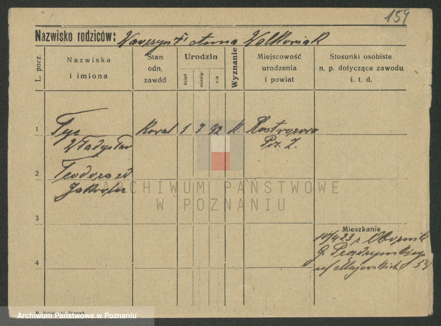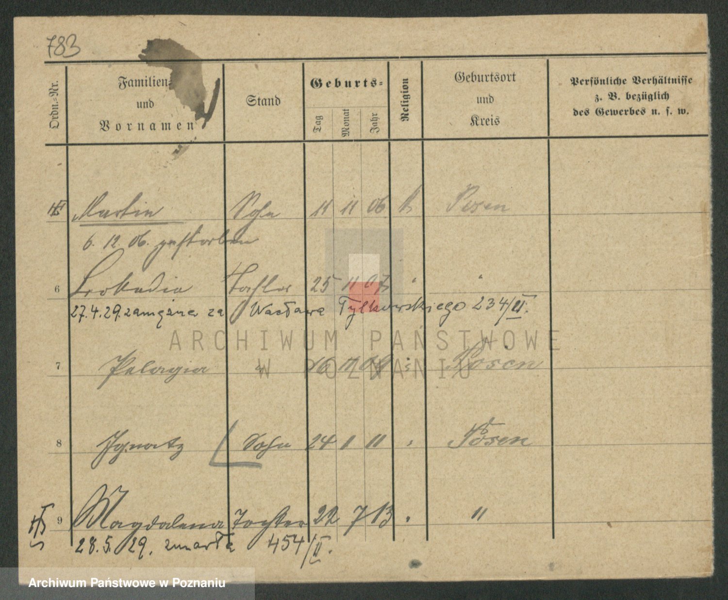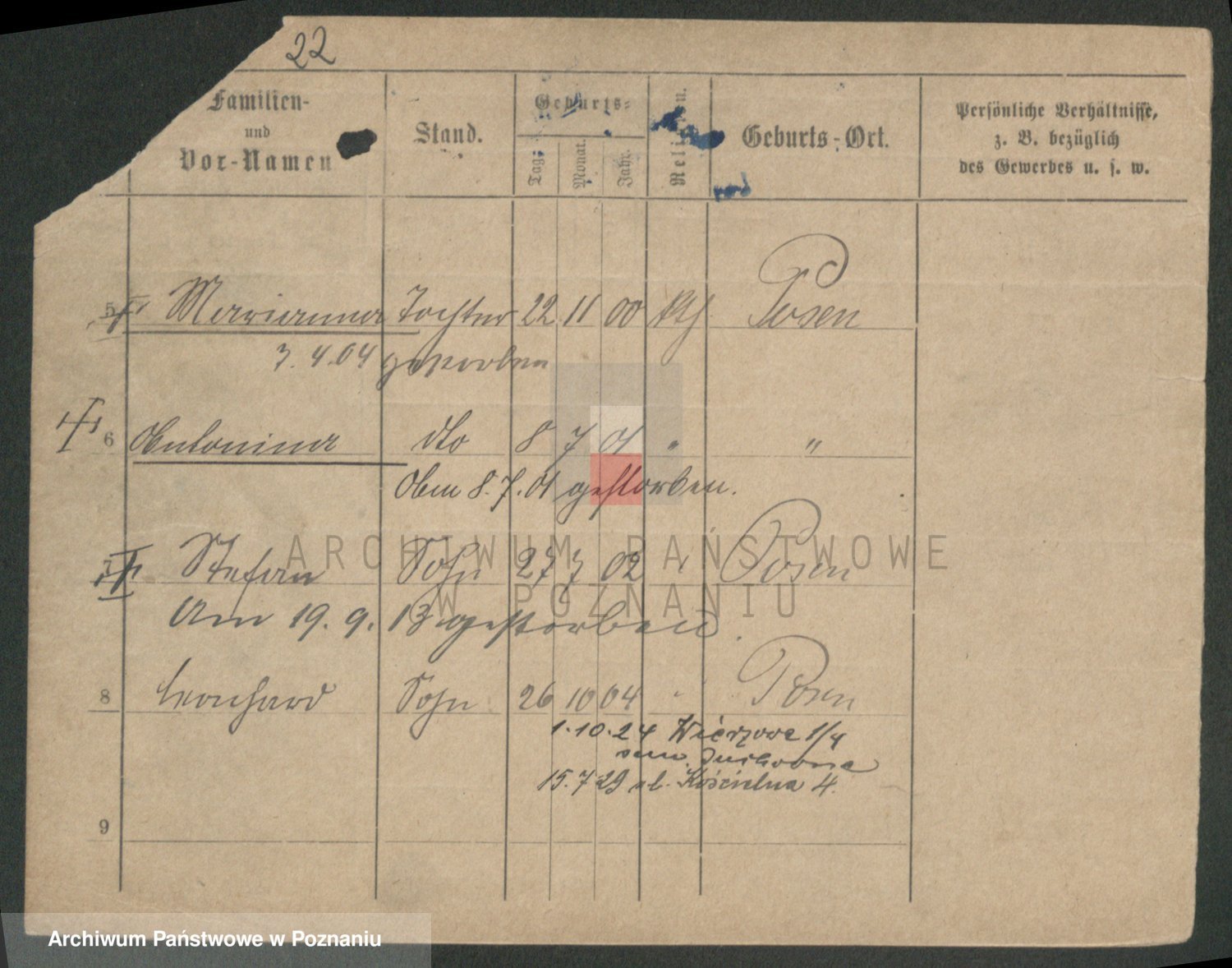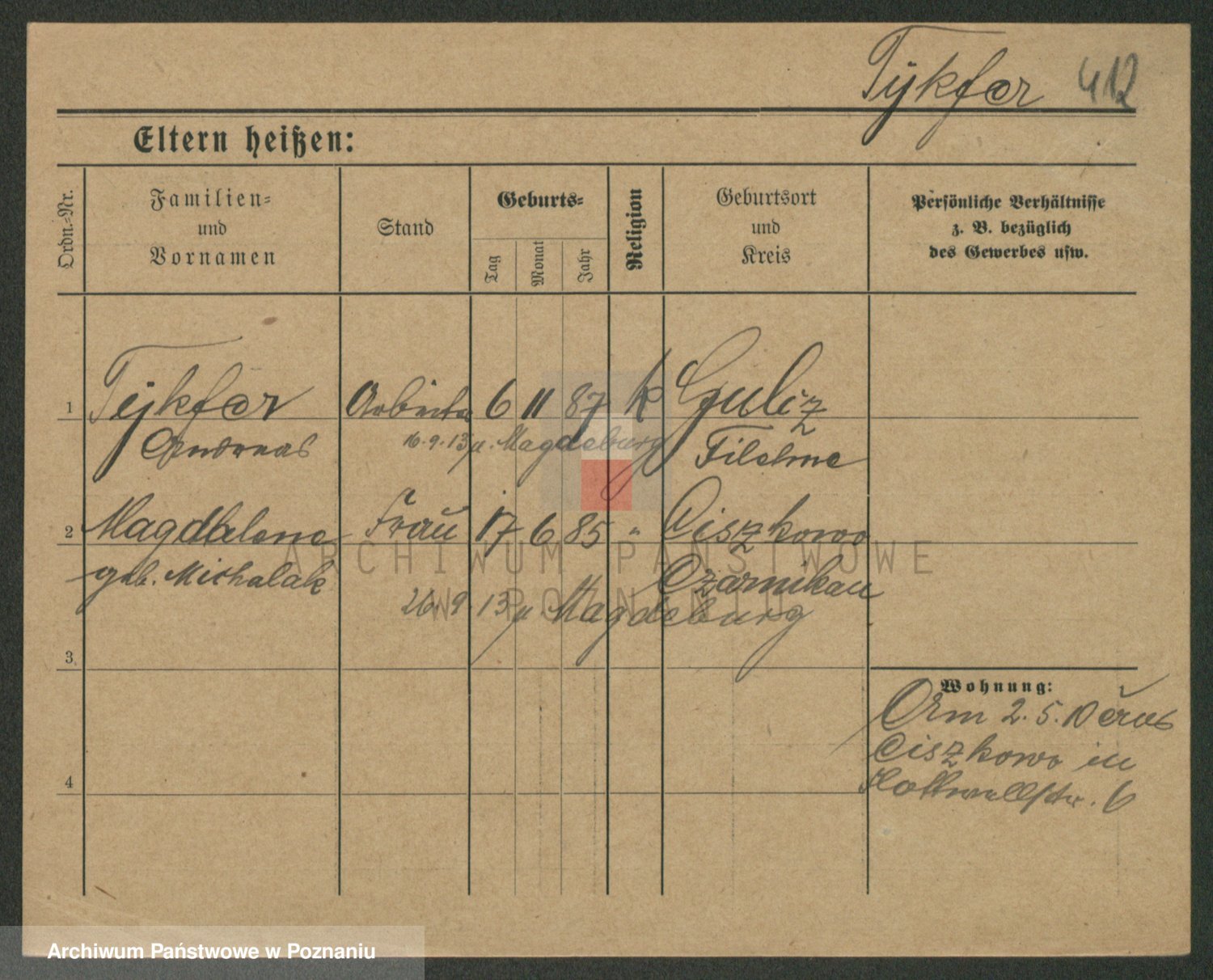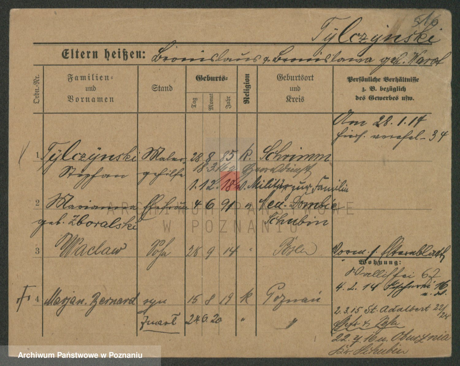 Podgląd karty osobowej dostępny jest po kliknięciu na nazwisko lub ikonkę karty. Można dokonywać powiększenia (ikony na górze) lub przechodzić między kolejnymi skanami (strzałki po bokach).