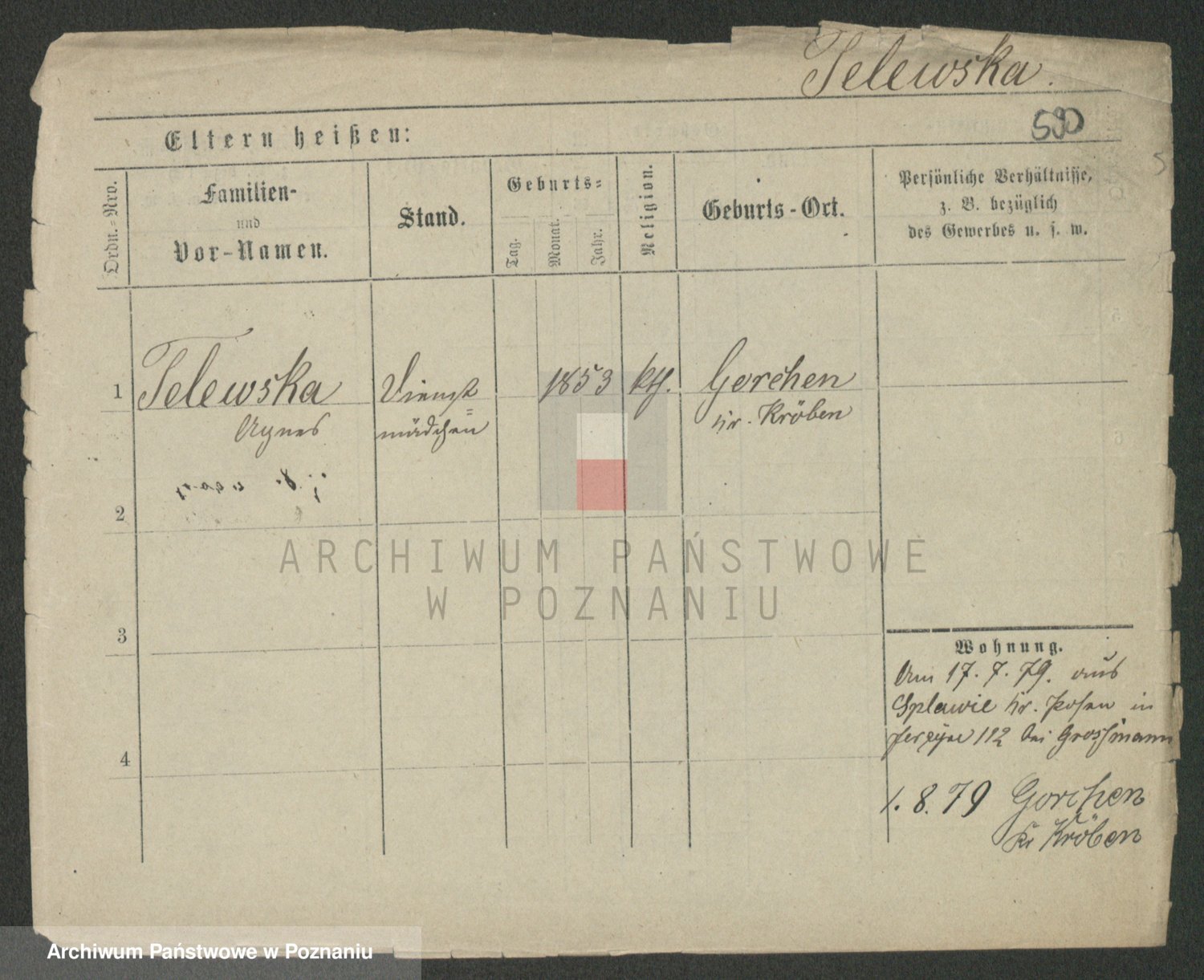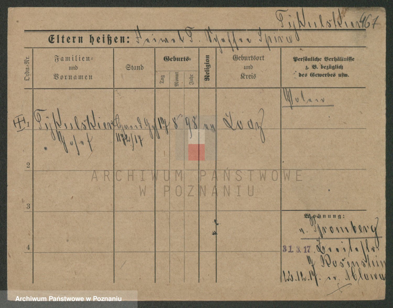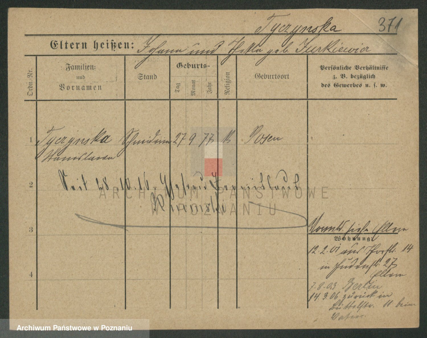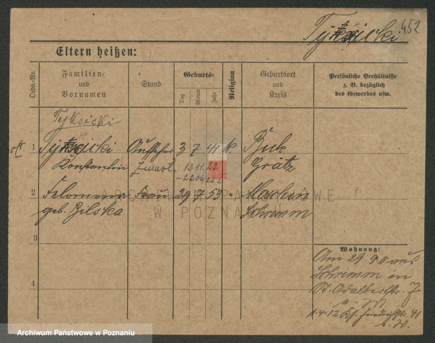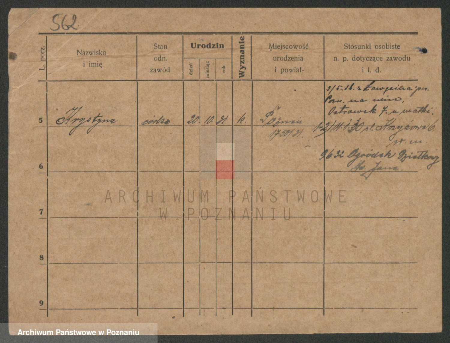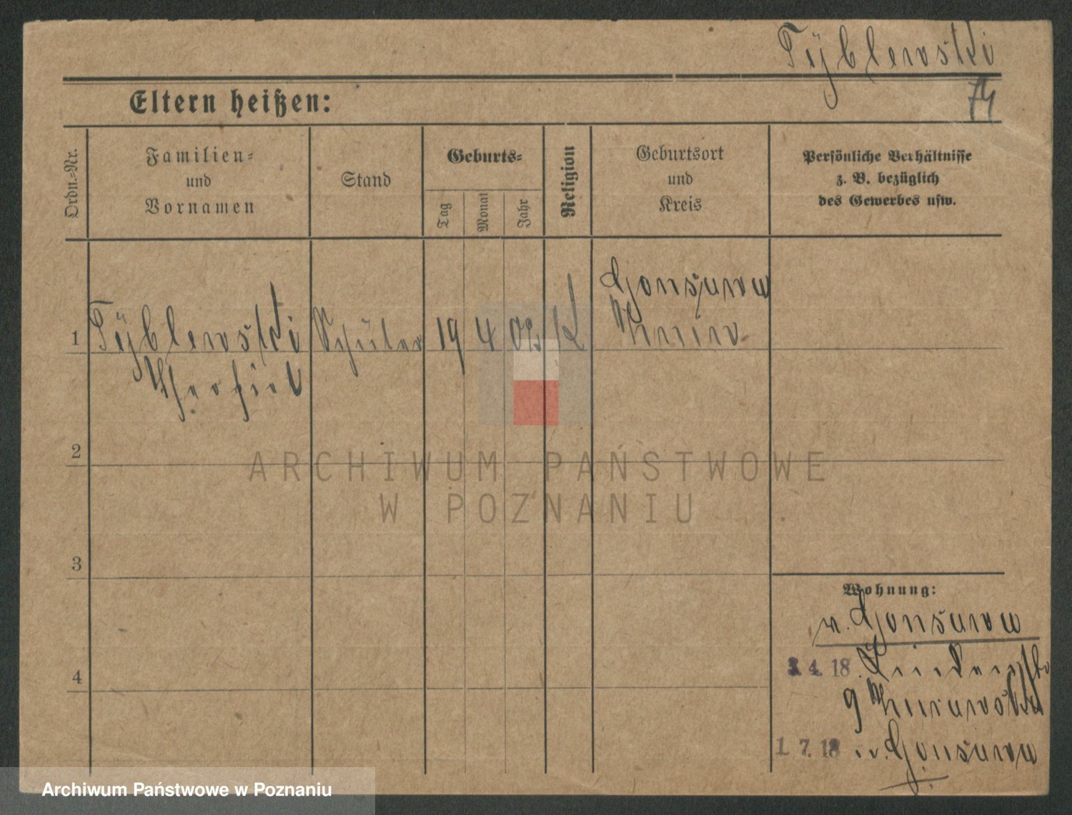 Podgląd karty osobowej dostępny jest po kliknięciu na nazwisko lub ikonkę karty. Można dokonywać powiększenia (ikony na górze) lub przechodzić między kolejnymi skanami (strzałki po bokach).