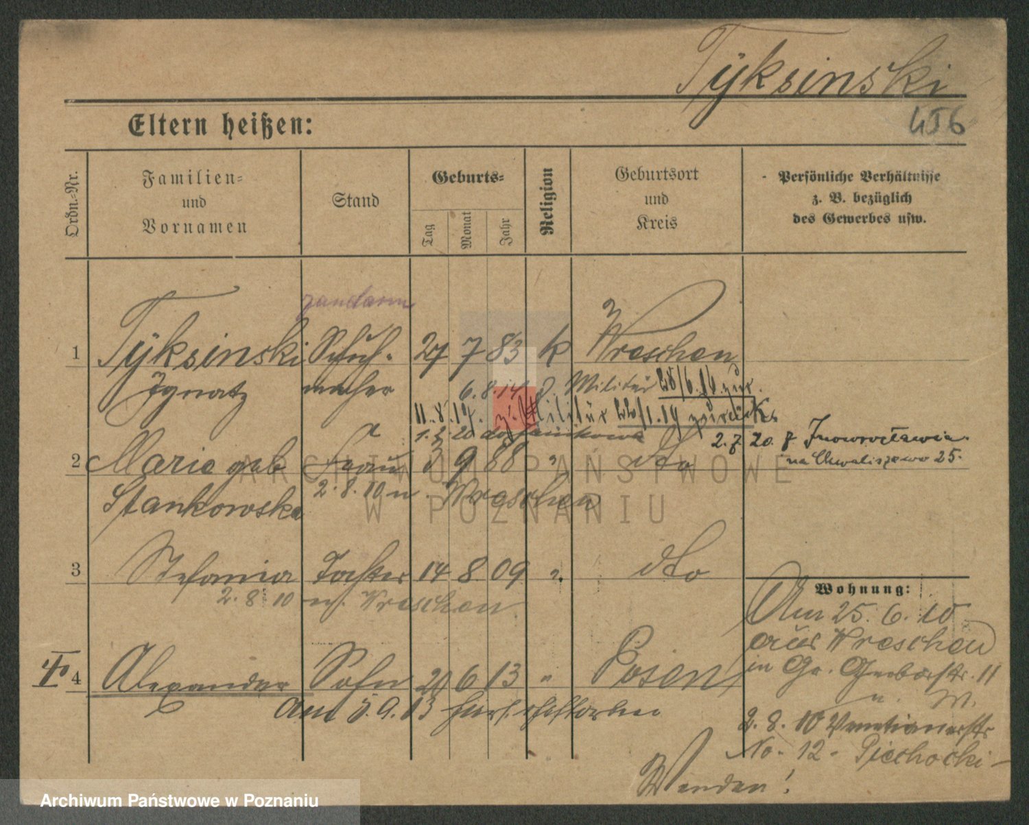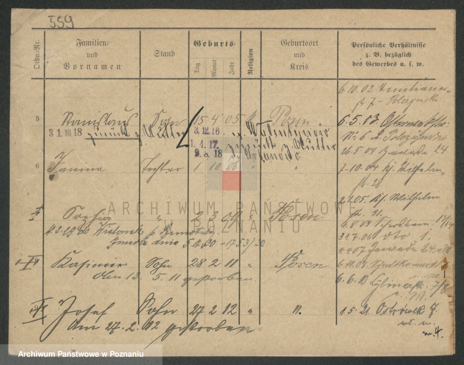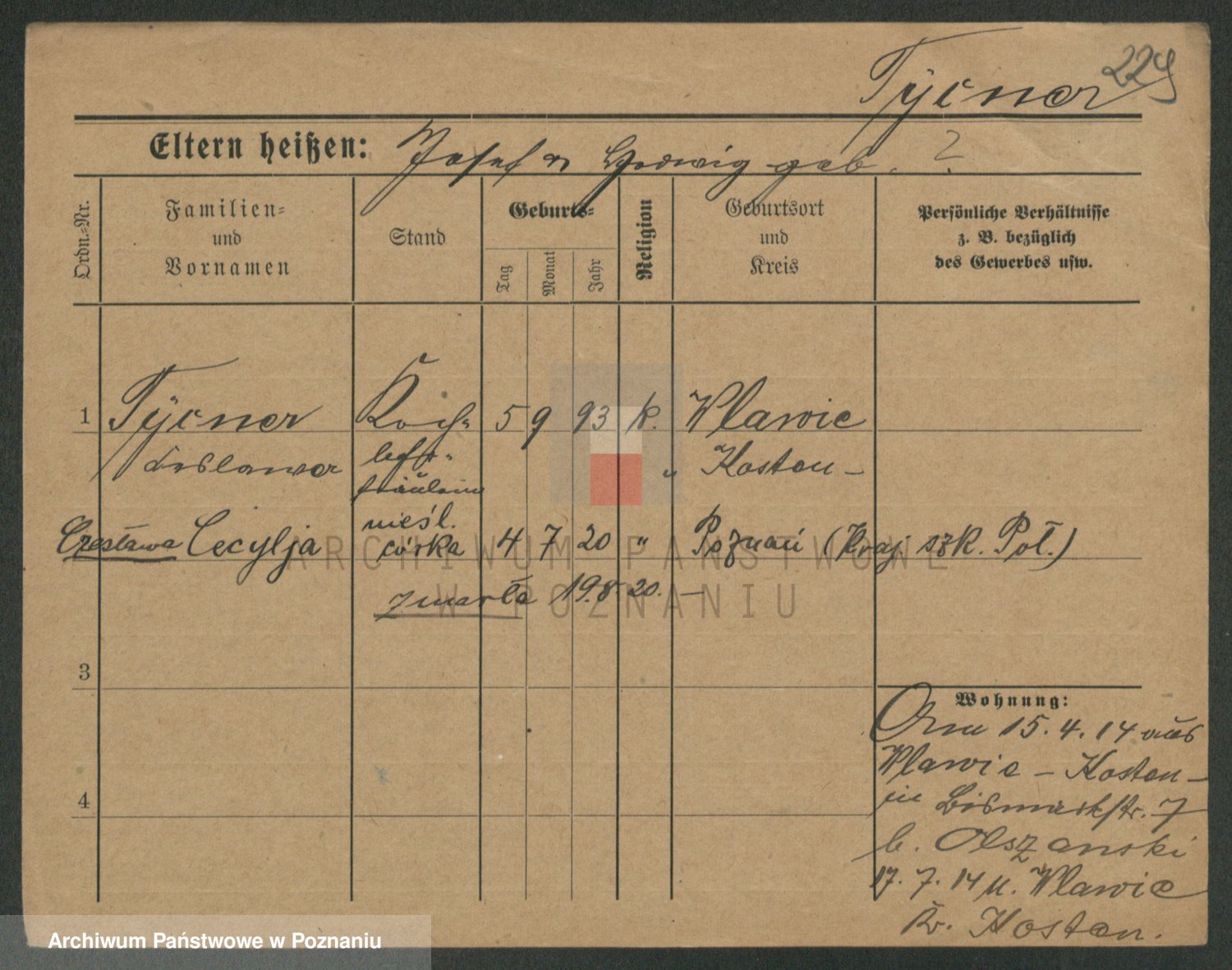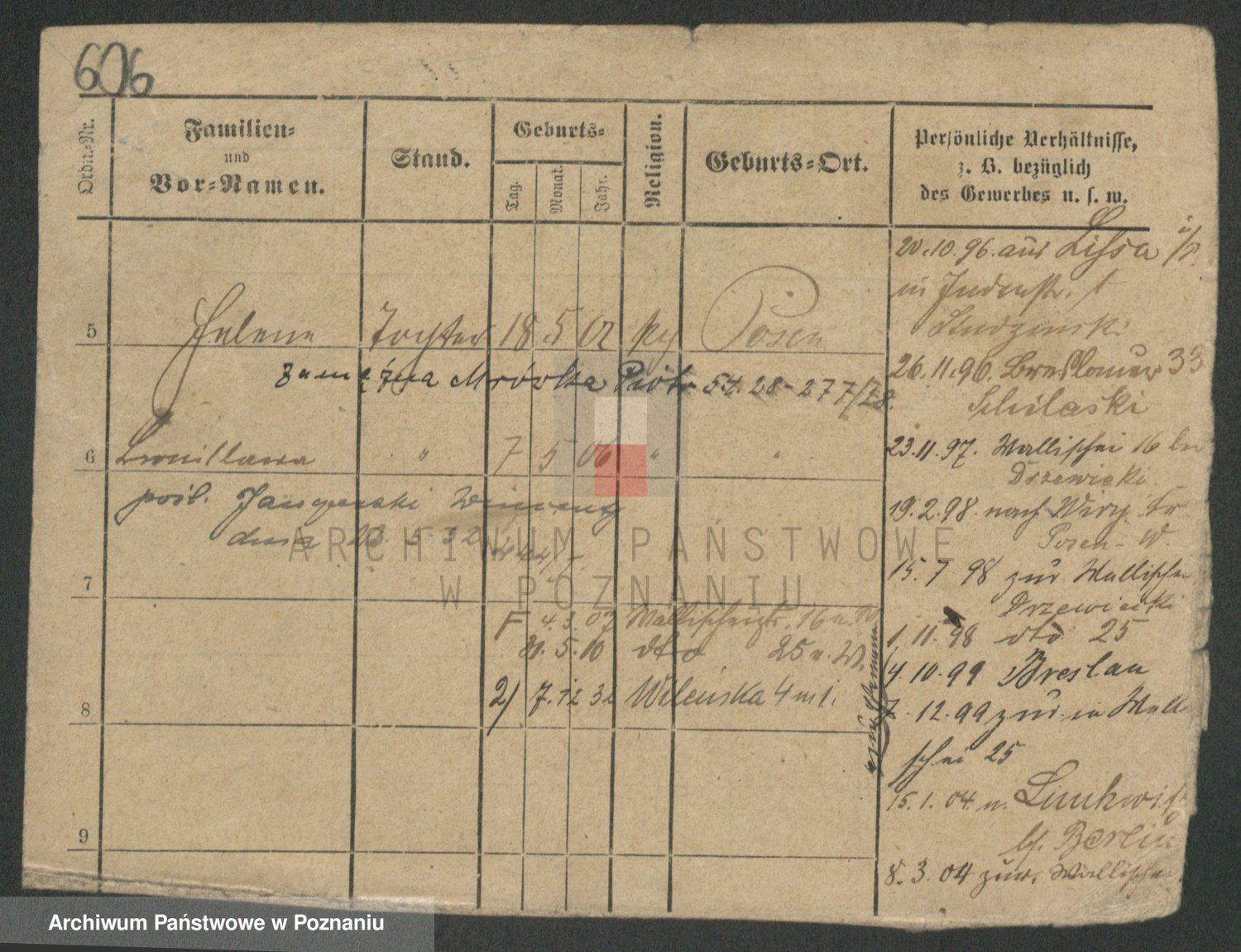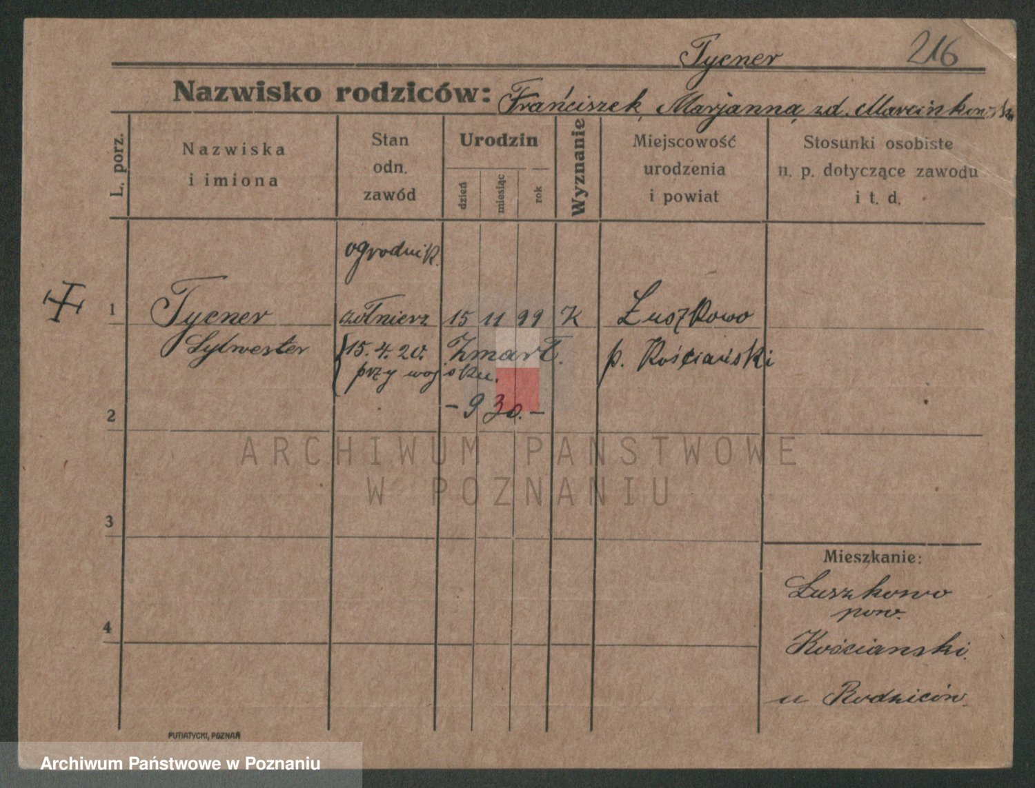 Podgląd karty osobowej dostępny jest po kliknięciu na nazwisko lub ikonkę karty. Można dokonywać powiększenia (ikony na górze) lub przechodzić między kolejnymi skanami (strzałki po bokach).