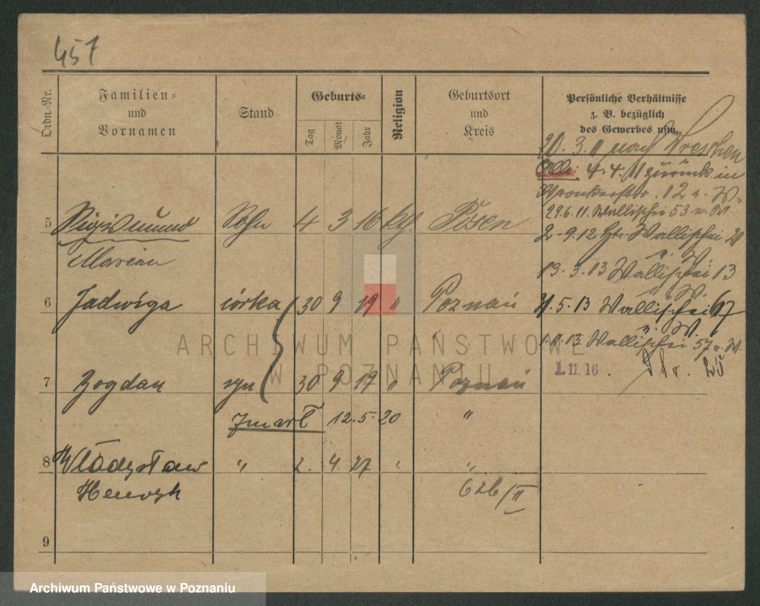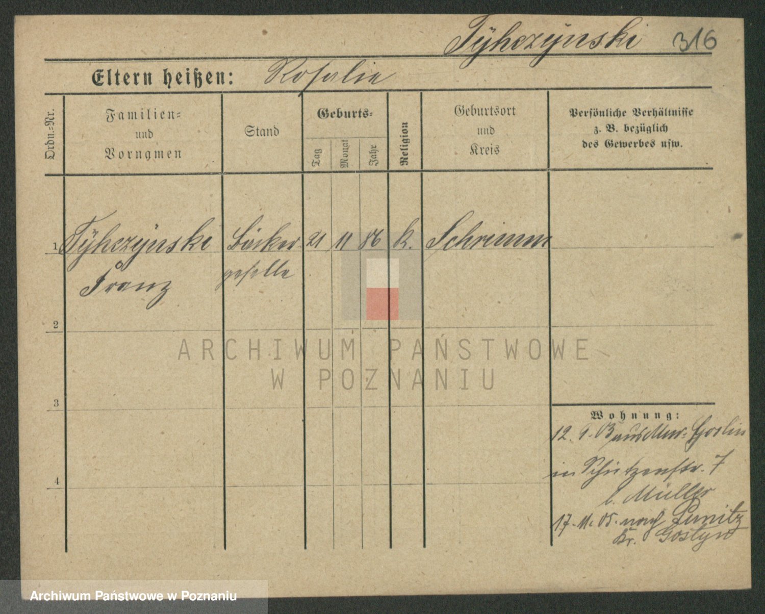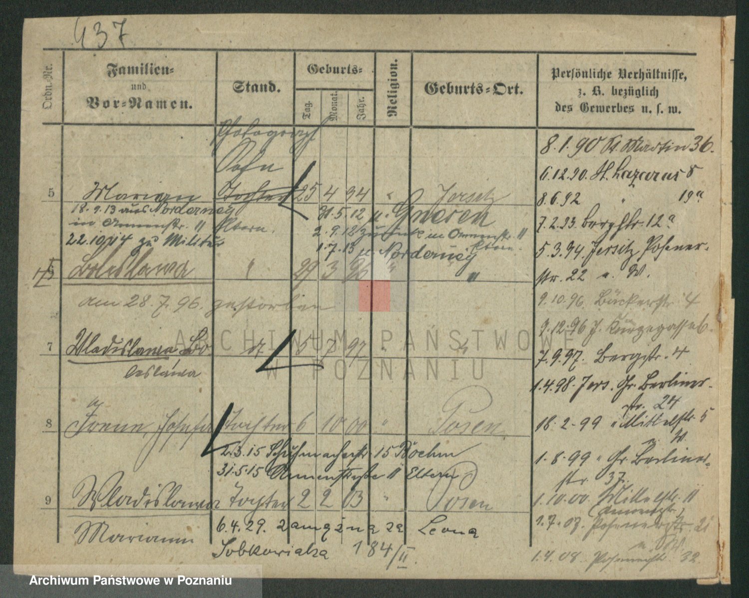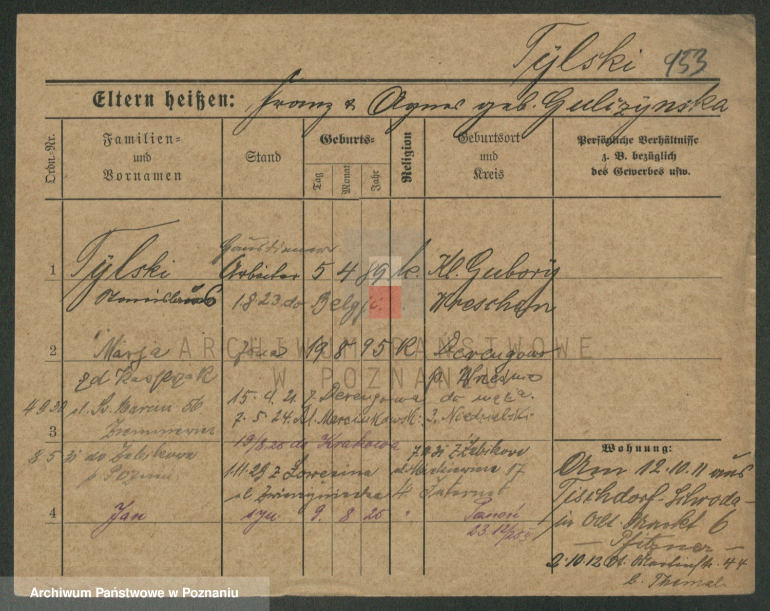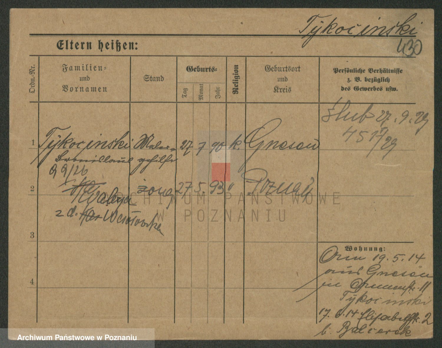 Podgląd karty osobowej dostępny jest po kliknięciu na nazwisko lub ikonkę karty. Można dokonywać powiększenia (ikony na górze) lub przechodzić między kolejnymi skanami (strzałki po bokach).