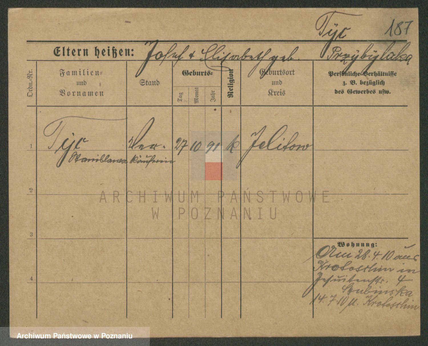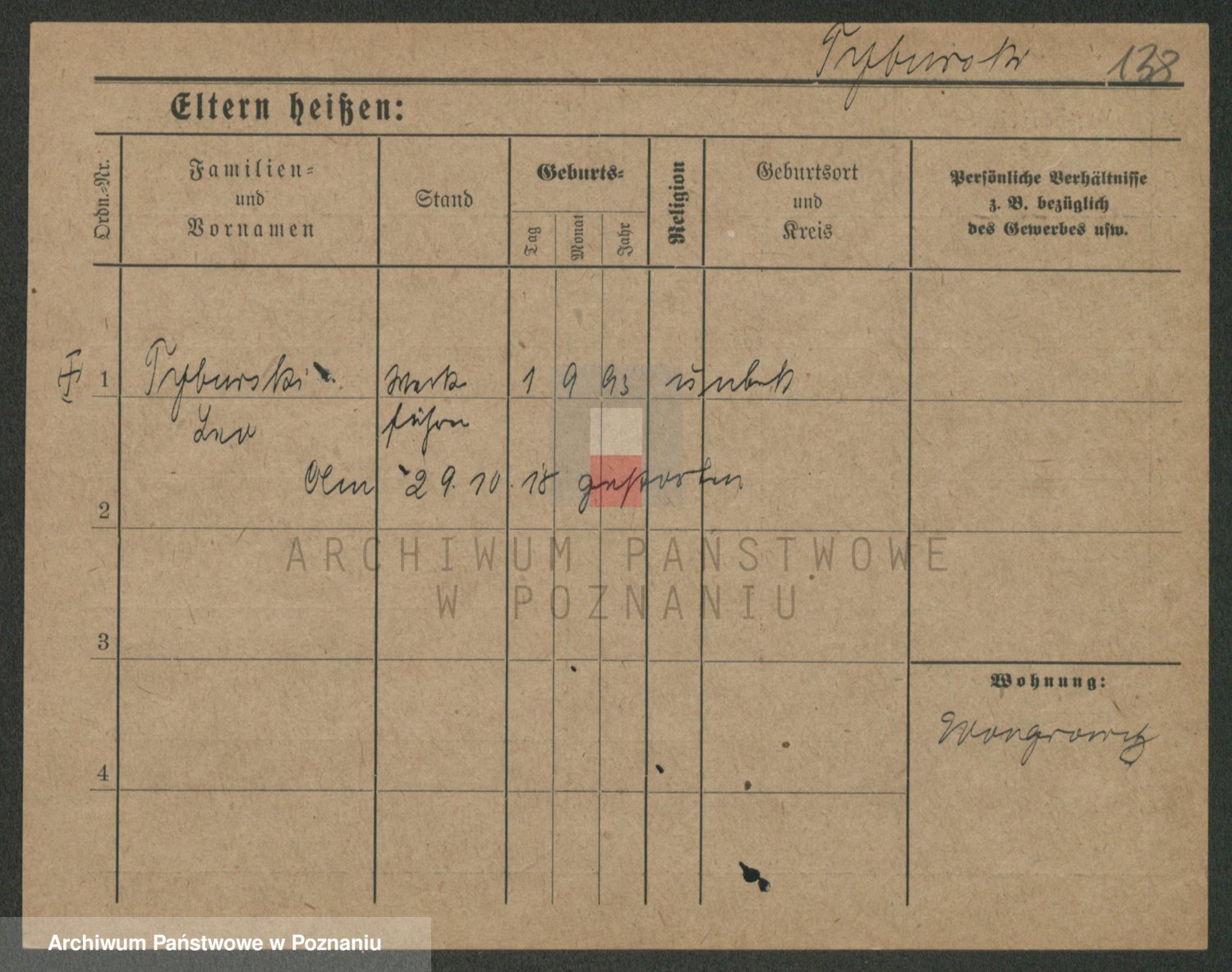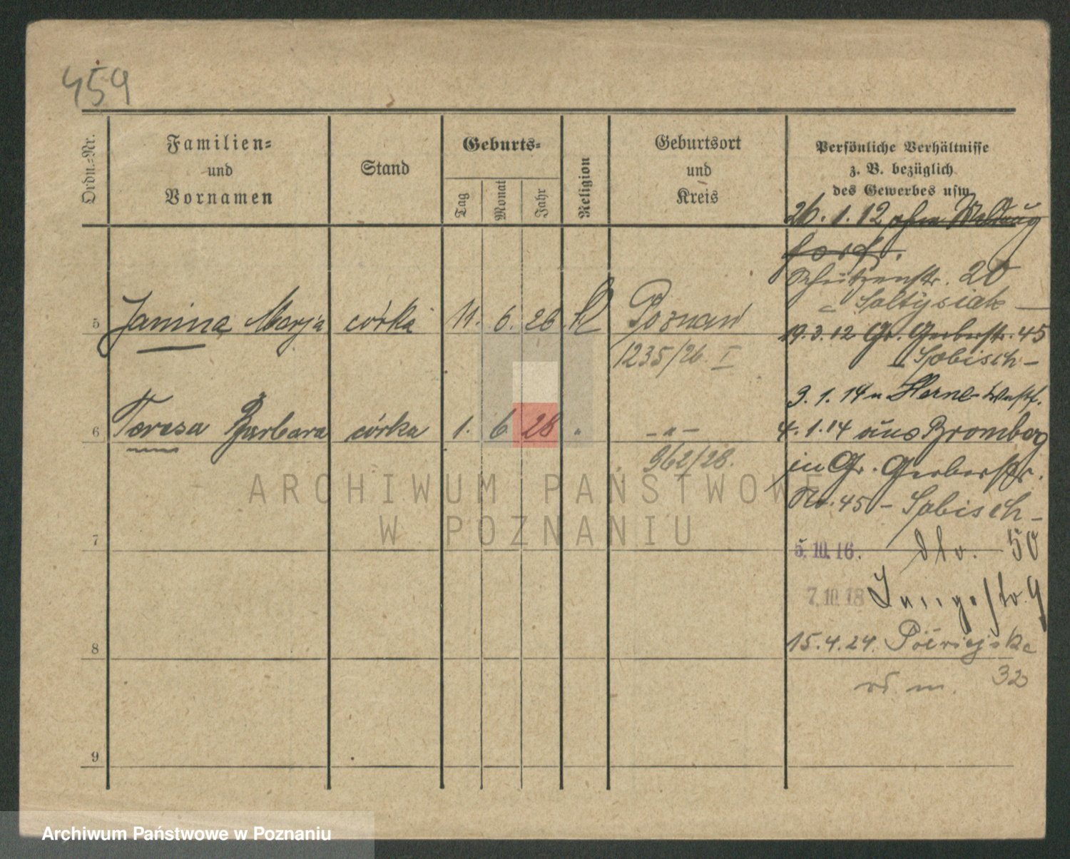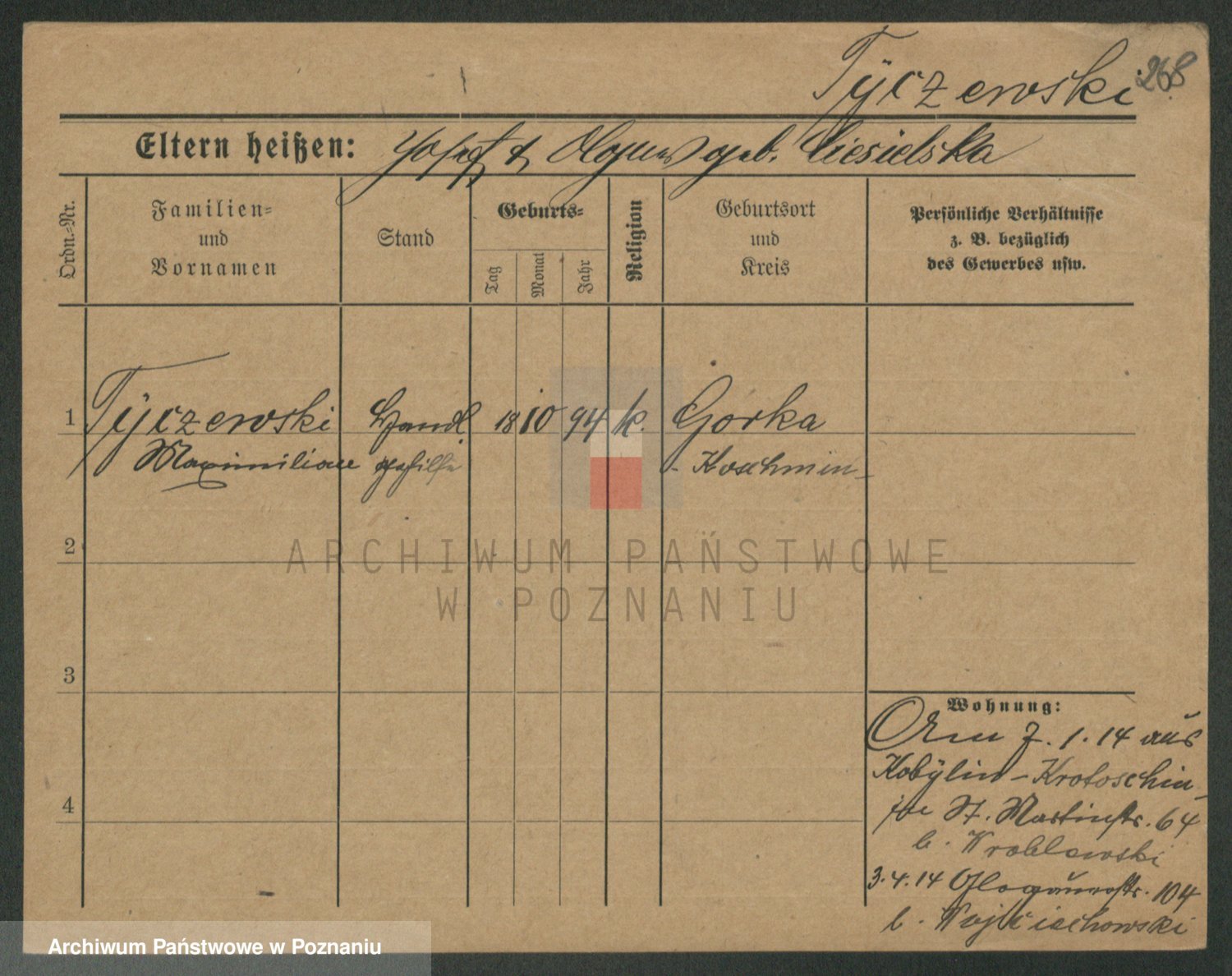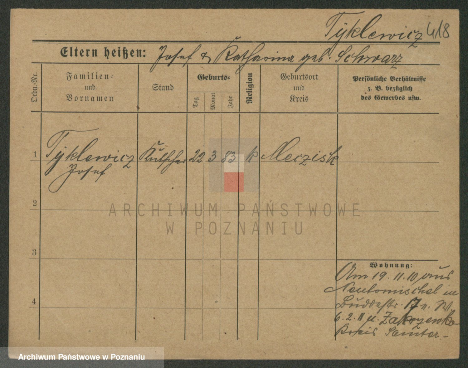 Podgląd karty osobowej dostępny jest po kliknięciu na nazwisko lub ikonkę karty. Można dokonywać powiększenia (ikony na górze) lub przechodzić między kolejnymi skanami (strzałki po bokach).