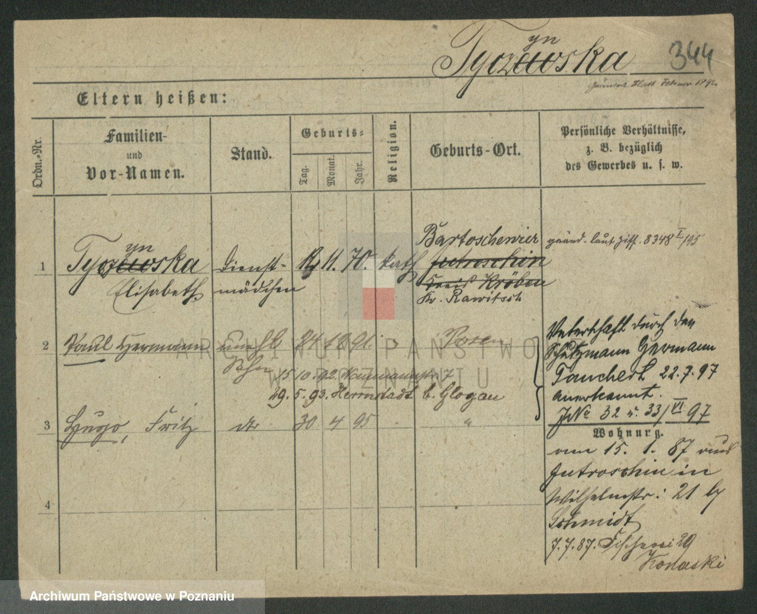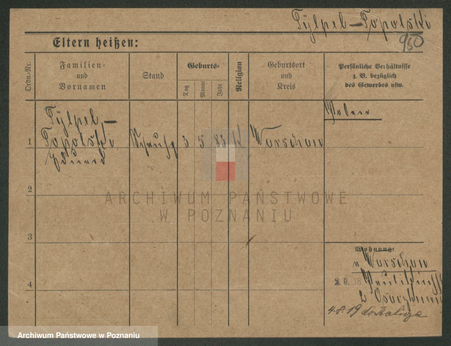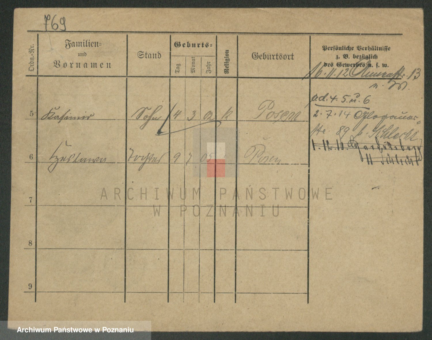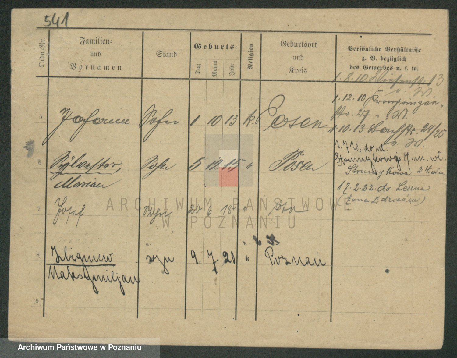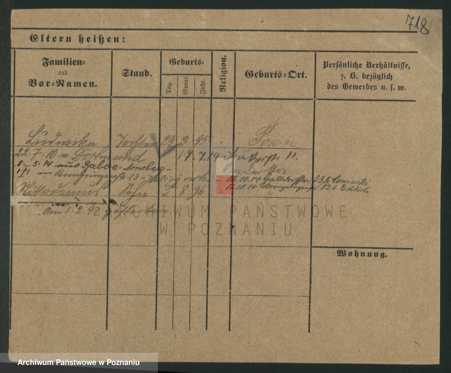 Podgląd karty osobowej dostępny jest po kliknięciu na nazwisko lub ikonkę karty. Można dokonywać powiększenia (ikony na górze) lub przechodzić między kolejnymi skanami (strzałki po bokach).