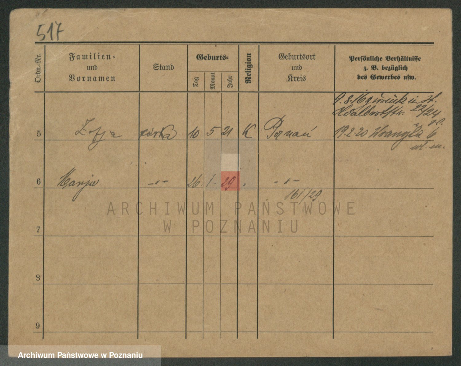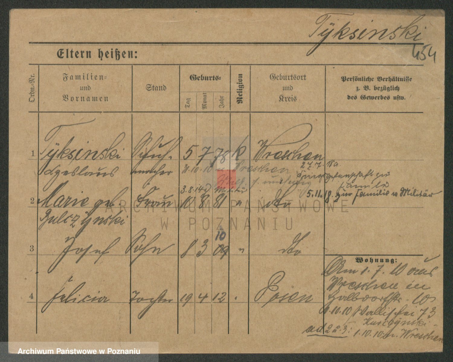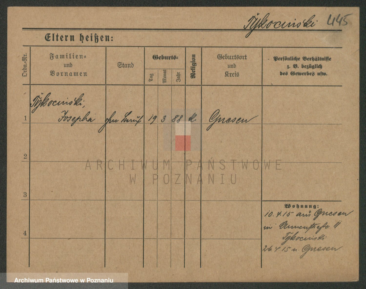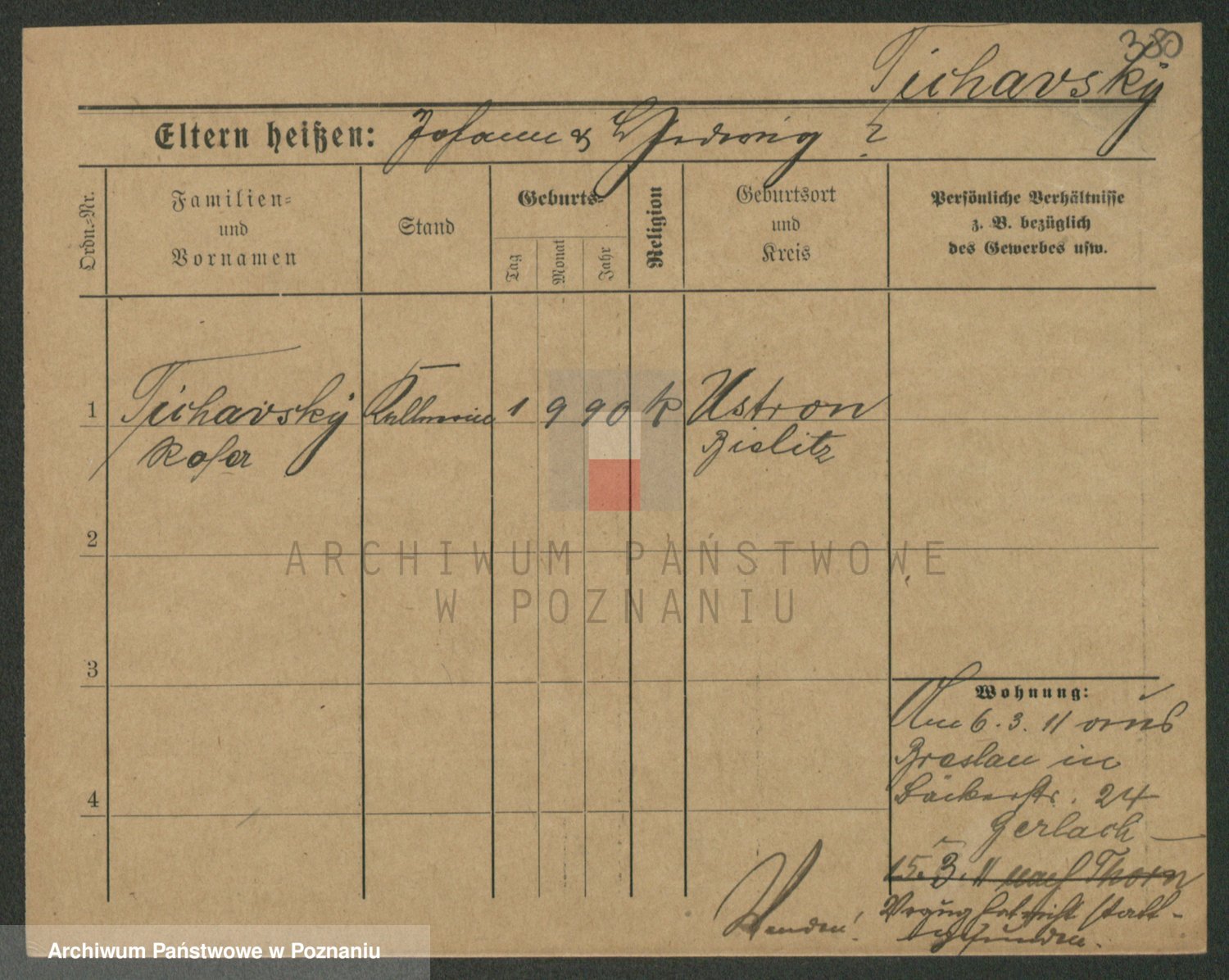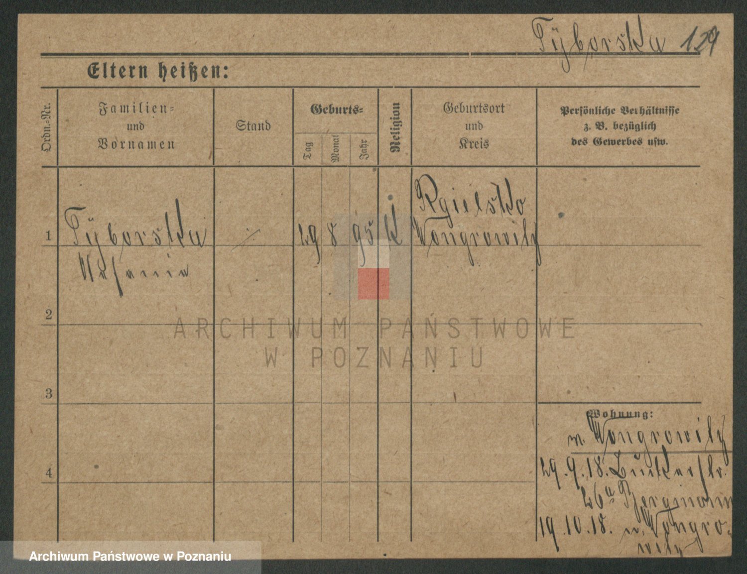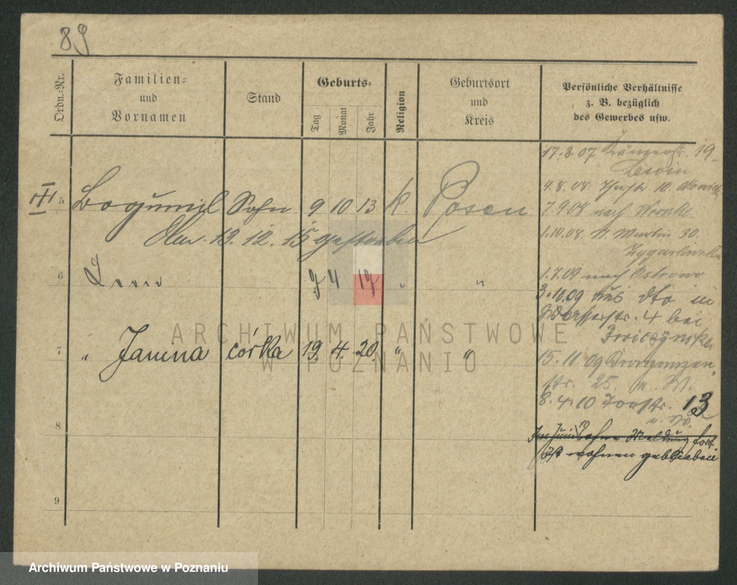 Podgląd karty osobowej dostępny jest po kliknięciu na nazwisko lub ikonkę karty. Można dokonywać powiększenia (ikony na górze) lub przechodzić między kolejnymi skanami (strzałki po bokach).