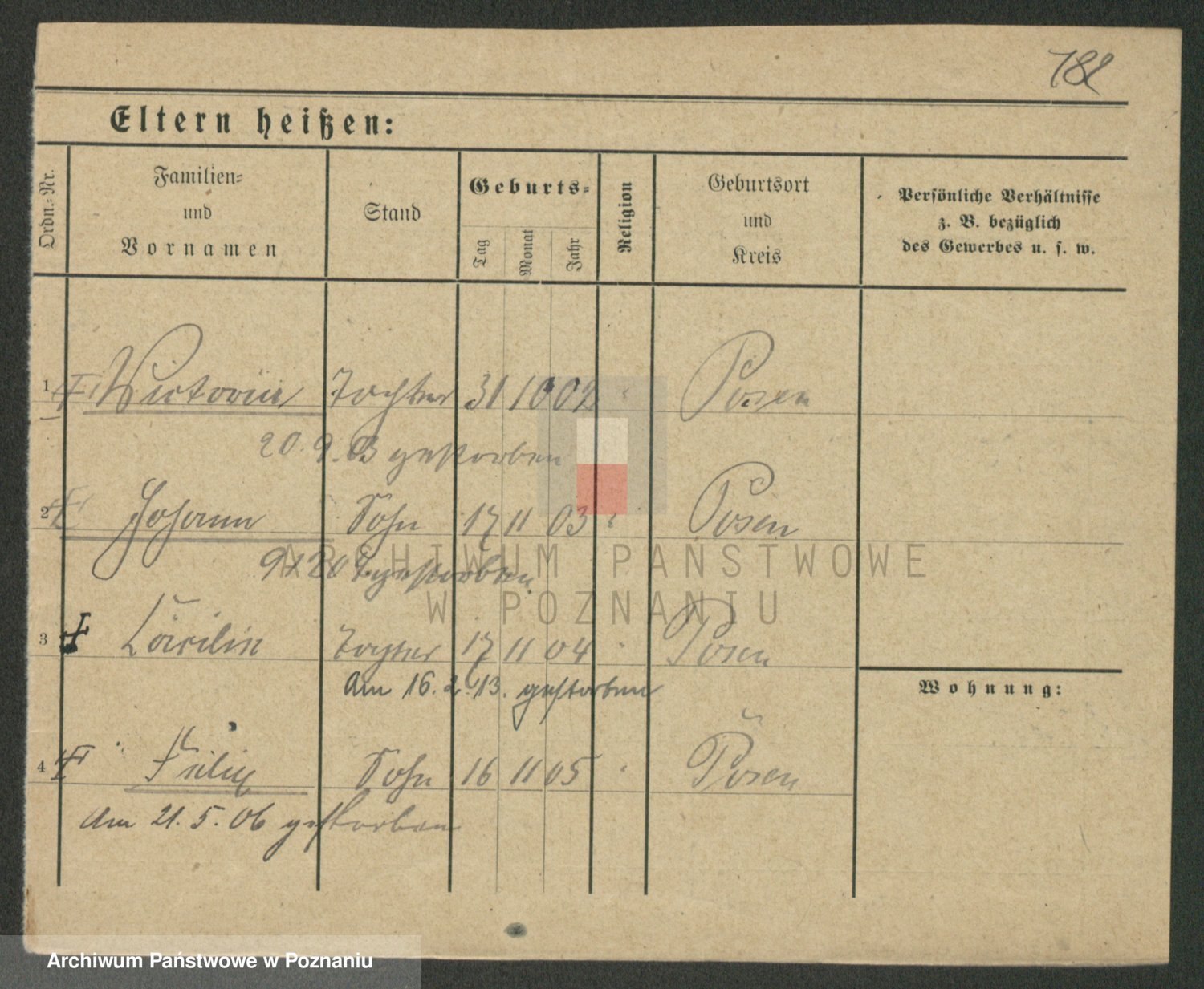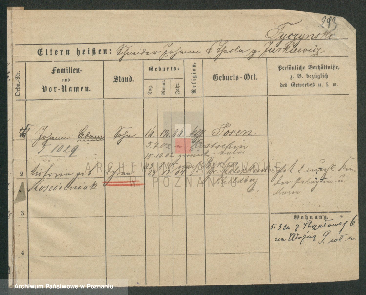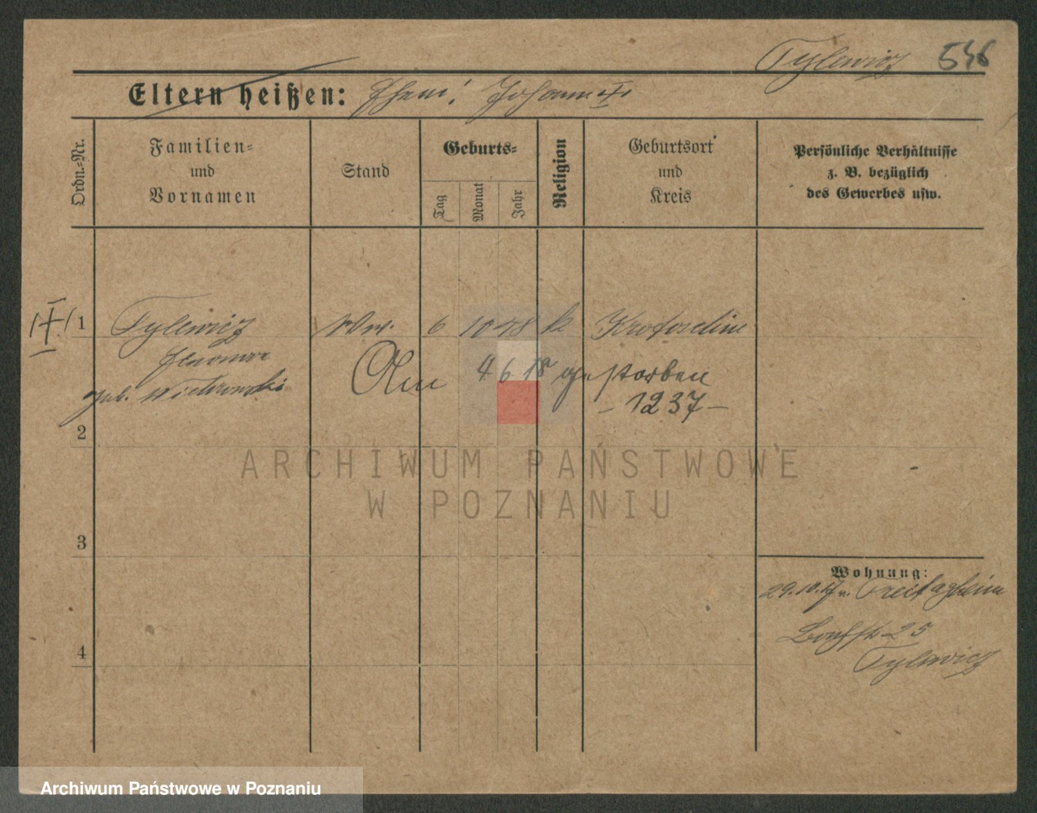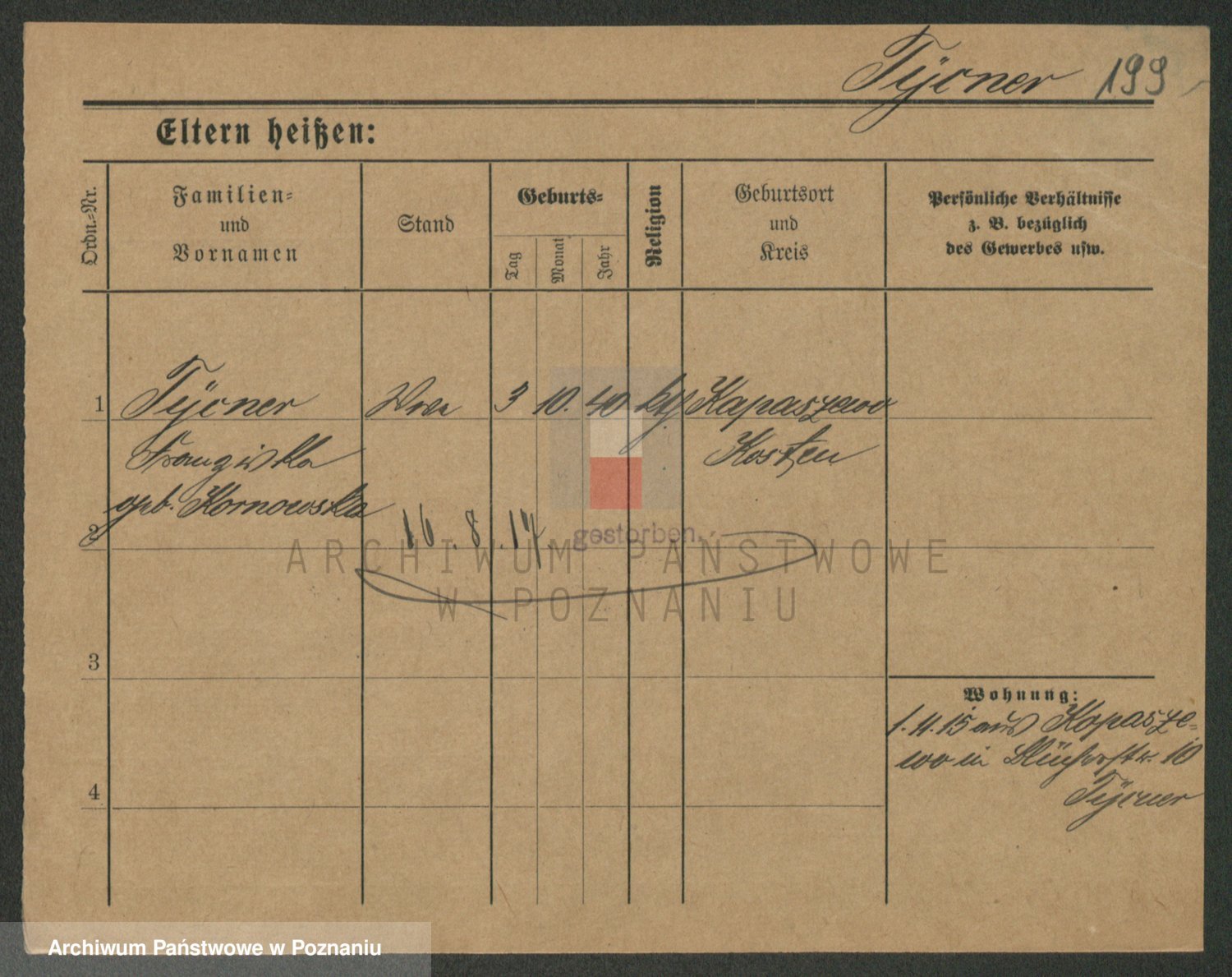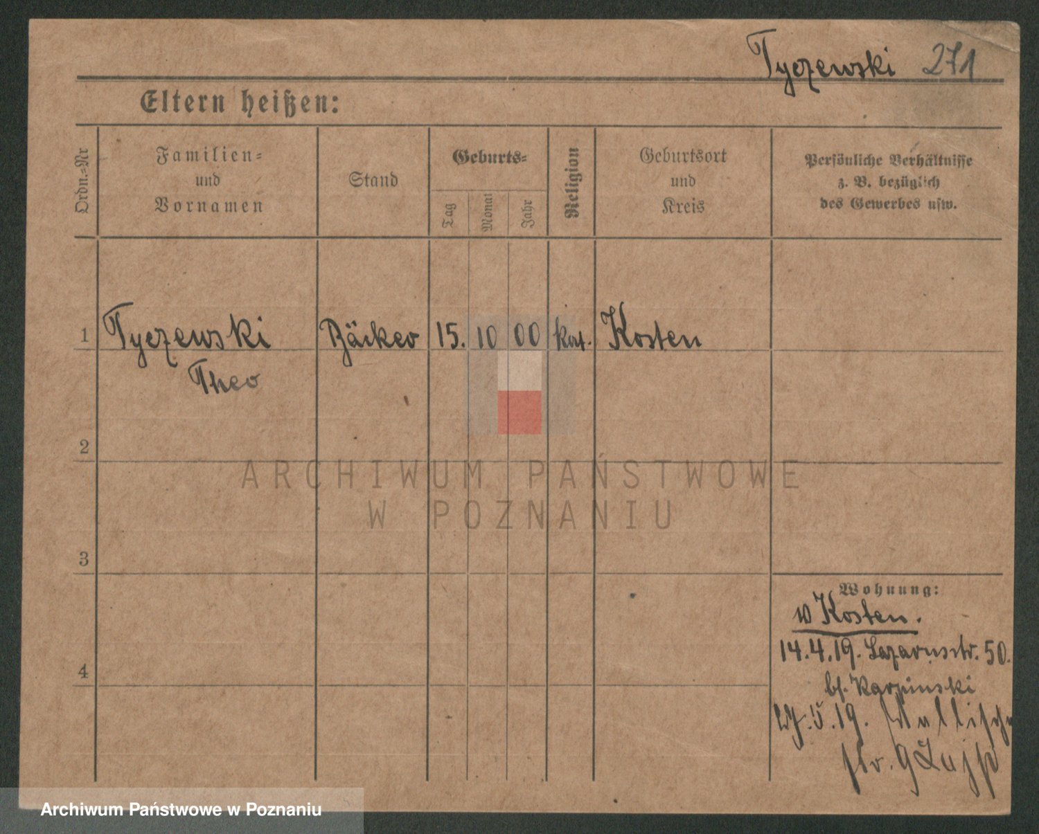 Podgląd karty osobowej dostępny jest po kliknięciu na nazwisko lub ikonkę karty. Można dokonywać powiększenia (ikony na górze) lub przechodzić między kolejnymi skanami (strzałki po bokach).