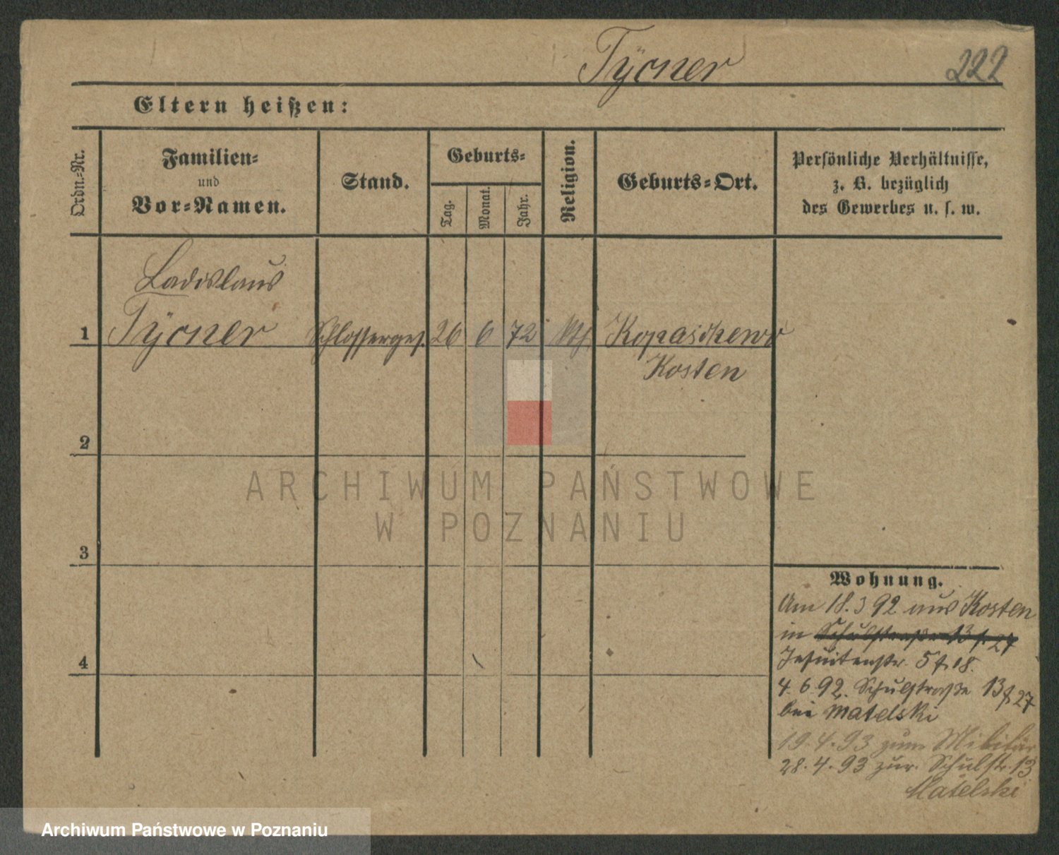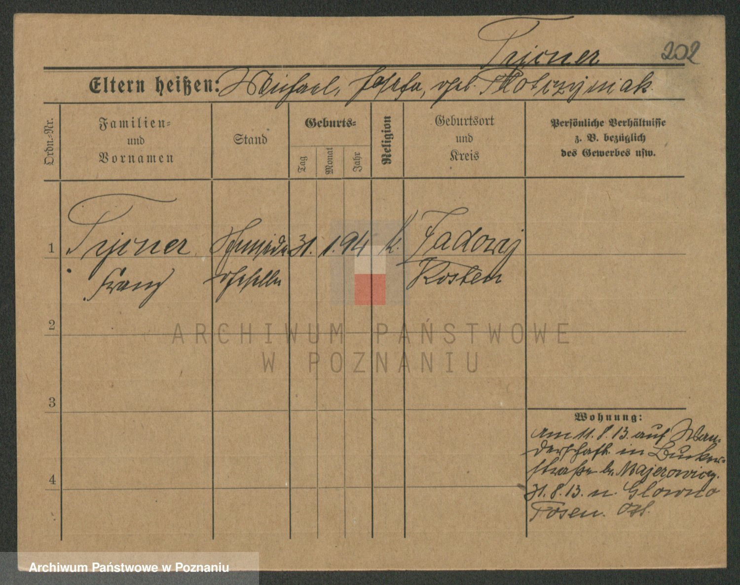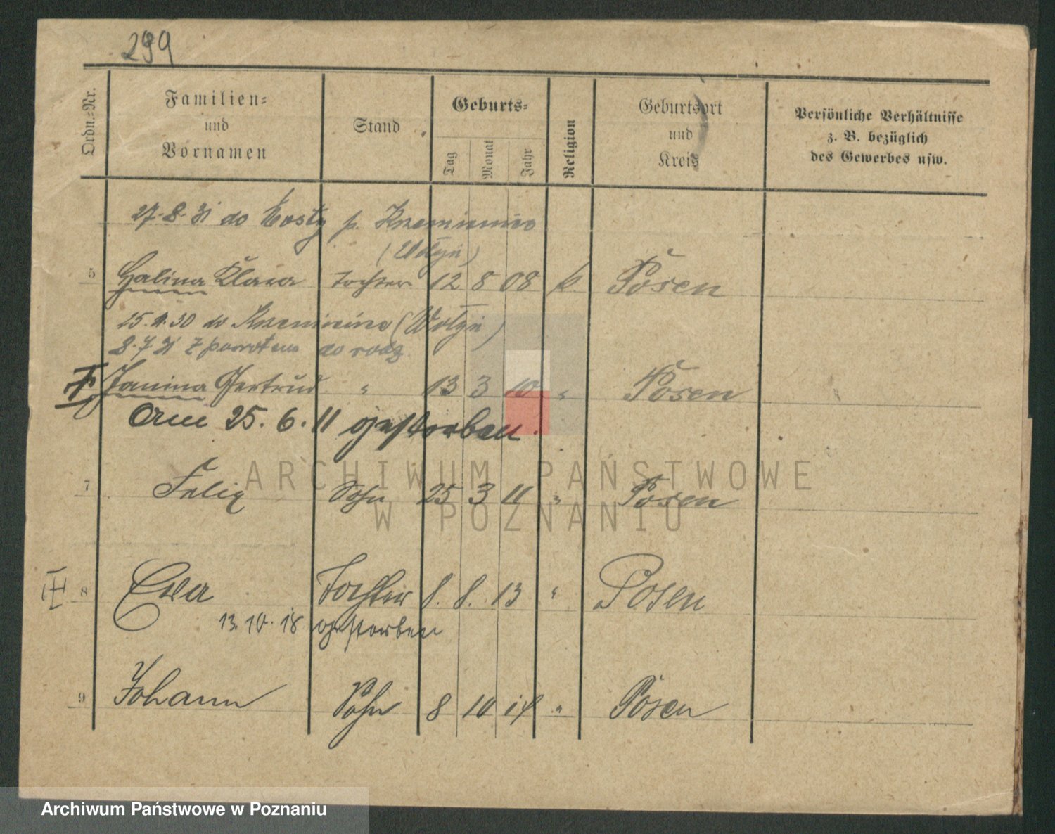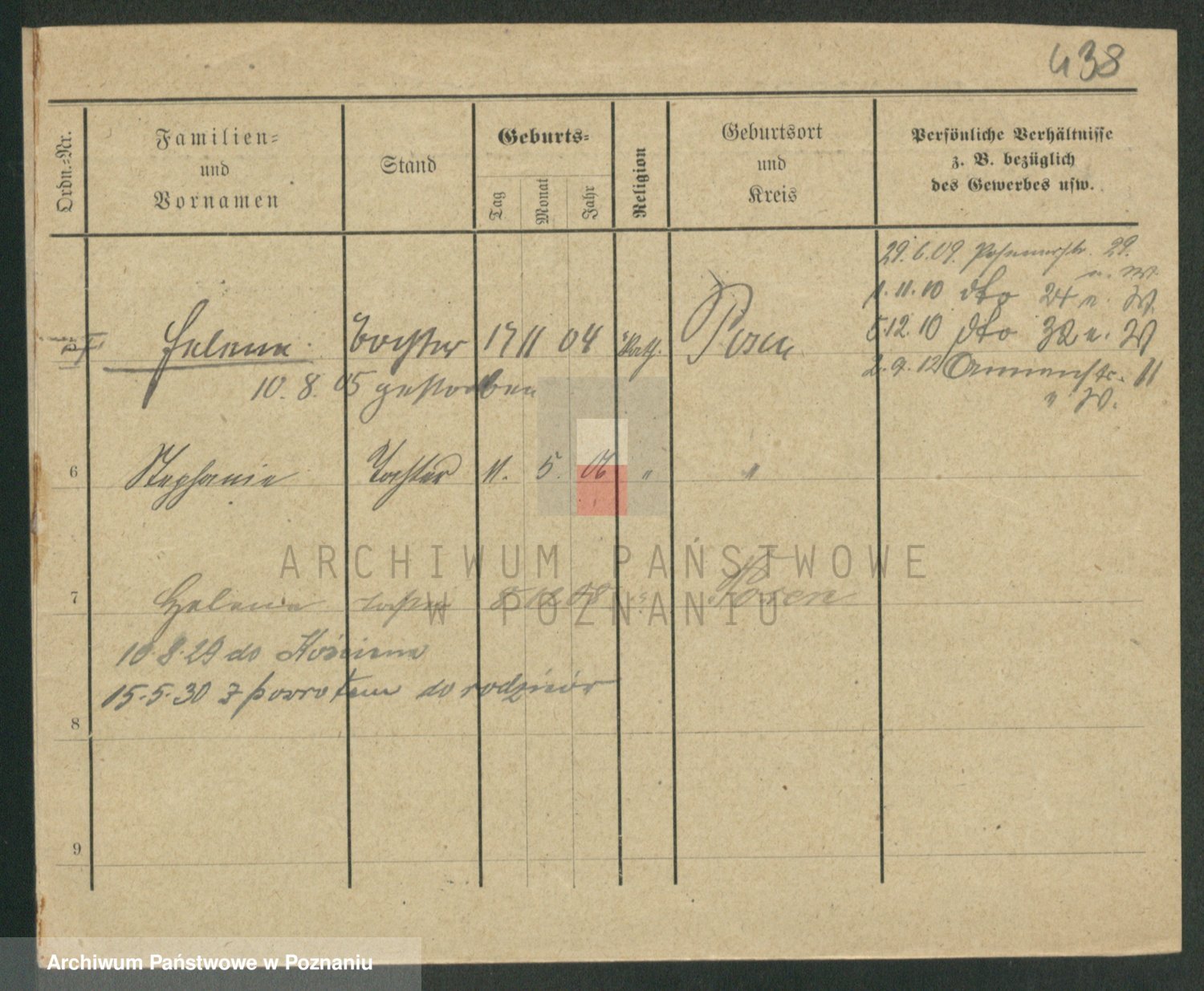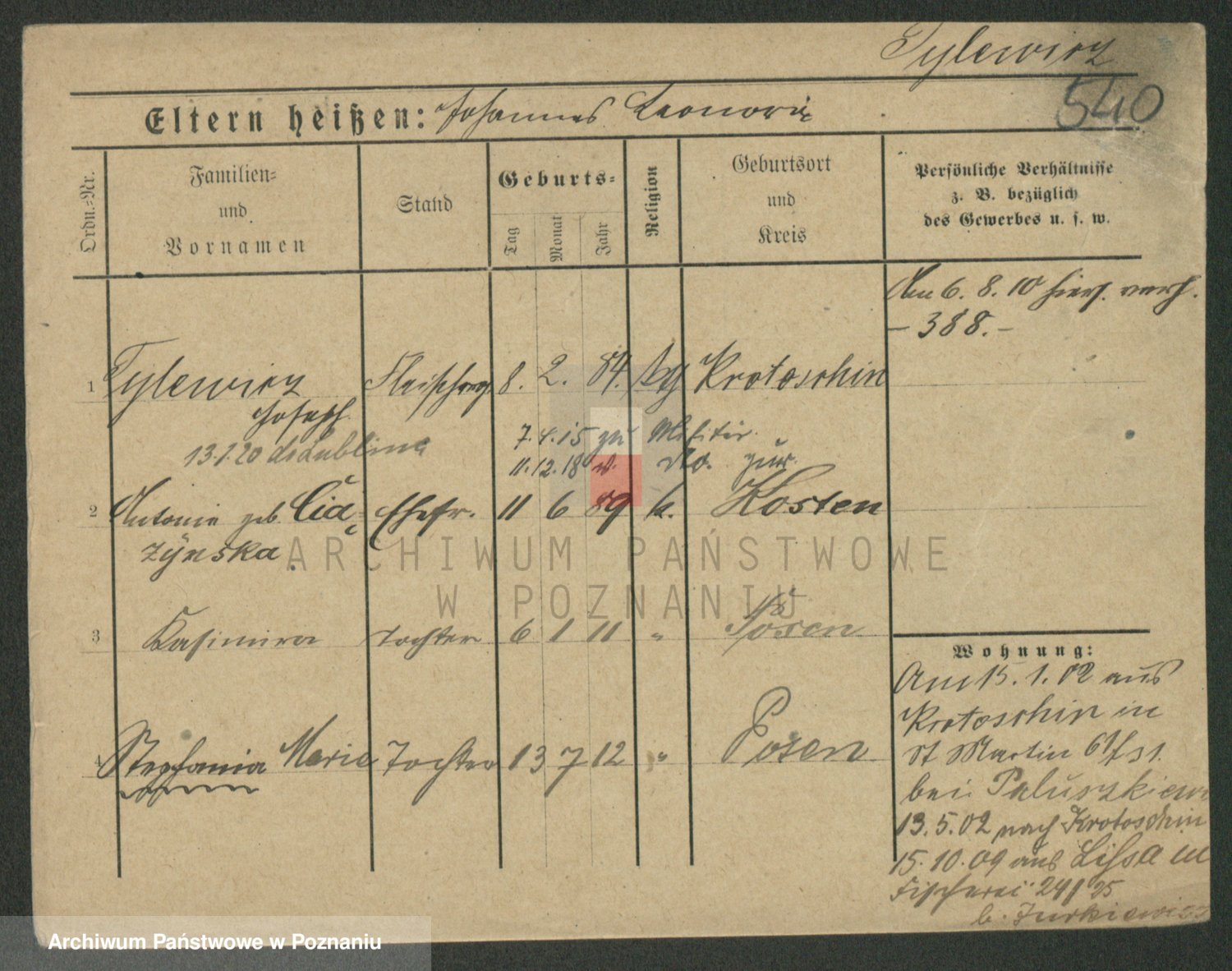 Podgląd karty osobowej dostępny jest po kliknięciu na nazwisko lub ikonkę karty. Można dokonywać powiększenia (ikony na górze) lub przechodzić między kolejnymi skanami (strzałki po bokach).