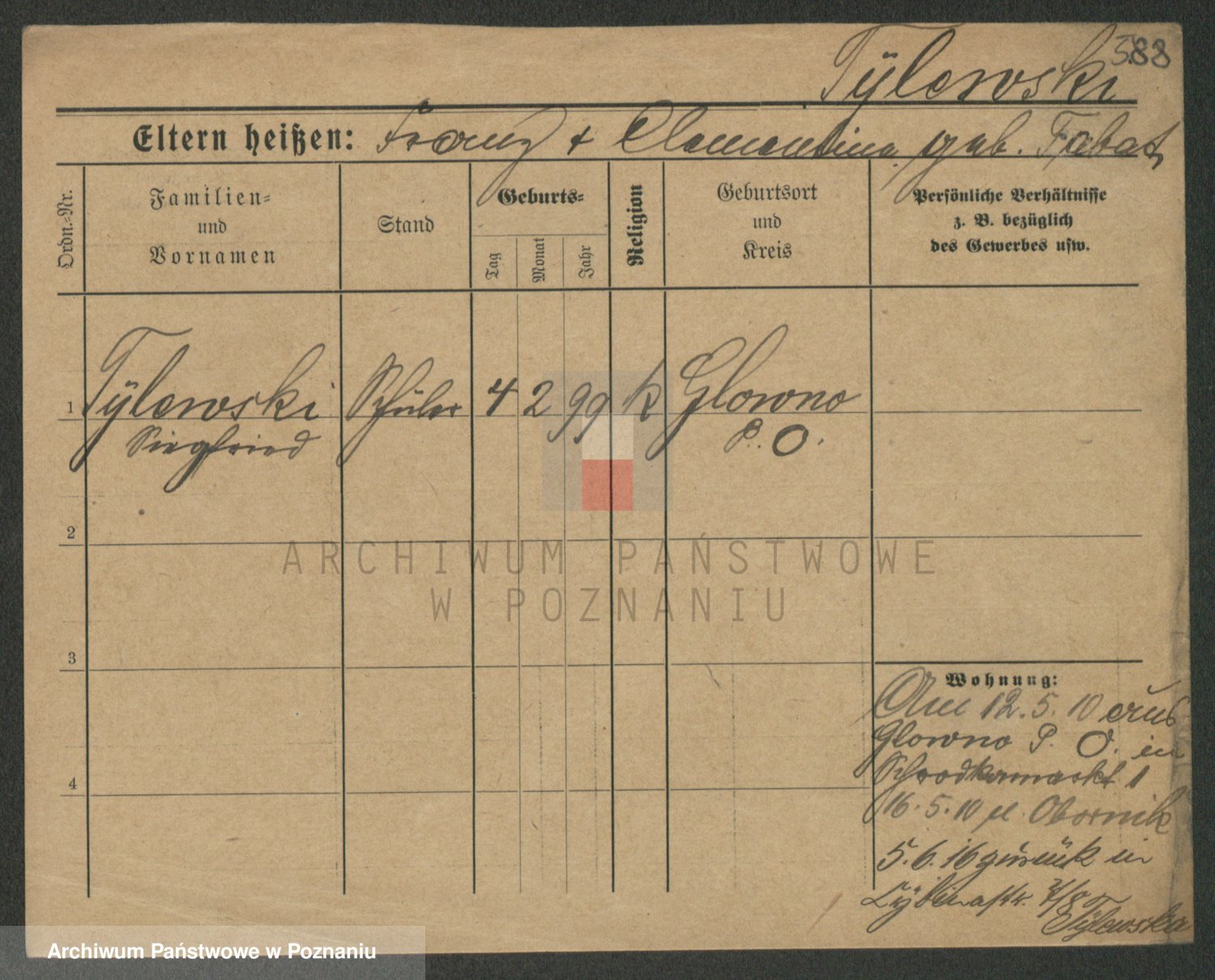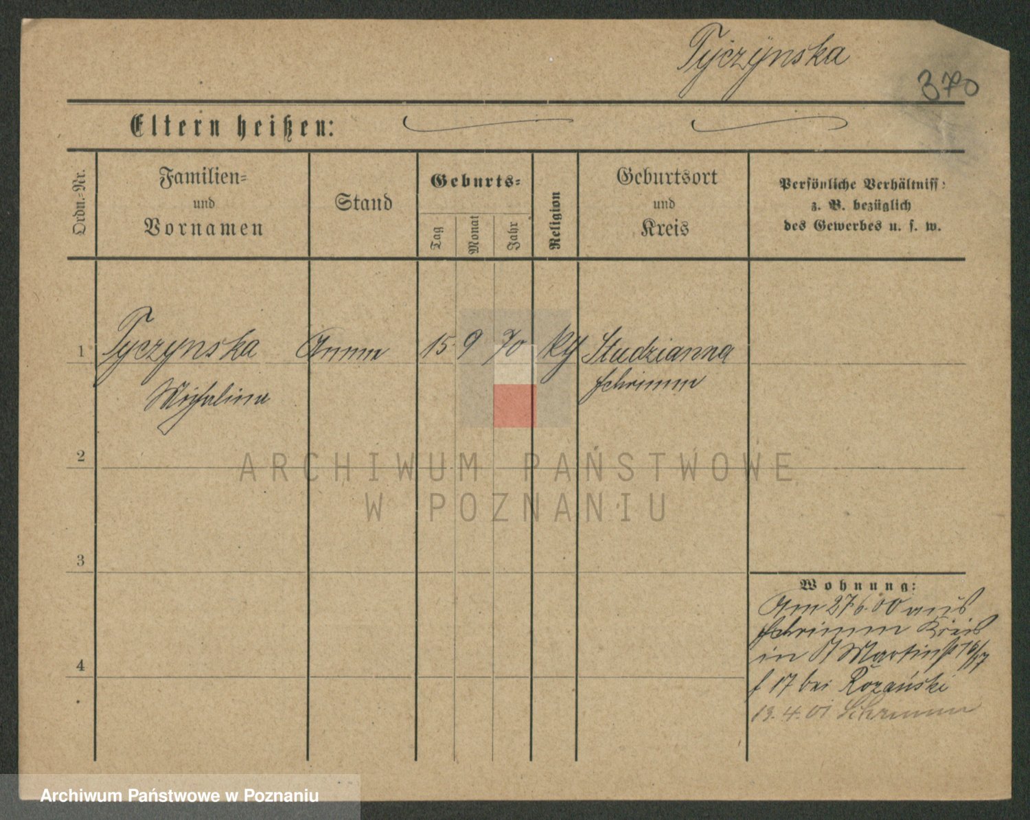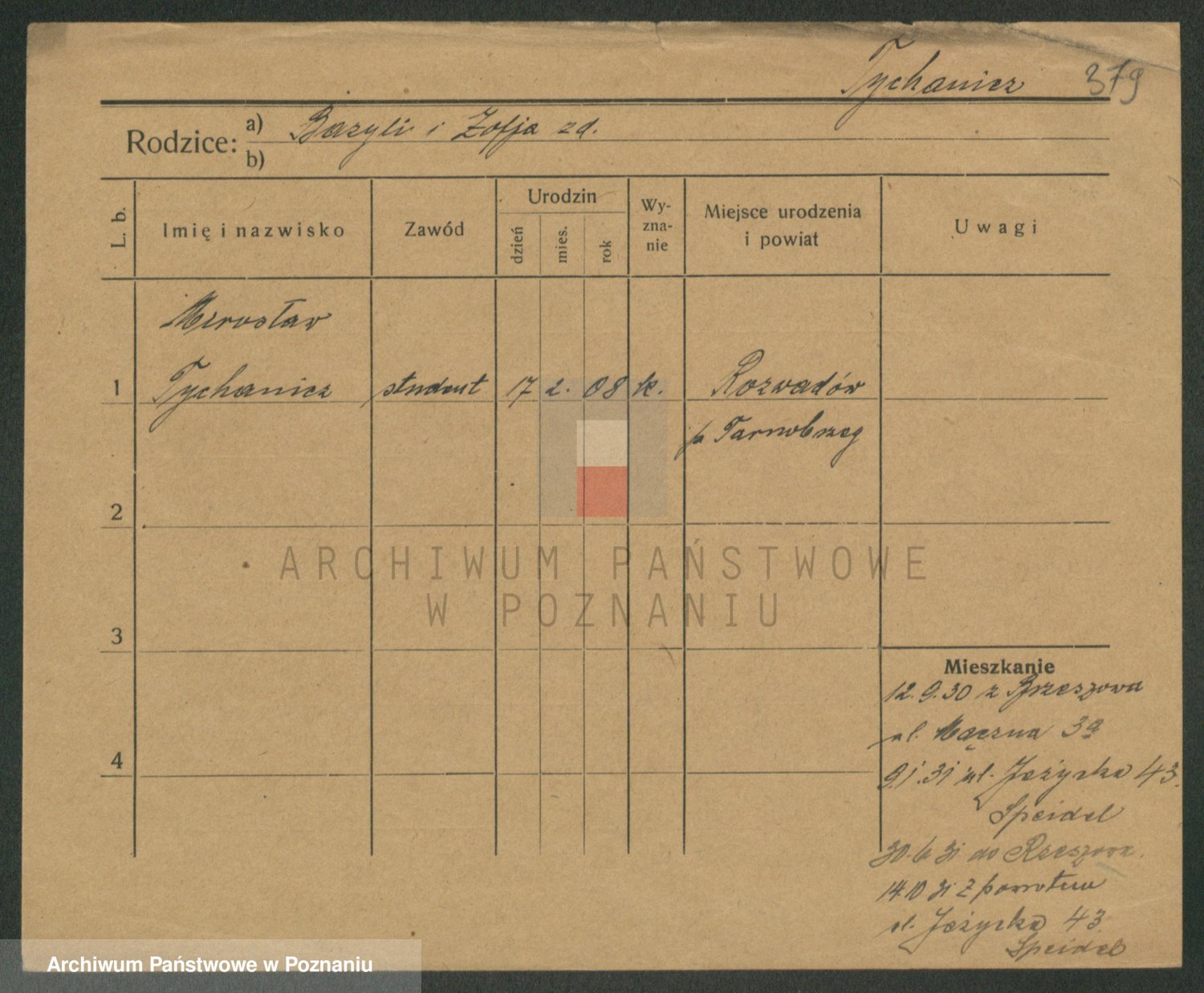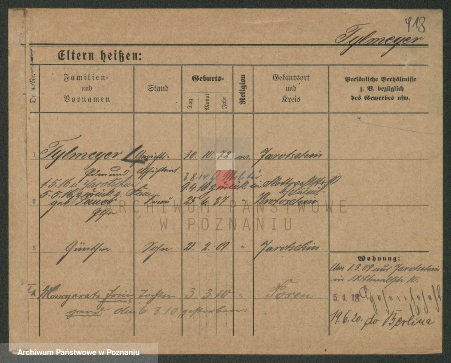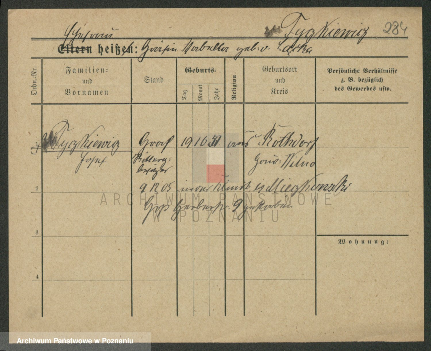 Podgląd karty osobowej dostępny jest po kliknięciu na nazwisko lub ikonkę karty. Można dokonywać powiększenia (ikony na górze) lub przechodzić między kolejnymi skanami (strzałki po bokach).