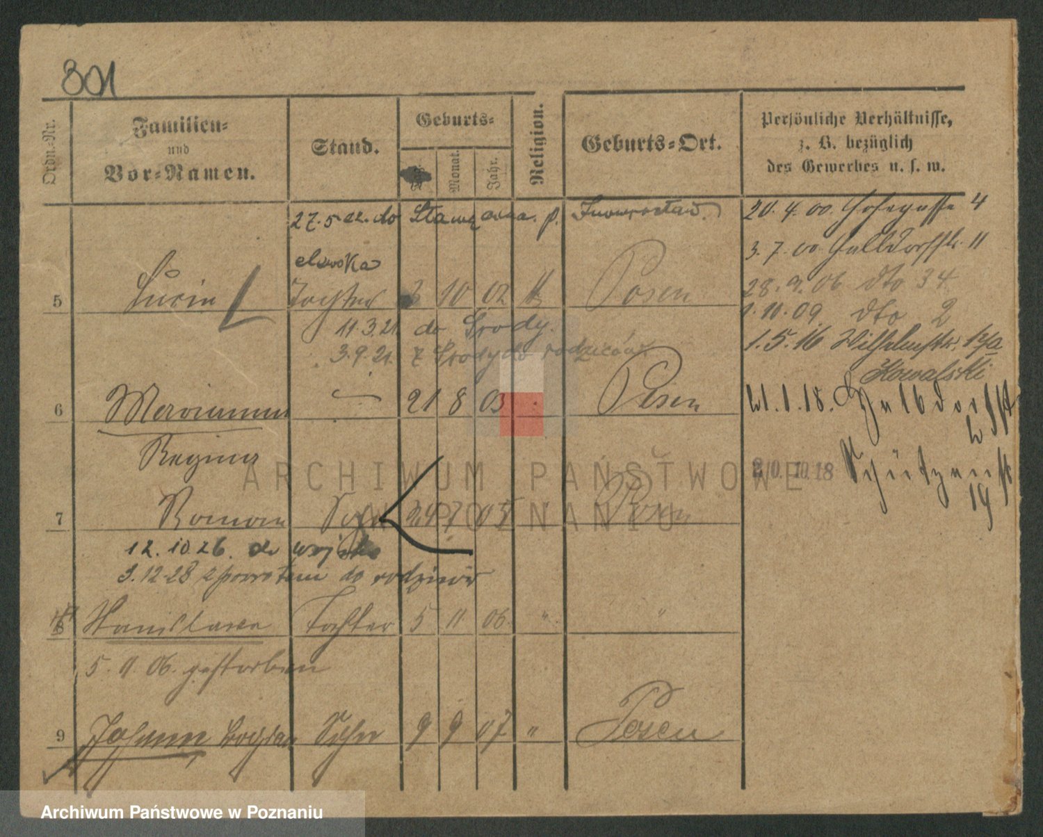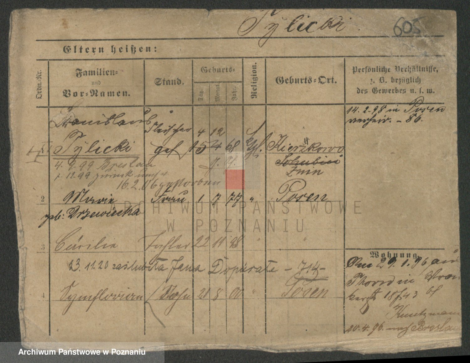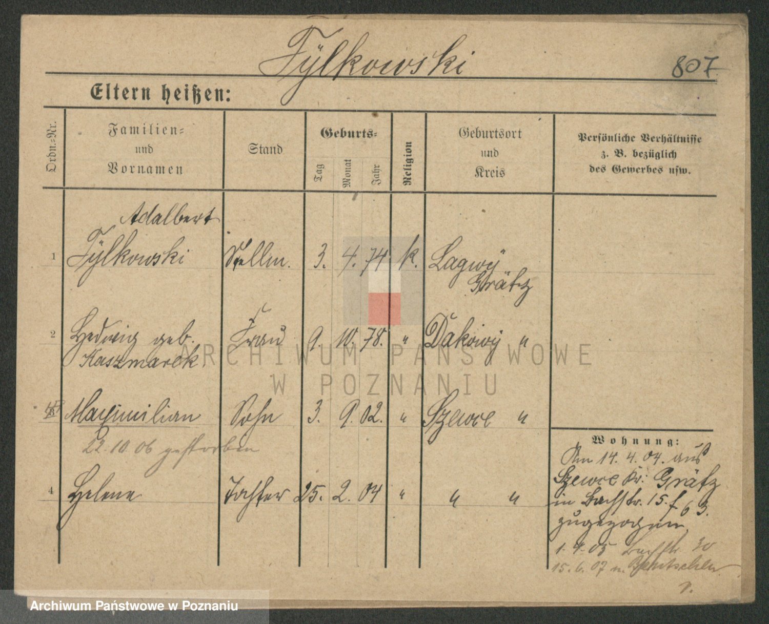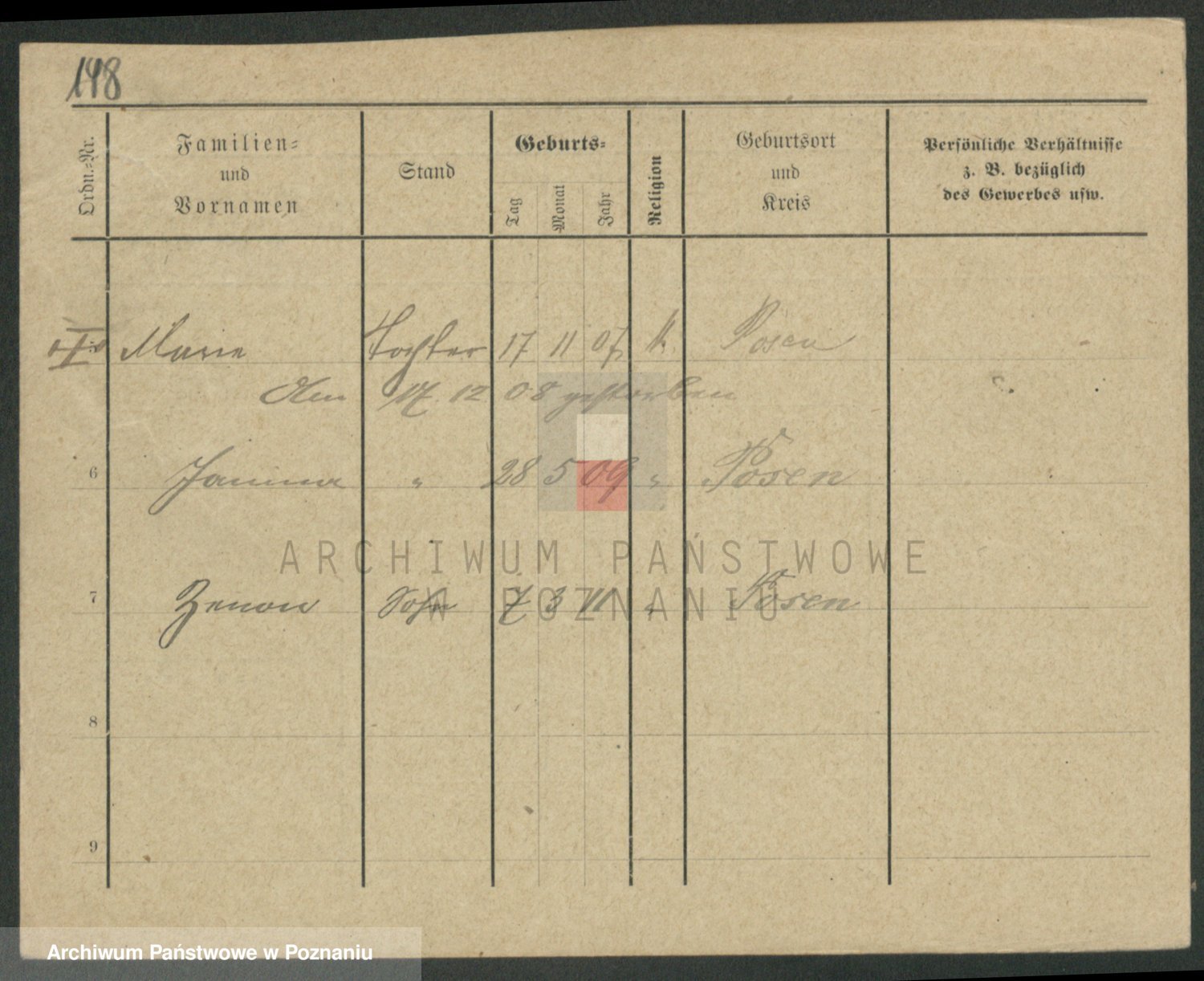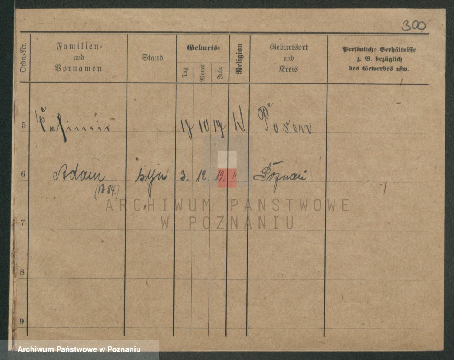Podgląd karty osobowej dostępny jest po kliknięciu na nazwisko lub ikonkę karty. Można dokonywać powiększenia (ikony na górze) lub przechodzić między kolejnymi skanami (strzałki po bokach).