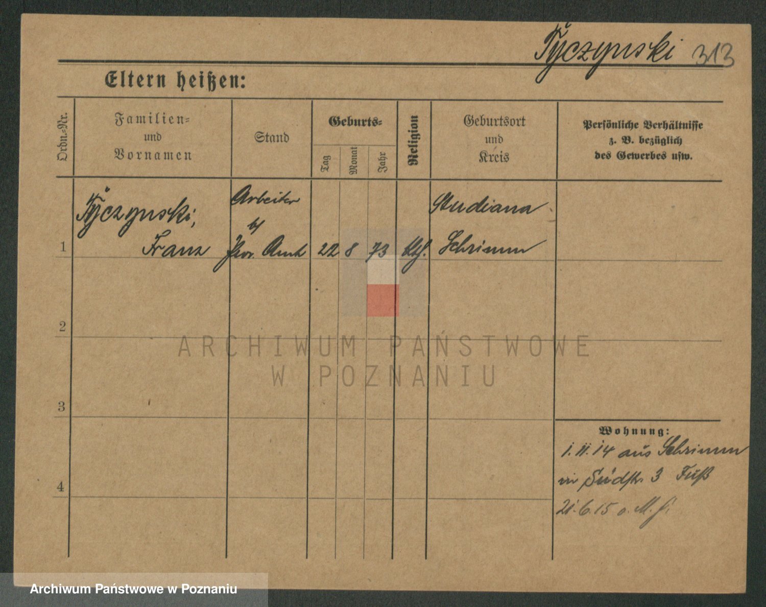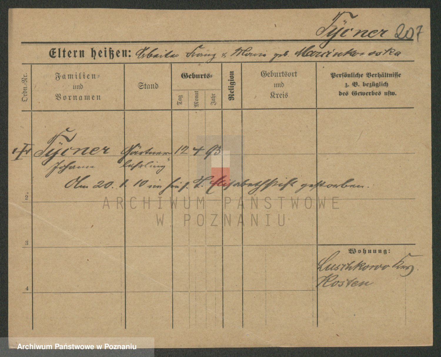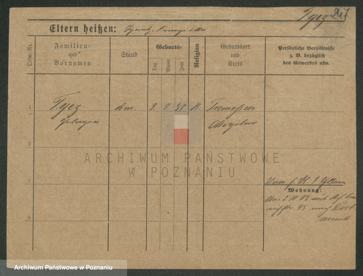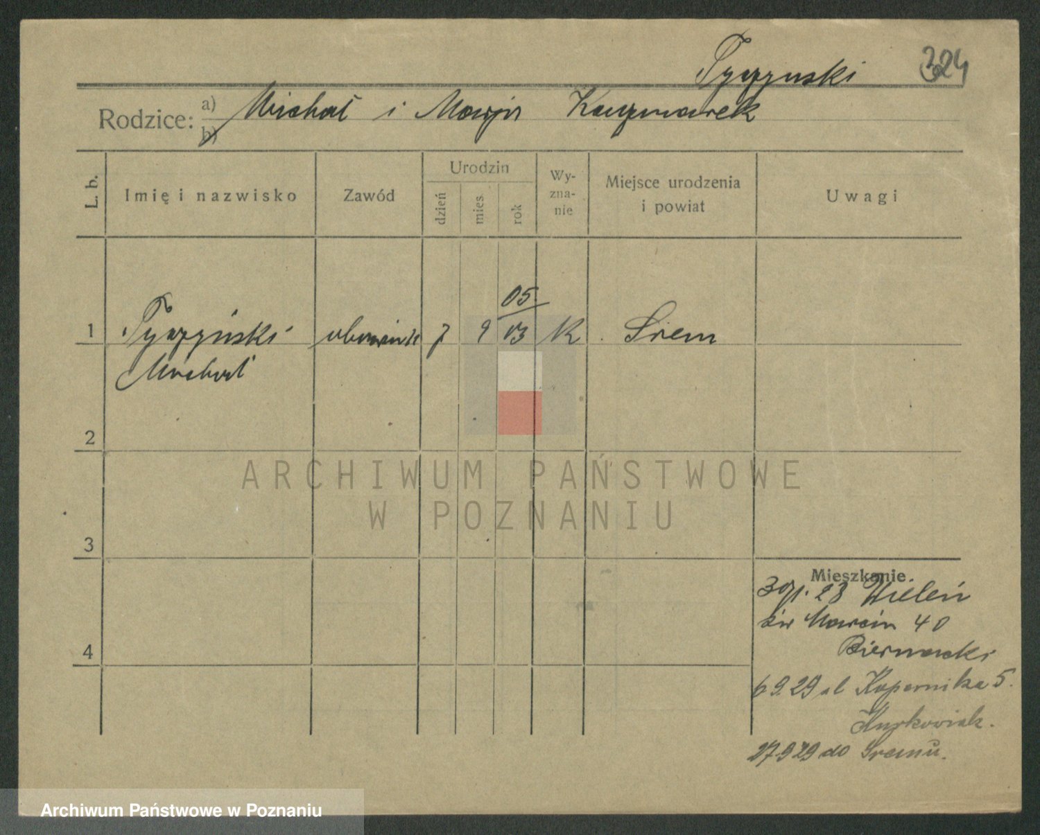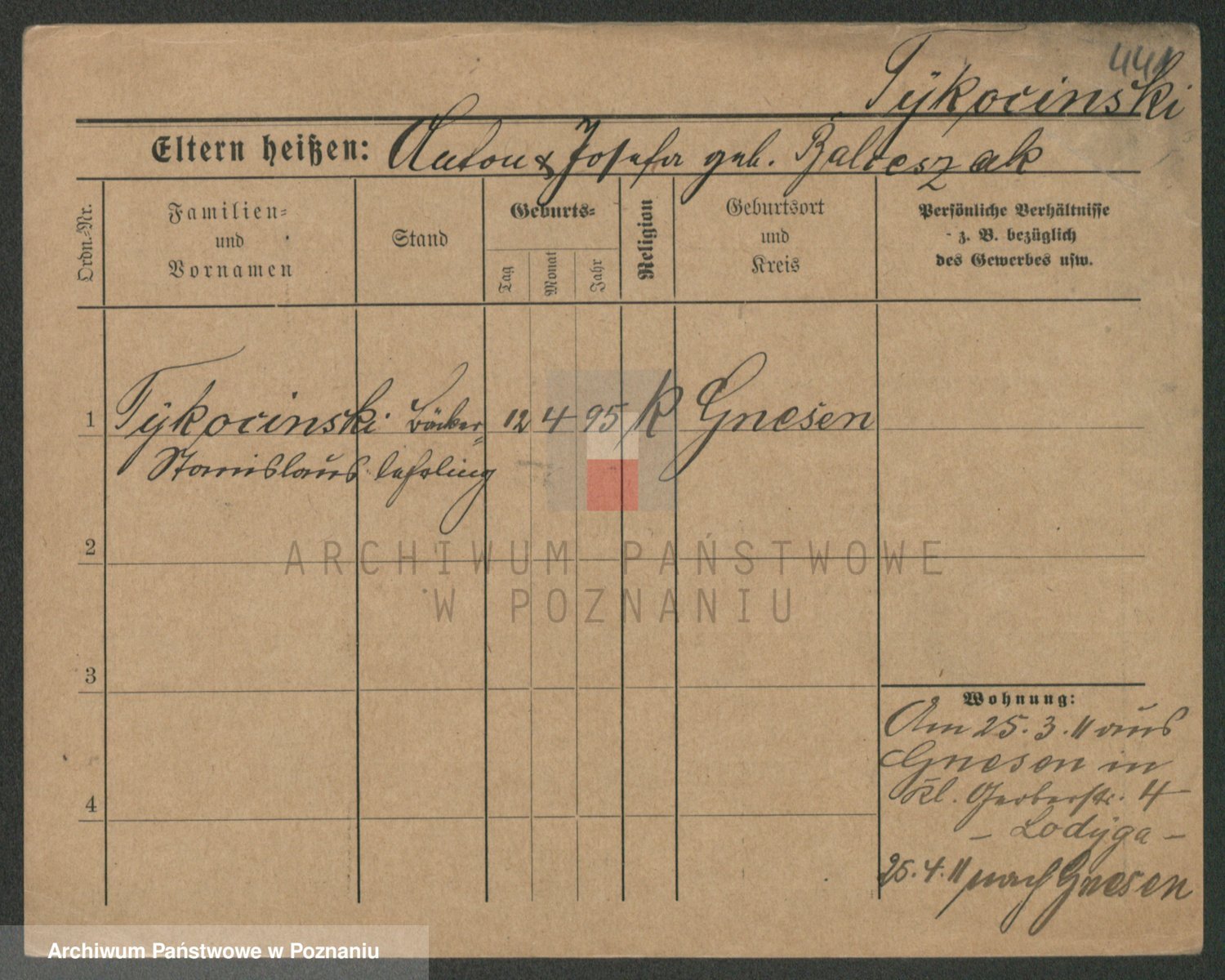 Podgląd karty osobowej dostępny jest po kliknięciu na nazwisko lub ikonkę karty. Można dokonywać powiększenia (ikony na górze) lub przechodzić między kolejnymi skanami (strzałki po bokach).