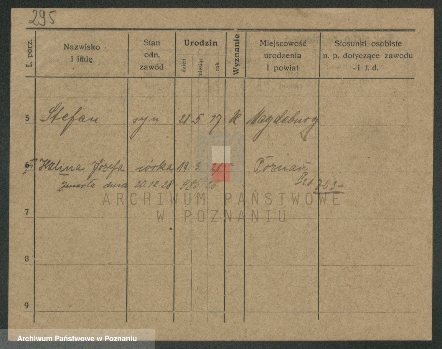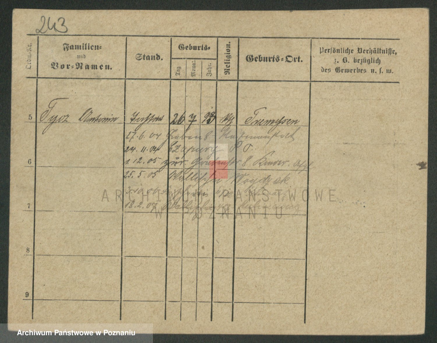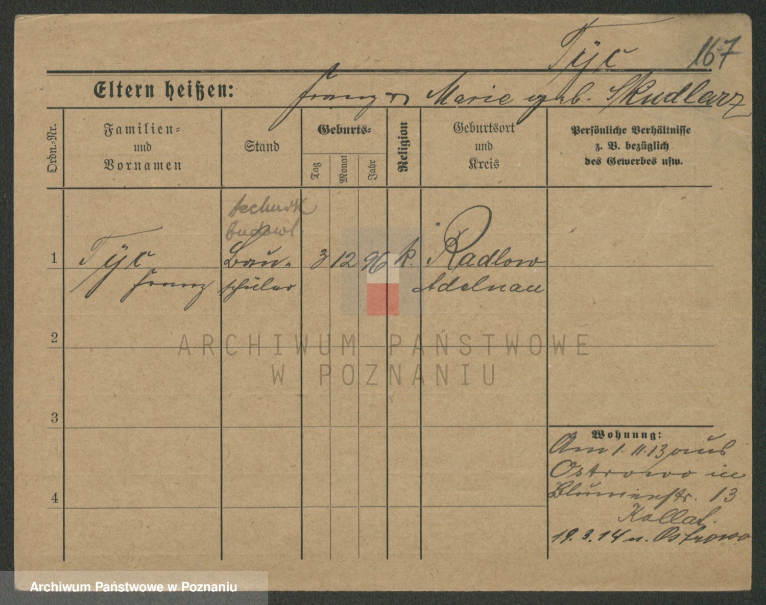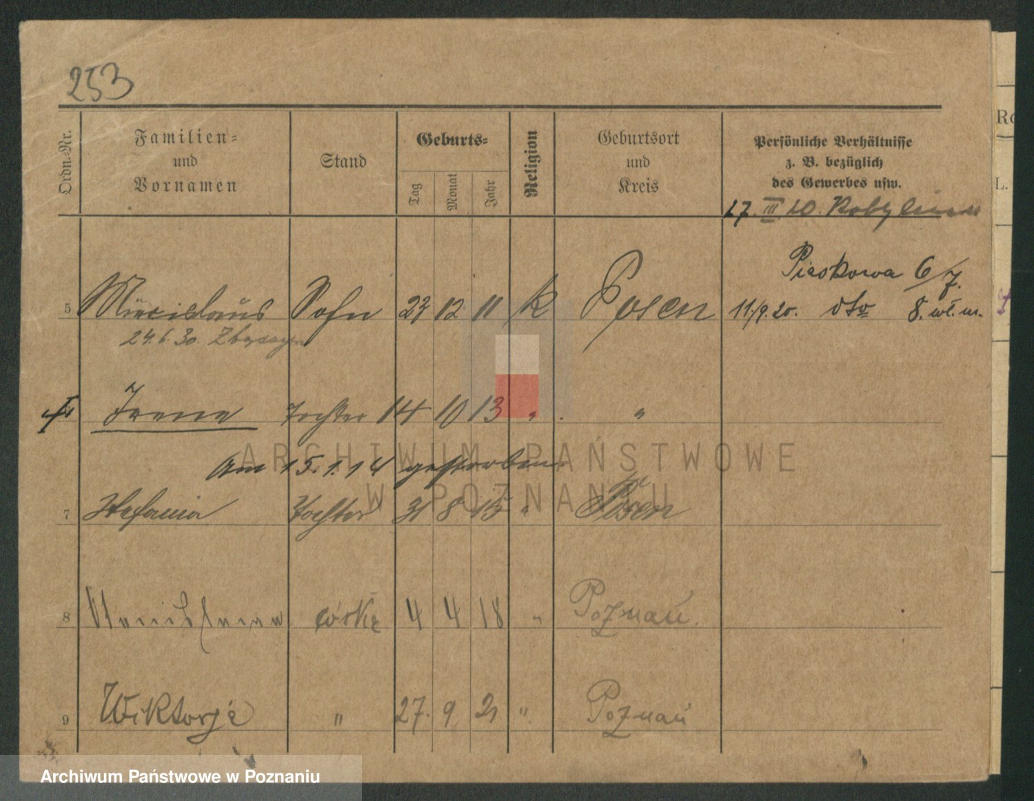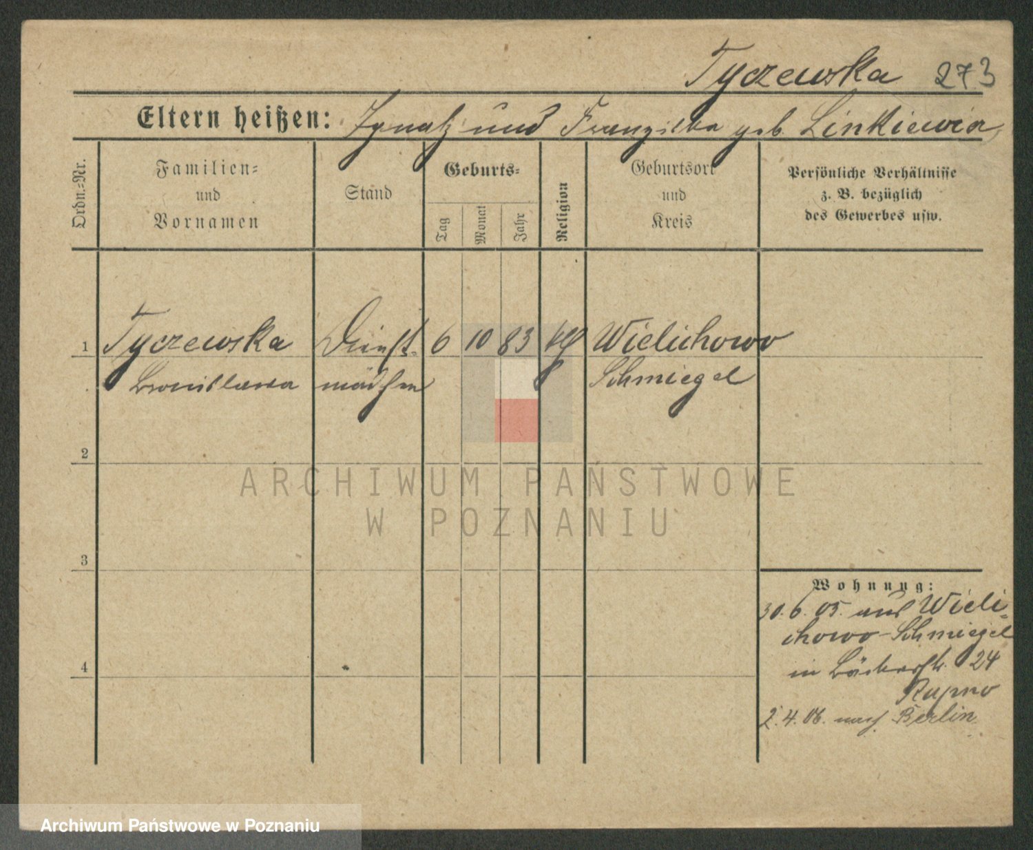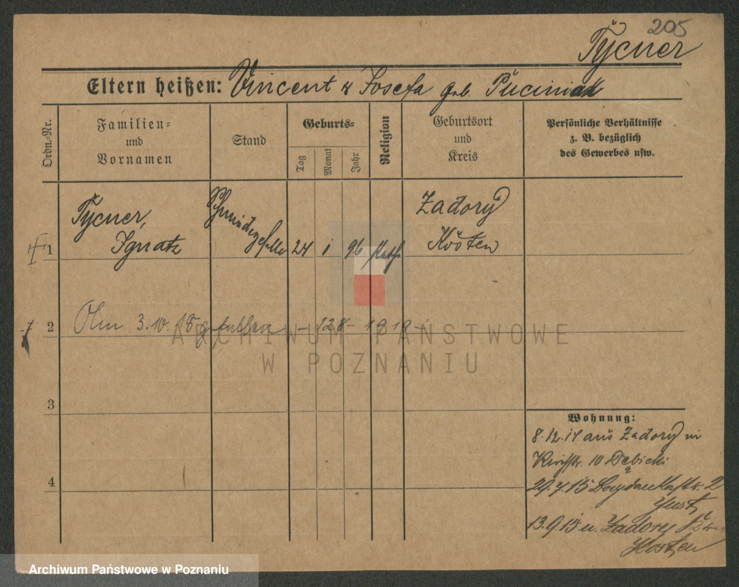 Podgląd karty osobowej dostępny jest po kliknięciu na nazwisko lub ikonkę karty. Można dokonywać powiększenia (ikony na górze) lub przechodzić między kolejnymi skanami (strzałki po bokach).