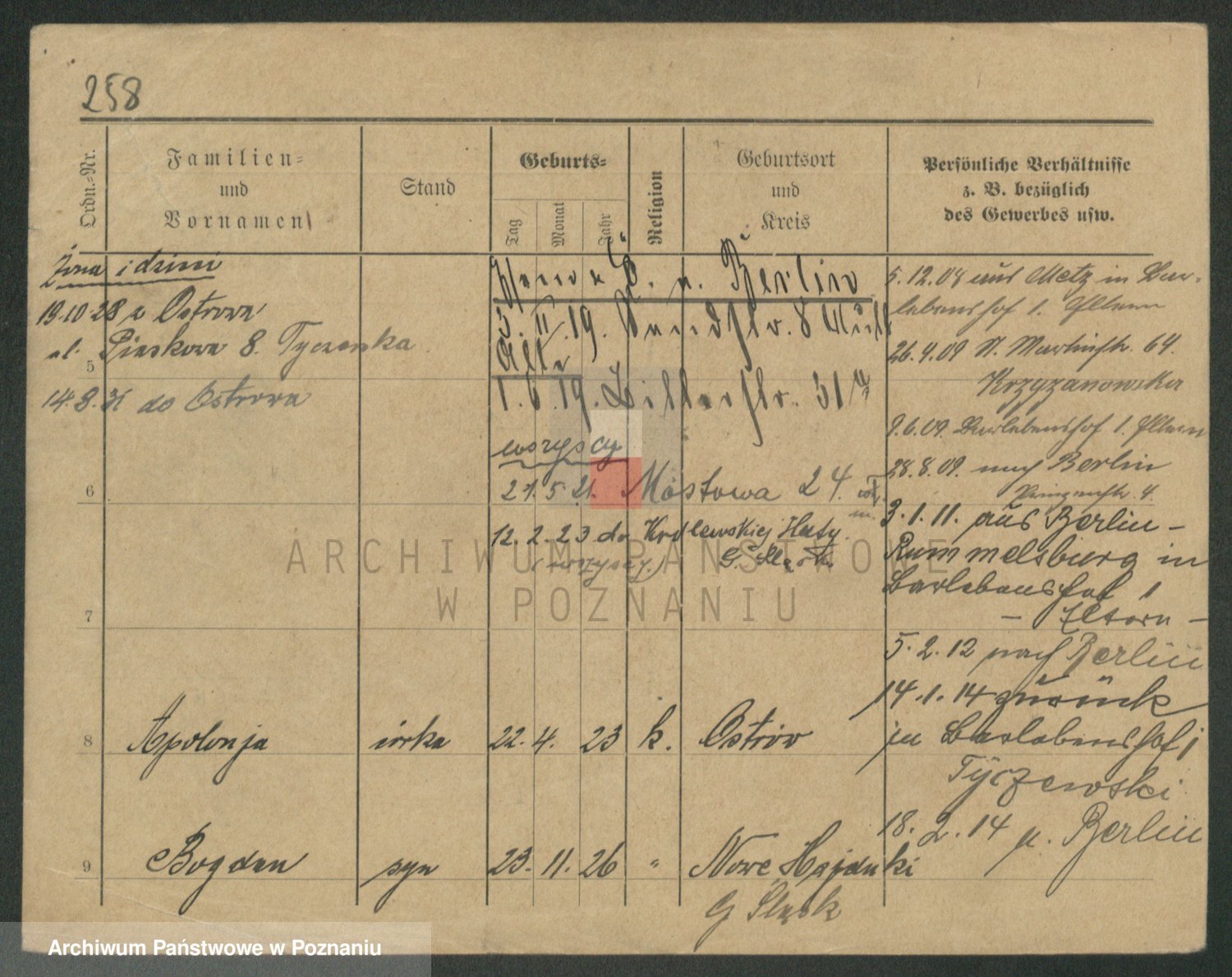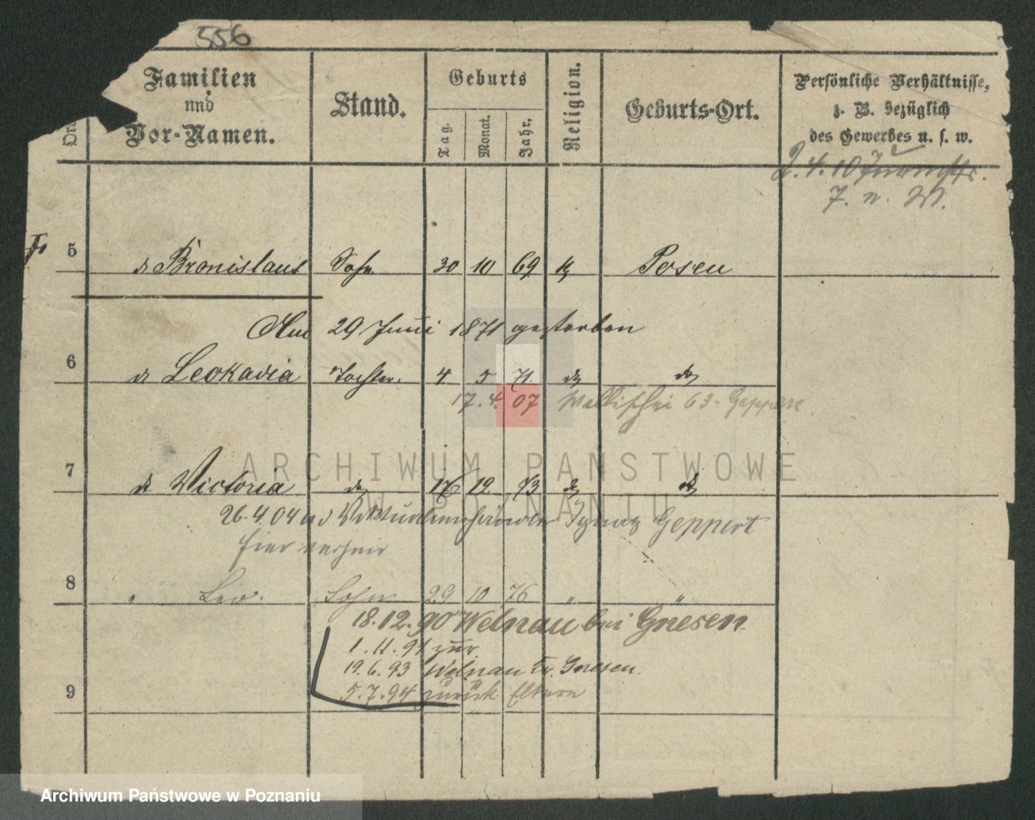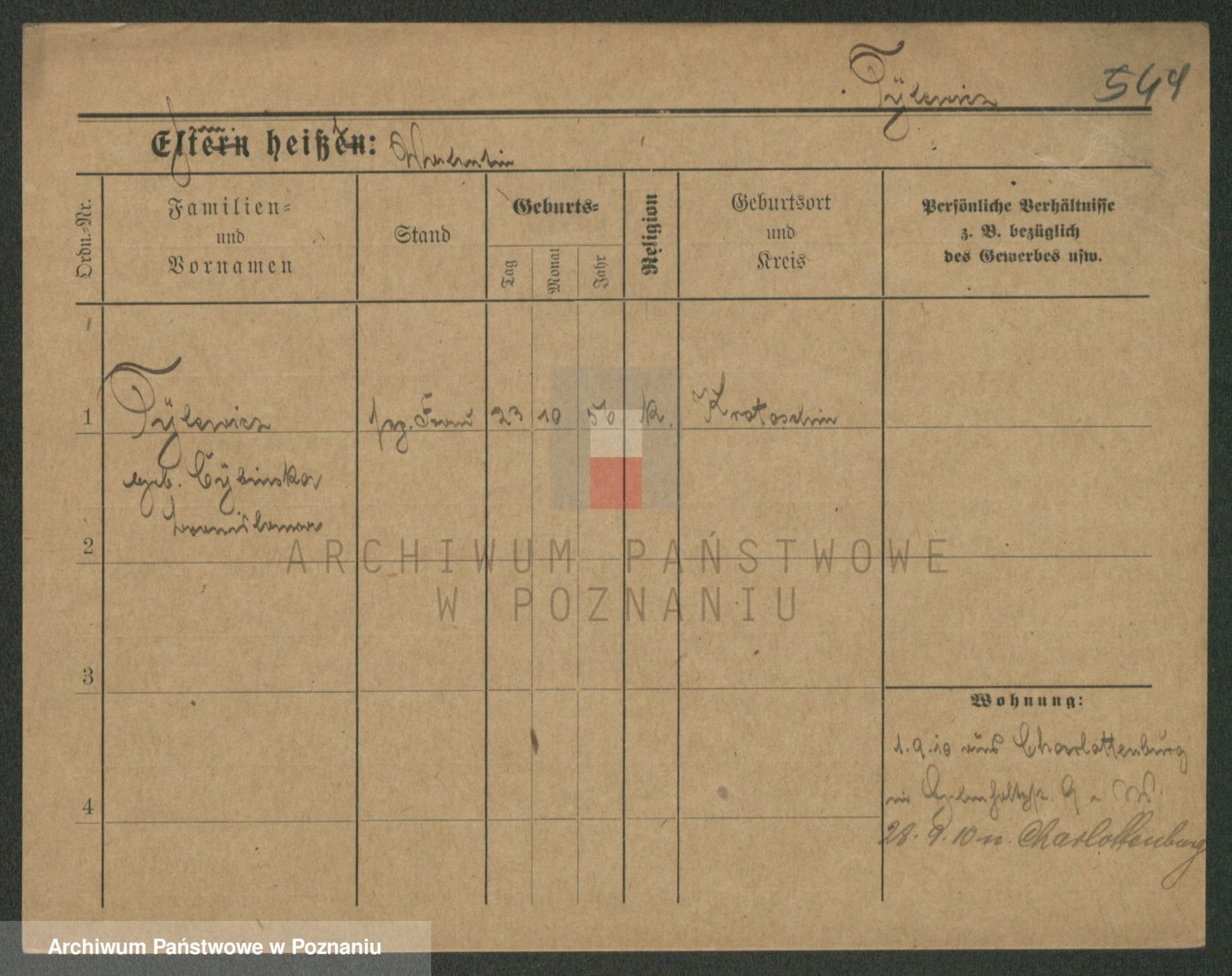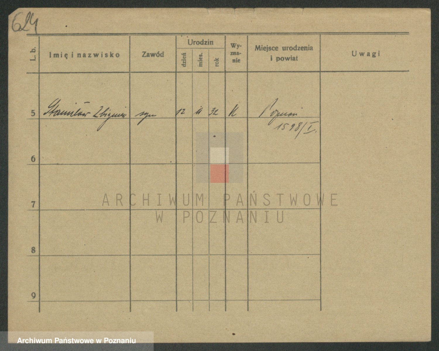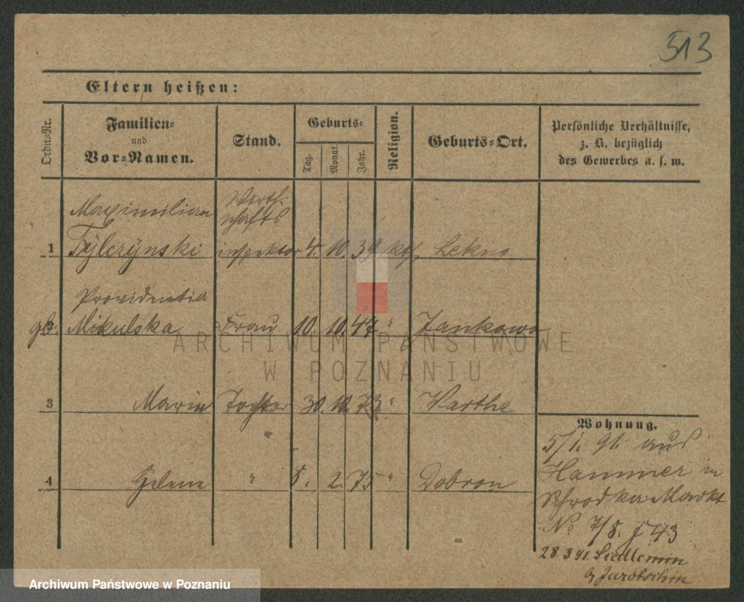 Podgląd karty osobowej dostępny jest po kliknięciu na nazwisko lub ikonkę karty. Można dokonywać powiększenia (ikony na górze) lub przechodzić między kolejnymi skanami (strzałki po bokach).