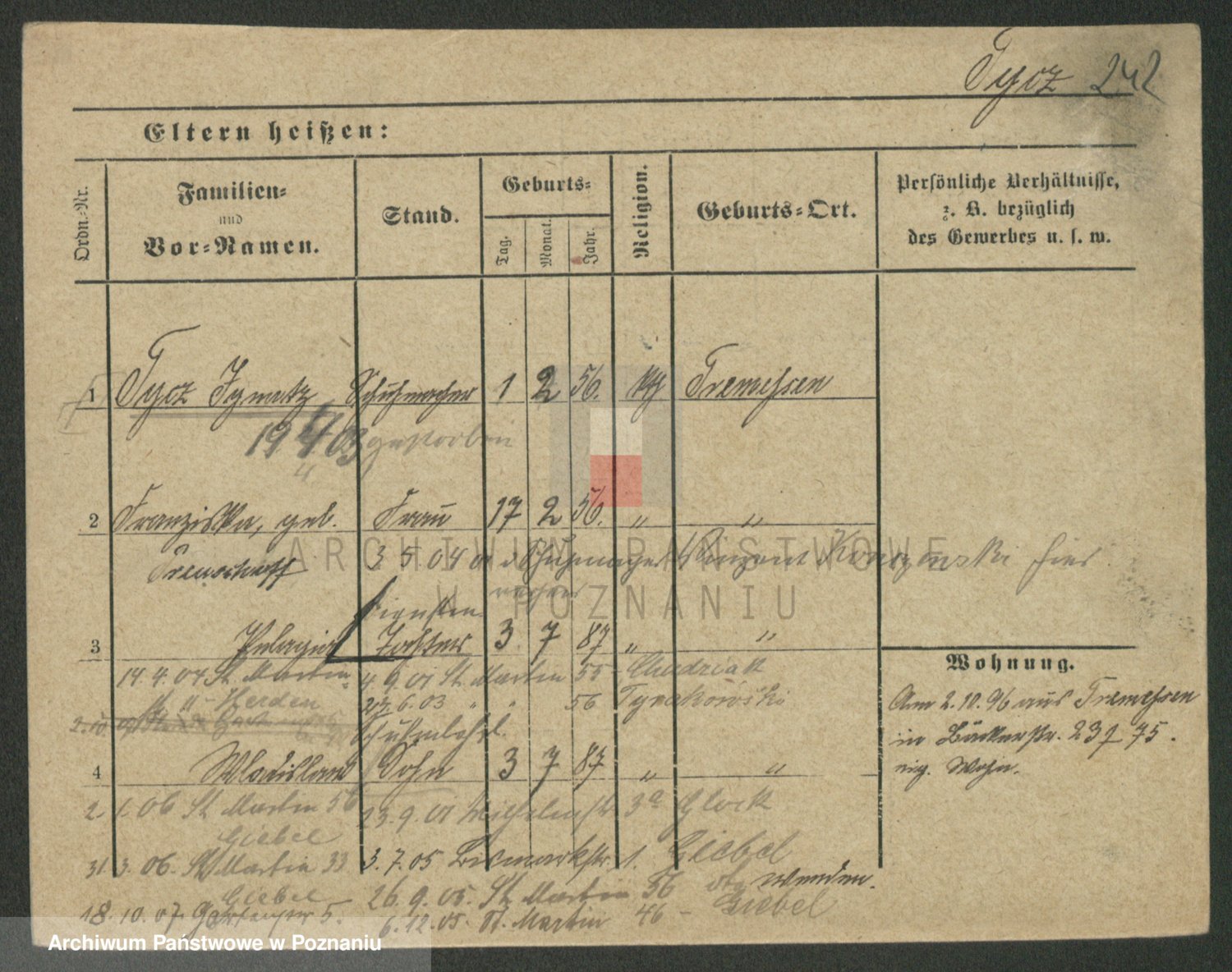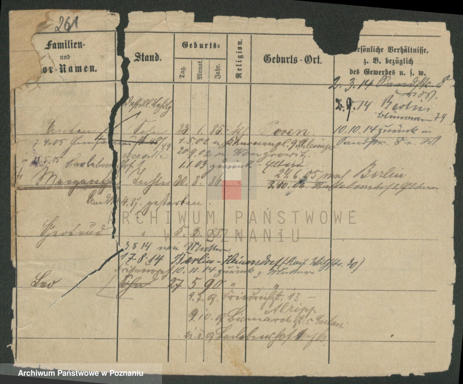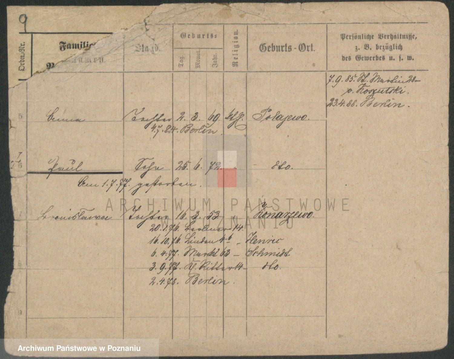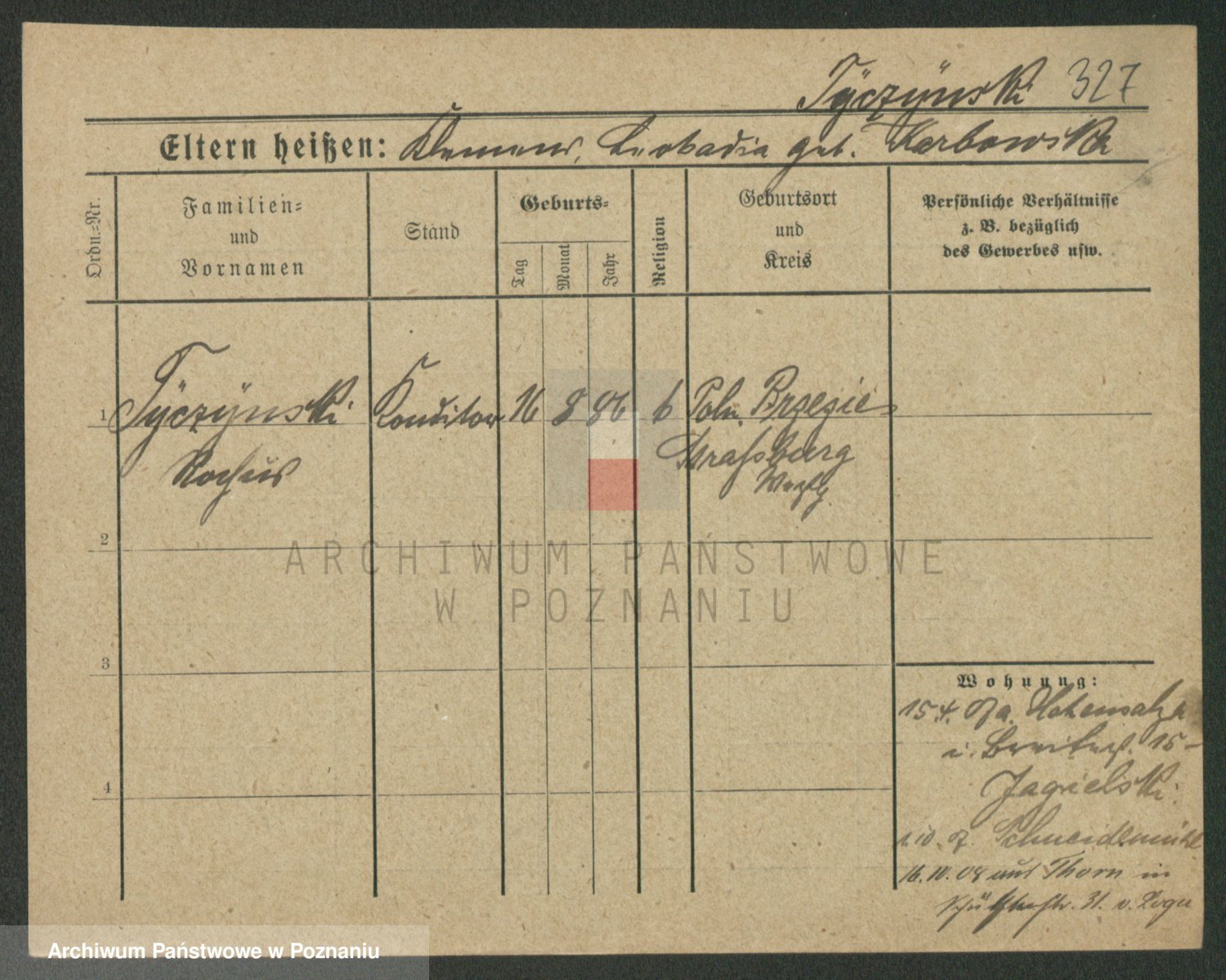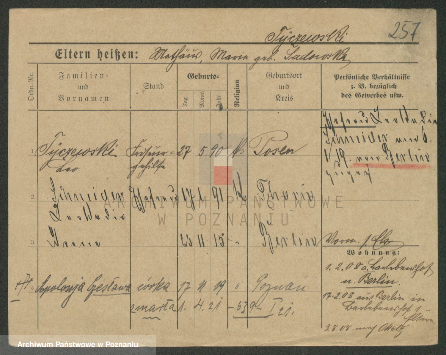 Podgląd karty osobowej dostępny jest po kliknięciu na nazwisko lub ikonkę karty. Można dokonywać powiększenia (ikony na górze) lub przechodzić między kolejnymi skanami (strzałki po bokach).