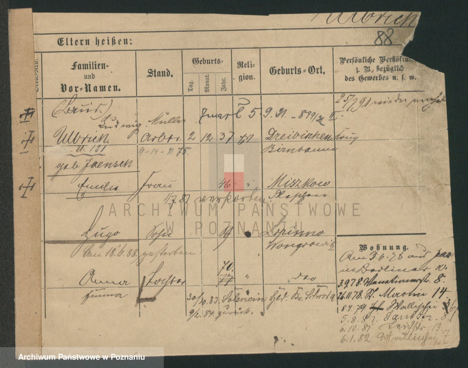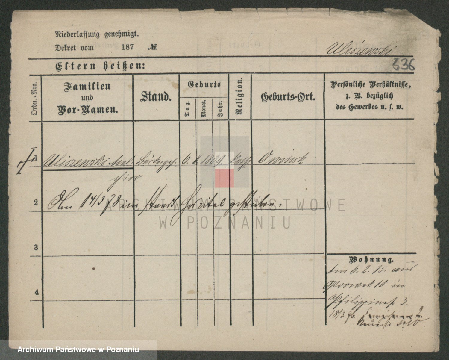 Podgląd karty osobowej dostępny jest po kliknięciu na nazwisko lub ikonkę karty. Można dokonywać powiększenia (ikony na górze) lub przechodzić między kolejnymi skanami (strzałki po bokach).
