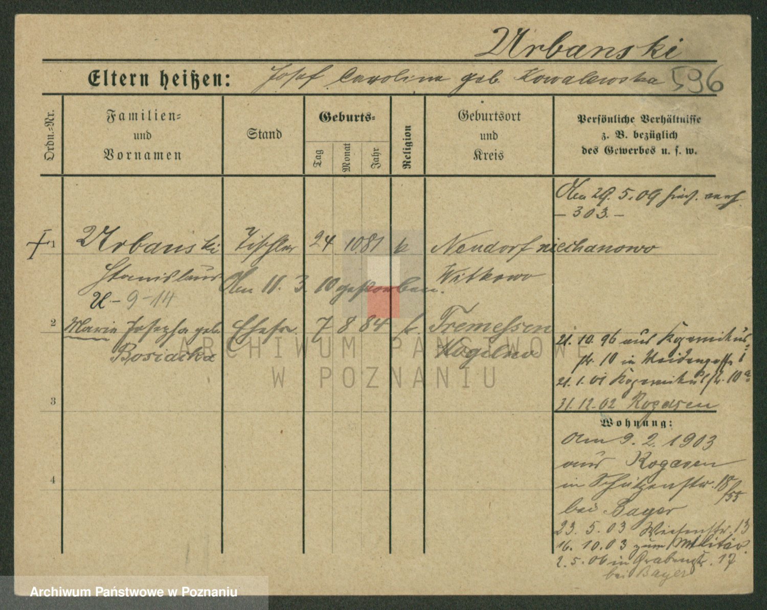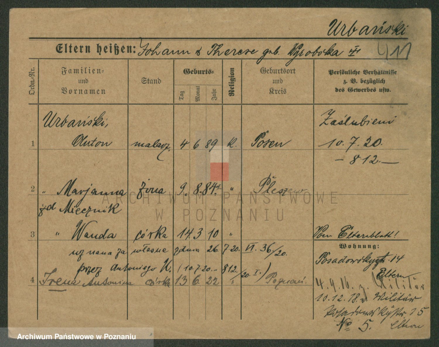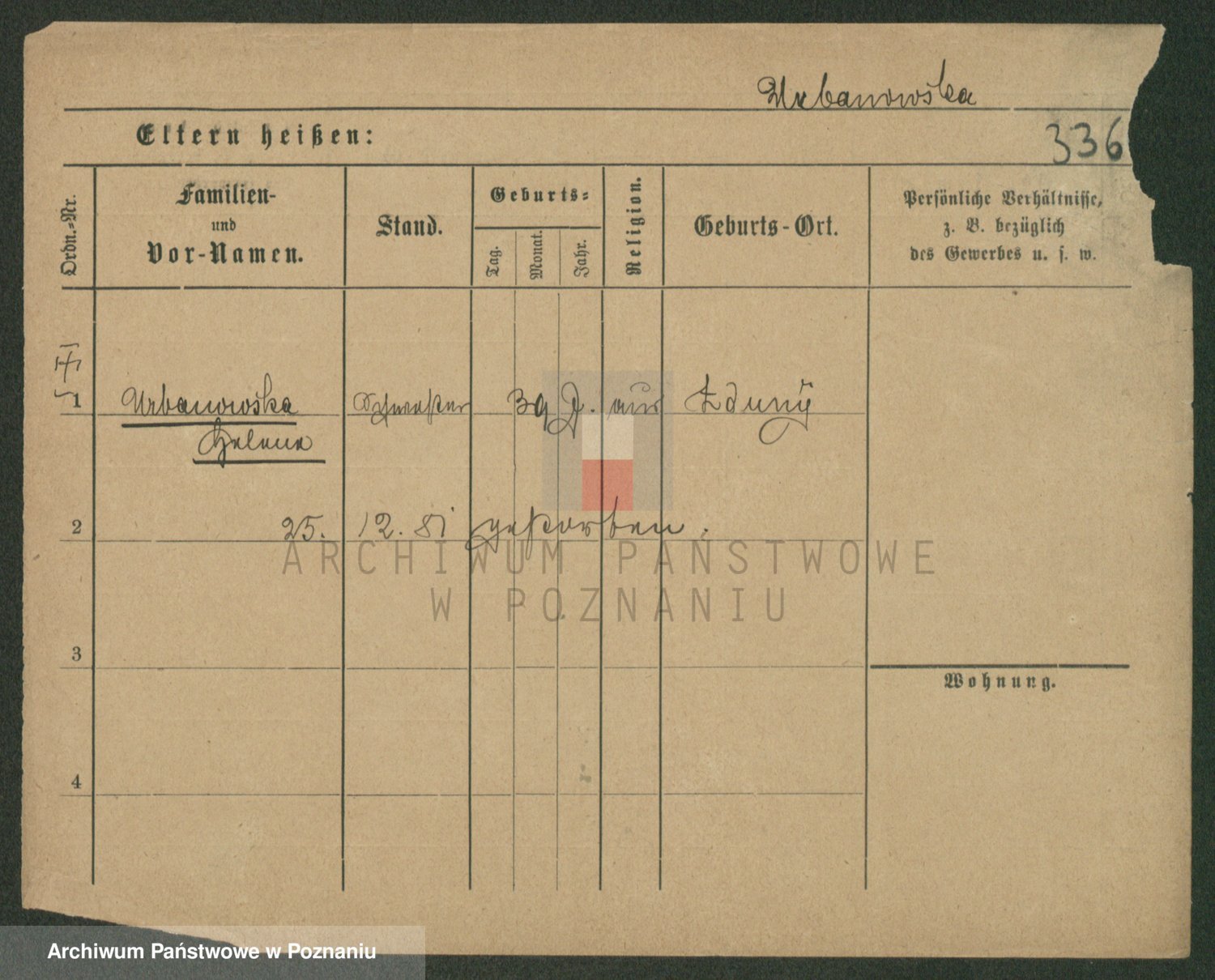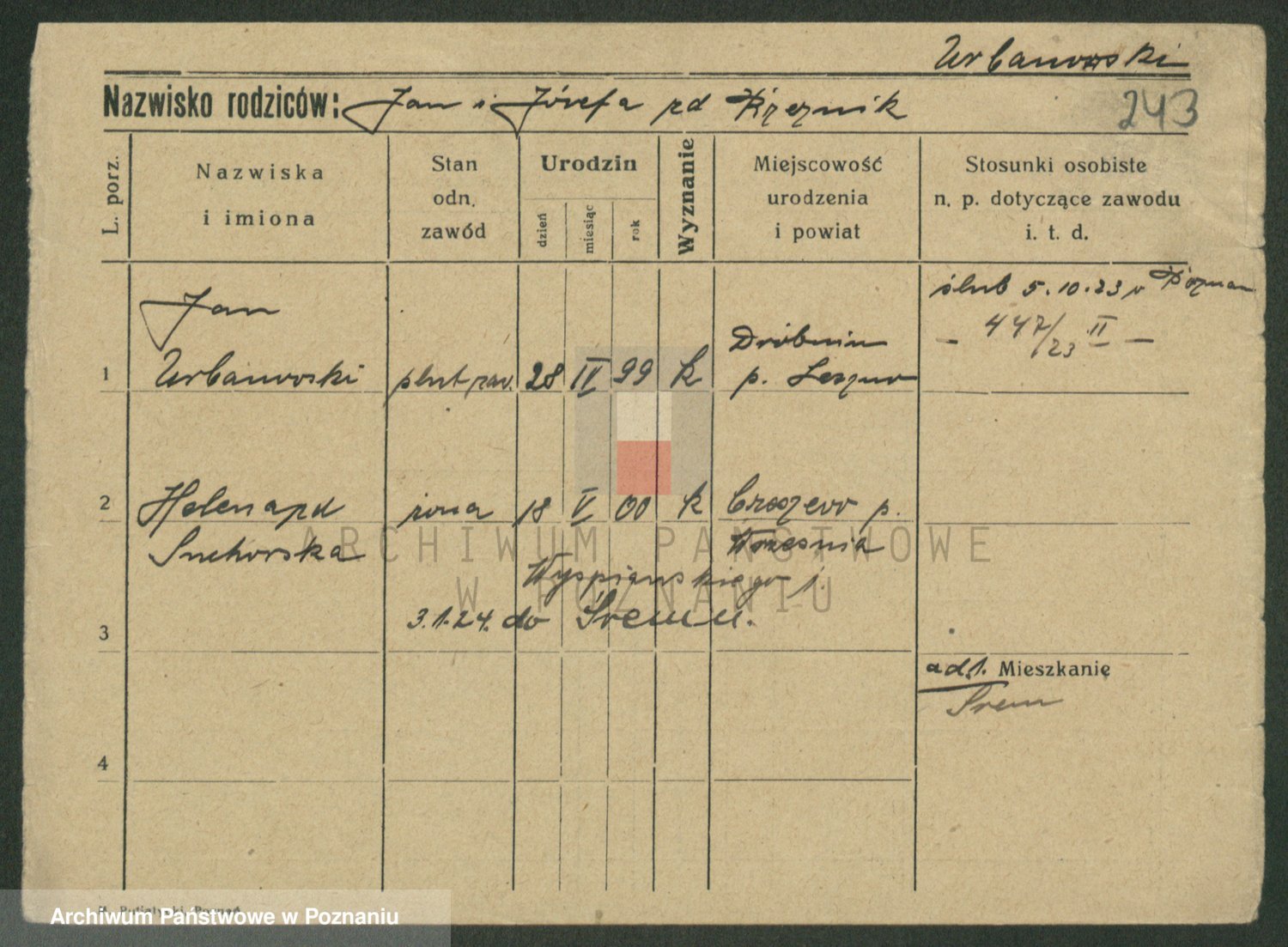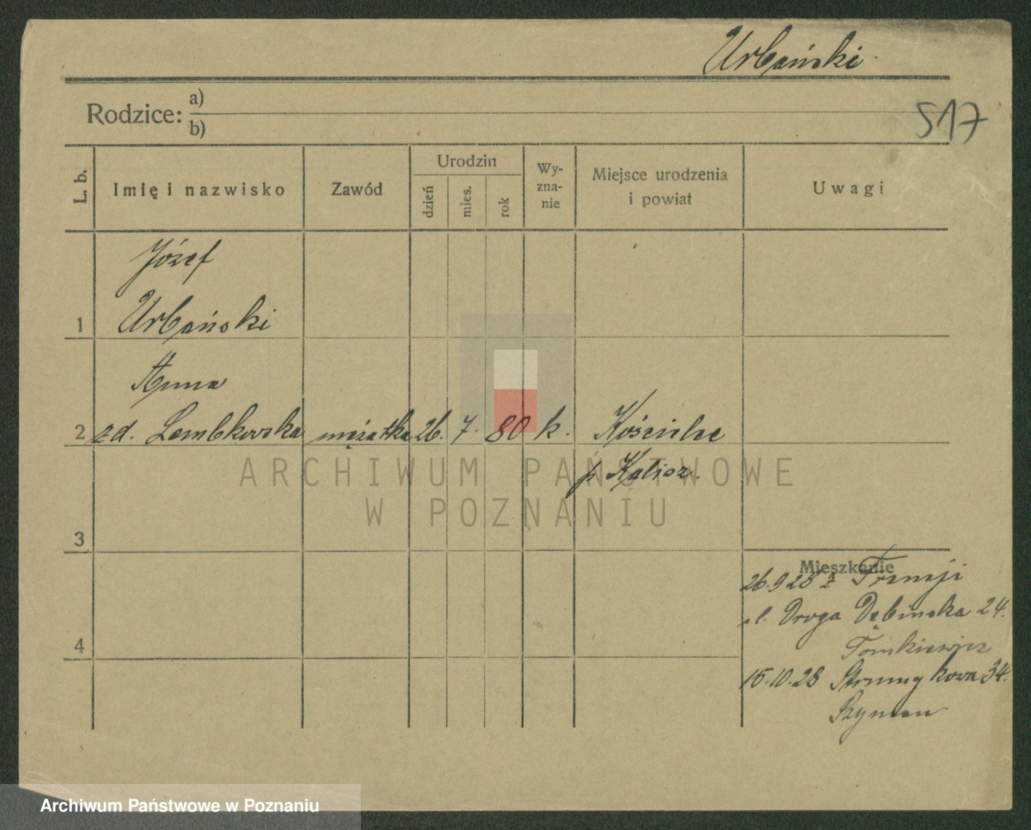 Urbanski z d. Nadolna II voto Wozniak, Josefa